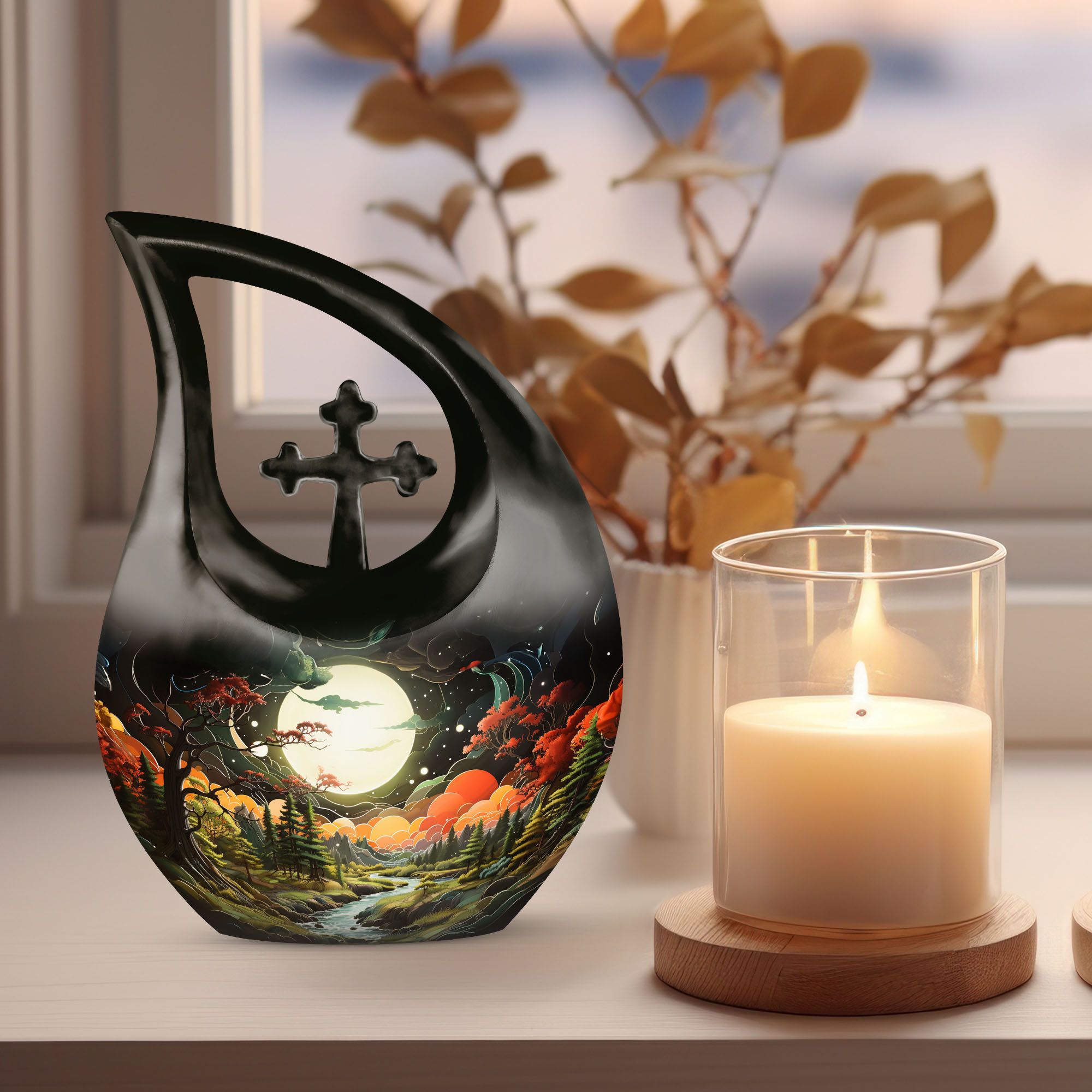 Let the Moonlight Forest Urn be a gentle reminder of everlasting love and peaceful rest. Among human urns for ashes adult female or urns for adult female ashes, it stands as a symbol of serenity and remembrance, honoring a life well-lived under the eternal glow of the moon.