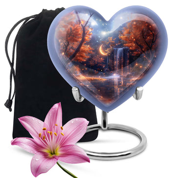 Cherish the final tribute to your loved ones with the artistic Lunar Urn, a masterful blend of abstract and heart-warming design, carved explicitly in the solemn memorial category. This 10-inch, large-size aluminium urn is sturdy and weighs 3.3 pounds. Its 200-cubic inch capacity can compassionately hold the ashes of your dear ones. This piece of art stands out in the crowd of memorial funeral urns for ashes, adding elegance to an unforgettable remembrance. The package includes a velvet pouch for the containment of ashes, ensuring the preservation of integrity in a dignified manner. Make it even more personal by engraving names on it, subtly remembering the person it is dedicated to. Whether it's for your mother or father, the Lunar Urn ensures a serene, unique remembrance. Perfect for those searching for memorial urns, funeral unique urns or decorative urns for human ashes.