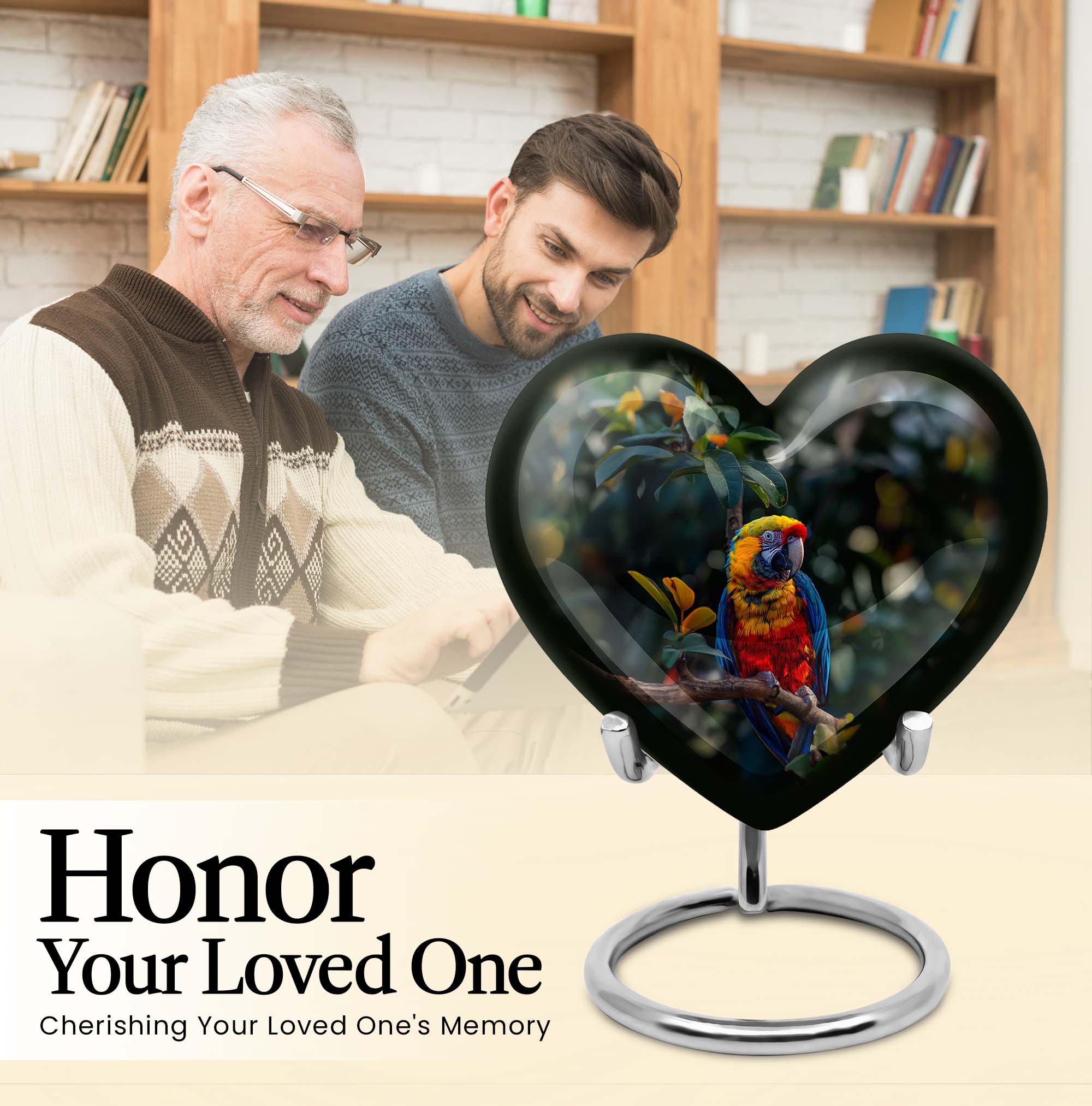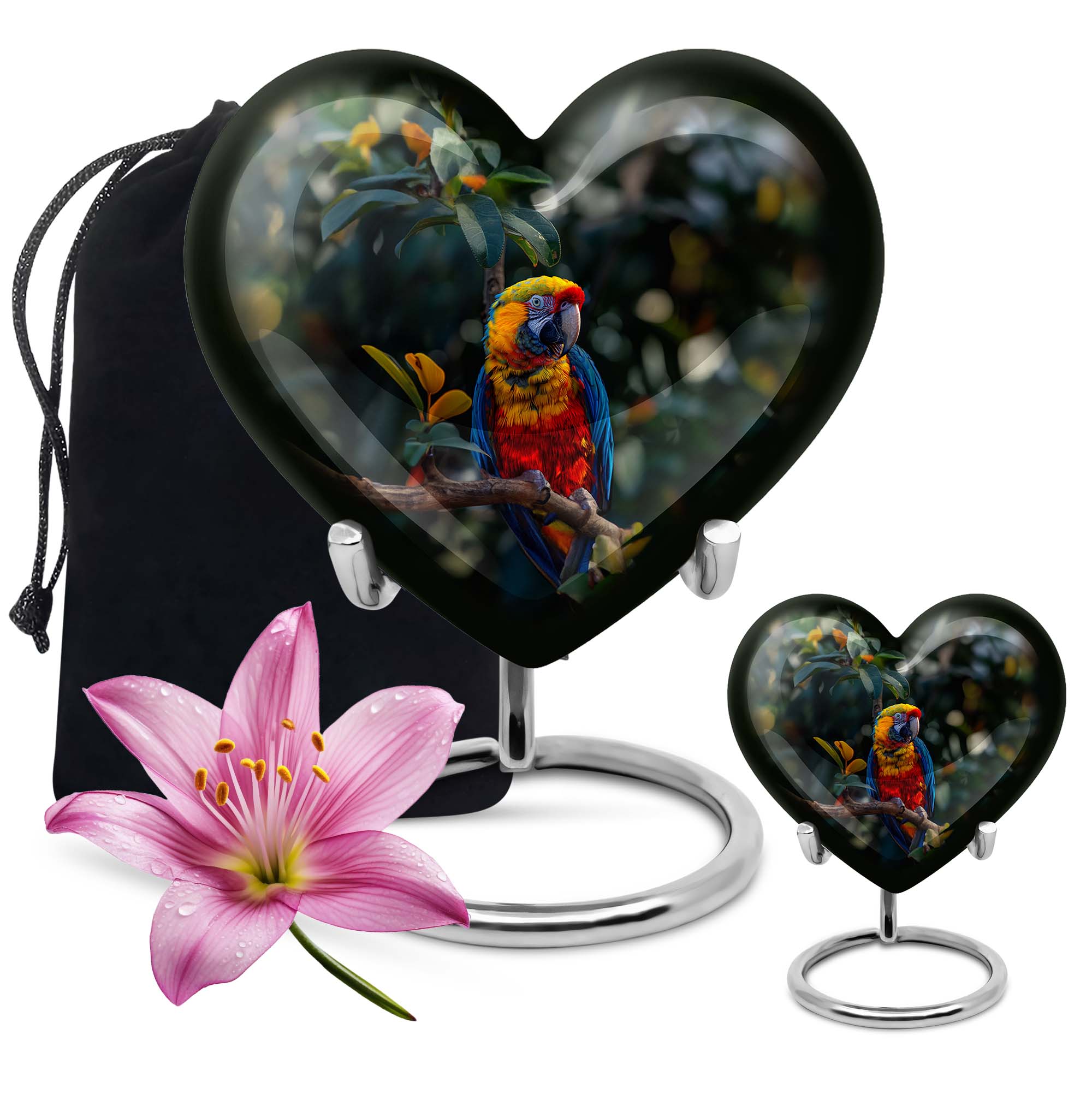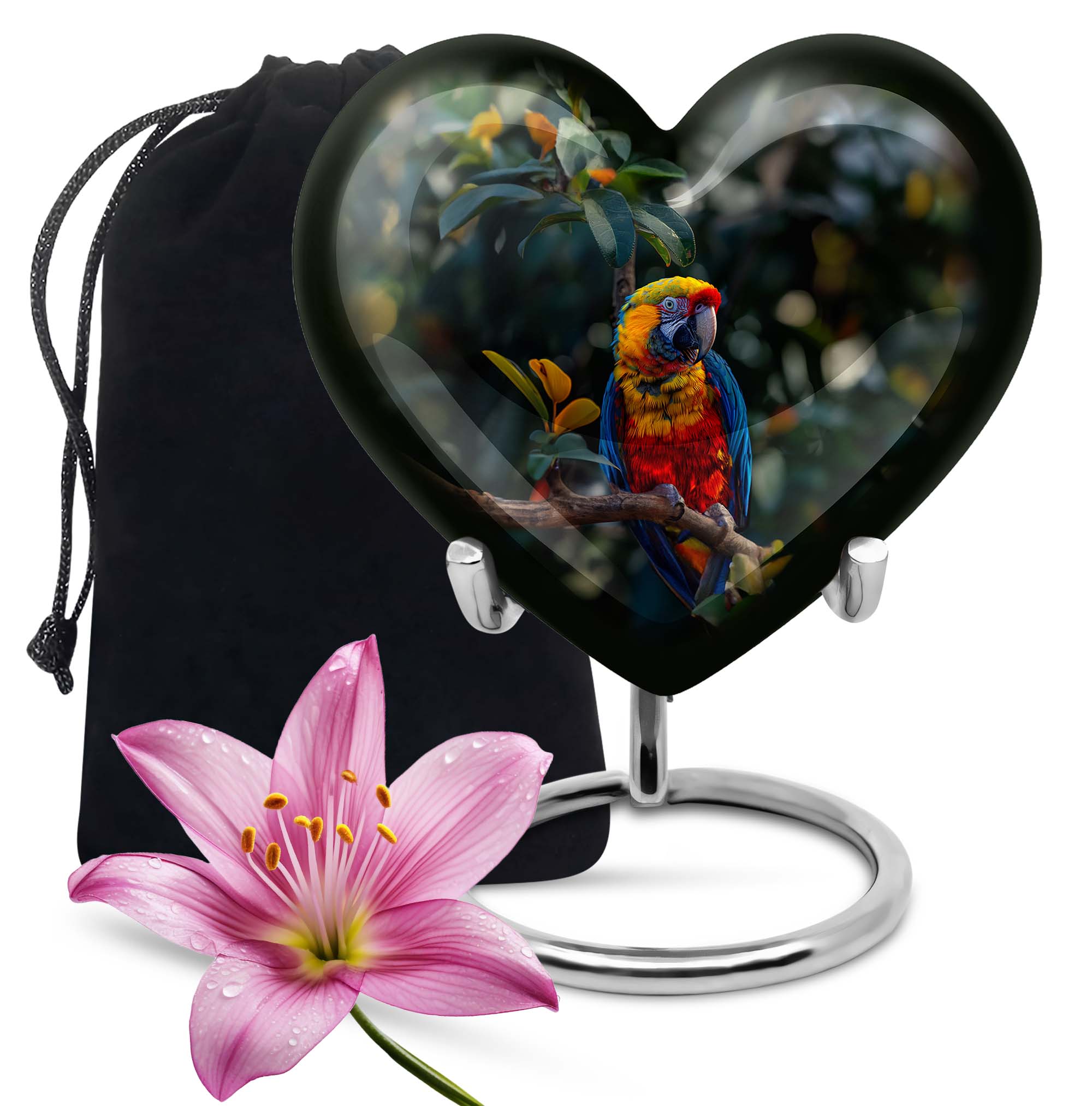 Macaw Parrot Heart Cremation Medium for Eternal Memory