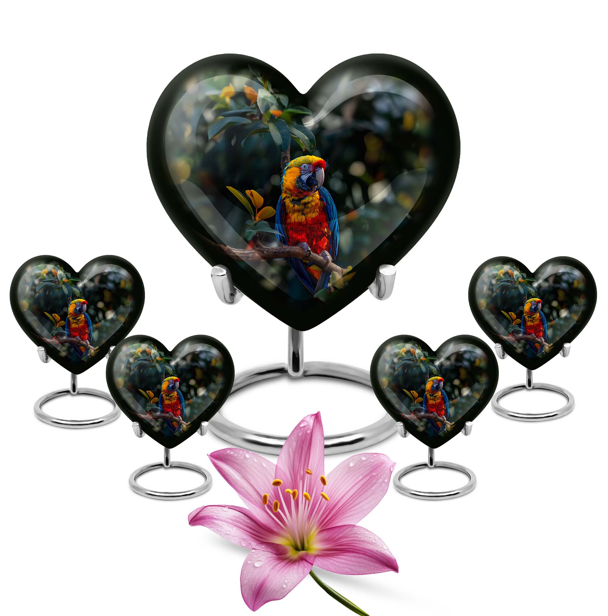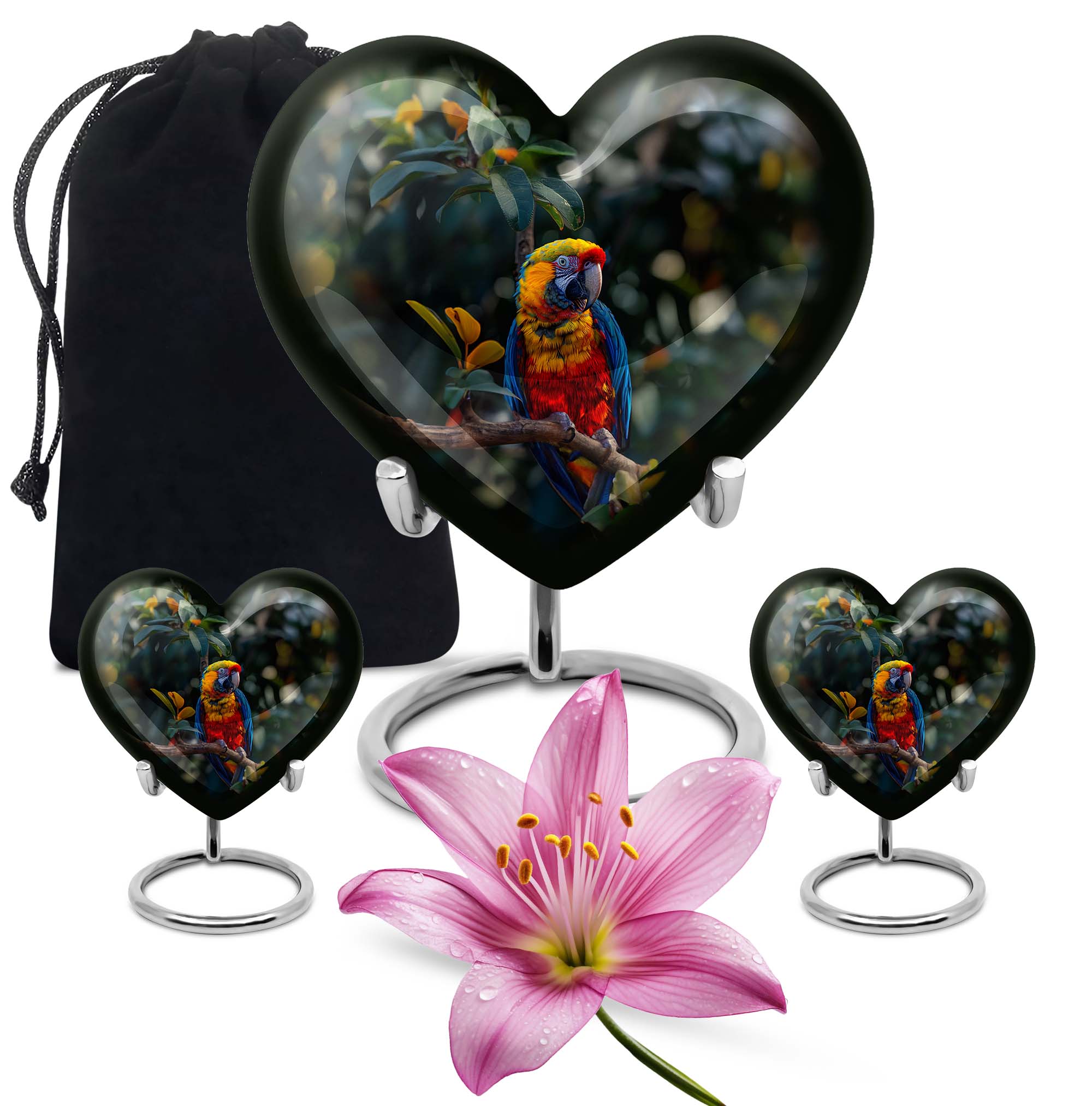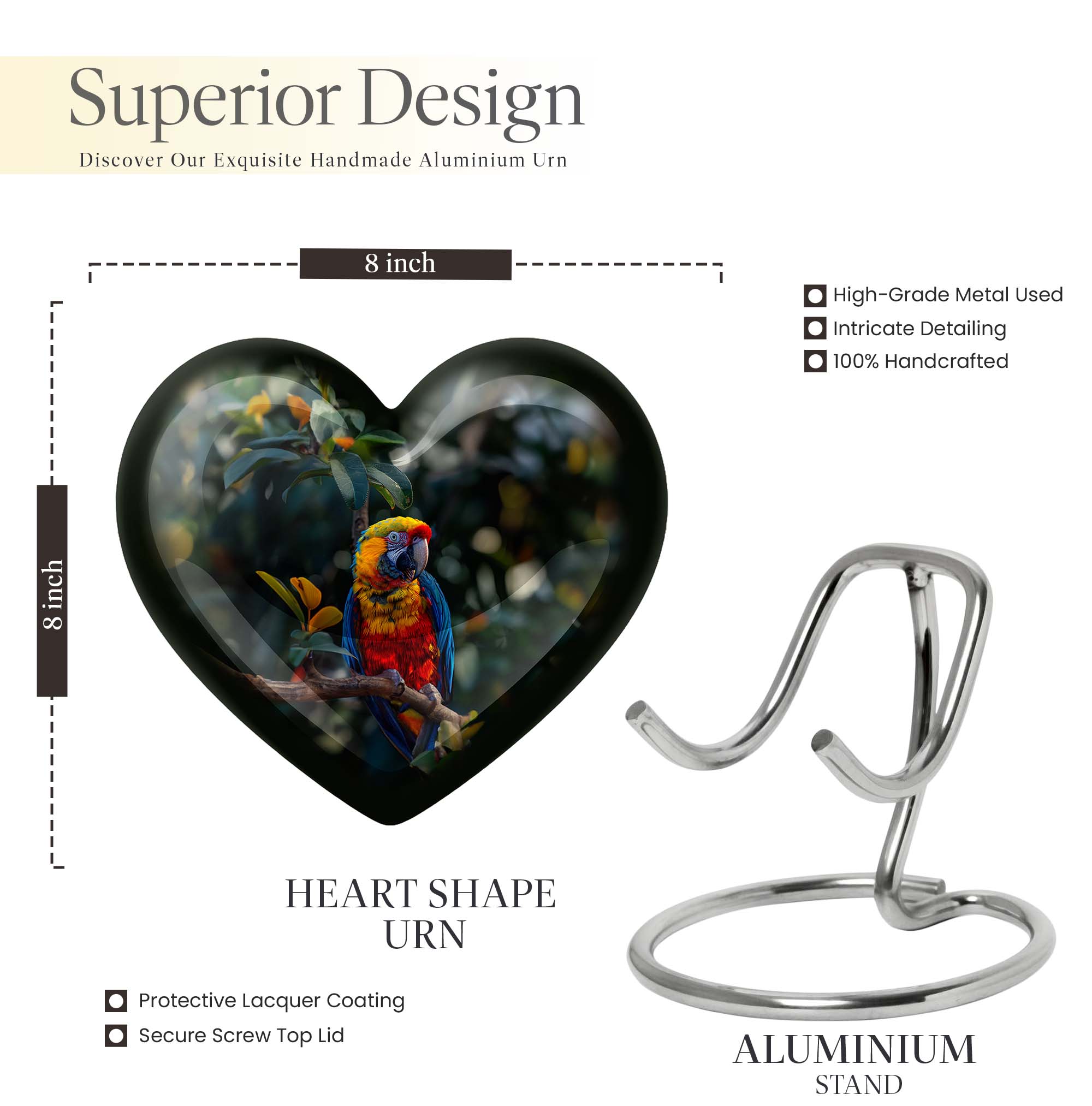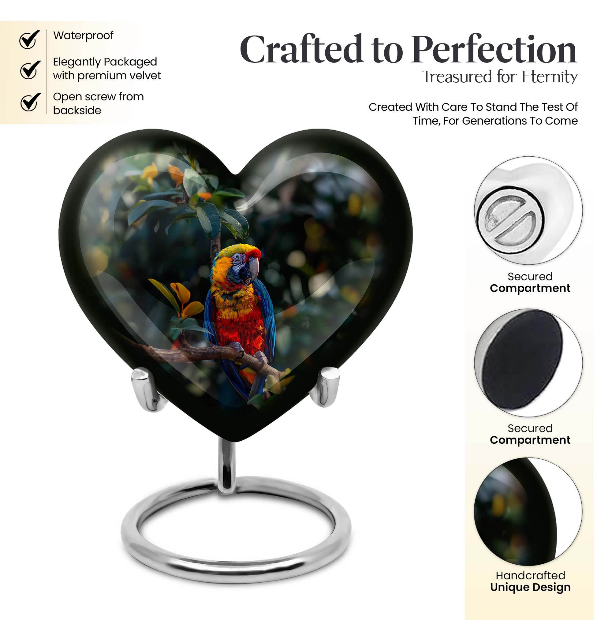 Macaw Parrot Heart Cremation Medium for Eternal Memory