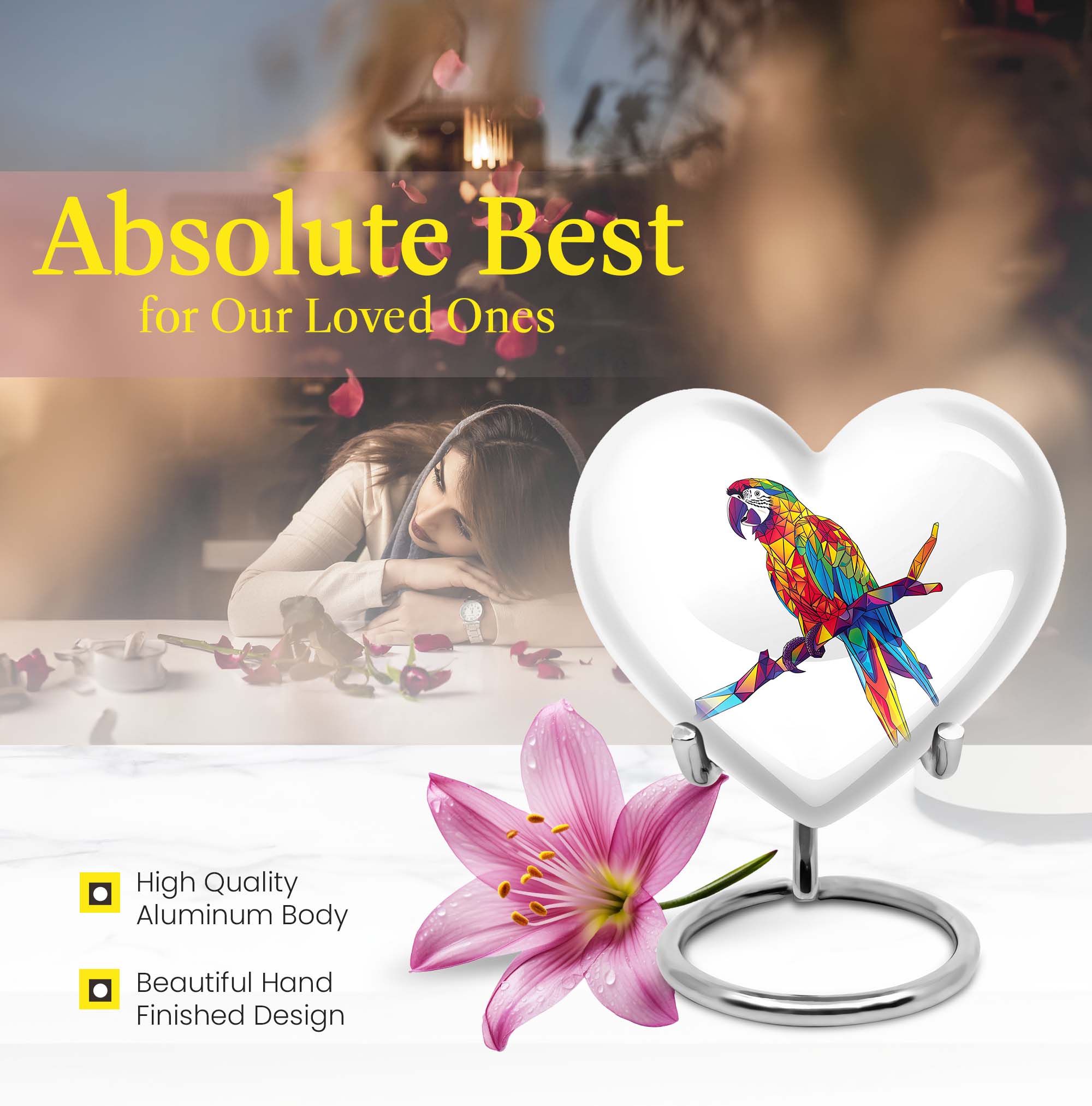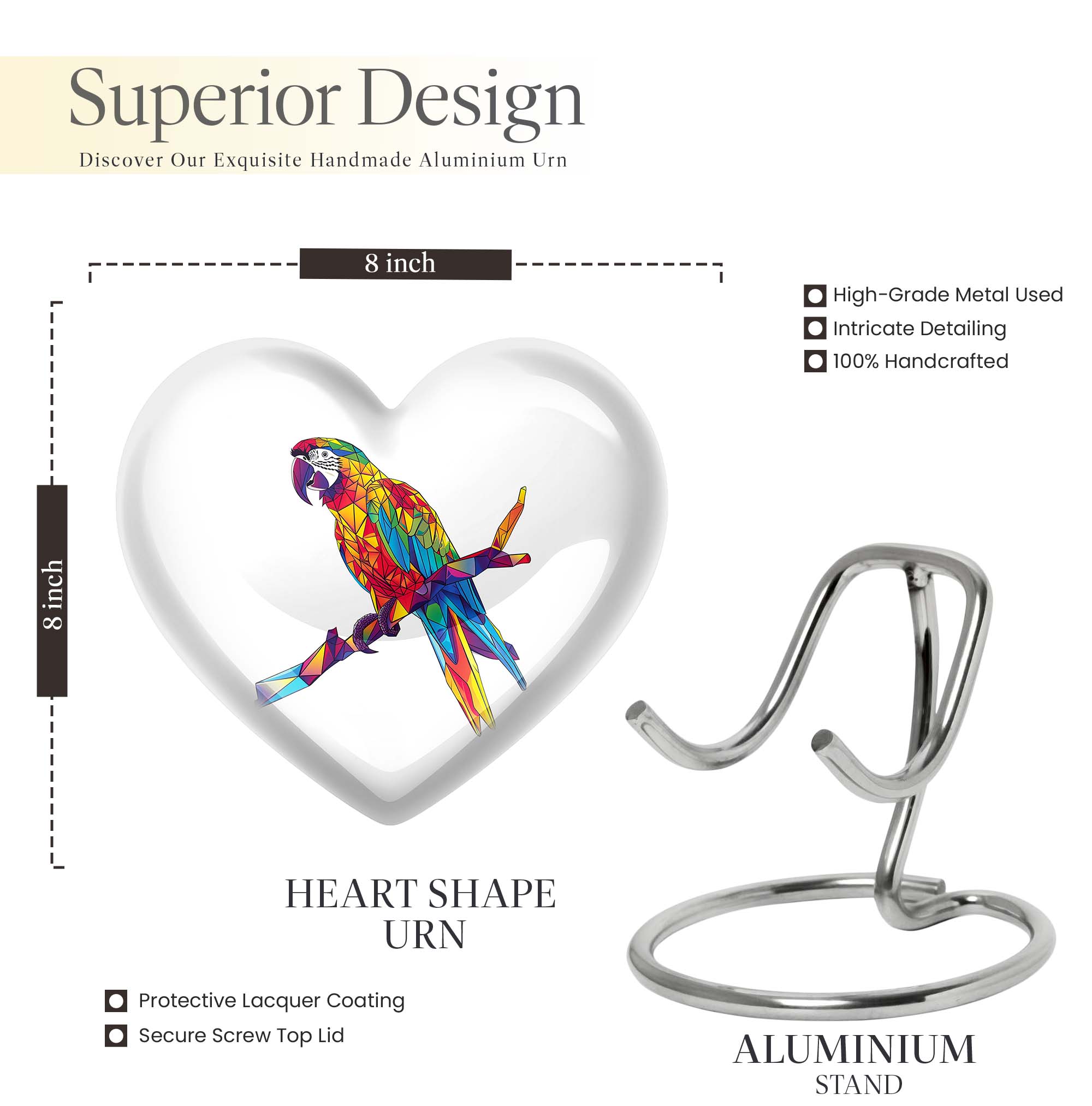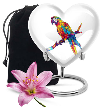 Celebrate the memory of a loved one with our sophisticated and dignified Macaw Parrot Urn. Perfectly sized at a height of 10 inches, this substantial yet delicately weighted at 3.3 pounds, cremation funeral urn carefully stores ashes in a respectful and honorable way. Rendered in a durable aluminium material, the Wolf Howling theme expresses reverence and admiration. The urn comes with a soft velvet pouch for the safekeeping and transportation of the ashes. This cremation urn has a sizable capacity of 200 cubic inches, making it suitable as a large urn for ashes. Complement the urn with your personal touch, as it can be customized with engraved names, adding a personalized token of remembrance. Our Macaw Parrot Urn is a fitting tribute for remembering and honouring a cherished individual. It's more than just a funeral decorative urn, it is a symbol of lasting love and remembrance.