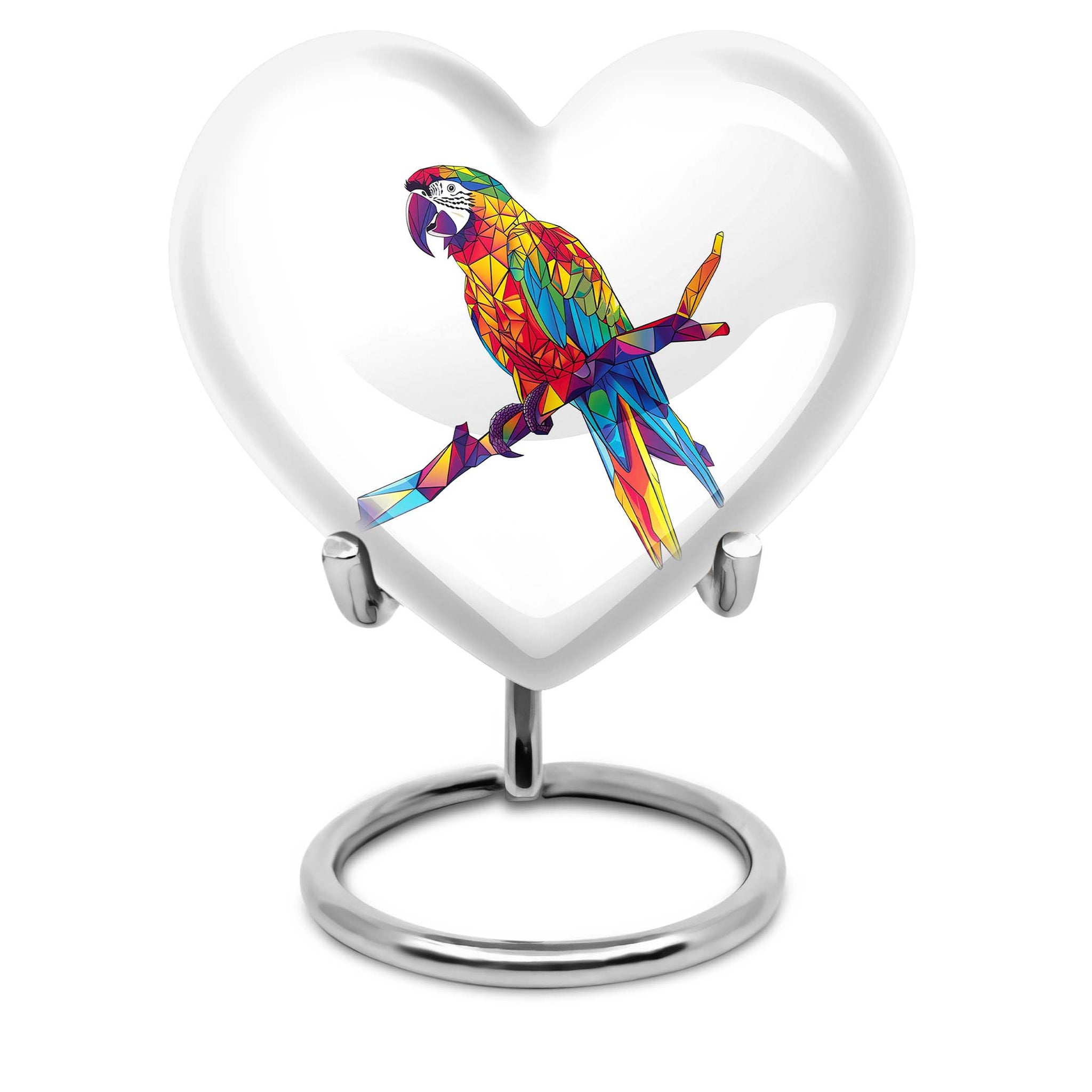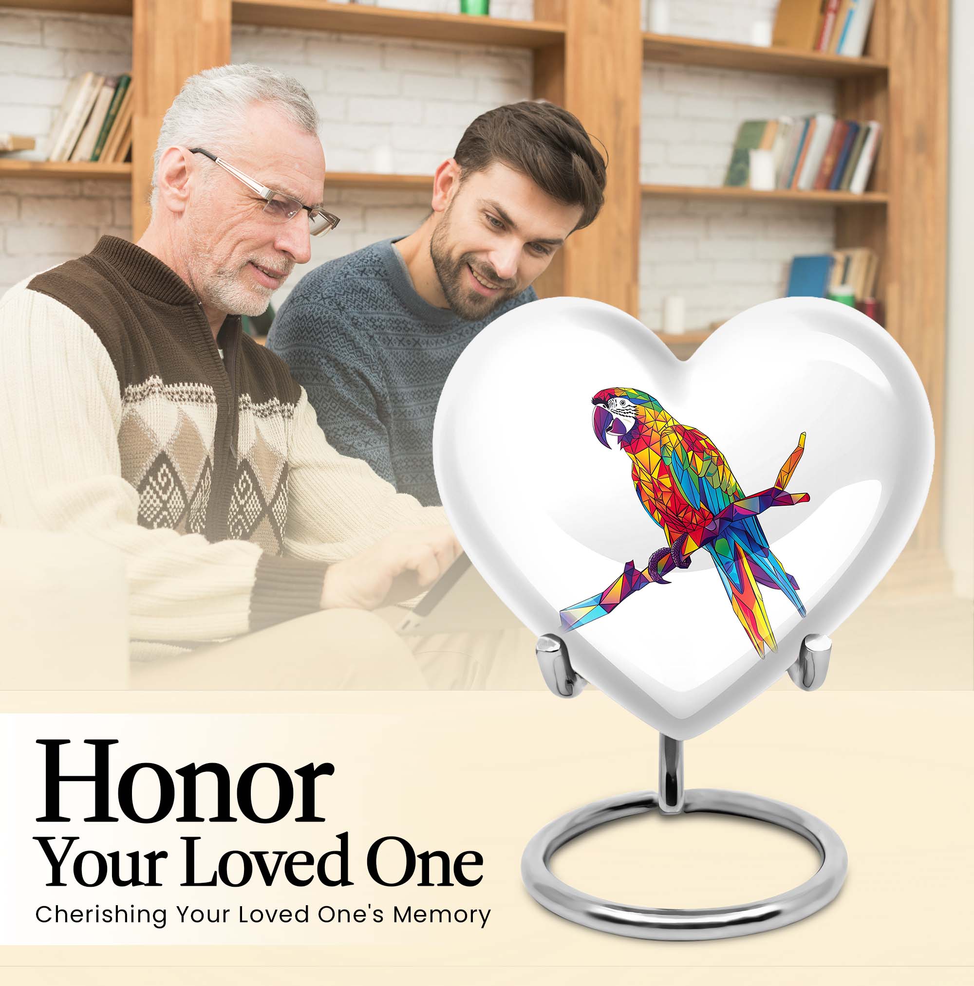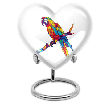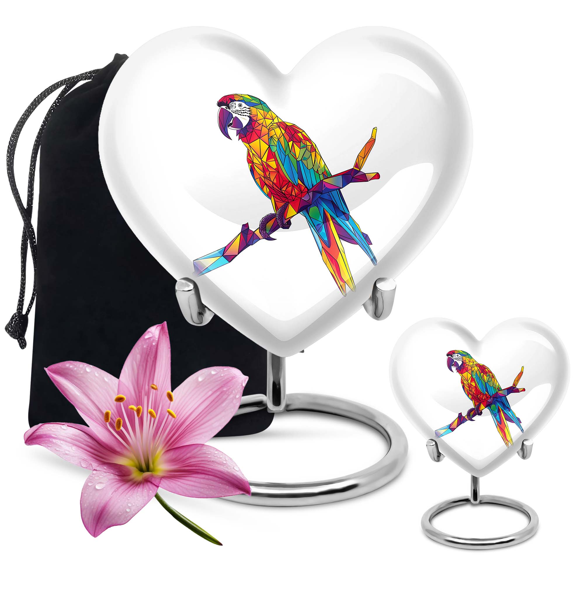 Celebrate the memory of a loved one with our sophisticated and dignified Macaw Parrot Urn. Perfectly sized at a height of 10 inches, this substantial yet delicately weighted at 3.3 pounds, cremation funeral urn carefully stores ashes in a respectful and honorable way. Rendered in a durable aluminium material, the Wolf Howling theme expresses reverence and admiration. The urn comes with a soft velvet pouch for the safekeeping and transportation of the ashes. This cremation urn has a sizable capacity of 200 cubic inches, making it suitable as a large urn for ashes. Complement the urn with your personal touch, as it can be customized with engraved names, adding a personalized token of remembrance. Our Macaw Parrot Urn is a fitting tribute for remembering and honouring a cherished individual. It's more than just a funeral decorative urn, it is a symbol of lasting love and remembrance.