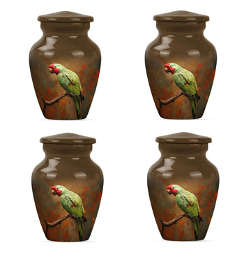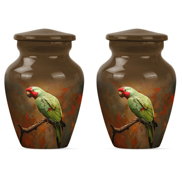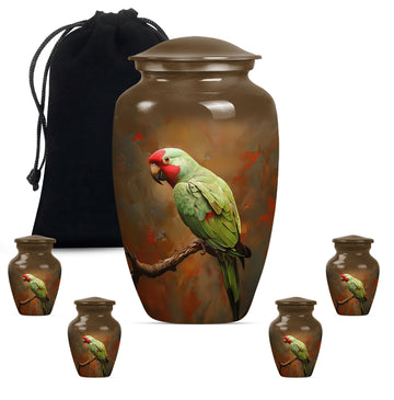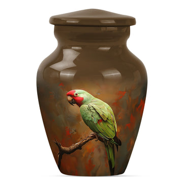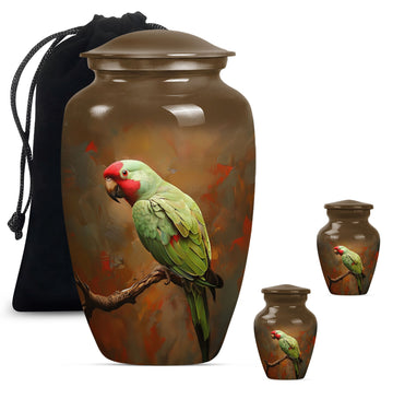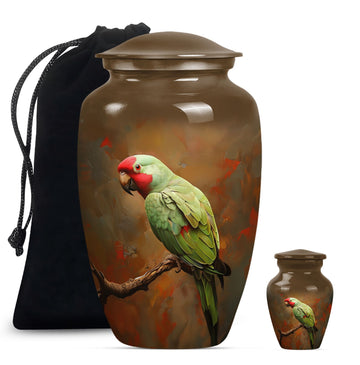 Preserve and honor the memory of your loved ones with this elegant Macaw Parrot Urn. Painstakingly crafted from high-quality aluminium, this funeral burial urn stands at 10 inches in height and weighs a sturdy 3.3 pounds. Its 200 cubic inch capacity is ideally suited for the containment of human ashes, solidifying its place among large urns in the memorial ceremony supplies category. Its precious contents are further safeguarded in a beautifully plush velvet pouch. The expressive theme of a ‘wolf howling’ introduces a poignant touch to this large urn. Adding an element of personal affection, it presents customization options. This allows you to personalize it with engraved names, creating a uniquely sentimental keepsake. Remember, this is not only a cremation urn, but a tasteful artifact embodying love and remembrance. Be it for adults or seniors, its presence resonates with the essence of respect and love towards those who have moved on to other realms.