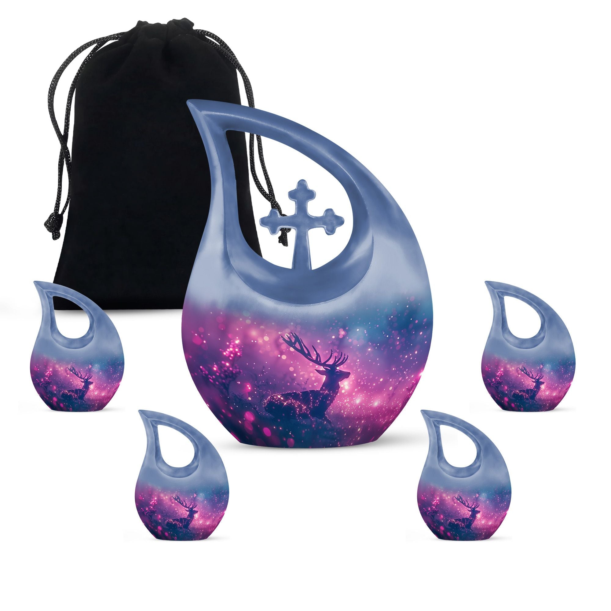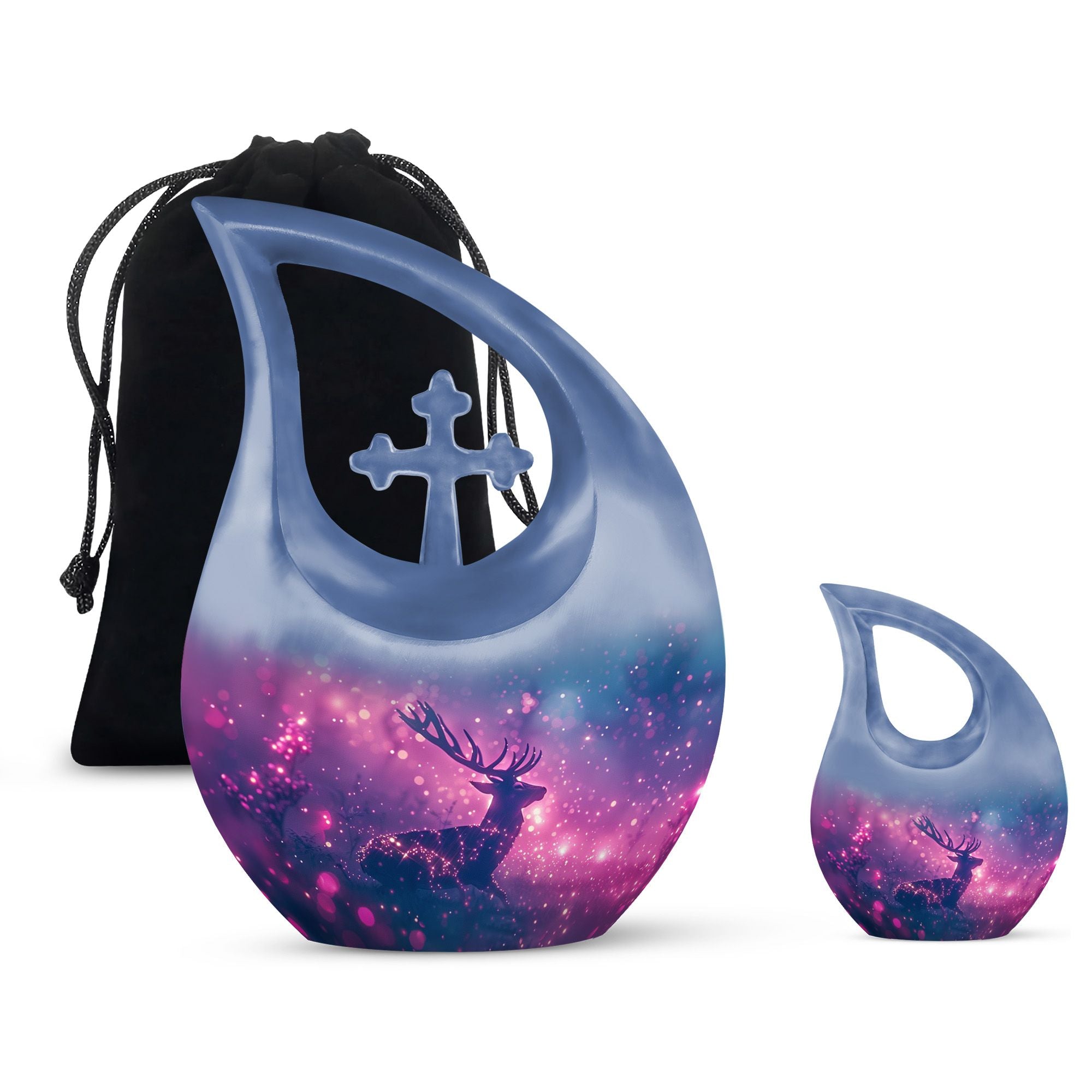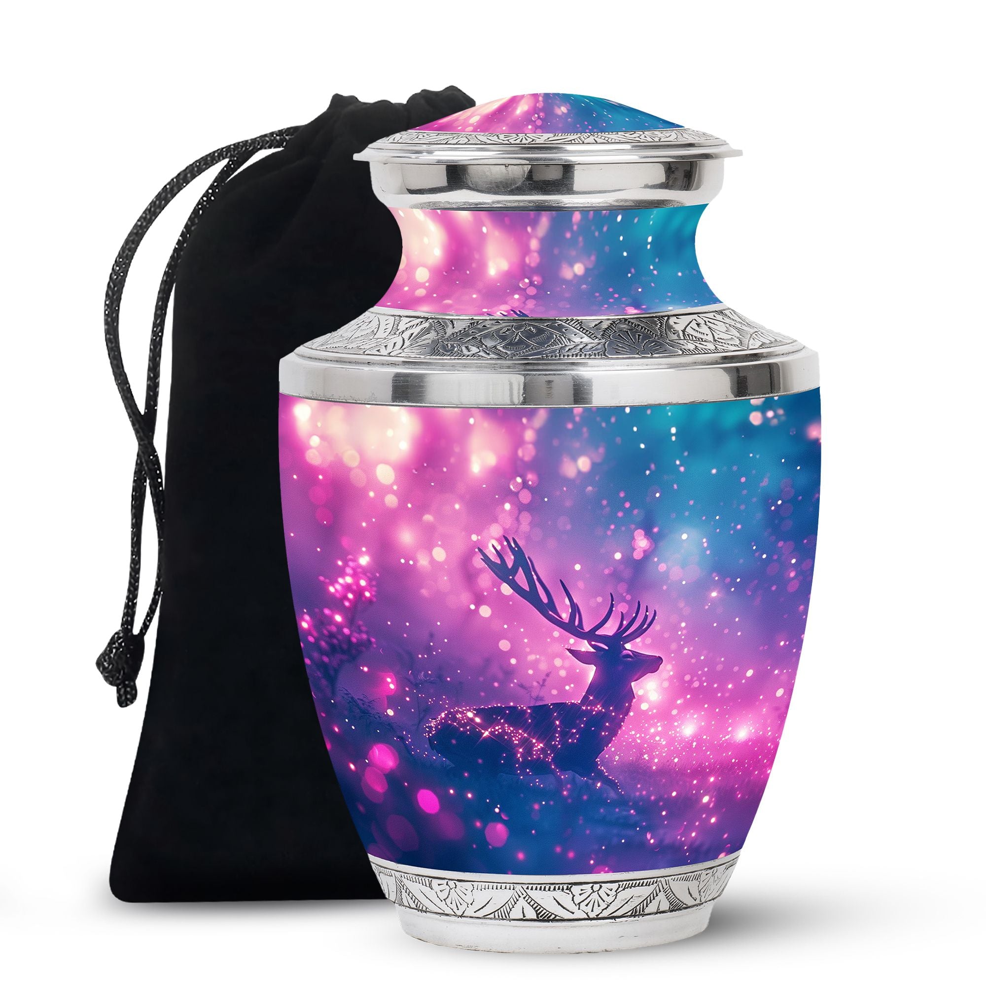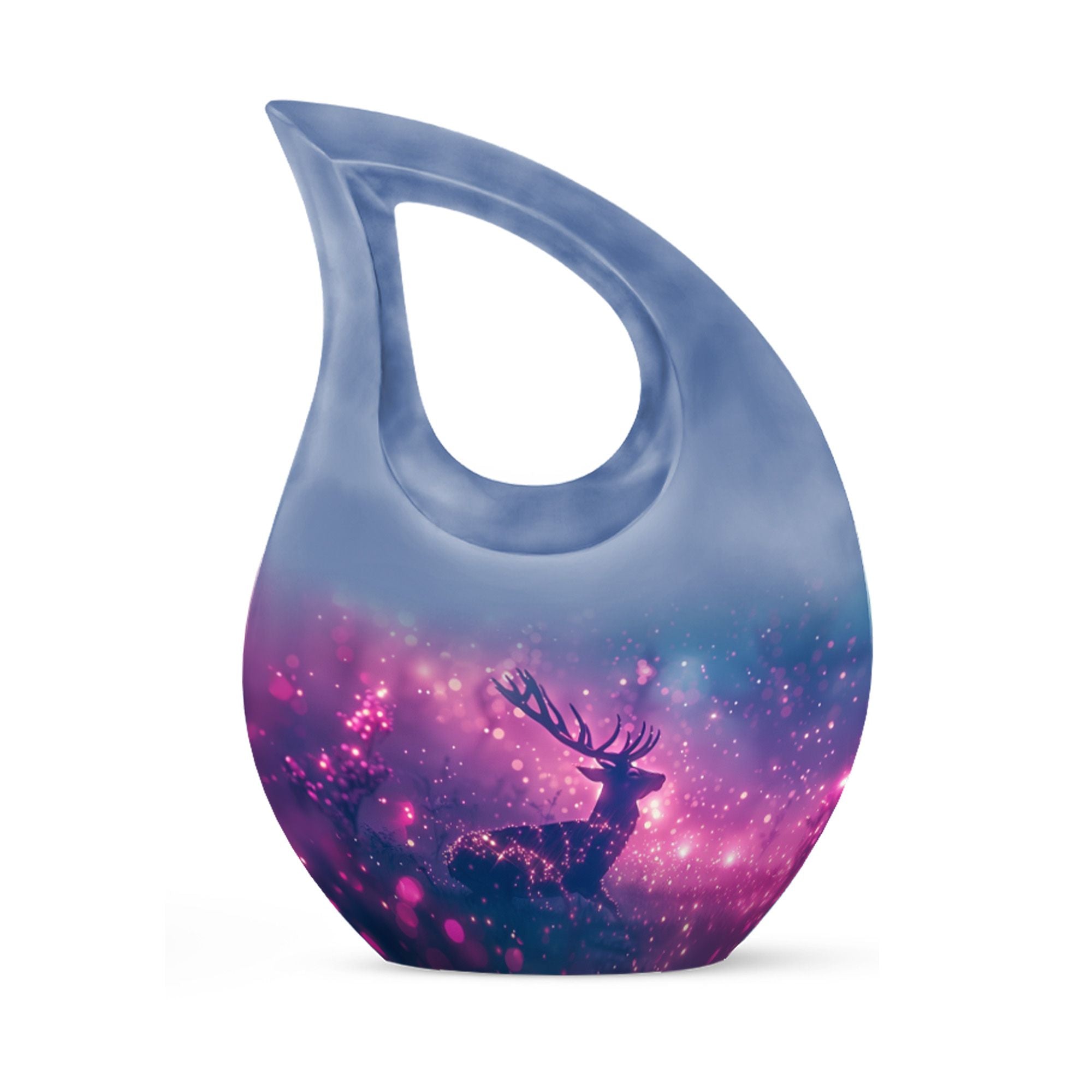 Celebrate the life and memories of your loved one with this beautifully crafted deer-themed cremation urn. Designed with compassion and care, this urn is ideal for preserving ashes in a meaningful way, offering comfort to families seeking large adult urns for human ashes. Its serene purple and blue tones evoke a sense of peace and remembrance.