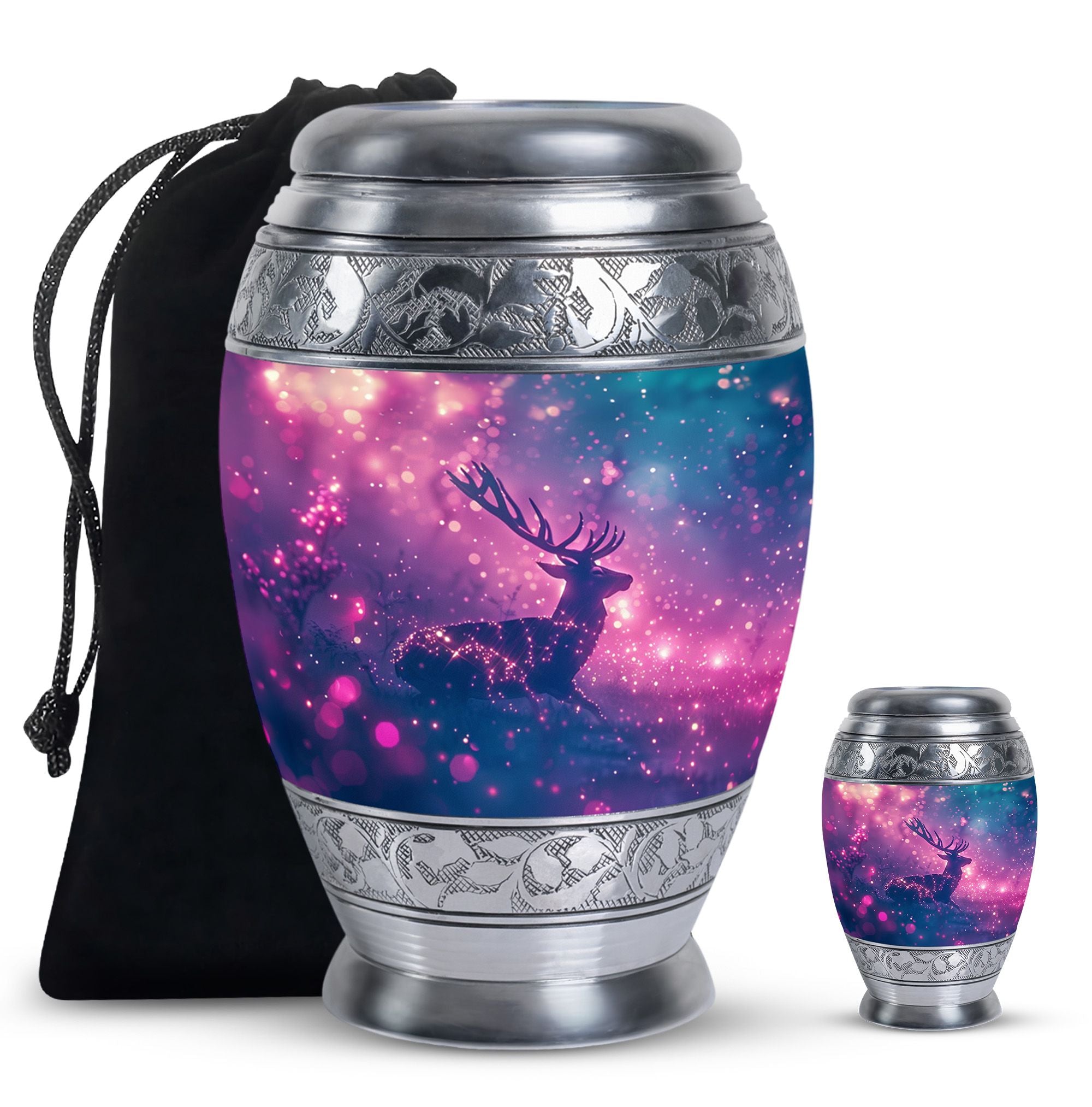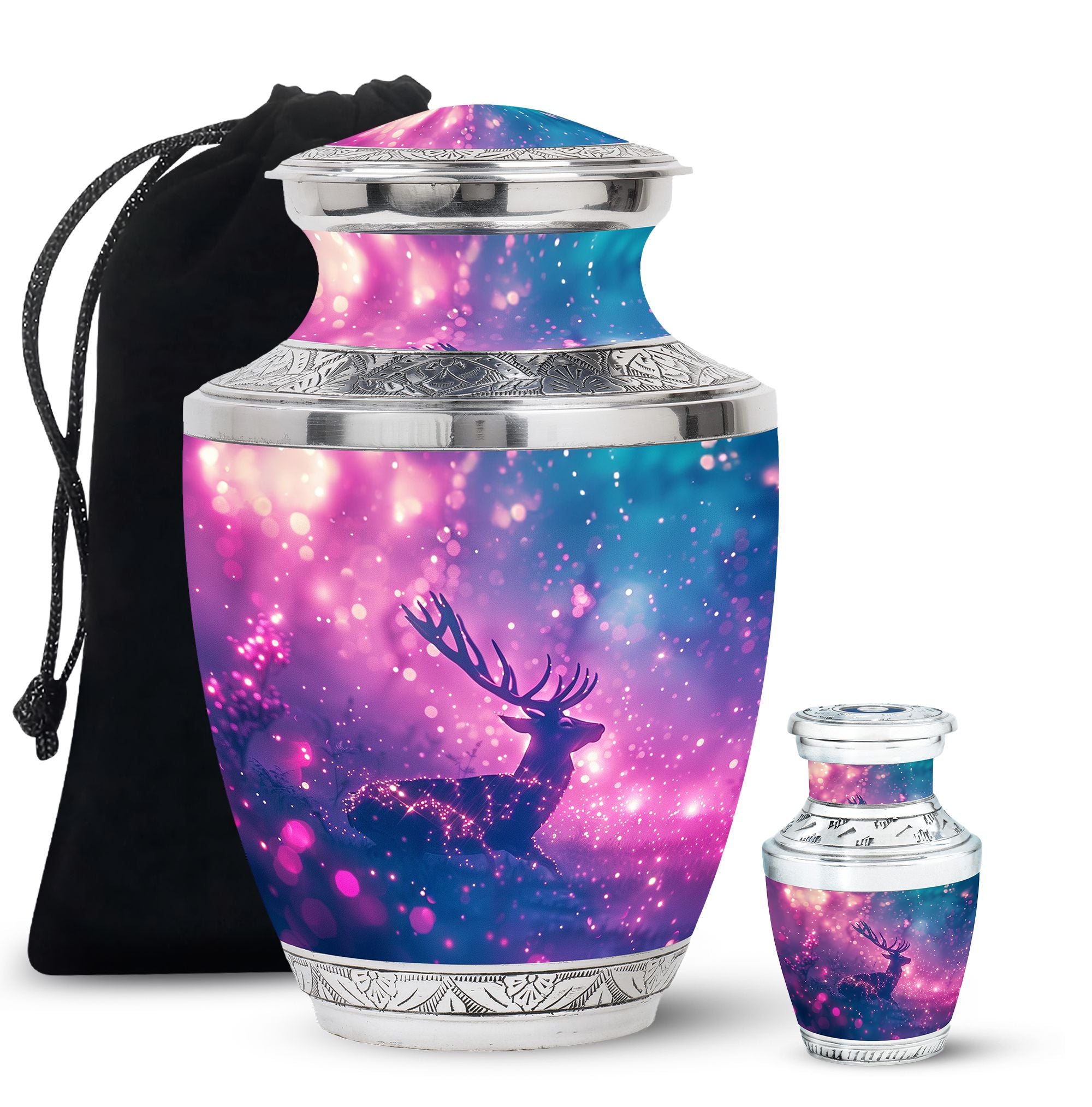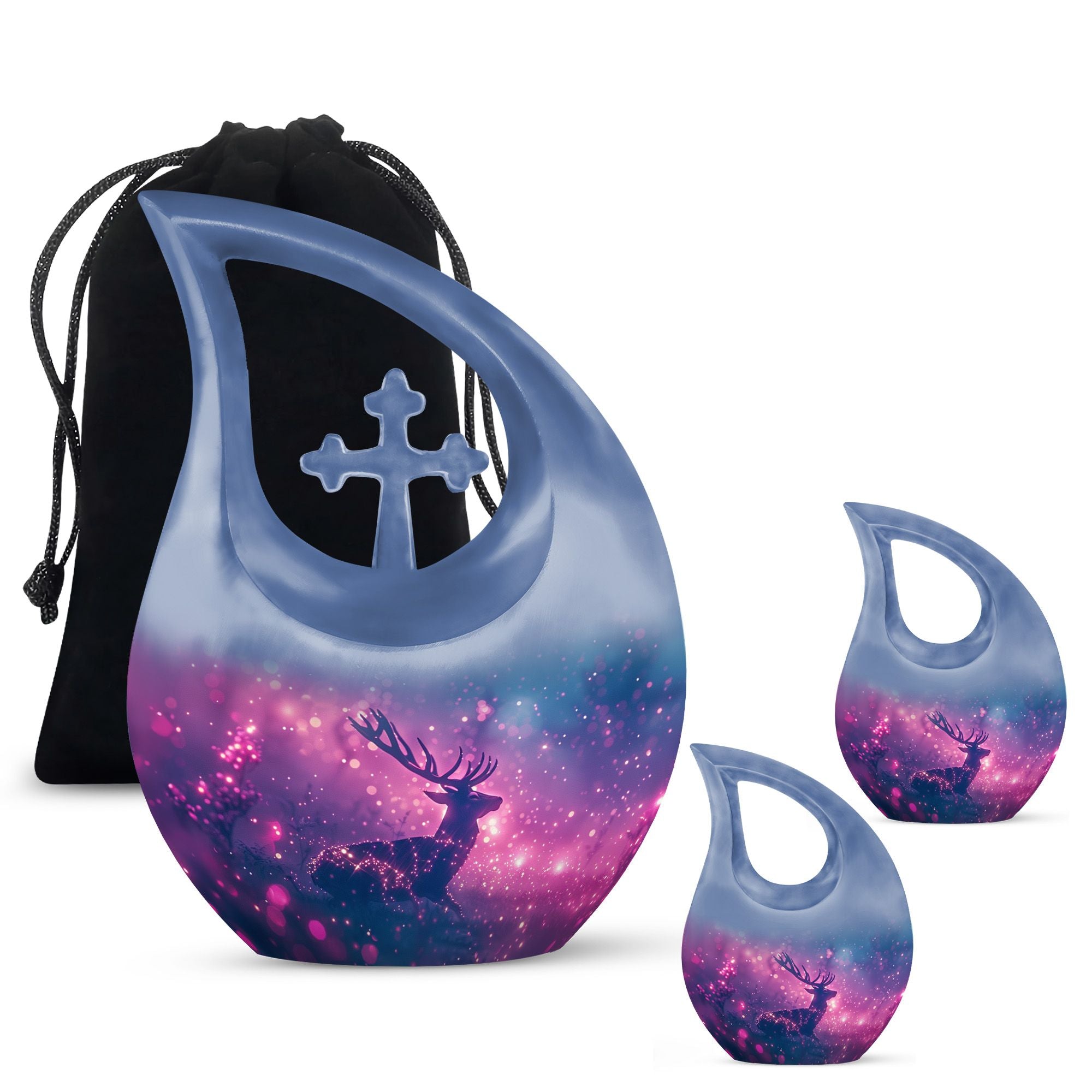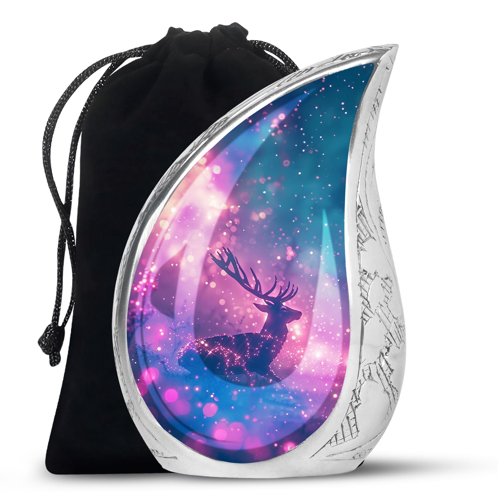 Celebrate the life and memories of your loved one with this beautifully crafted deer-themed cremation urn. Designed with compassion and care, this urn is ideal for preserving ashes in a meaningful way, offering comfort to families seeking large adult urns for human ashes. Its serene purple and blue tones evoke a sense of peace and remembrance.