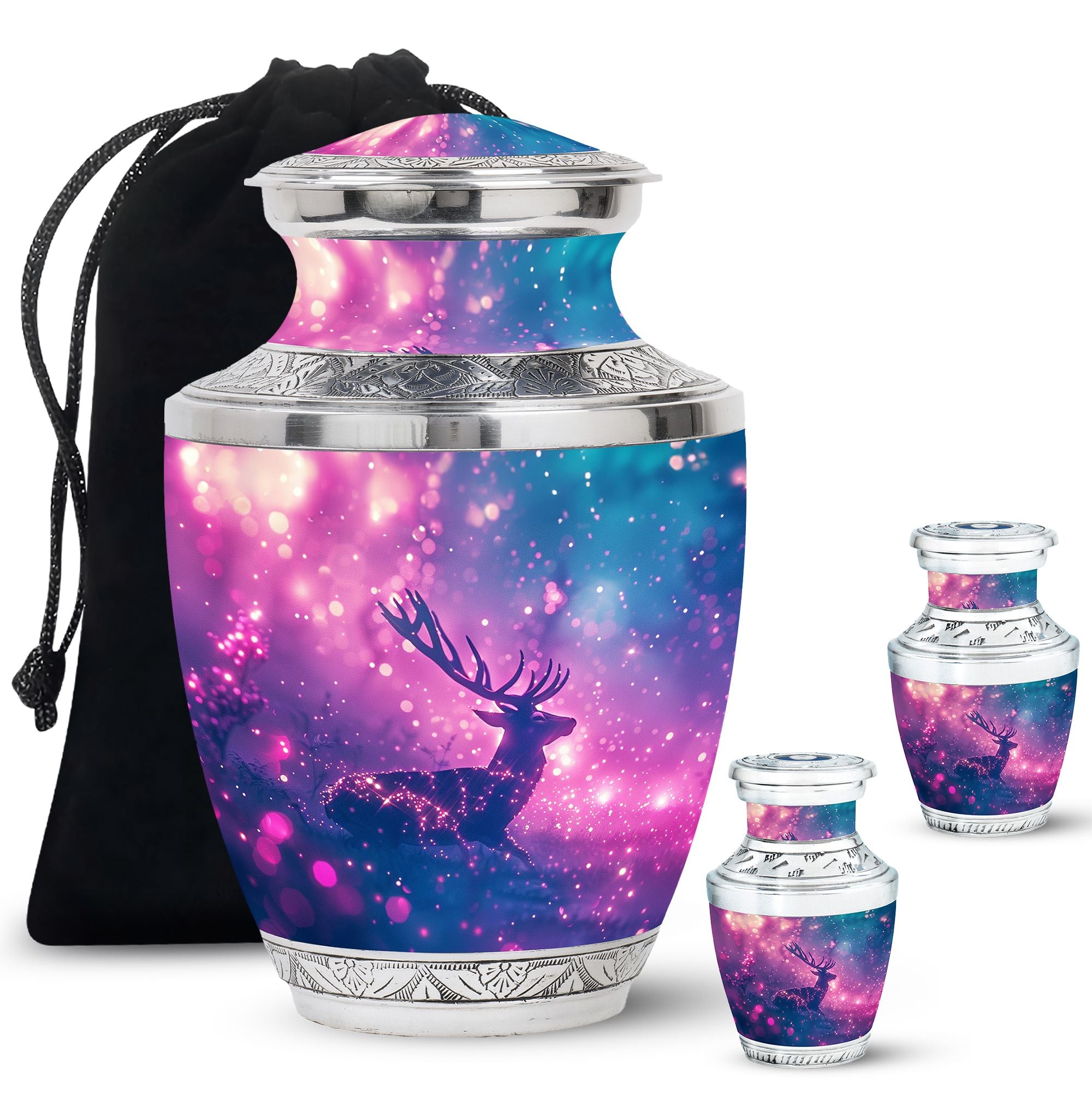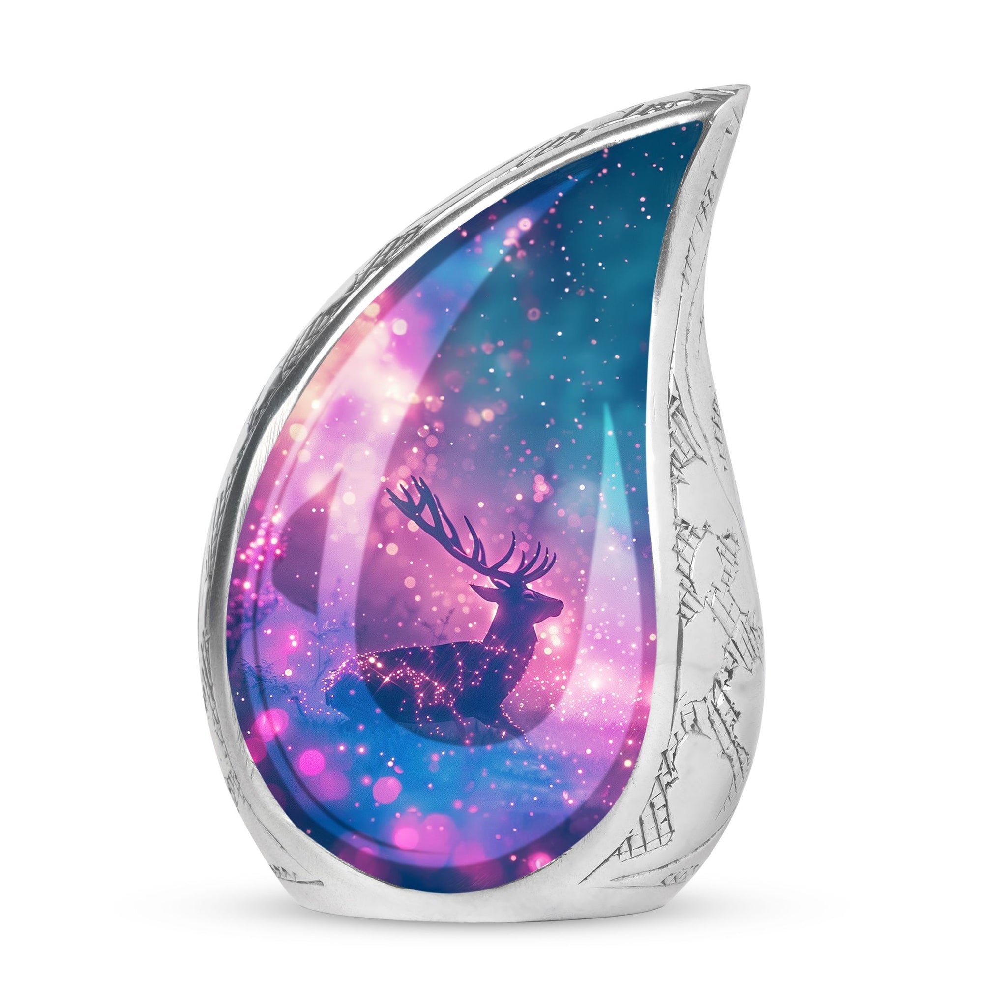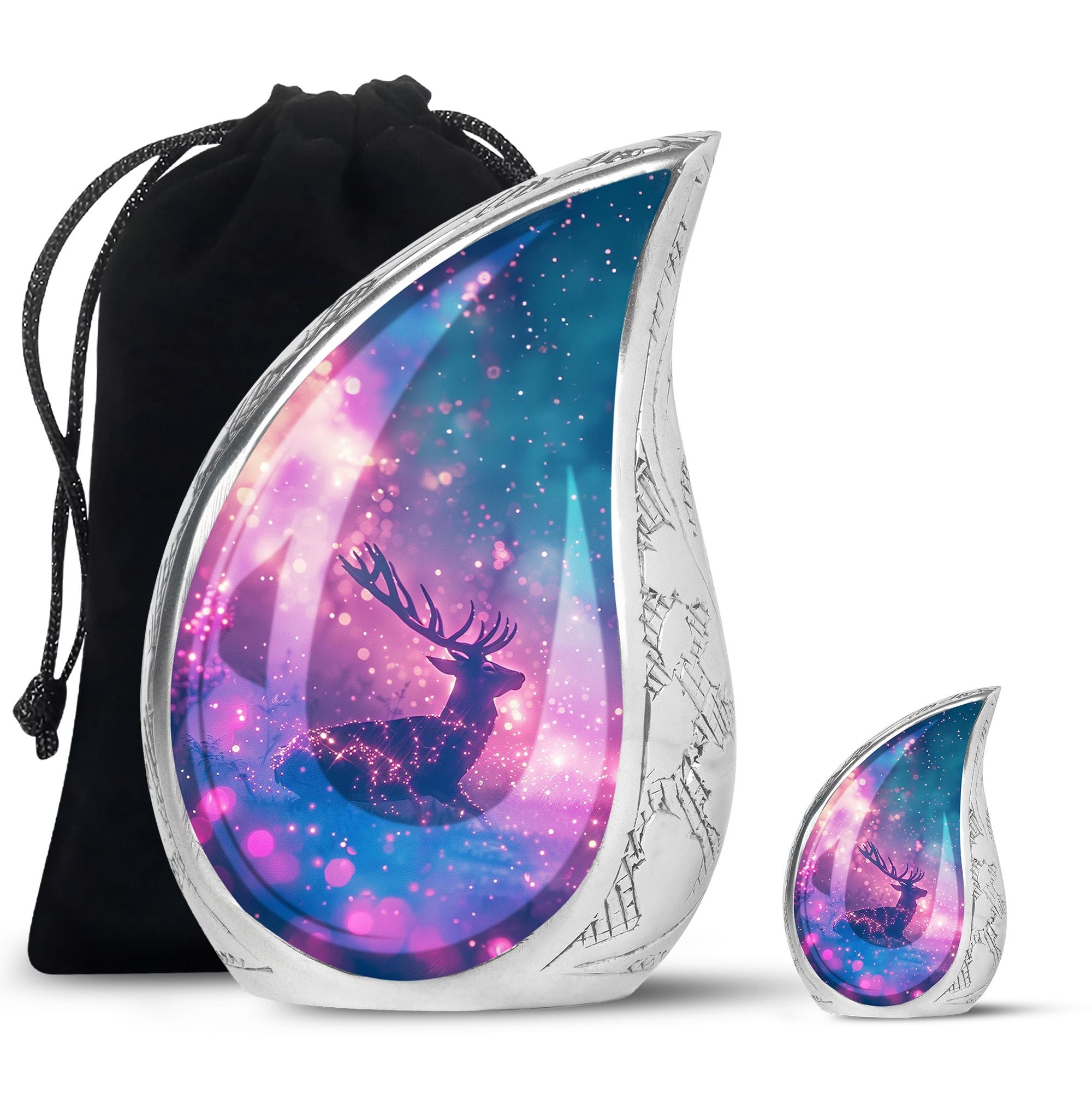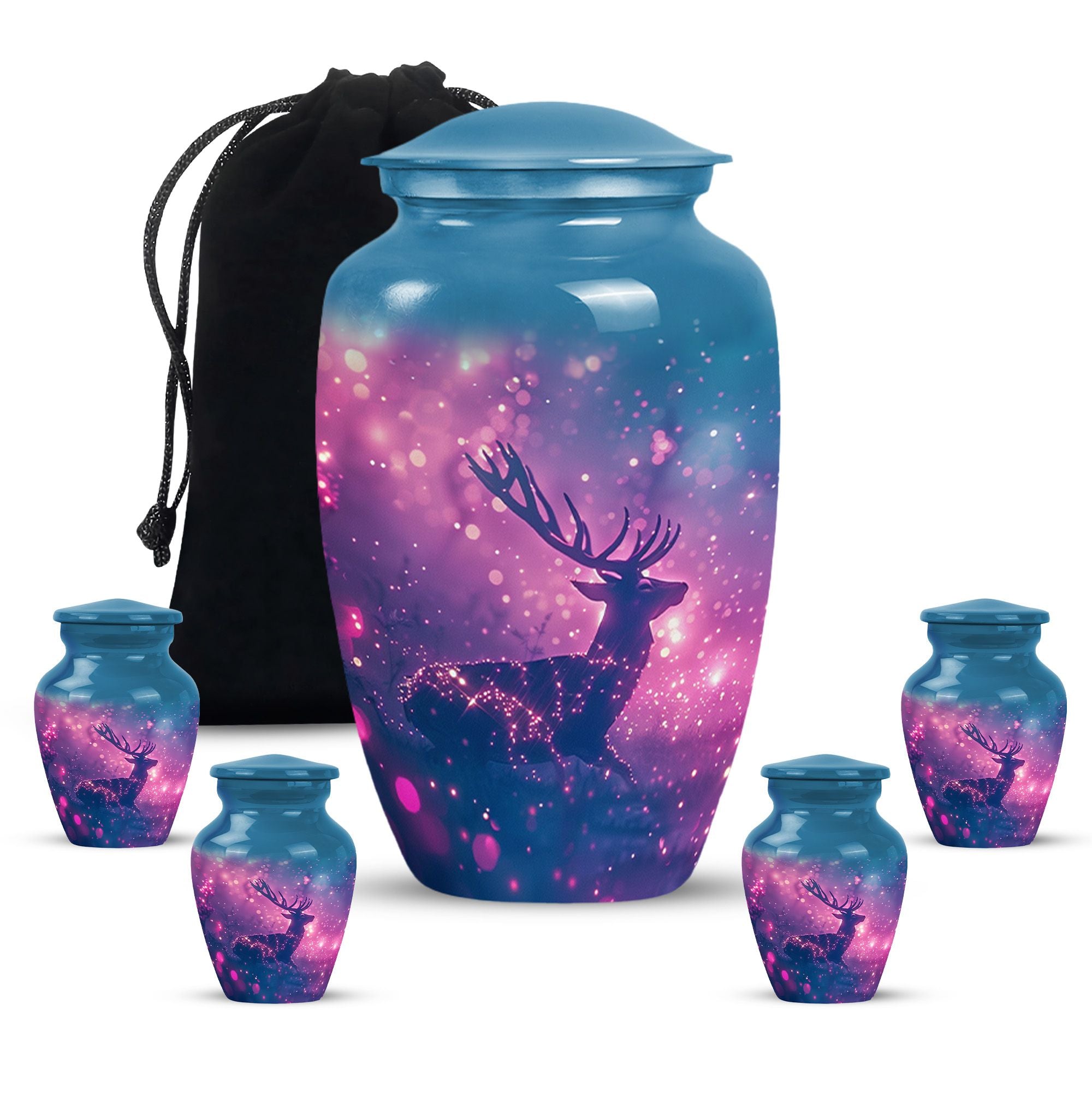 Celebrate the life and memories of your loved one with this beautifully crafted deer-themed cremation urn. Designed with compassion and care, this urn is ideal for preserving ashes in a meaningful way, offering comfort to families seeking large adult urns for human ashes. Its serene purple and blue tones evoke a sense of peace and remembrance.