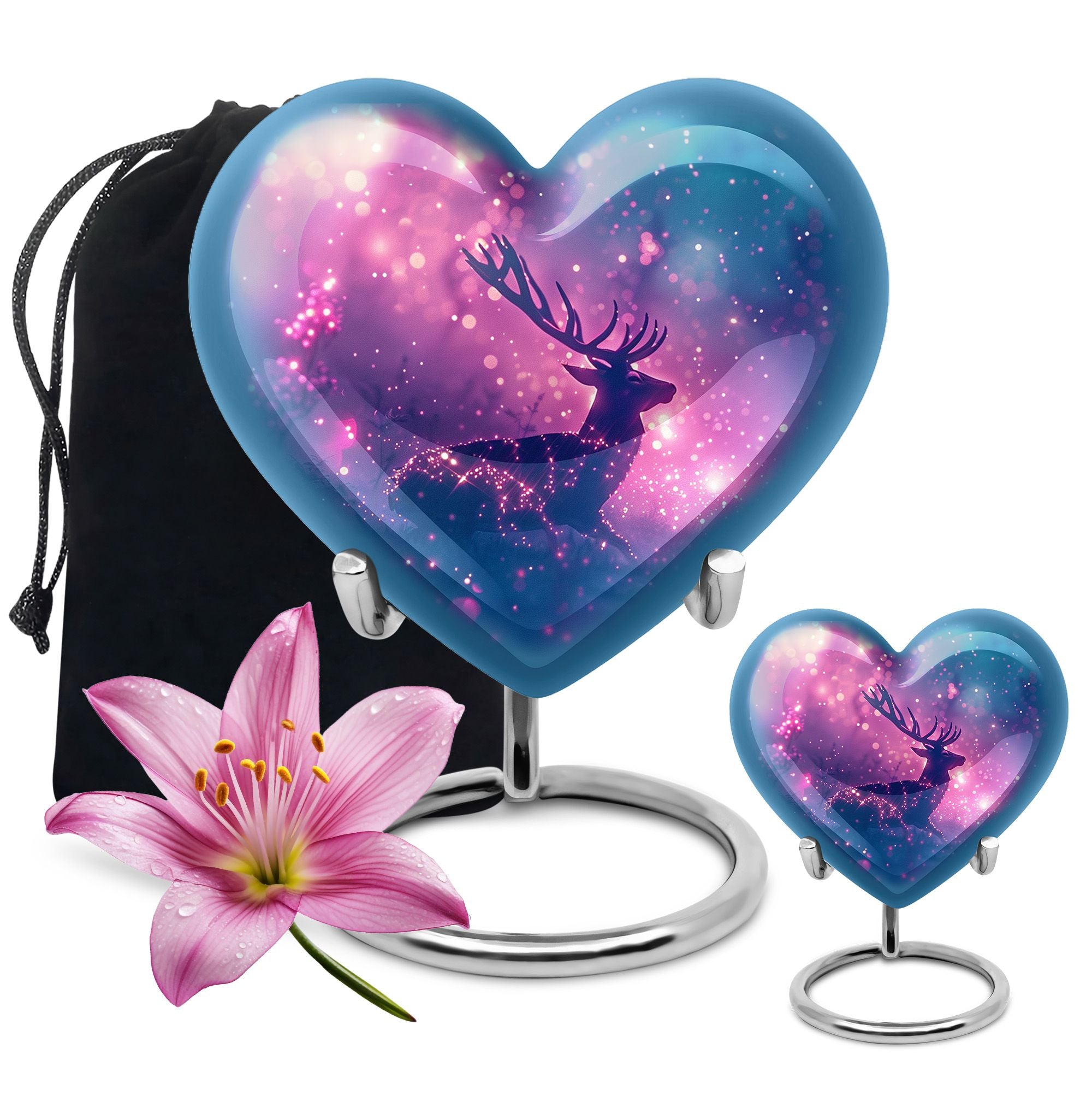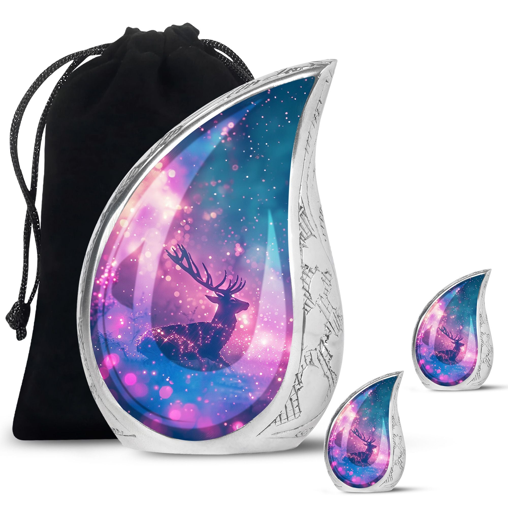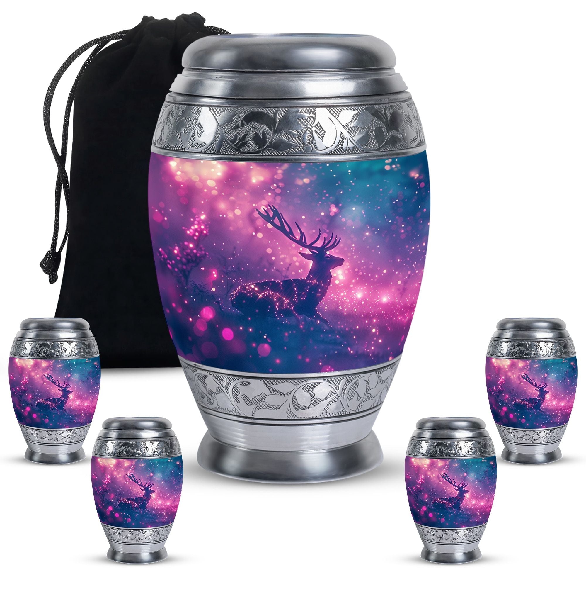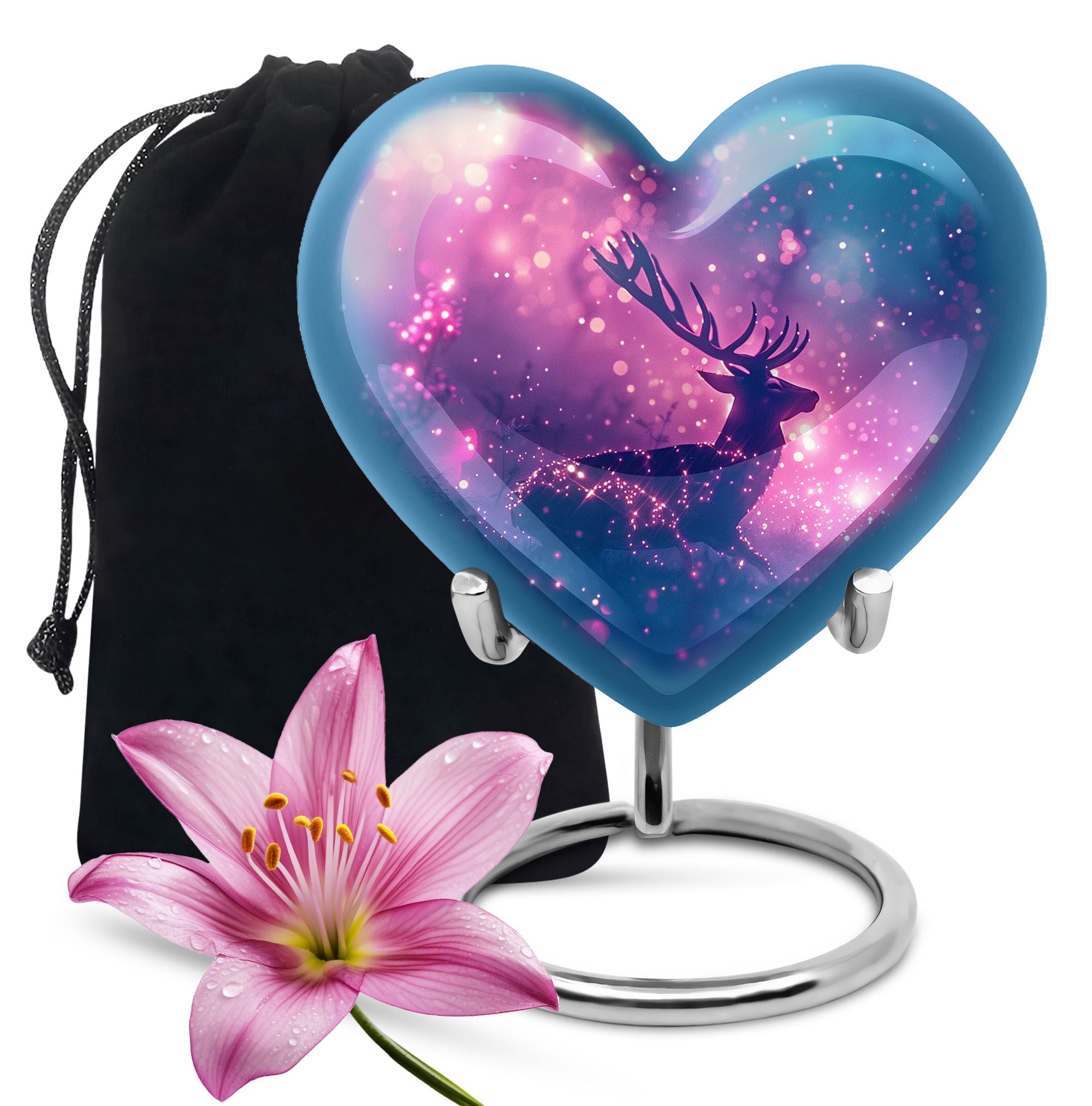 Celebrate the life and memories of your loved one with this beautifully crafted deer-themed cremation urn. Designed with compassion and care, this urn is ideal for preserving ashes in a meaningful way, offering comfort to families seeking large adult urns for human ashes. Its serene purple and blue tones evoke a sense of peace and remembrance.