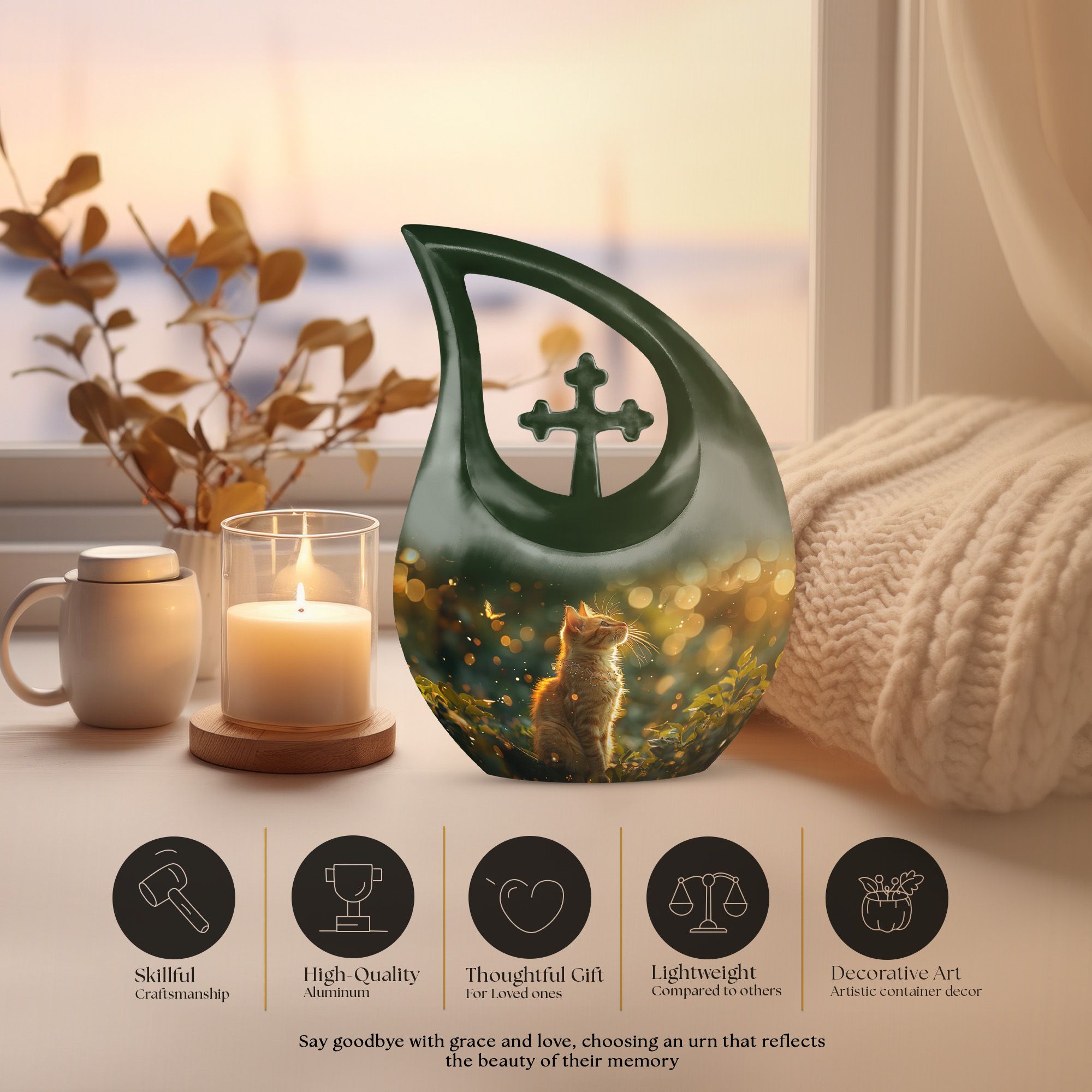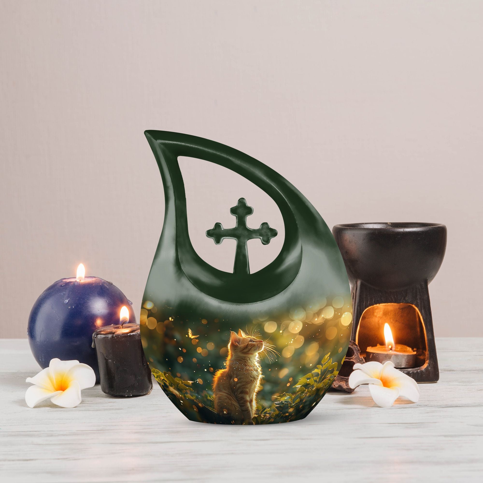 Discover an extraordinary way to immortalize your beloved ones with our Magical Twilight Urn. This large, 10-inch, aluminum urn accommodates up to 200 cubic inches of ashes, making it suitable for adults. The captivating theme of 'Magical Twilight' is embodied in the enchanting Cross Drop pattern, which renders a unique, unforgettable beauty to the urn. The urn has a comfortable weight of 3.3 pounds, a dimension of 10 inches in height, and can be personalized with engraved names for an added touch of intimacy. It comes with a velvet pouch that dignifiedly confines the treasured ashes. Ideal for cremation solutions, you may refer to this art piece as 'Ashes Boxes For Adults,' or 'Personal Urns For Cremation Solutions', according to your preference. Our Magical Twilight Urn speaks volumes about your cherished memories, making it one of the desirable 'memorial urns' sought after by consumers. Whether it's 'Unique Urns For Mom', 'Personalized Urns For Dad', or 'Cremation Boxes For Adults,' this urn meets the varied needs.