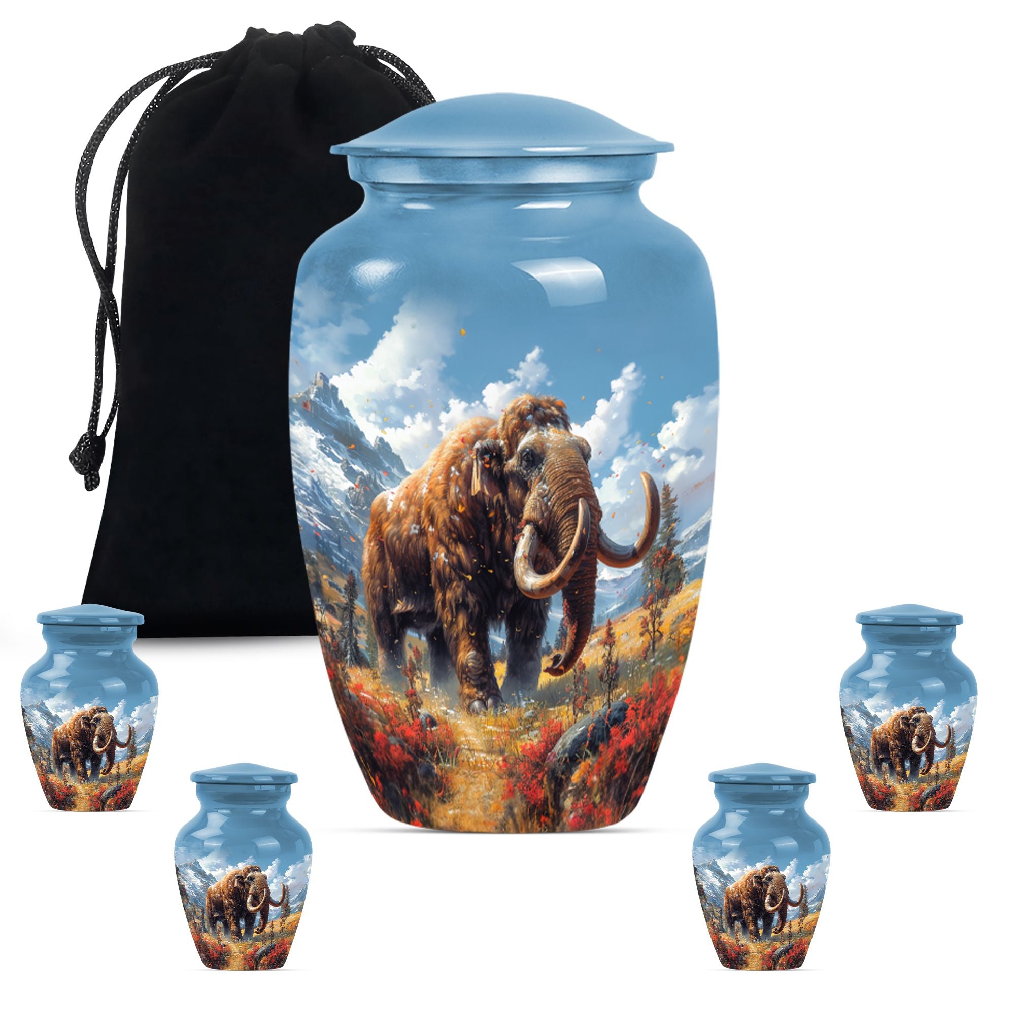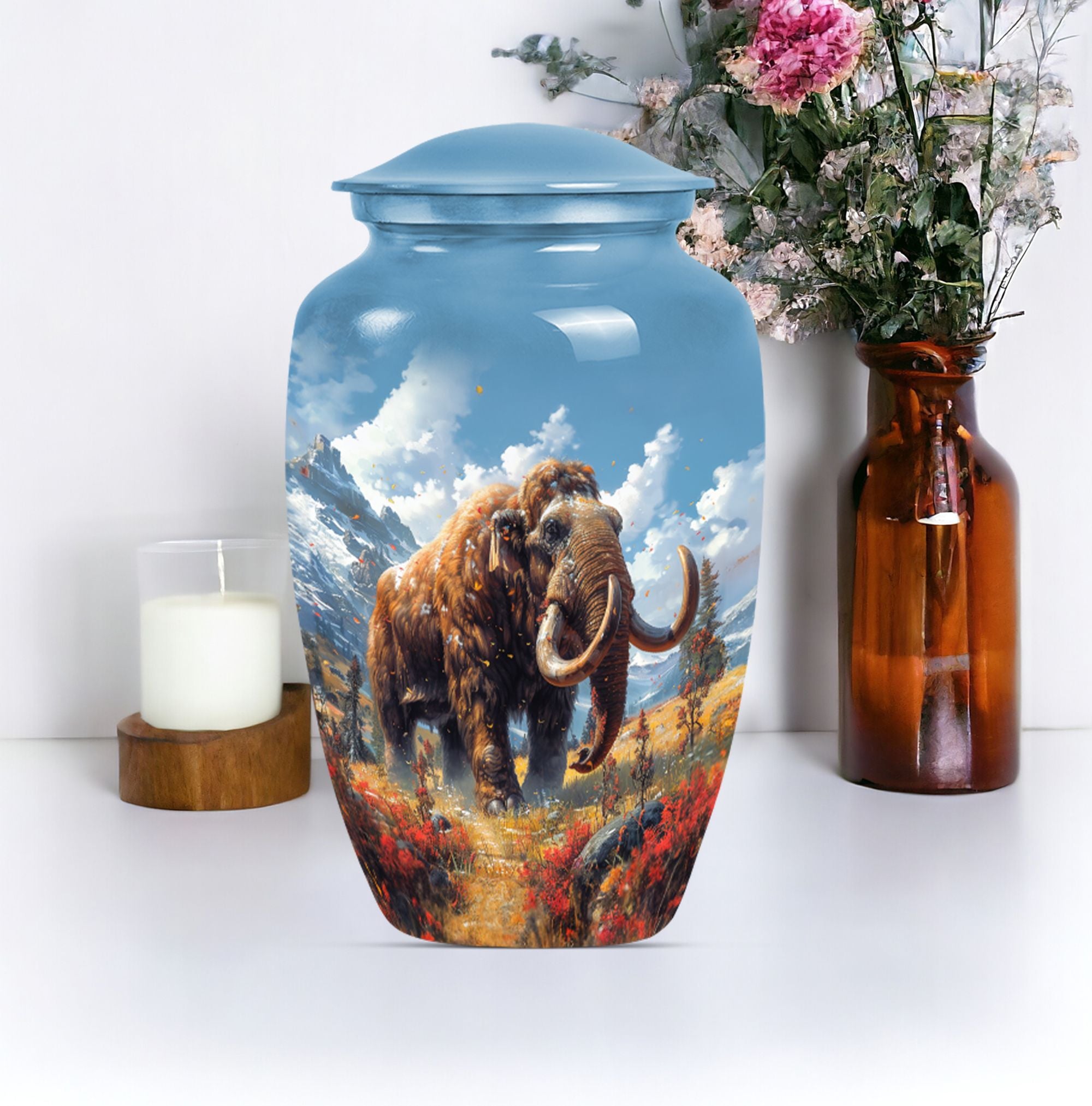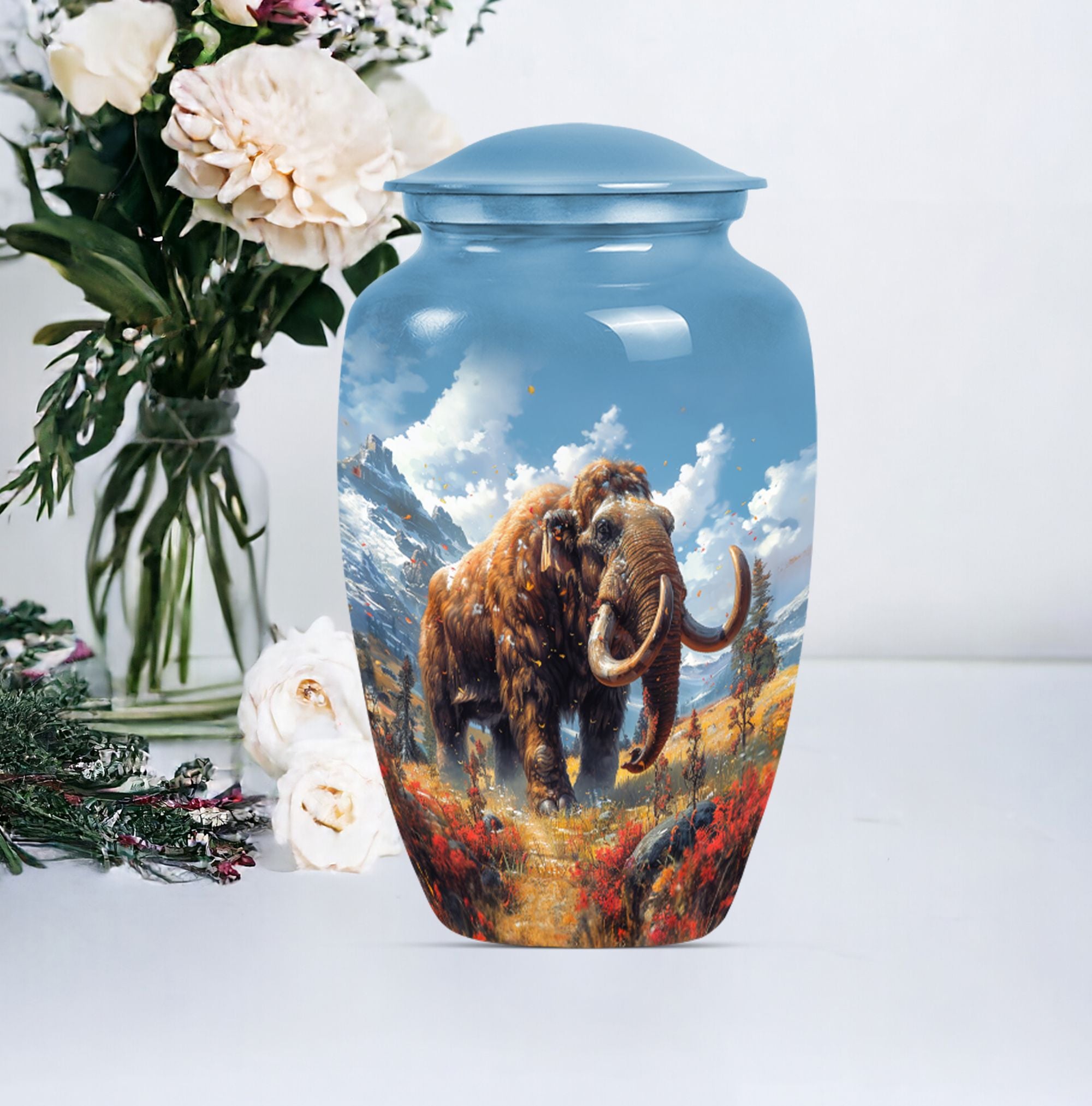 Presenting the Mammoth Memorial Funeral Urn, a sizeable masterpiece, standing 10 inches tall. Not only is this large urn a touching tribute to your loved ones, but it also serves as a prominent accent for your decor. This urn captures the solemnity and importance of memorial ceremonies, particularly for senior citizens. Fashioned from resilient Aluminium, this mammoth urn weighs 3.3 pounds and can accommodate 200 cubic inches of contents. It comes with a soft velvet pouch, providing a secured containment for your precious ashes. To create a truly personal touch, the urn offers a customization option where you can engrave the names of your loved ones. With a buttery theme, this urn emanates a symbolic representation of transformation, hope, and life. And with keywords like 'memorial urns,' 'funeral urns for burial,' 'human ash urn,' and 'urns for human ashes,' locating it online will be as easy as placing it on your mantel. Your search for a 'mom cremation urn' ends here with this classic token of remembrance.