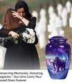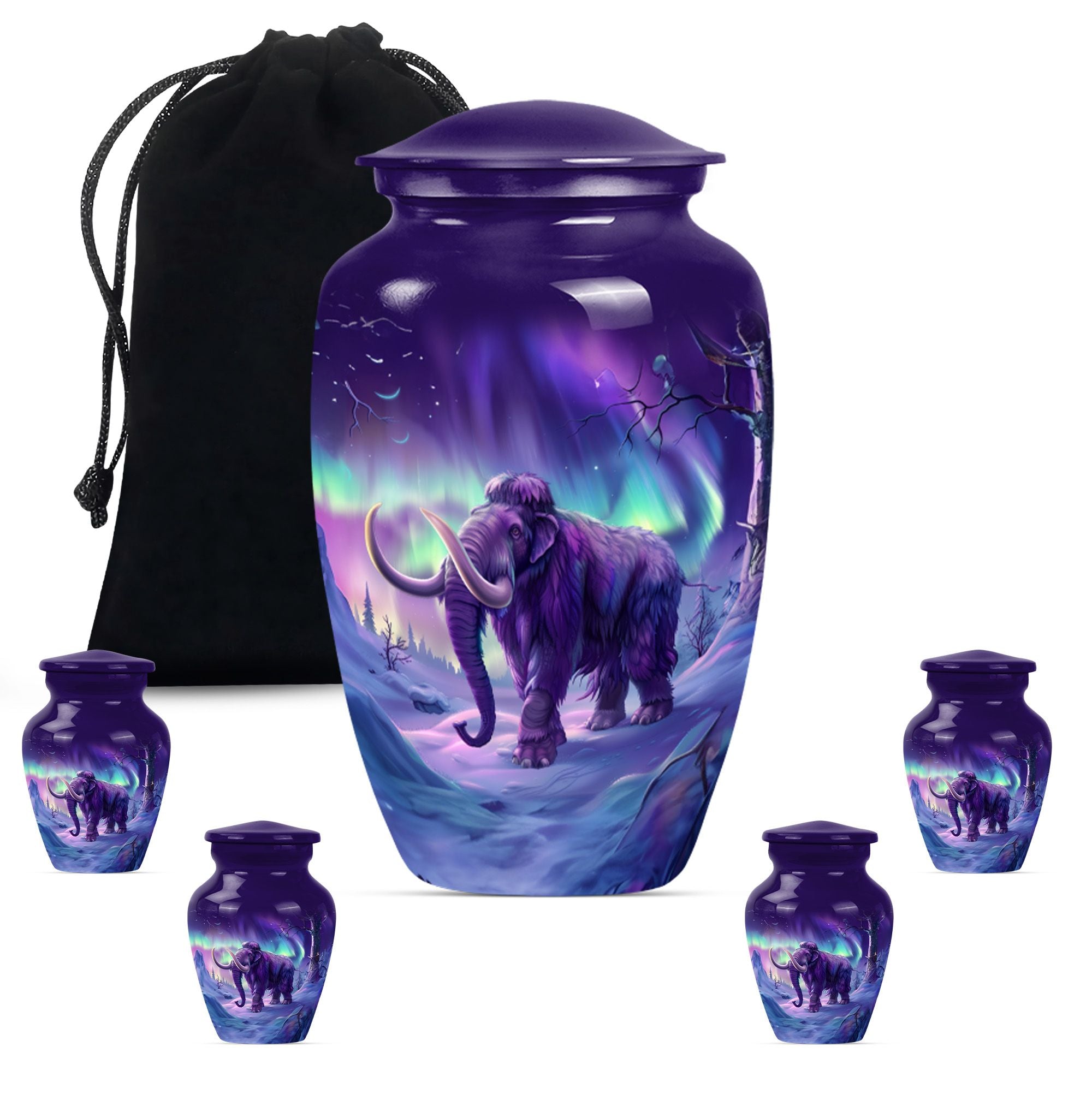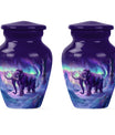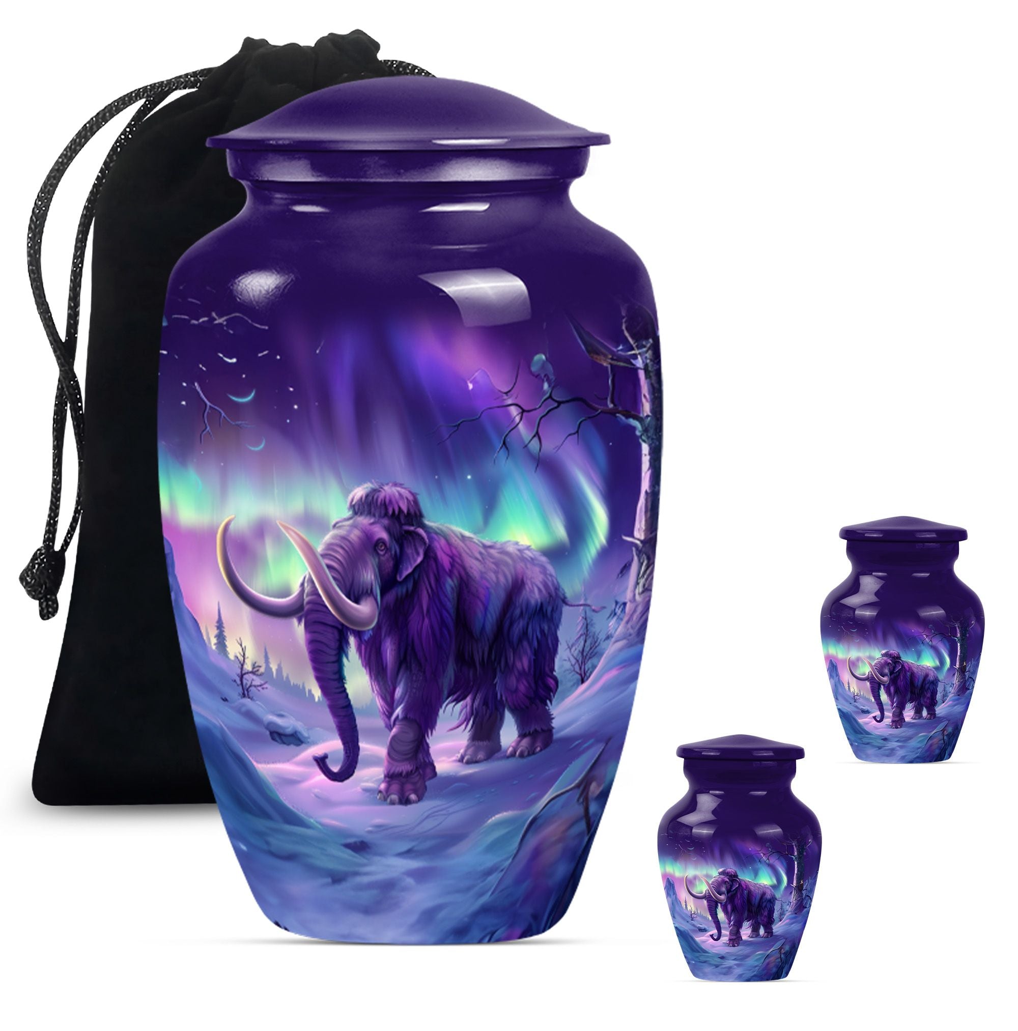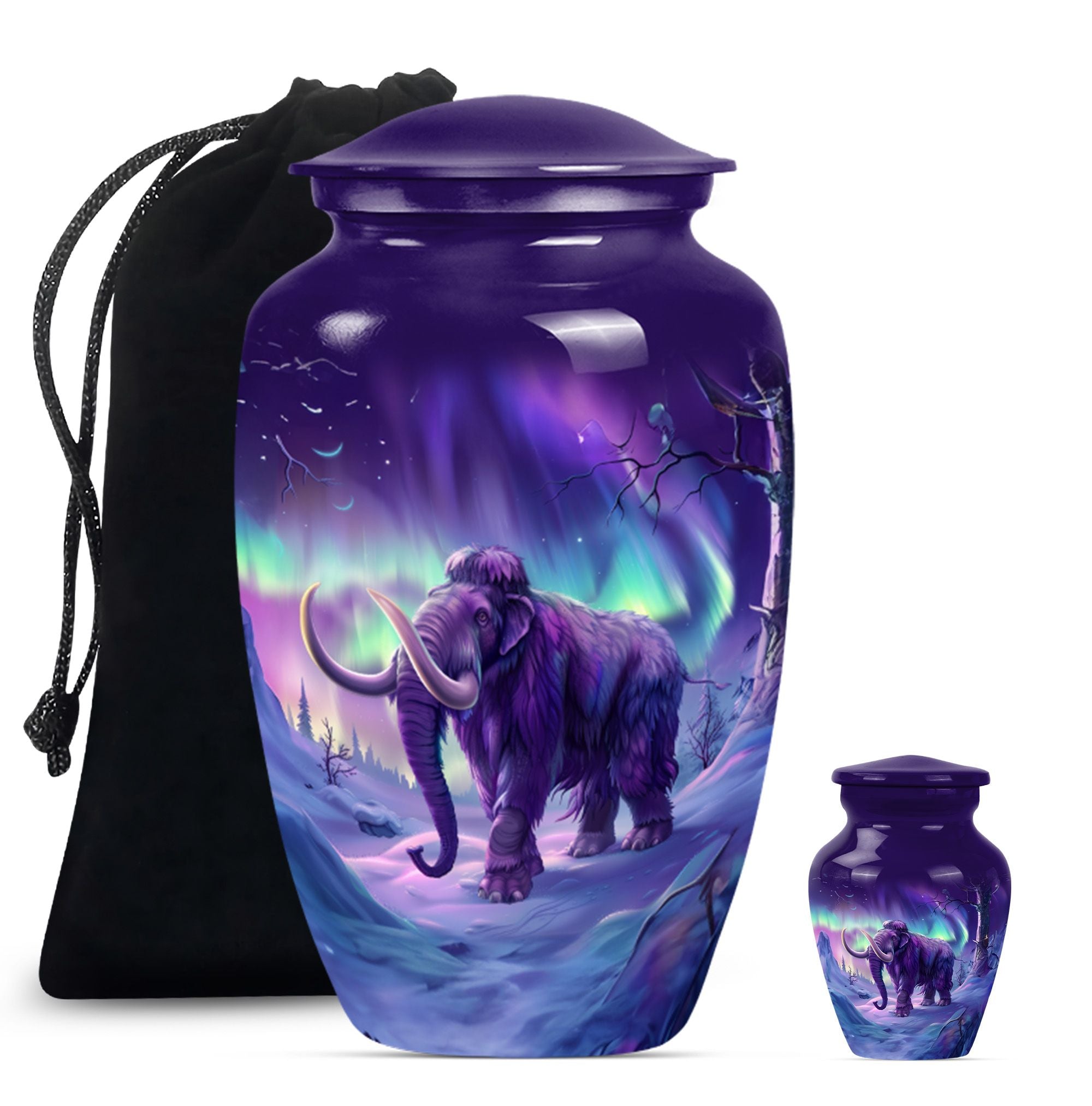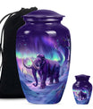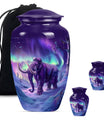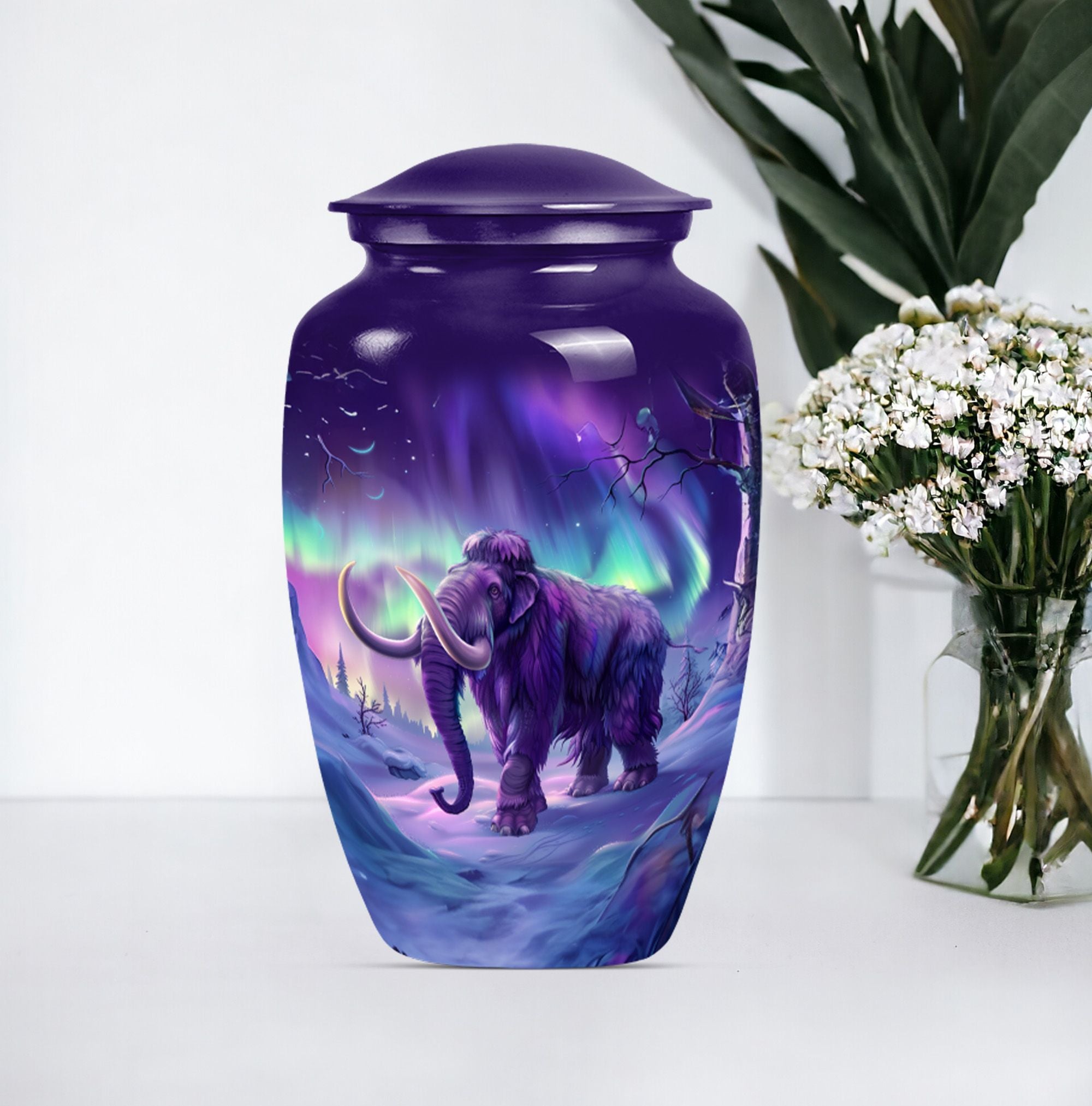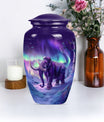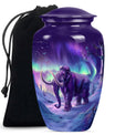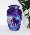Achieve a lasting tribute to your lost loved one with our mesmerizing 10-inch Mammoth Cremation Urn. Beautifully orchestrated in aluminium, it carries a capacity of 200 cubic inches and delivers an enduring facade that weighs a reasonable 3.3 pounds. The urn features a captivating 'Wolf Howling' theme, adding a distinctive touch to our large-sized urn category. With our personalization option, you can engrave names to make the memorial symbolic and more heartfelt. The urn package also includes a velvet pouch for discreet containment and respectful disposal of ashes. Ideal for burial ceremonies, it also serves as a modern and substantial addition to your home. Bypass the trite urns; choose our Mammoth urn which is a remarkable and unique choice for memorial urns. For those searching for 'urn human humans', 'Aluminium urns', 'adult female ashes urn', and 'modern urns', this resonates perfectly with your needs. Please note, the design is based on the 'Classic Urn', omitting nothing short of elegance and mastery.