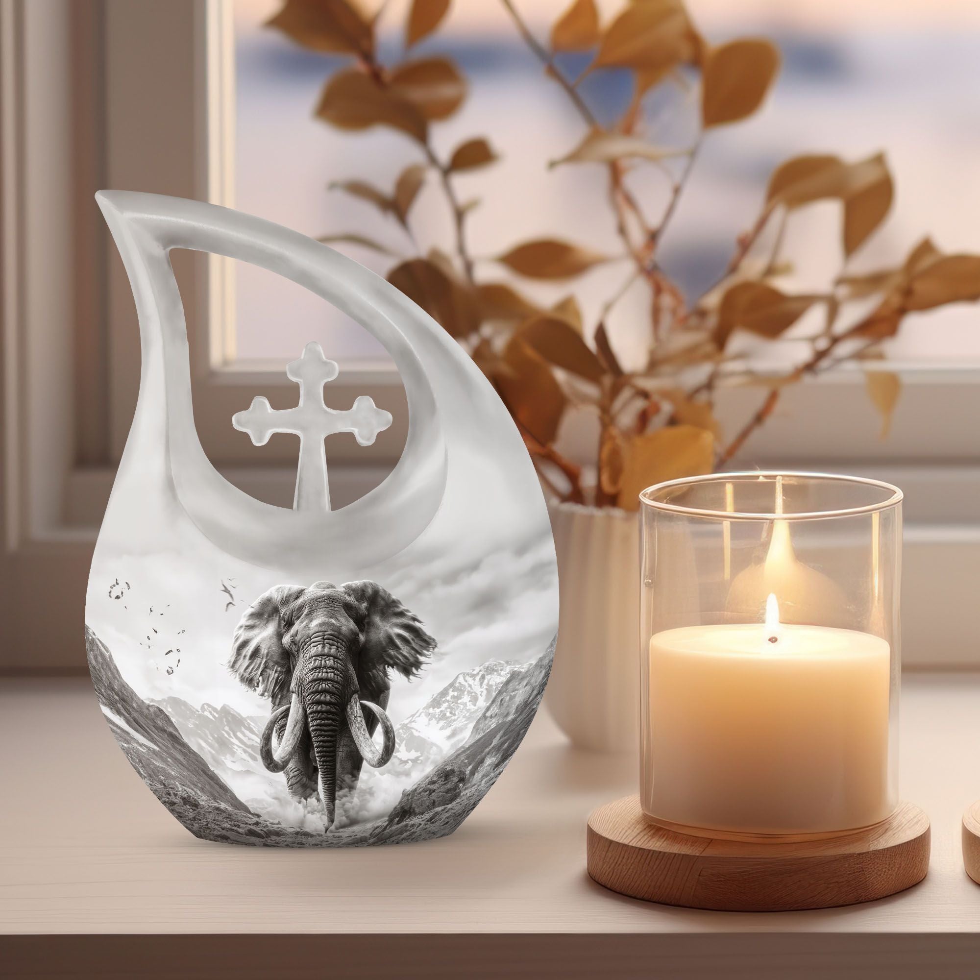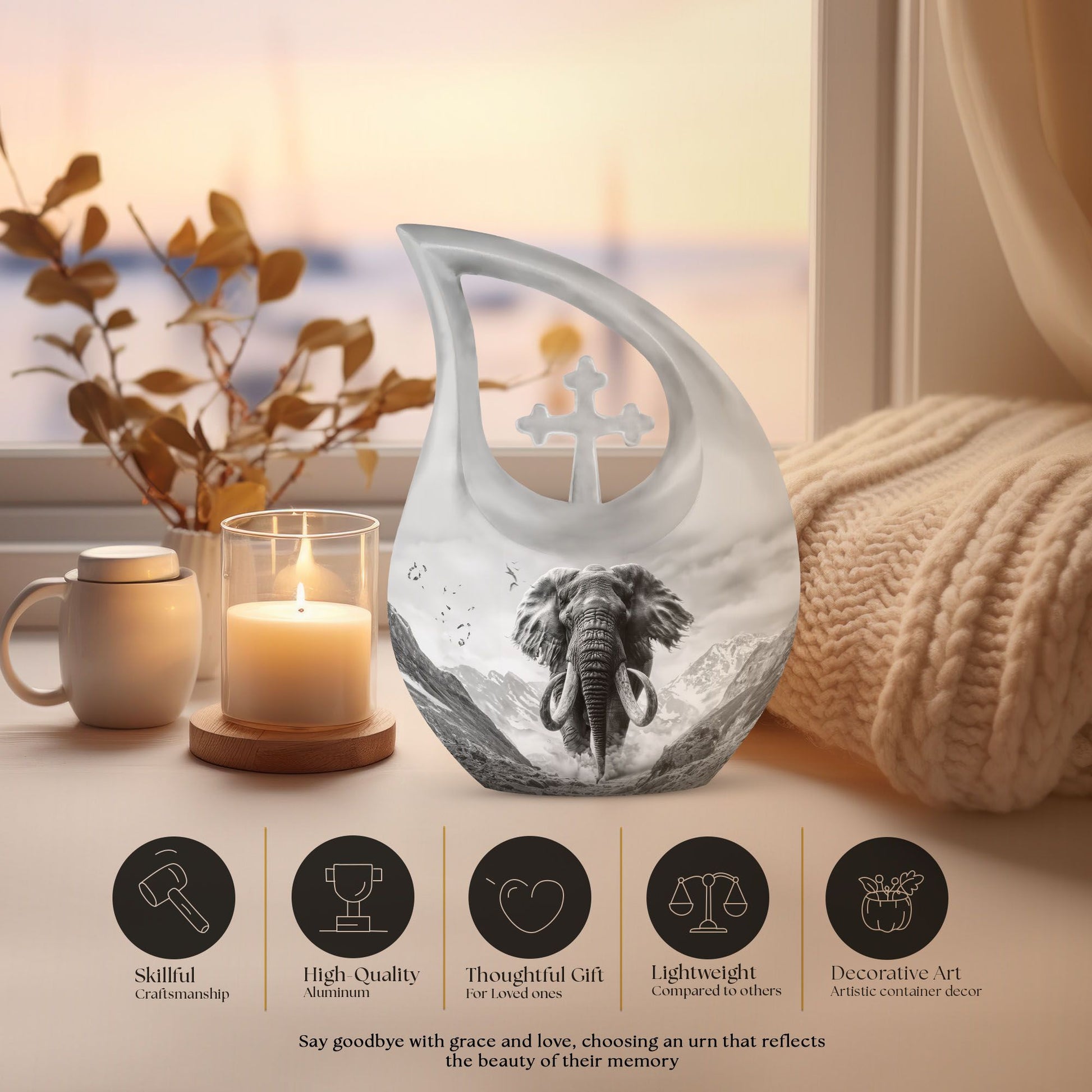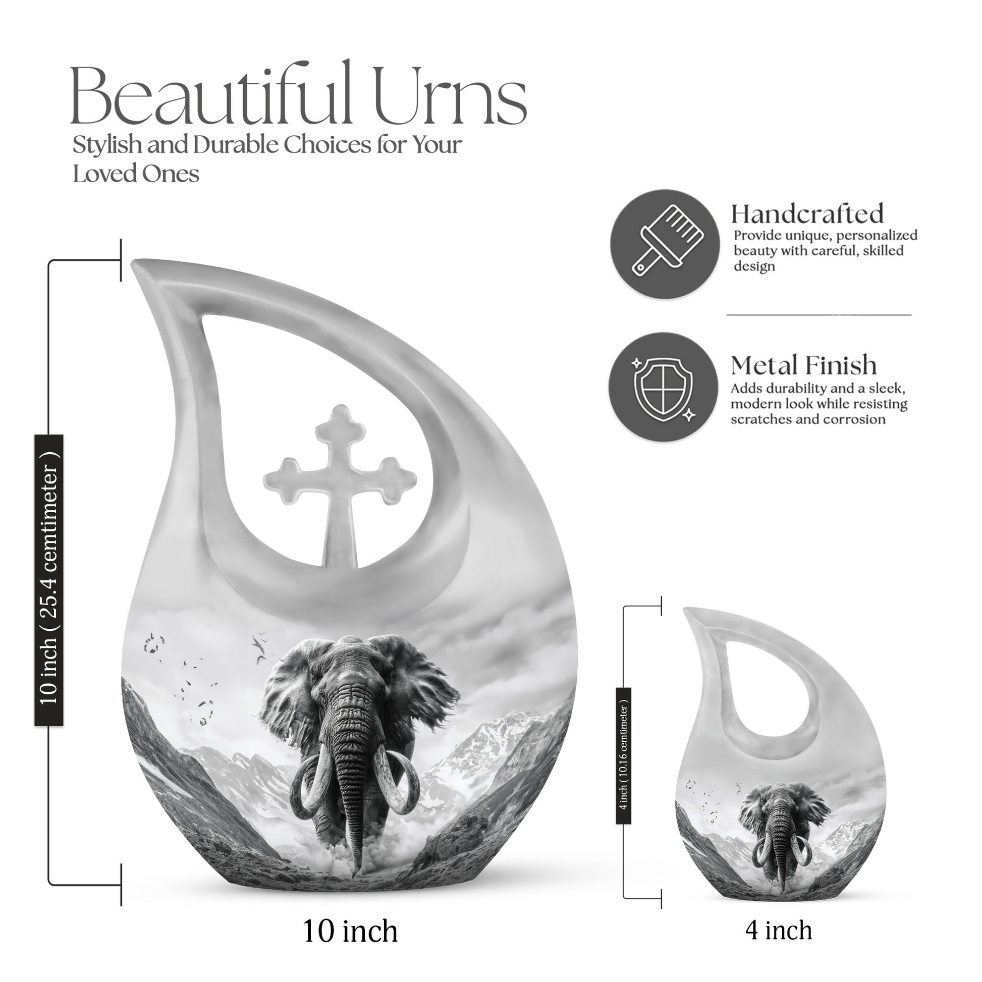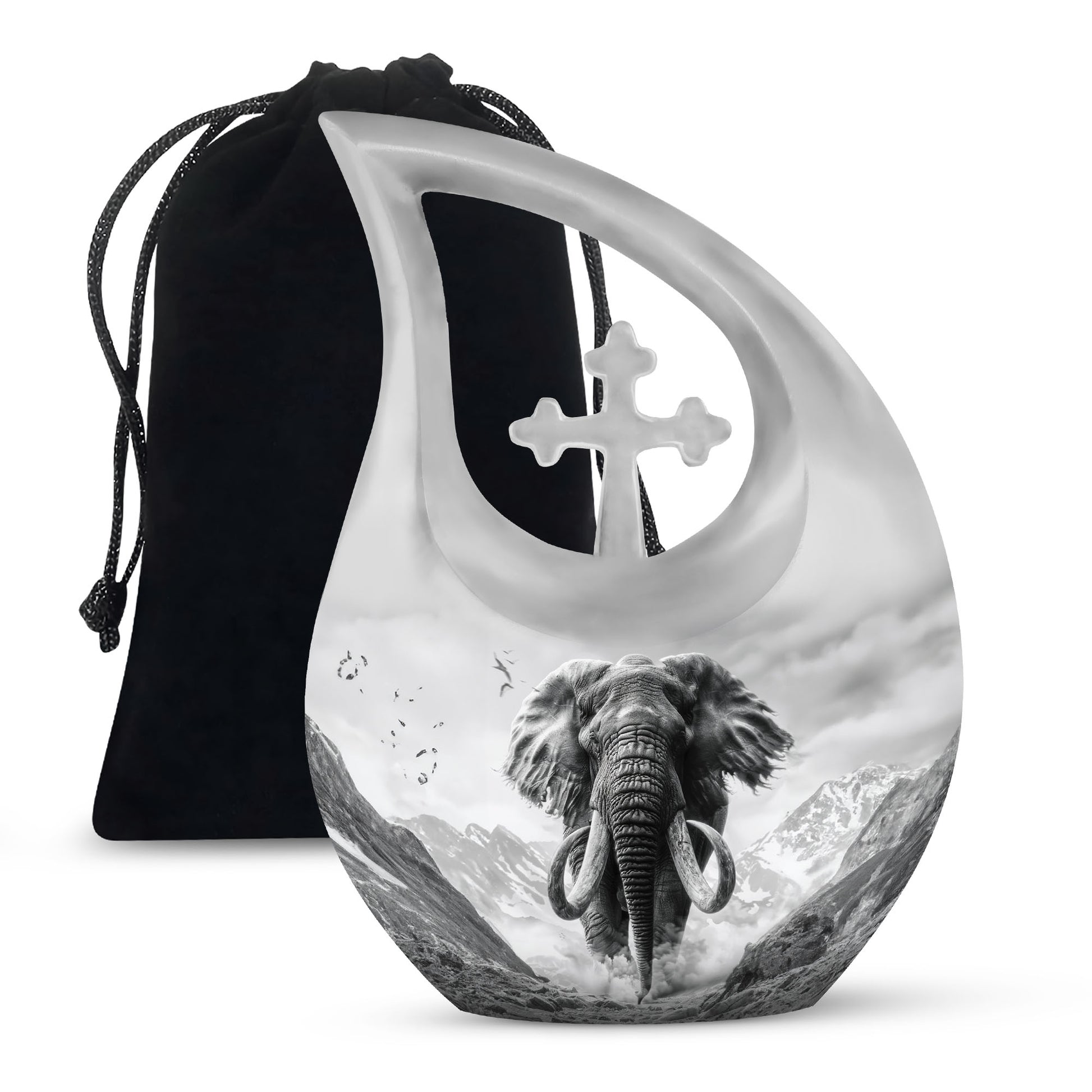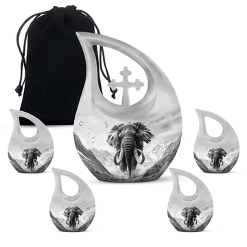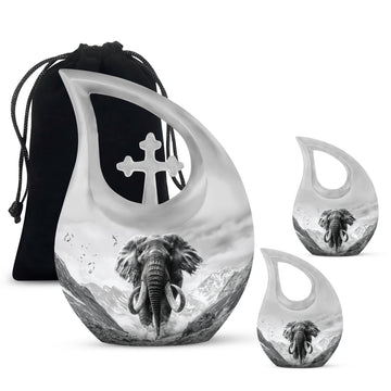 Embrace a respectful means to memorialize your loved ones with this notable 10-inch Mamoth Urn, a testament of love and honor. This Large Urn, weighing only 3.3 pounds, offers an ample capacity of 200 cubic inches, making it an excellent choice for preserving the memory of your dearly departed Mom. This urn portrays richness and strength, crafted from robust aluminium finalizing a great balance between luster and durability. Its Cross Drop theme amidst a Mamoth ambiance resonates solemnity and peace. To further enhance its value, it offers a personalization feature allowing engraved names, making this urn truly special. The urn comes with an elegant velvet pouch for secure and dignified containment of ashes. Thinking of a double Urn, Butterfly urns for ashes, or decorative urns for ashes? Make this your choice. Also, consider transforming the ashes into keepsakes, another means to keep the memory alive. This urn, not just a resting place for ashes, is a treasure of memories.