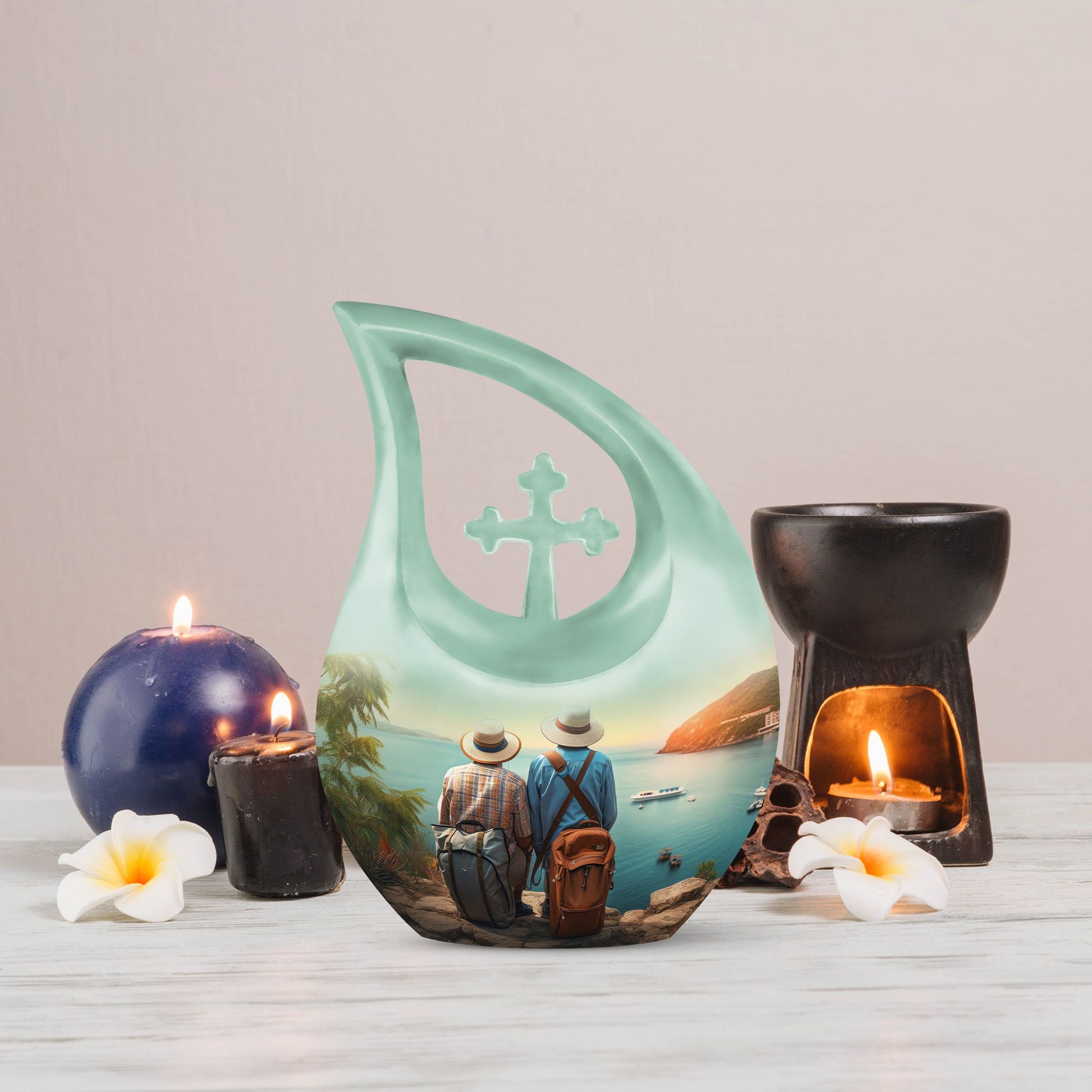 The Two Man Scenic Urn is a heartfelt tribute to the everlasting bond between father and son — a symbol of love, strength, and cherished memories. Created for those seeking meaningful urns adult male dad, this stunning piece reflects dignity, warmth, and reverence in every detail. It serves as a lasting reminder of the life and legacy of your loved one, bringing peace and beauty to your memorial space.