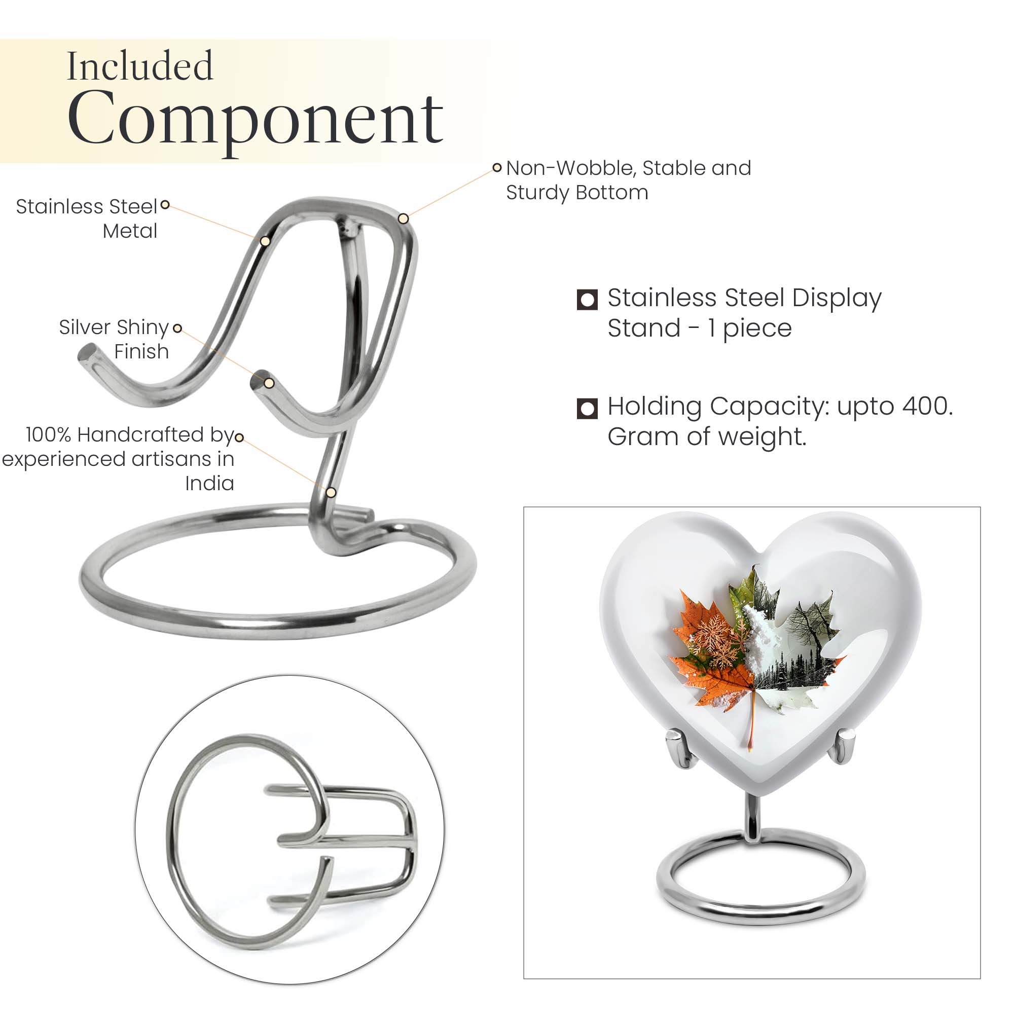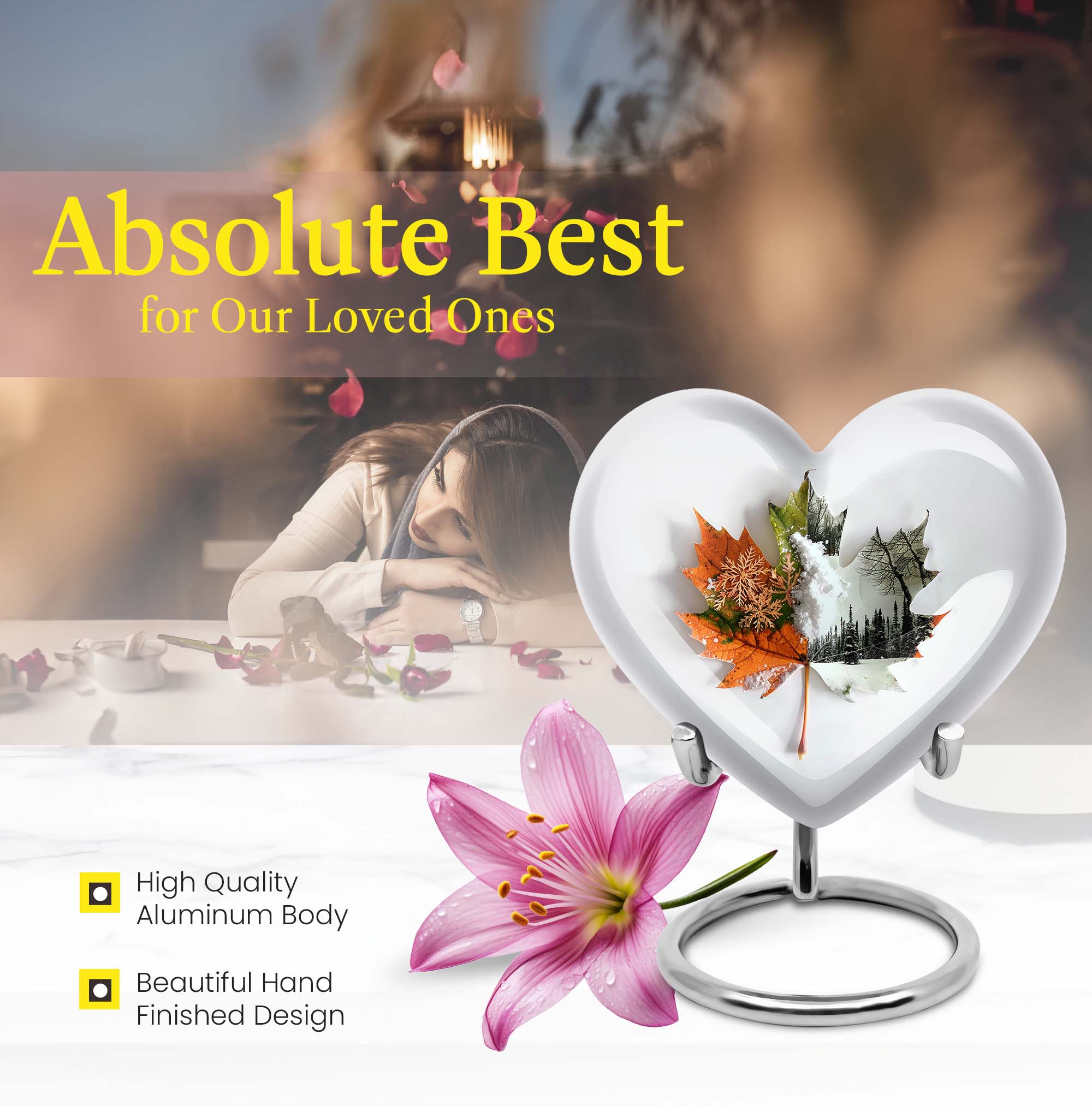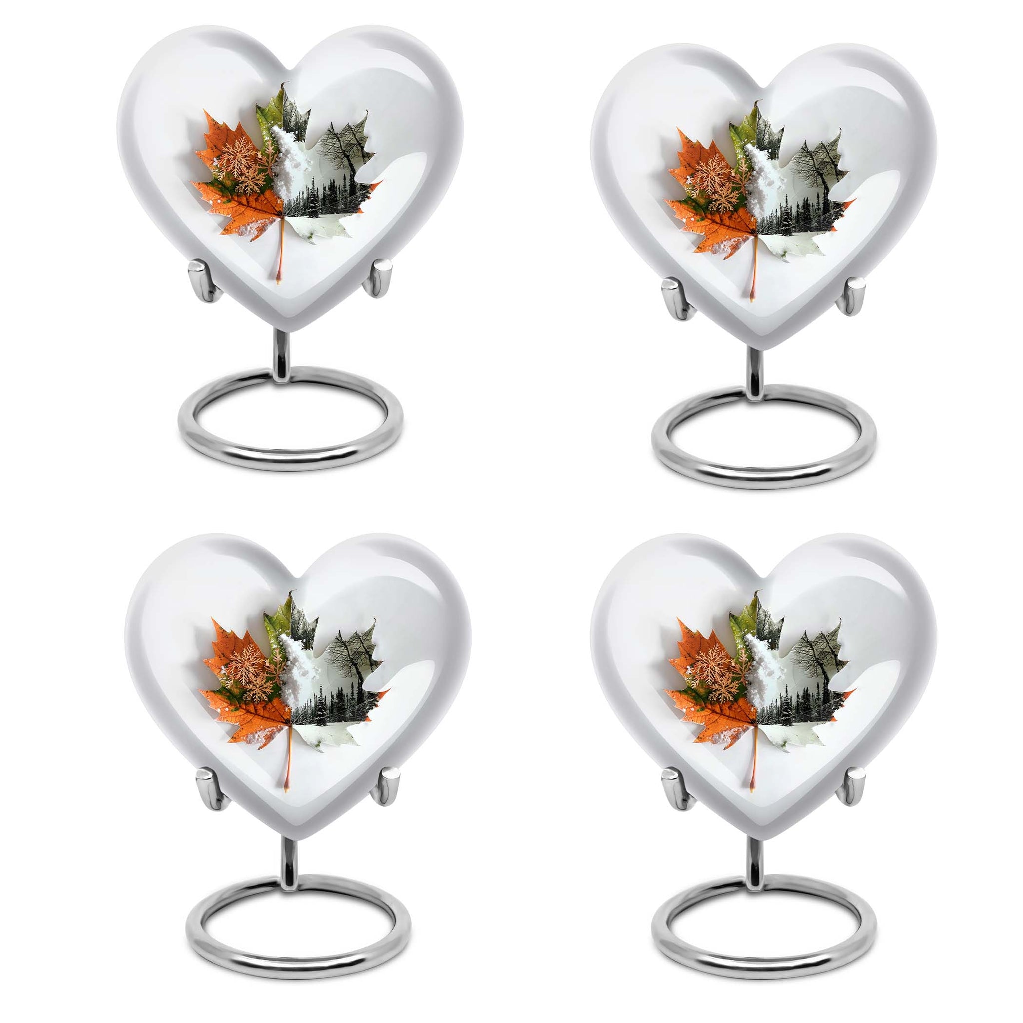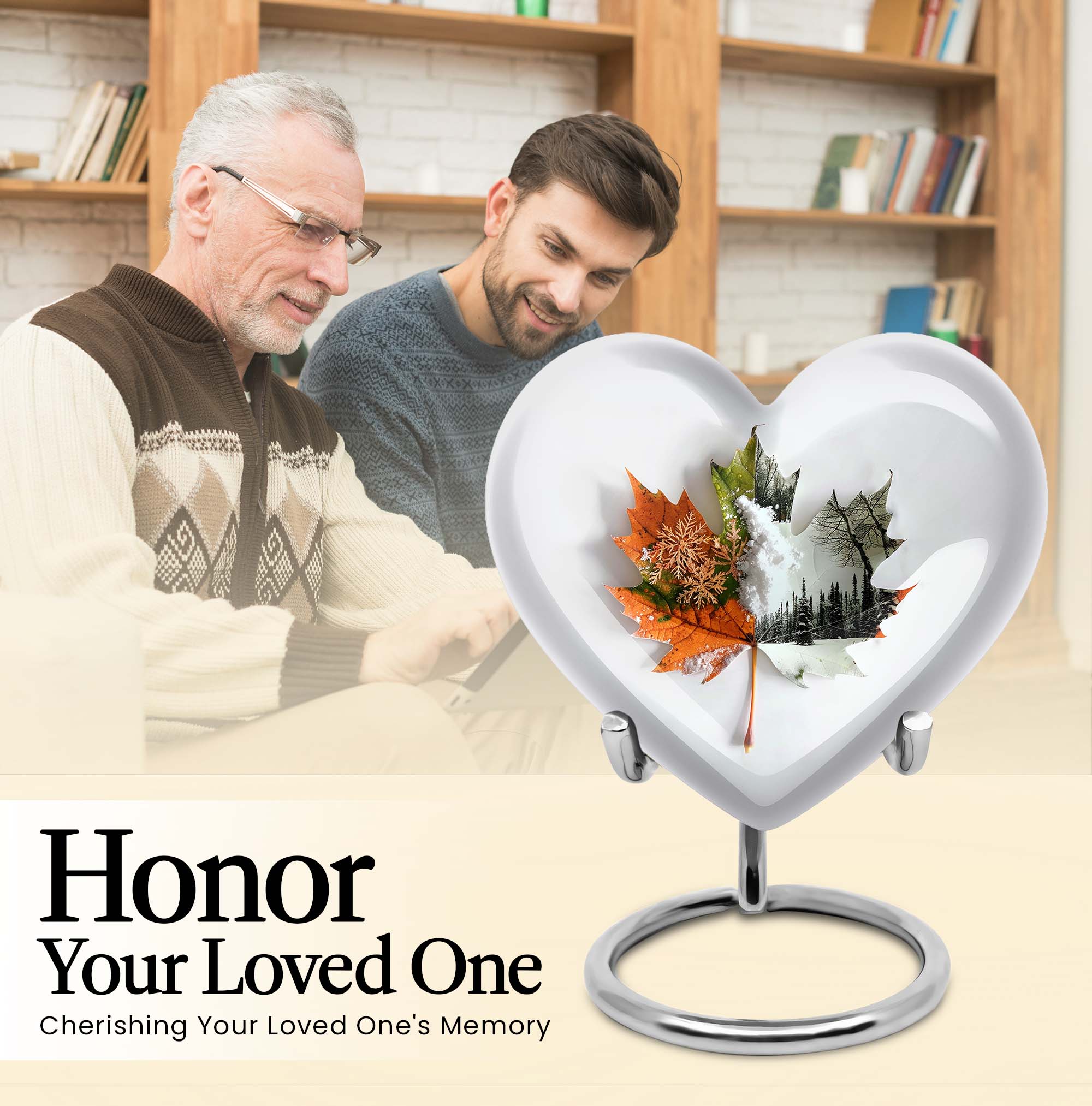 Commemorate your departed loved ones with this elegant mapple leaf urn fashioned from premium, durable aluminium. Measuring at 10 inches in height and weighing 3.3 pounds, this large burial urn promises the utmost dignity in memorial ceremonies. Its capacity of 200 cubic inches ensures enough space to honor the ashes of an adult. Taken a step further, this cremation urn comes with a personalization feature that allows engraving of the names of the departed. To match its sentimental value is its florid theme, beautifully rendered to pay the best tribute. Its distinct Heart Urn design sets it apart while offering a comforting visualization of love and remembrance. Your purchase also includes a velvet pouch for the containment of ashes, ensuring that the final resting place of your loved one echoes warmth, respect, and lifetime recollection. This urn can also be viewed under alternate terms like 'Cremation dad urn', 'urn for human ash women', 'urns for humans', and 'funeral urns for human ashes adult'. Make this heart urn a special memorial for your cherished loved one.