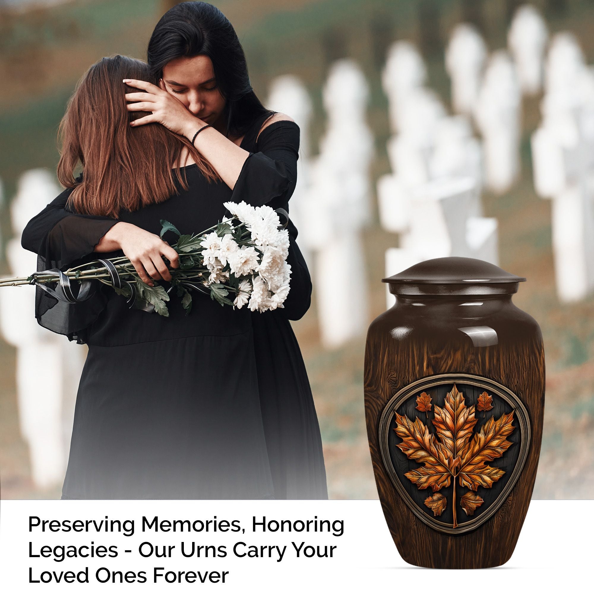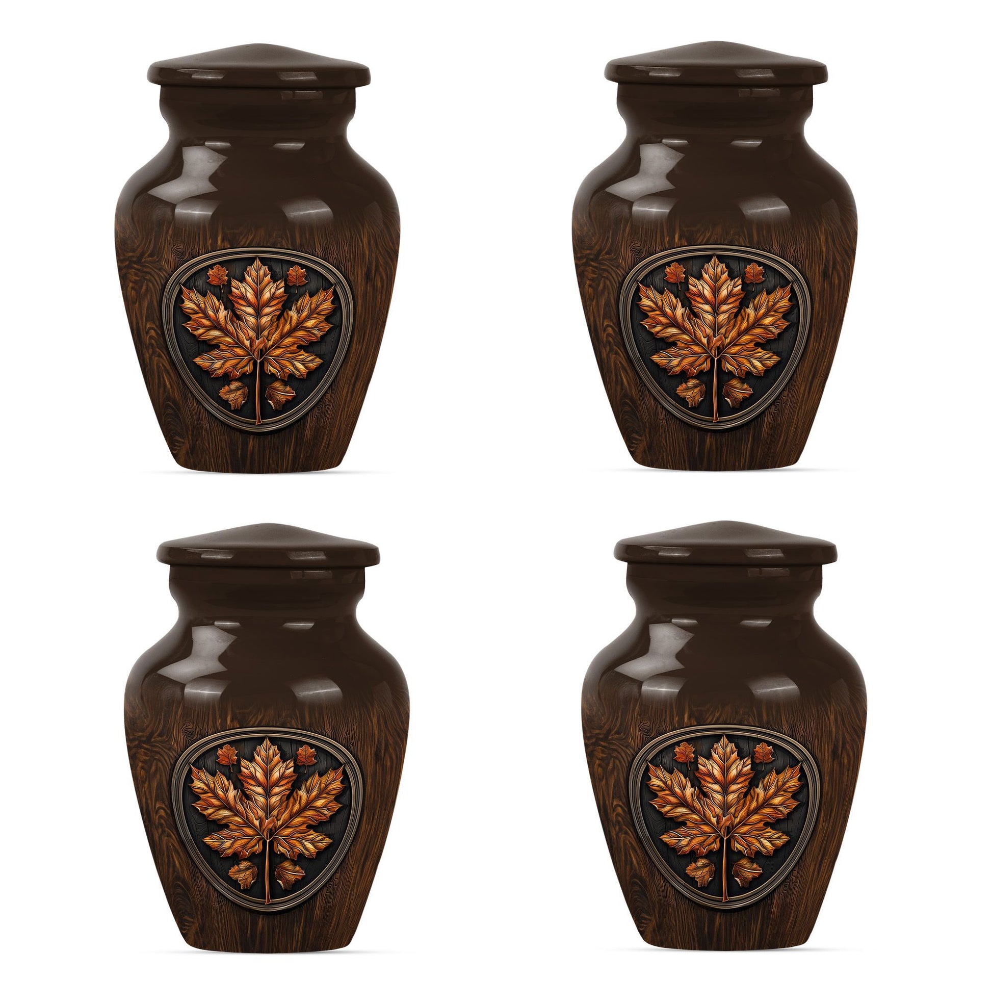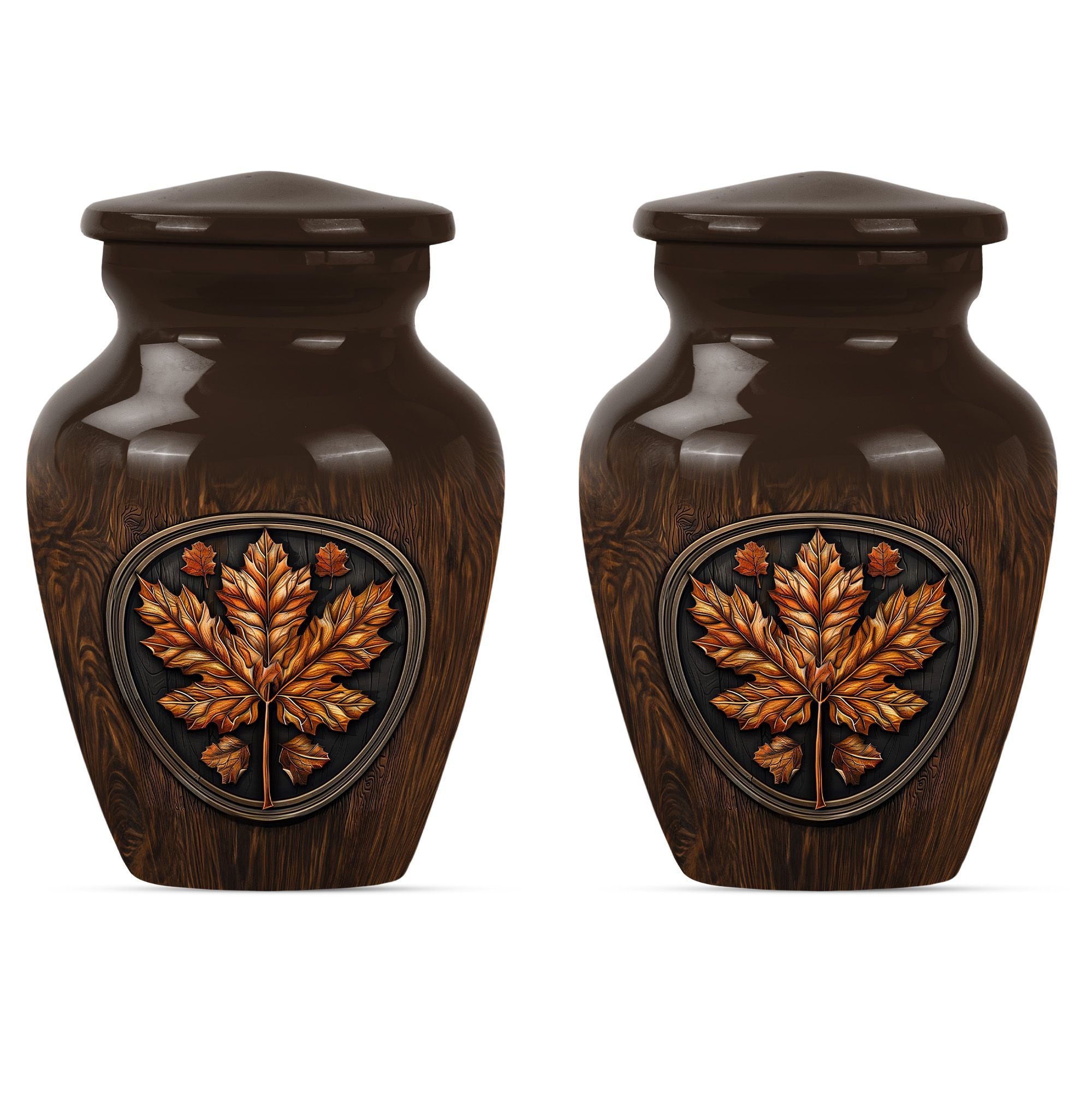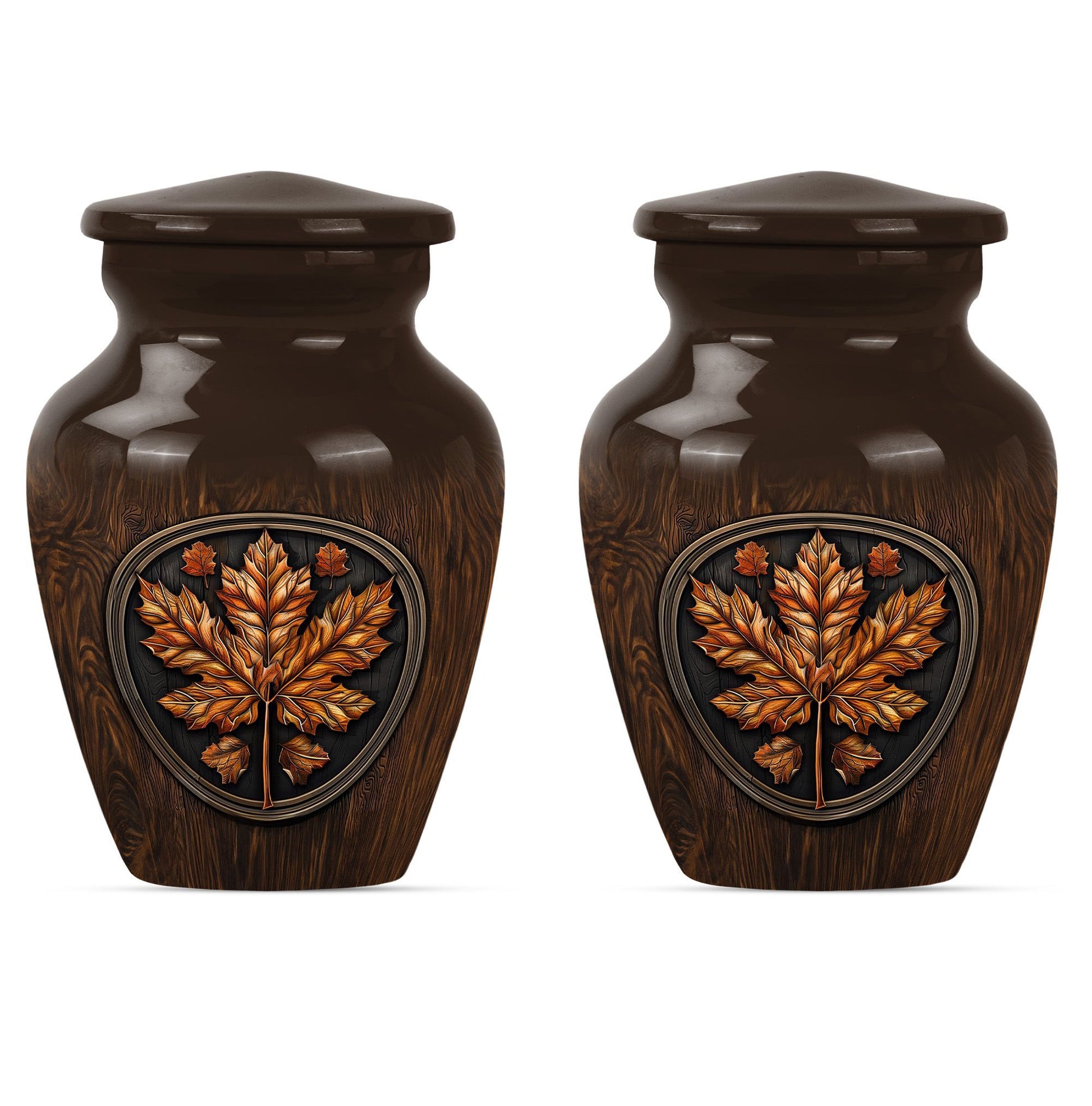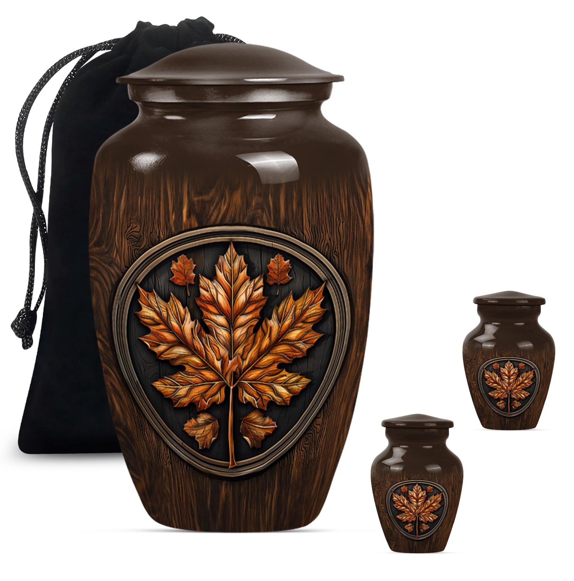 Make an affectionate tribute to your departed loved ones with our 10-inch Classic Urn. Reminiscent of the majestic mapple leaf, this funeral urn for men ashes is thoughtfully designed from high-quality aluminium, ensuring long-lasting durability. This large urn carries a weight of 3.3 pounds with a hold capacity of 200 cubic inches, suitable for preserving the ashes of your dear departed. This urn embodies the floral theme in an elegant manner, subtly reflecting the echoes of life's beauty. In addition, this funeral urn comes with a velvet pouch, providing a graceful vessel for containing the precious memories of your loved ones. What sets this urn apart, is the opportunity for customization - a personalized touch with engraved names, providing a unique memorization. Our memorial urns not only serve as adult urns for ashes but also elevate as decorative human ashes urns, adding a meaningful aesthetic to your interiors. In your time of grief, find solace in our urns, a tribute reflecting eternal respect and love for your departed.