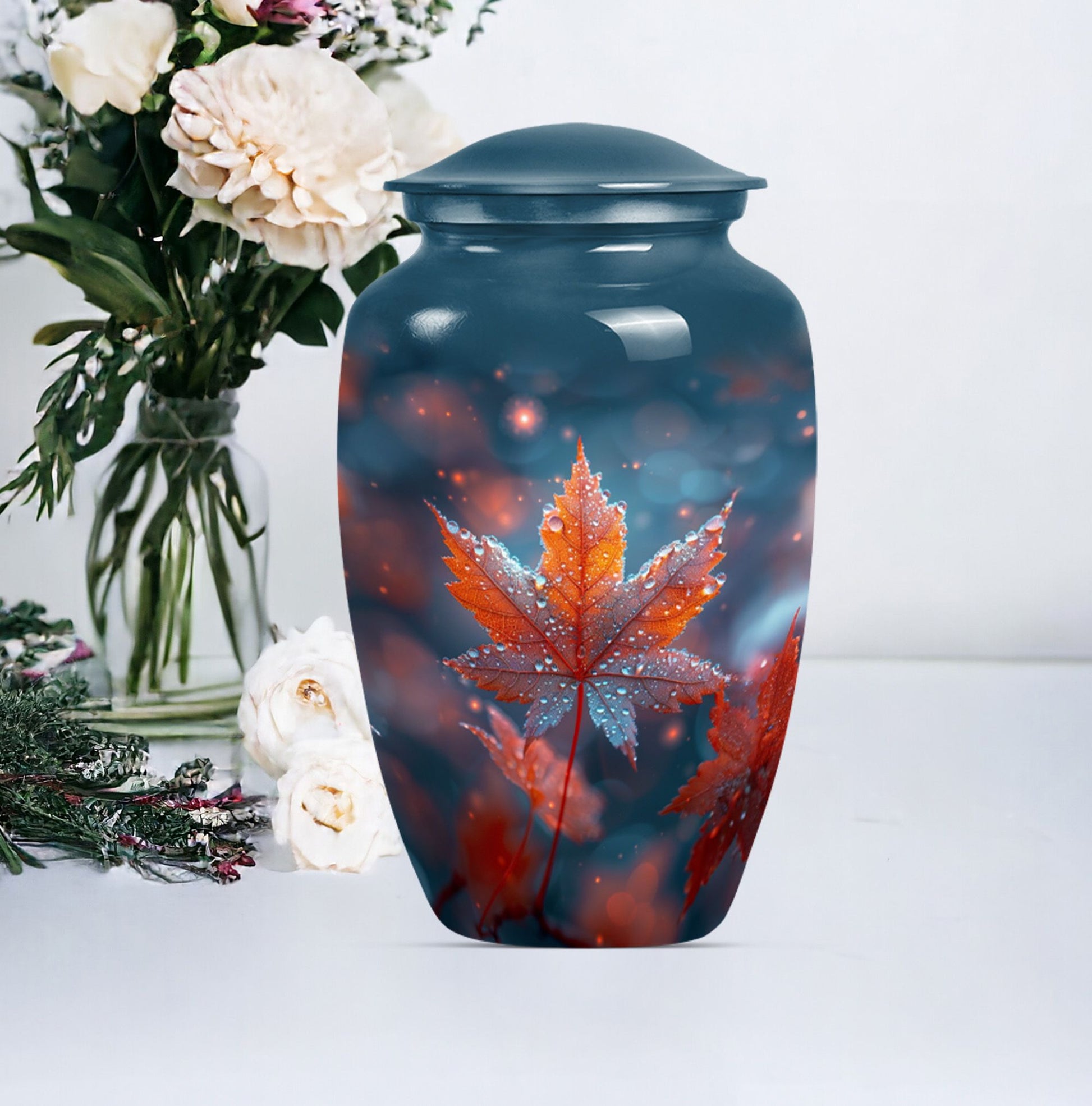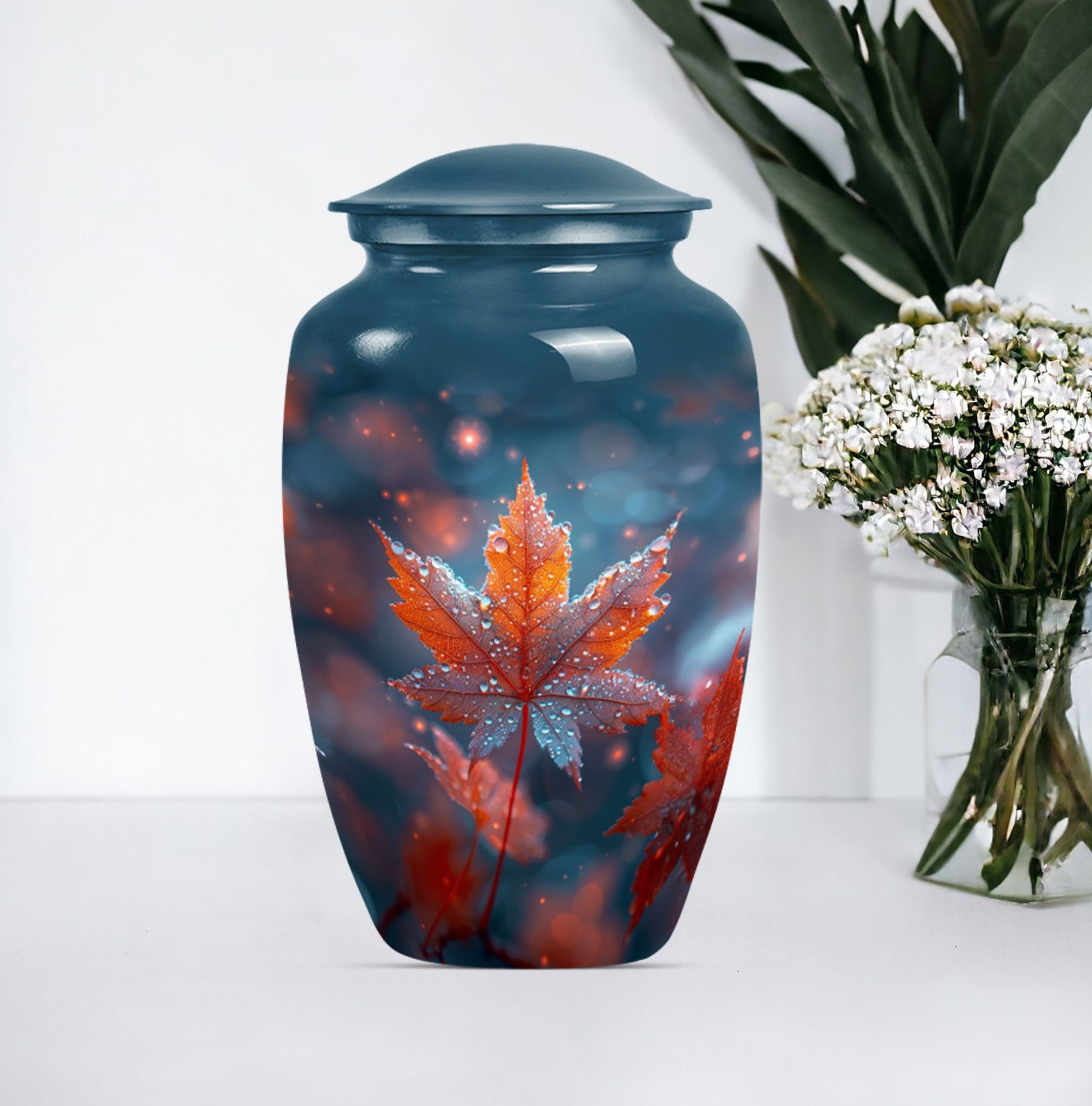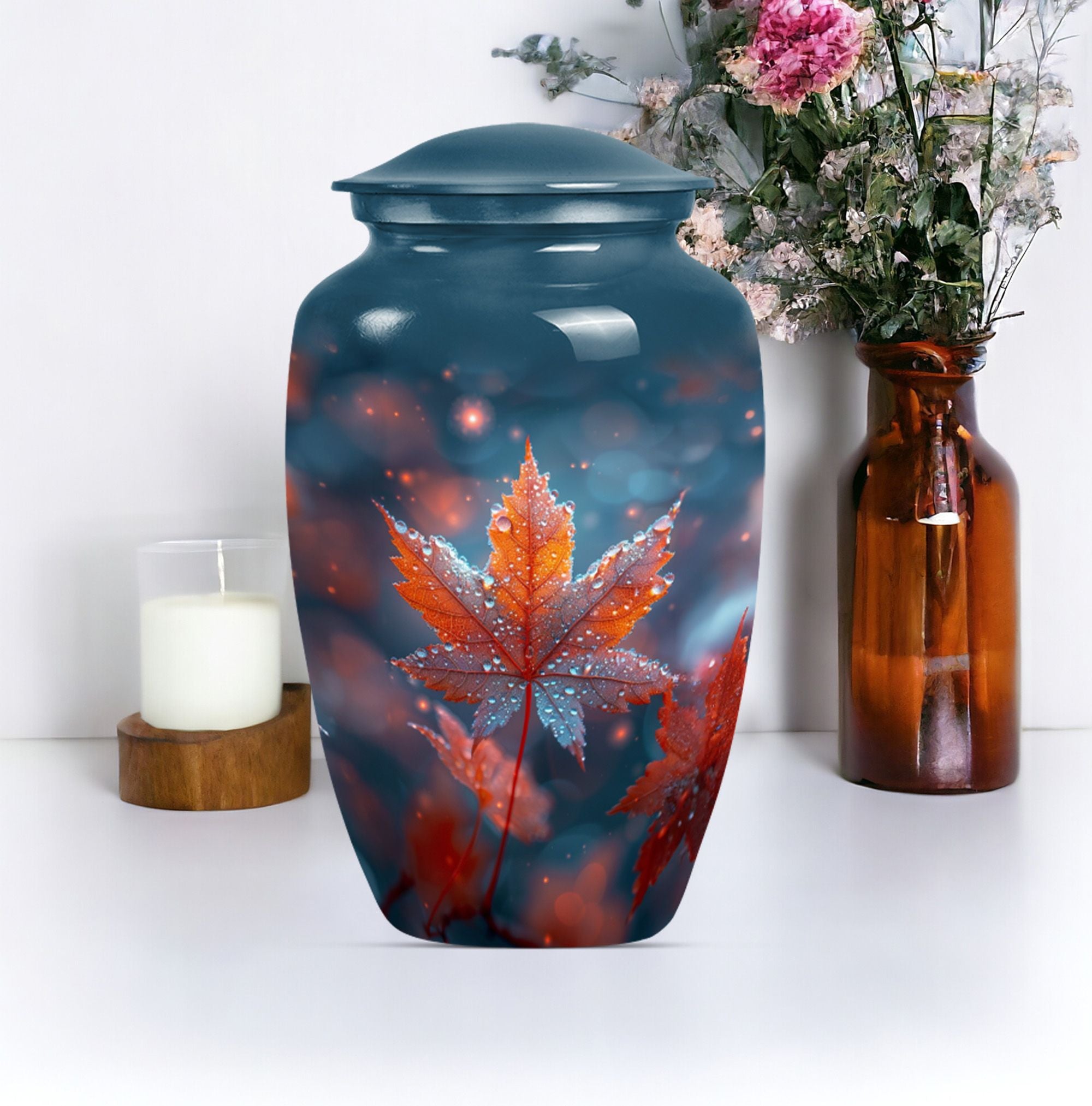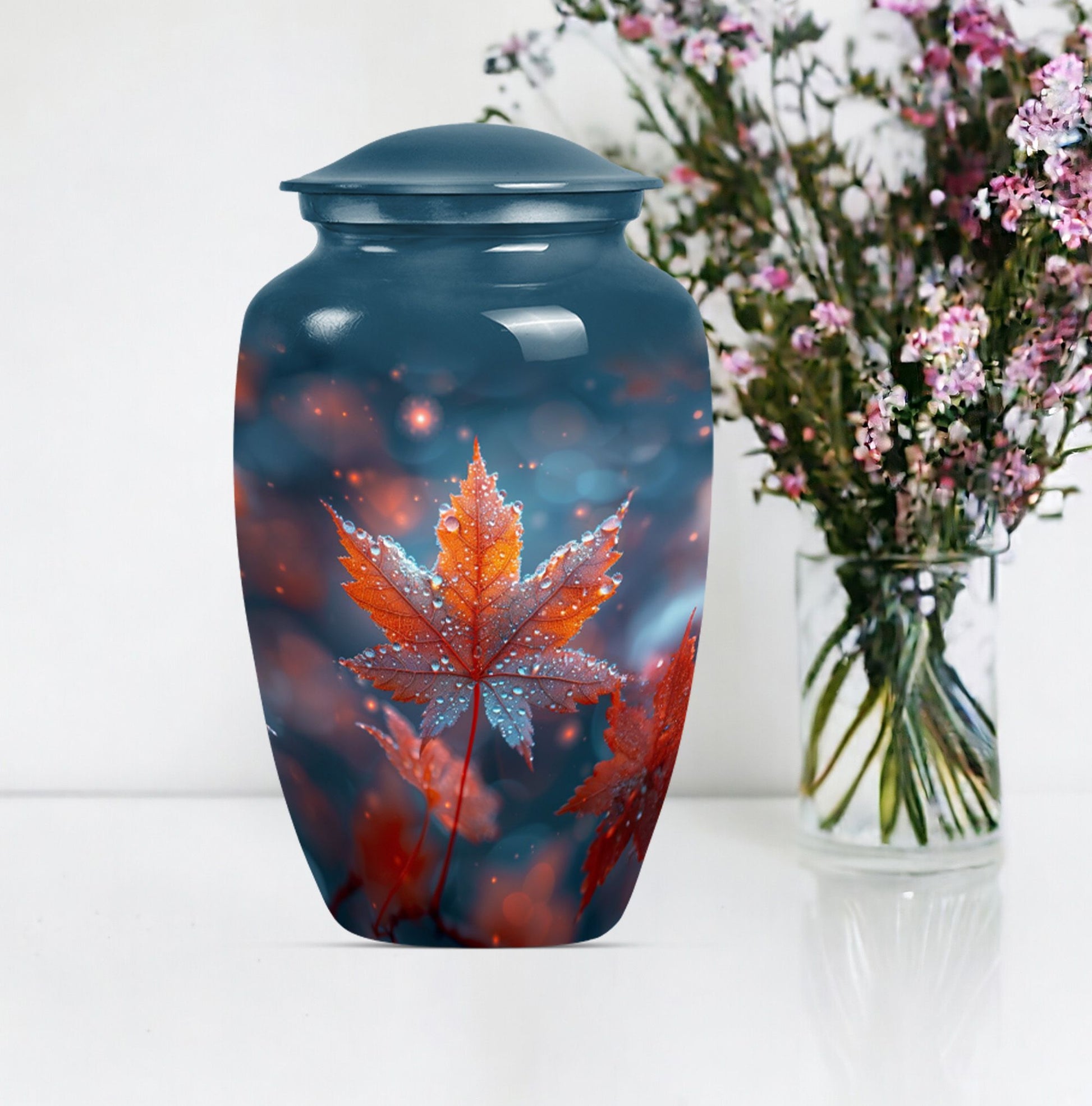 A testament to enduring quality and attraction, the Mapple Leaf Urn, a large size aluminum cremation urn curated for adult males, blends tradition and understated elegance. It stands at 10 inches, weighing a sturdy 3.3 pounds, and exhibits a sophisticated theme of flowers subtly enhancing its appeal. This 10-inch urn measures 200 cubic inches in capacity, suitable for meeting various memorial needs. What sets this cremation urn apart is the provision for personalization - you can make it more meaningful by engraving names, making it a truly unique memorial urn for your loved one. The package accompanies a velvet pouch meant specifically for preserving ashes securely. Whether you're in search of burial urns for men and women's ashes, funeral metal urns, or large urns for burial in the ground, this product eloquently fulfills the requirements whilst catering to aesthetics. Note: Despite the classic design tag, please expect the novelty of the design delivered.