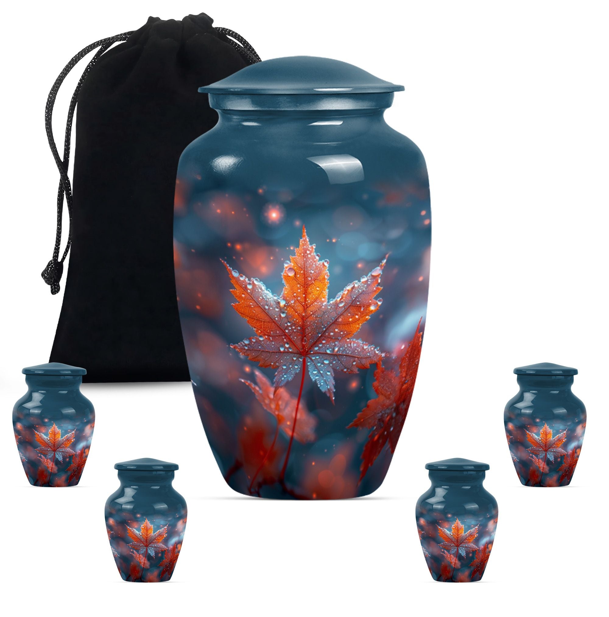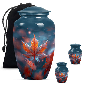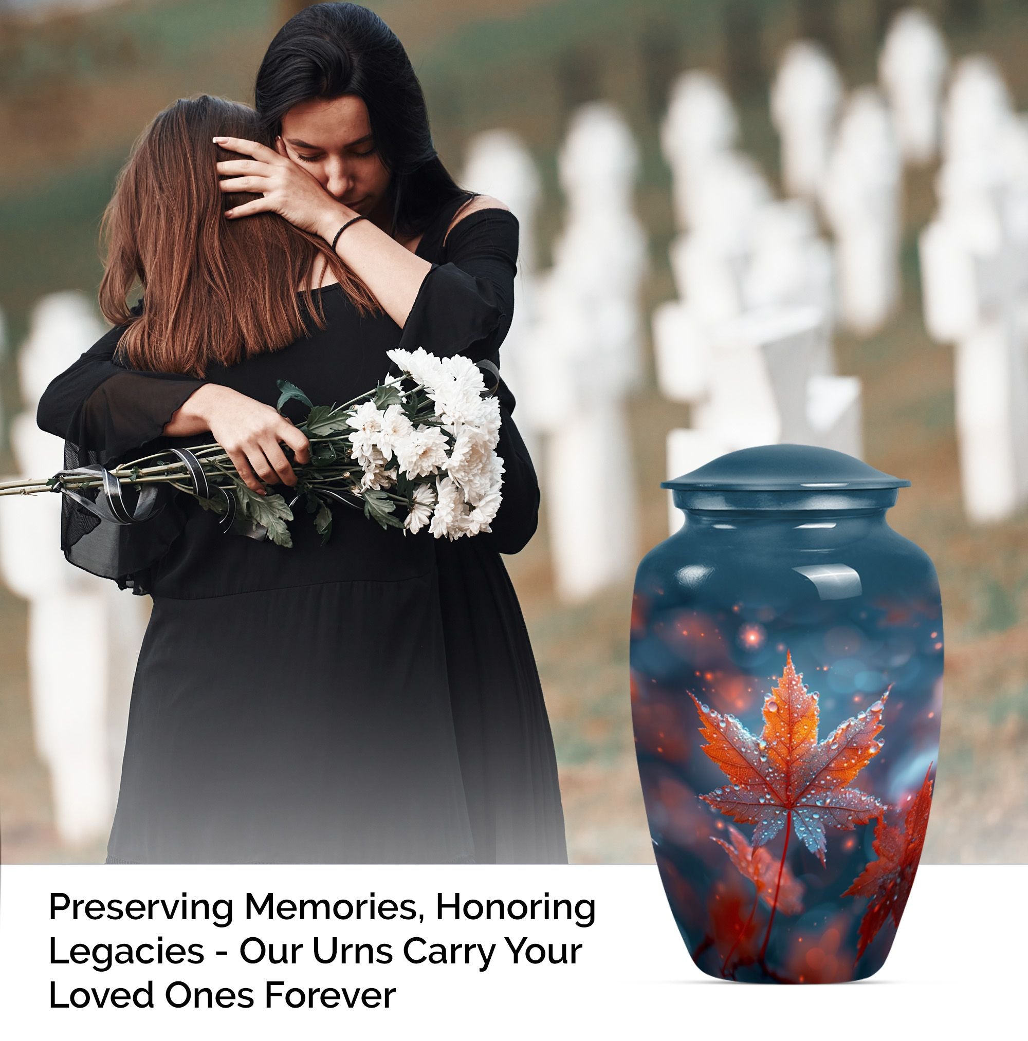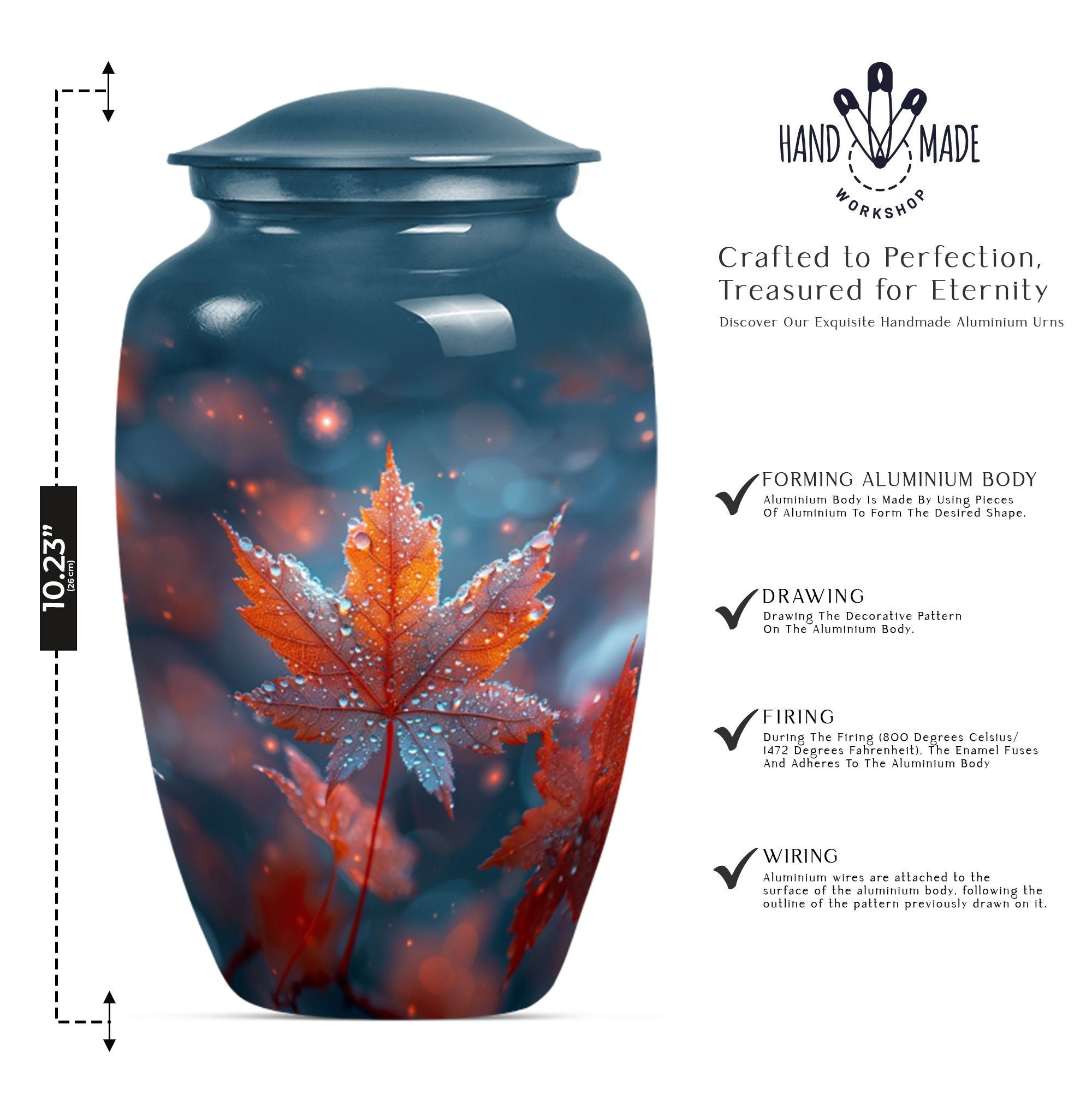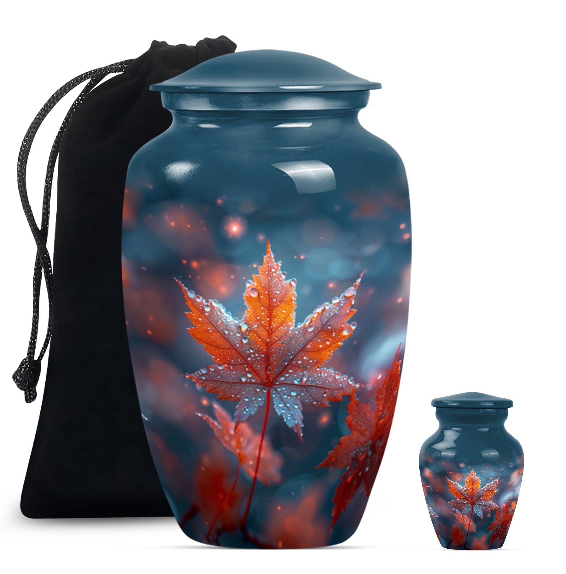 A testament to enduring quality and attraction, the Mapple Leaf Urn, a large size aluminum cremation urn curated for adult males, blends tradition and understated elegance. It stands at 10 inches, weighing a sturdy 3.3 pounds, and exhibits a sophisticated theme of flowers subtly enhancing its appeal. This 10-inch urn measures 200 cubic inches in capacity, suitable for meeting various memorial needs. What sets this cremation urn apart is the provision for personalization - you can make it more meaningful by engraving names, making it a truly unique memorial urn for your loved one. The package accompanies a velvet pouch meant specifically for preserving ashes securely. Whether you're in search of burial urns for men and women's ashes, funeral metal urns, or large urns for burial in the ground, this product eloquently fulfills the requirements whilst catering to aesthetics. Note: Despite the classic design tag, please expect the novelty of the design delivered.