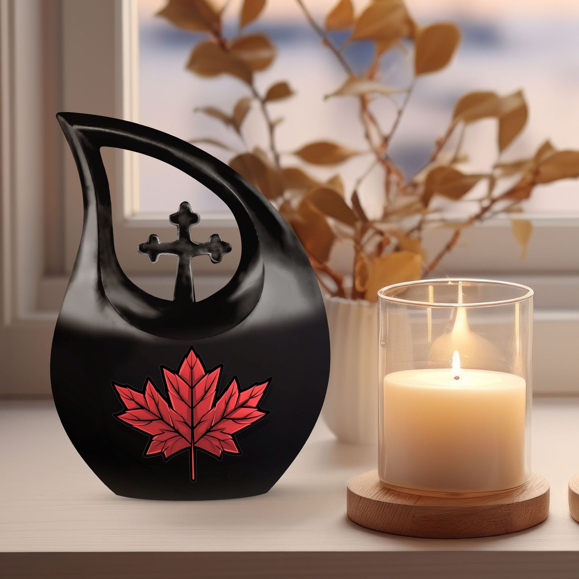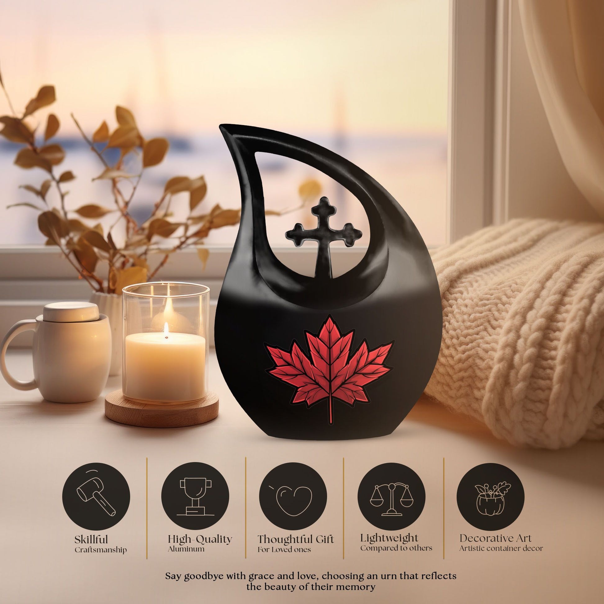 Honor and cherish the memories of your dearly departed with our unique Mapple Leaf Urn, a commemorative piece that serves as a respectful home for human ashes. This 10-inch tall urn is a blend of beauty and durability, crafted from high-quality aluminium, ensuring it stands the test of time. Weighing a sturdy 3.3 pounds, it has a generous capacity of 200 cubic inches. This cremation urn is not just a practical ashes container, but also an elegant tribute with the theme of Mapple Leaf and a captivating Cross Drop design. The urn is also customizable, allowing you to personalize it with engraved names, making it more meaningful and special. The urn comes with a soft velvet pouch for containment and respectful treatment of ashes. Ideal for adults and seniors looking for cremation urns or cremation vaults, it is a unique twist on classic memorial urns. Perfect for those searching for large urns, affordable options, or a distinctive urn for mom.