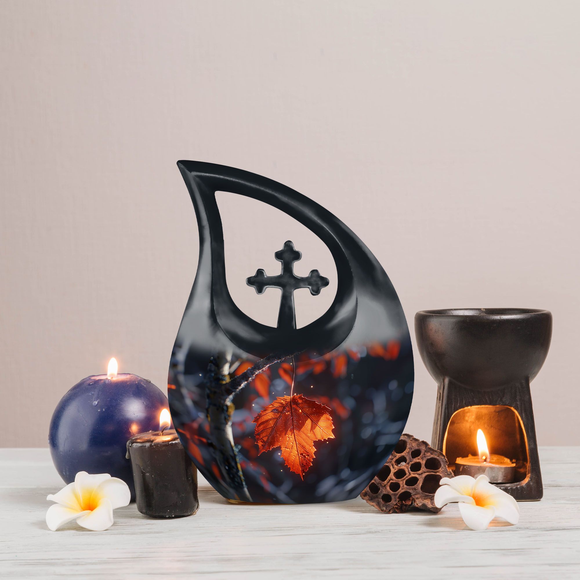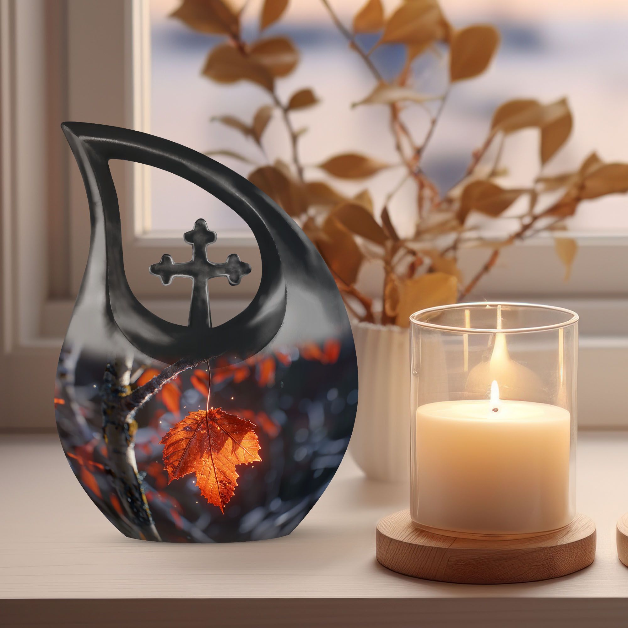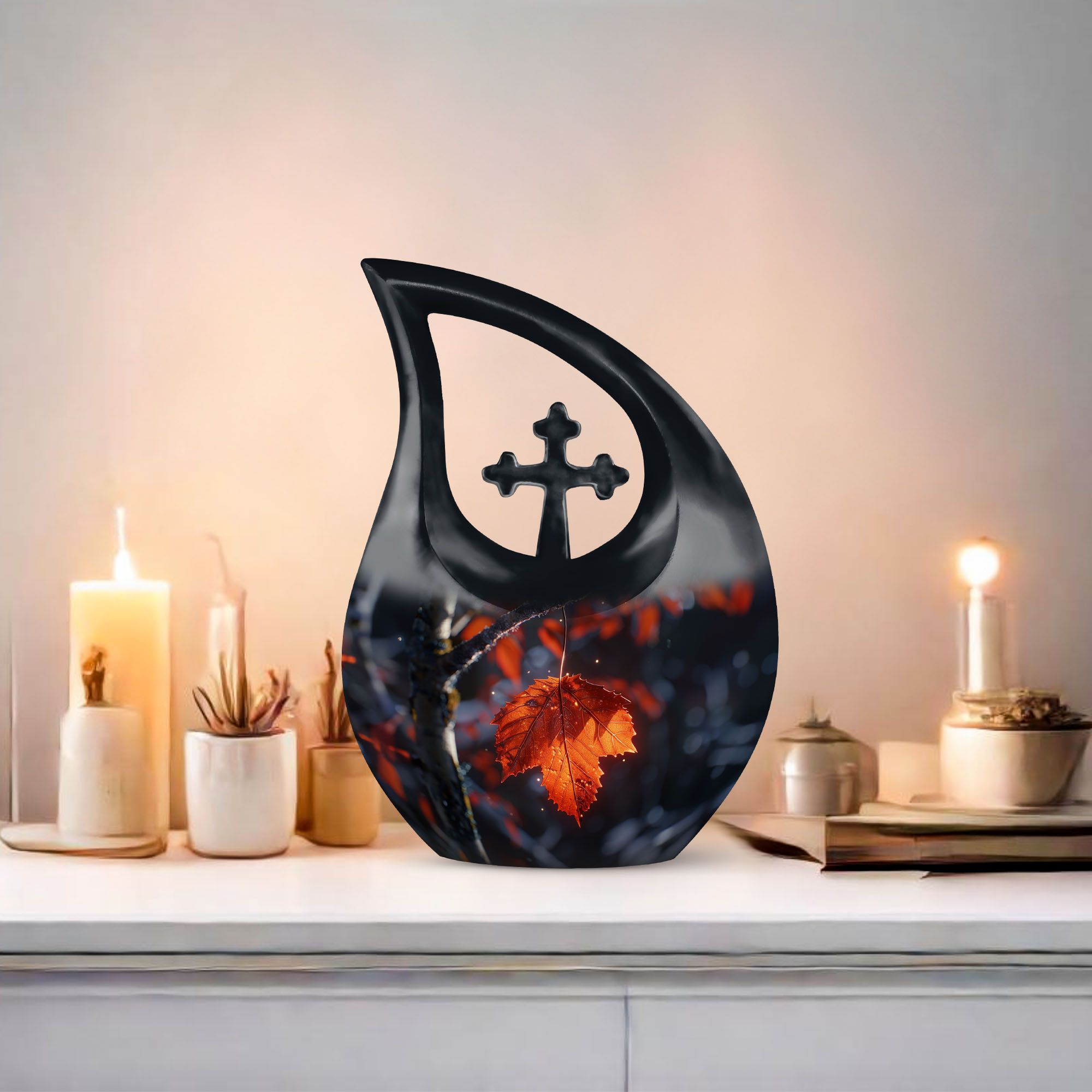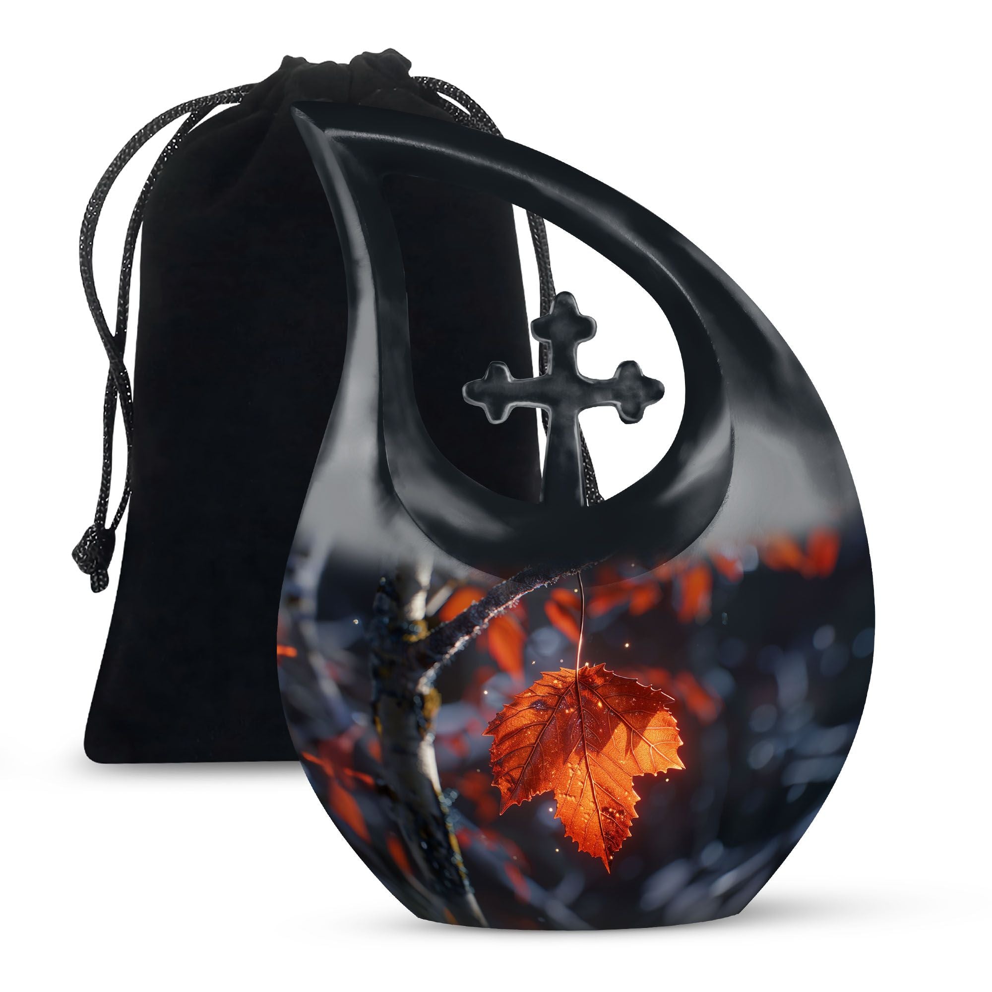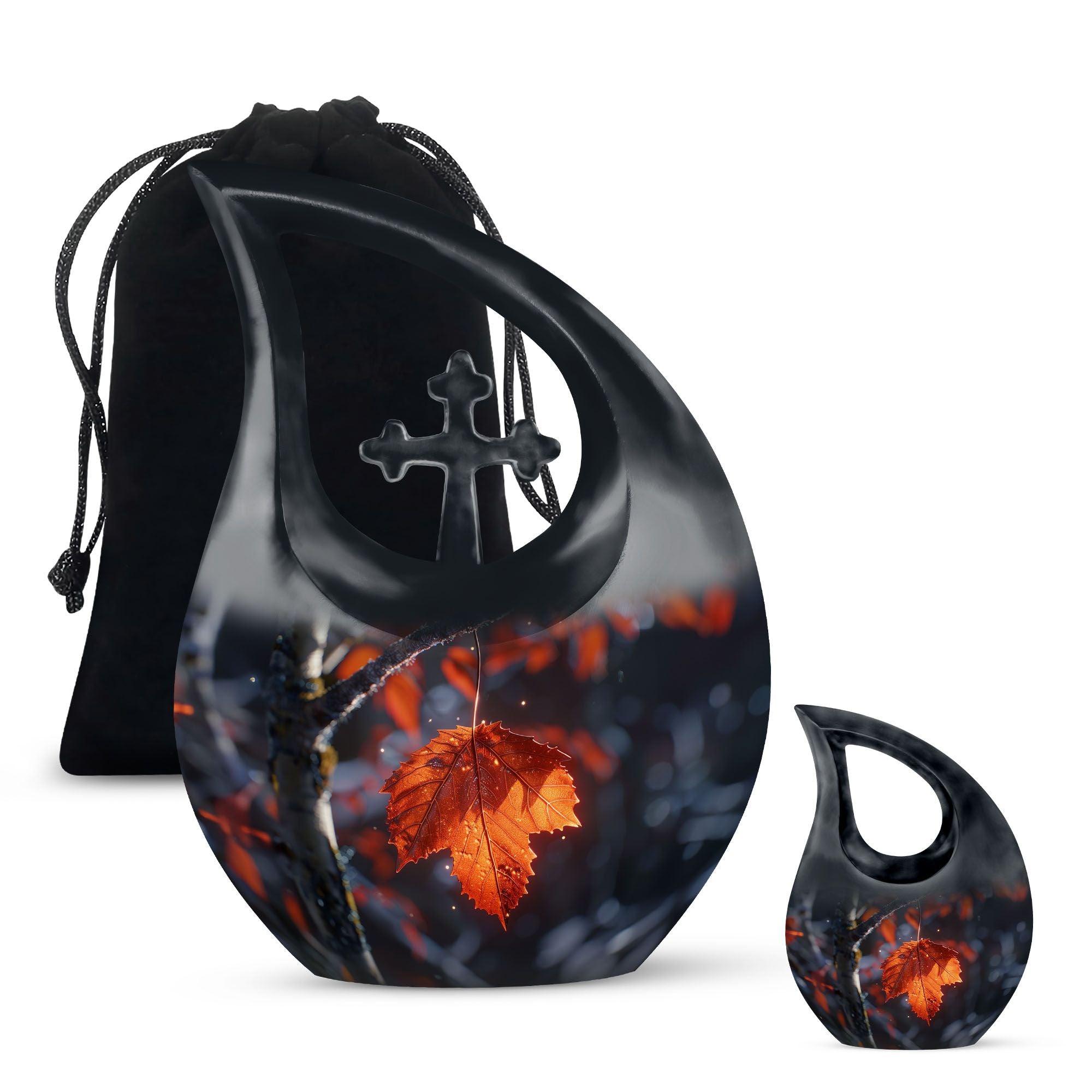 Commemorate the life of a beloved family member with our distinctly crafted Mapple Leaf Urn, an ideal resting place for your departed loved one. Respecting the need for remembrance and size considerations, this Large Urn measures 10 inches in height and totes a weight of 3.3 pounds. Its material of choice is durable yet delicate Aluminium, utilized to withstand time as eternal as your memories. The Urn has a holding capacity of 200 cubic inches, making it a suitable ashes container for Mom or any loved ones who are no longer with us. This Urn goes beyond its base function with the inclusion of personal customization; Engrave the names of your dearly departed onto the metal surface to add a unique touch. It also comes with a soft velvet pouch, ensuring secure containment of ashes. This Mapple Leaf Urn is far from an ordinary cremation vault, merging functionality with the eternal symbol of the Cross Drop in its design. A poignant nod to our faith and the promise of resurrection, making it a heartfelt purchase from the Memorial Ceremony Supplies category. Remember through your search on this channel; look for Urns With Love as a signal of our commitment to providing comforting products during difficult times.