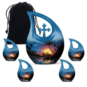 For those wishing to share ashes among family, matching tiny urns for women & men or keepsake urns for men ashes are available, allowing each loved one to hold a personal tribute. Whether chosen as a cremation urn men, cremation urn women, or a shared funeral urn, this beach-themed urn reflects the eternal rhythm of life and the peaceful journey beyond.