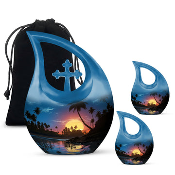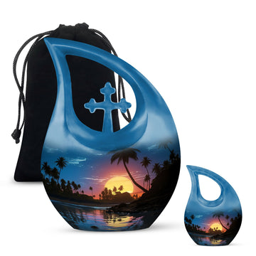 The Beach Sunset Memorial Urn for Cremation beautifully captures the serene glow of the setting sun over calm waters — a comforting symbol of rest, reflection, and everlasting love. This elegant piece offers families a heartfelt way to remember a cherished soul, whether as a cremation urn women or mens urn for human ashes. The gentle beach scene evokes warmth, calm, and renewal, making it an ideal choice for both funeral urns women and funeral urns men.