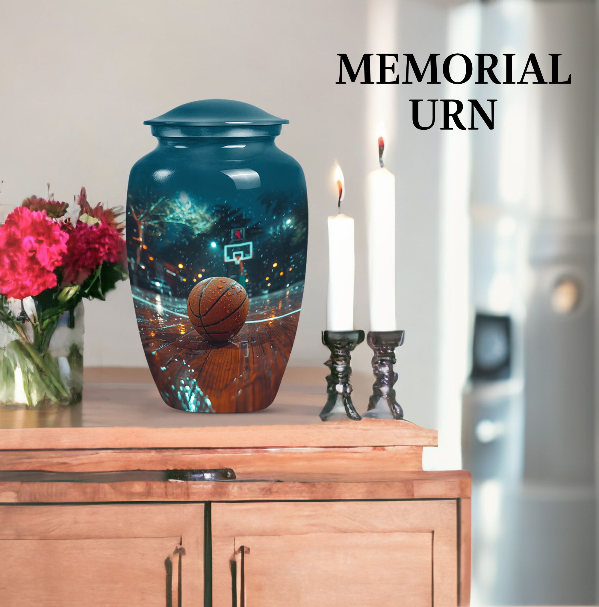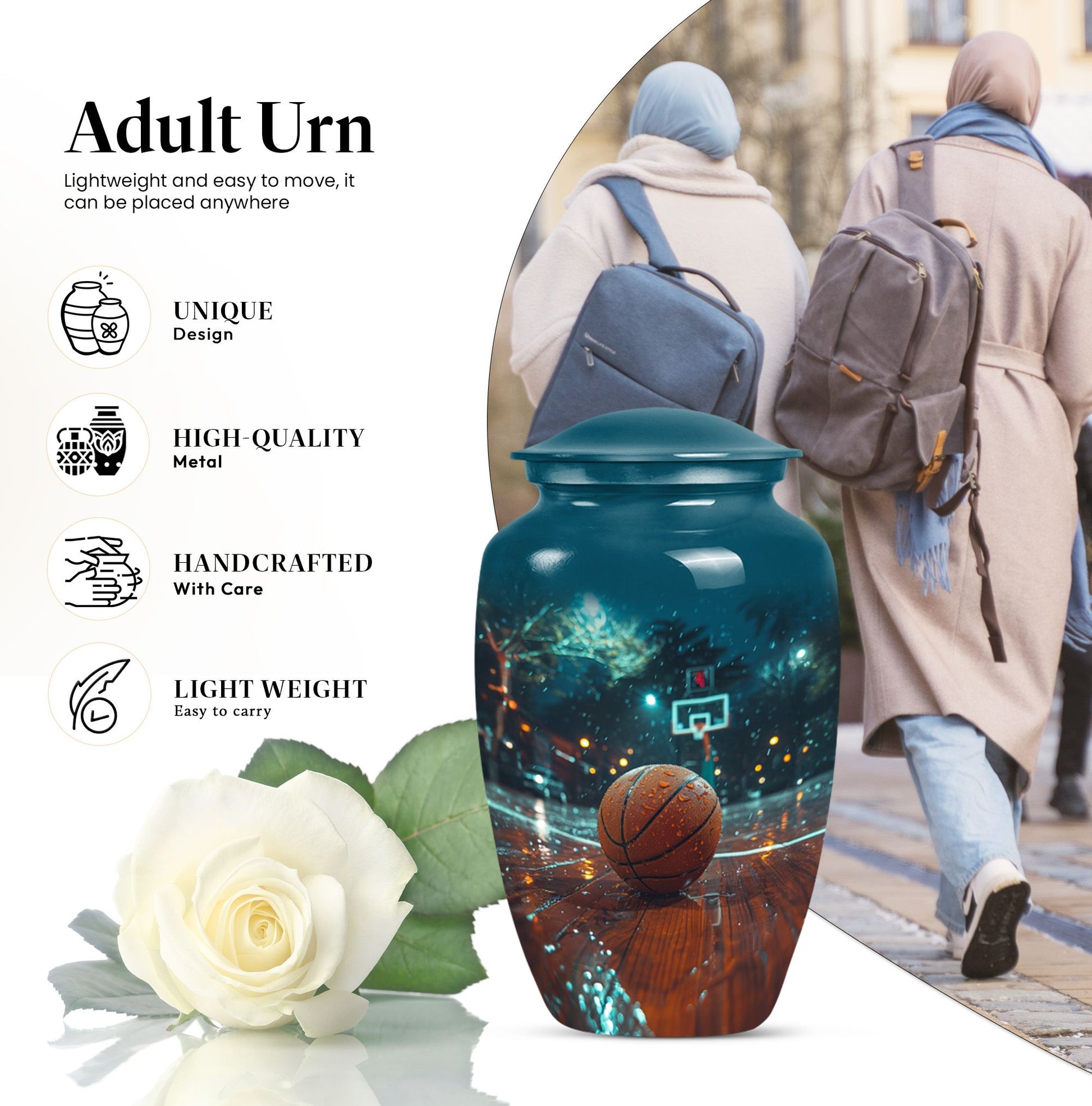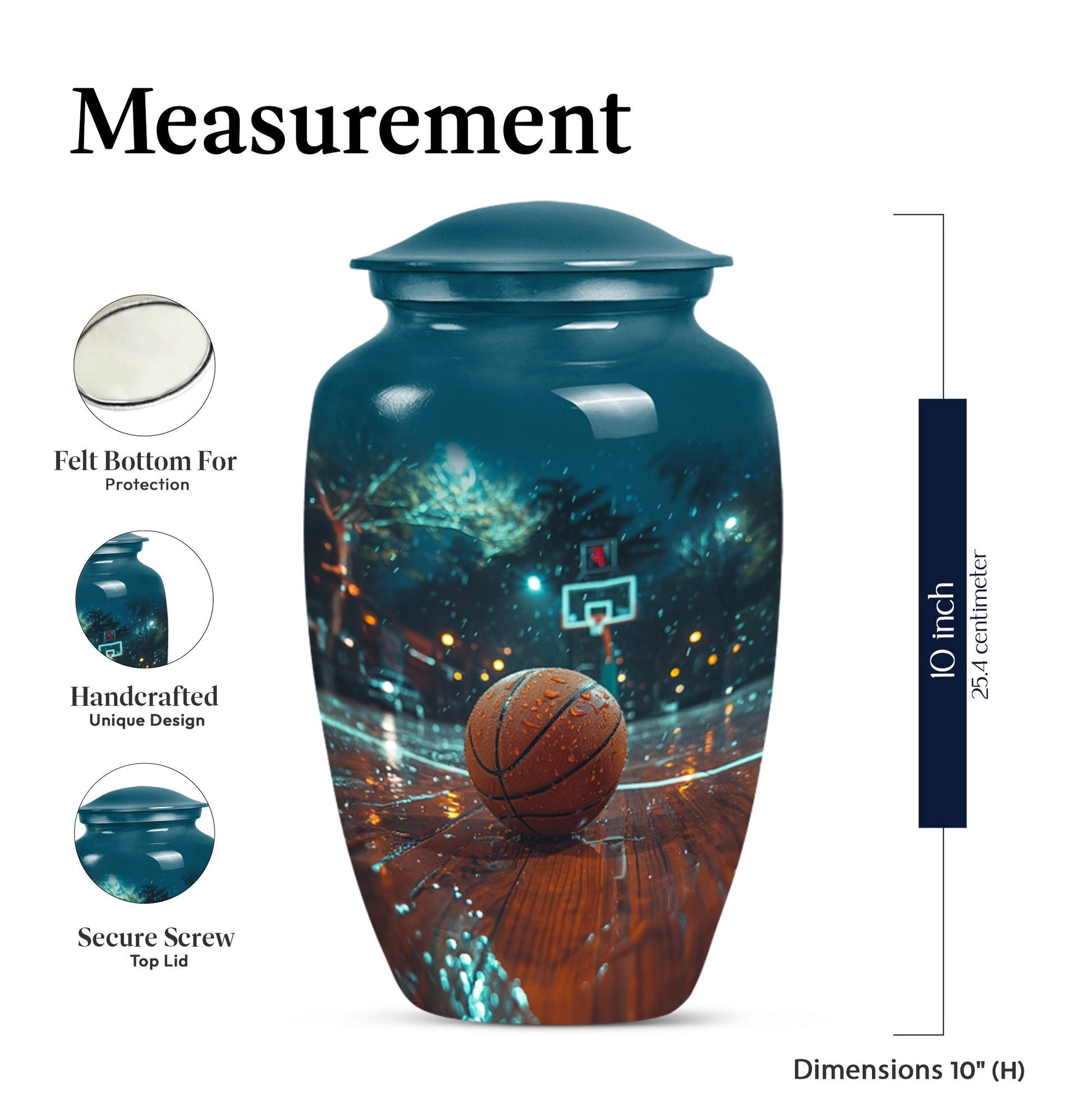 Embrace the essence of remembrance with our 'Classic Urn' - meticulously handcrafted, large funeral urns exuding a sophisticated theme of 'Gramophone'. Tailored specifically for adult ashes, these 10 inch basketball urns encompass a humane sense of reverence. Cautiously weighing 3.3 pounds, these aluminum-crafted cremation urns offer a sizeable capacity of 200 cubic inches. Adding a poignant touch, each urn enables customization with engraved names, radiating an aura of personalized memorial tribute. Specifically designed for adults and seniors, these large urns are a perfect remembrance of your loved ones. The product comes complete with a plush velvet pouch for containment of ashes, ensuring a dignified storage. A fitting emblem of your adoration, these urns embody the poignant symbolism of the word 'Goodbye'. This cremation urn is a valued token that transcends the ordinary in the realm of memorial ceremony supplies.