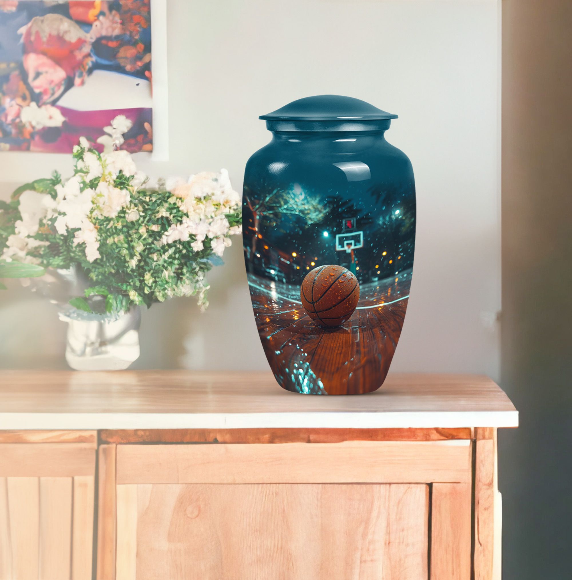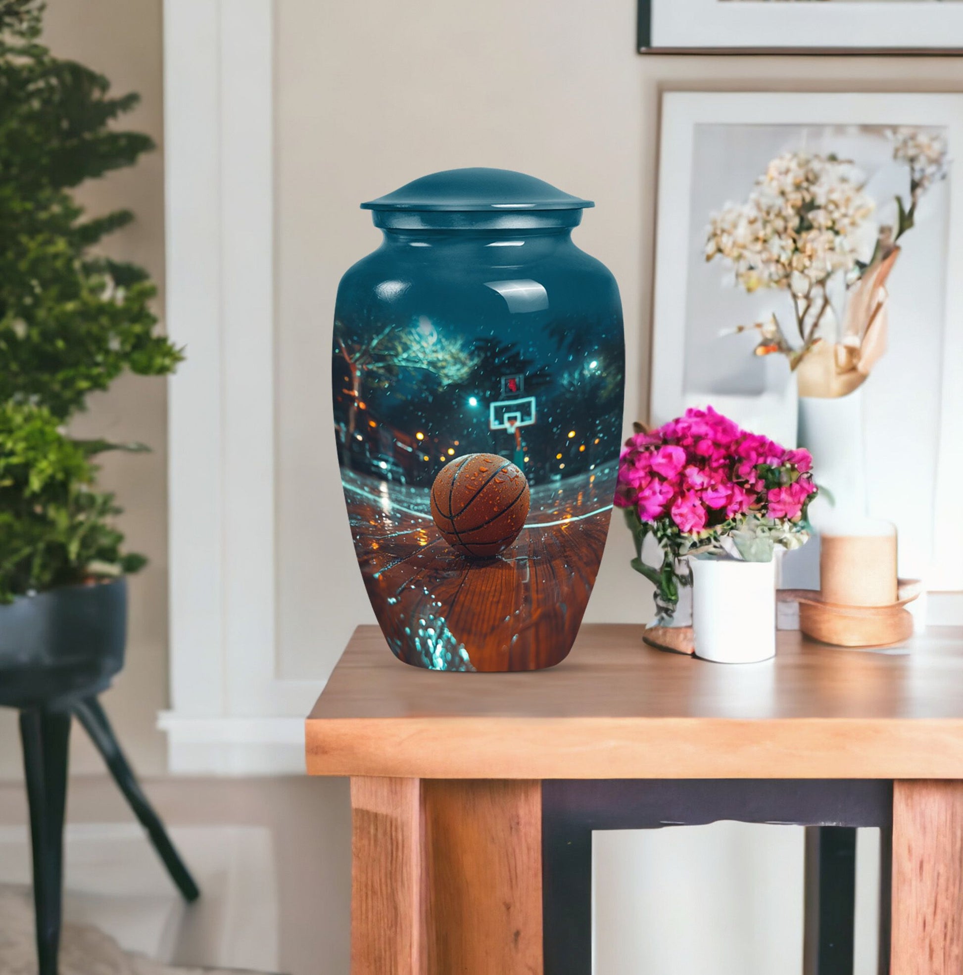 Embrace the essence of remembrance with our 'Classic Urn' - meticulously handcrafted, large funeral urns exuding a sophisticated theme of 'Gramophone'. Tailored specifically for adult ashes, these 10 inch basketball urns encompass a humane sense of reverence. Cautiously weighing 3.3 pounds, these aluminum-crafted cremation urns offer a sizeable capacity of 200 cubic inches. Adding a poignant touch, each urn enables customization with engraved names, radiating an aura of personalized memorial tribute. Specifically designed for adults and seniors, these large urns are a perfect remembrance of your loved ones. The product comes complete with a plush velvet pouch for containment of ashes, ensuring a dignified storage. A fitting emblem of your adoration, these urns embody the poignant symbolism of the word 'Goodbye'. This cremation urn is a valued token that transcends the ordinary in the realm of memorial ceremony supplies.