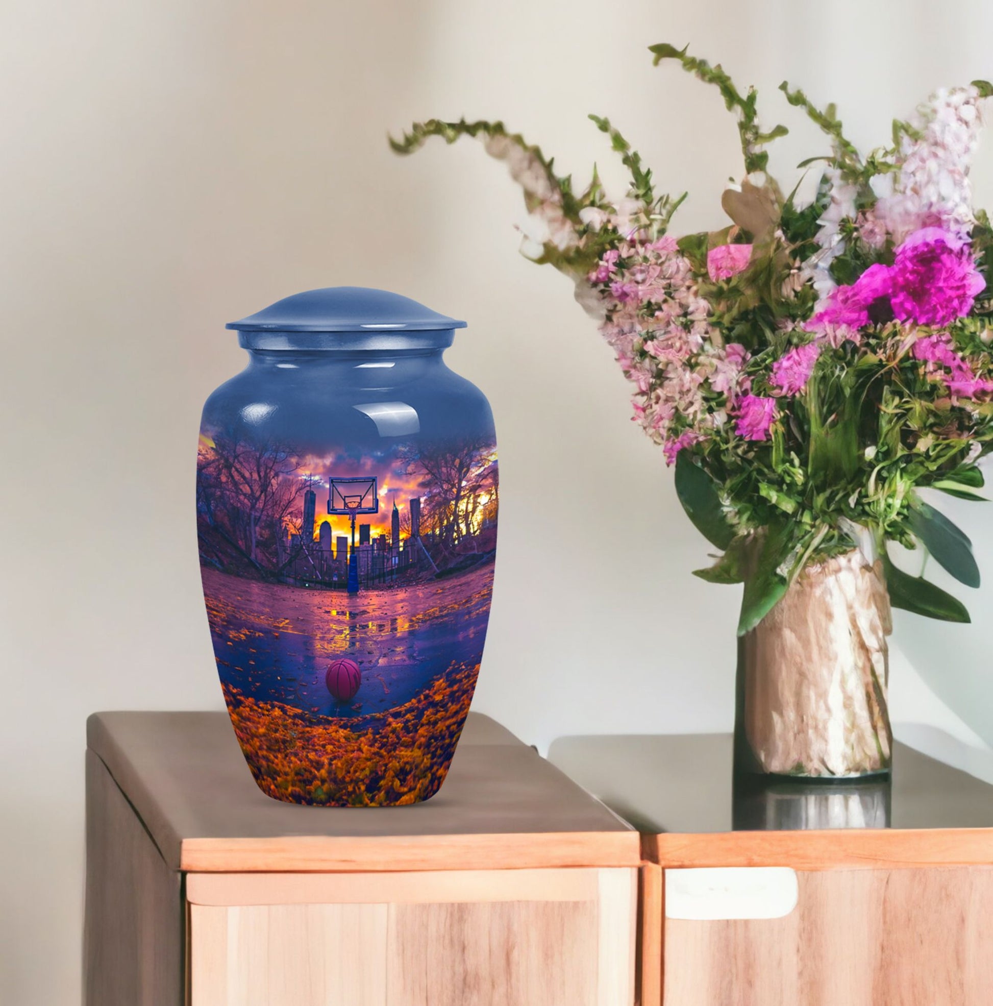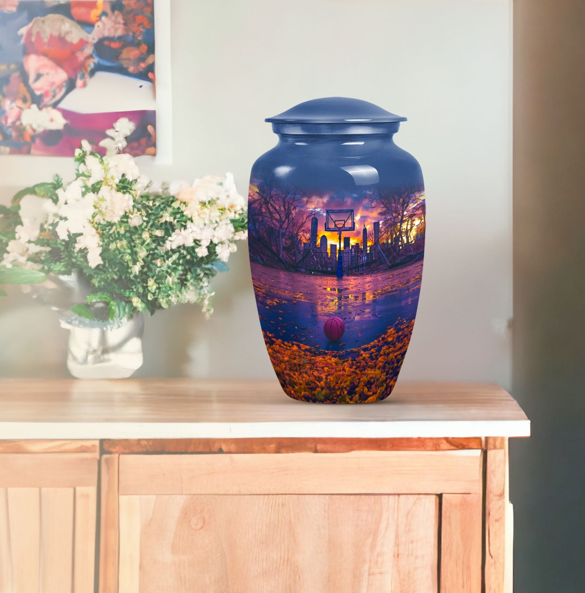 If you're in search of a dignified, respectful way to memorialize your loved one, consider the elegant 'Basketball Urn,' a crucial theme within our Memorial Ceremony Supplies. This tribute is vividly exclusive. Not just any cremation urn, but intricately crafted from high-quality aluminium, exuding strength and longevity. Its broad size dimensions, standing proudly at 10 inches, makes it an ideal memorial medium urn. Weighing judiciously at 3.3 pounds, this funeral burial urn can securely enclose up to 200 cubic inches of human ashes. Each urn is accompanied by a velvet pouch for careful containment of ashes, ensuring utmost reverence to your dear departed. With the potential to personalize with engraved names, this large urn provides a uniquely treasured homage. Delicately skillful, its classic urn shape is enhanced by a tender butterfly theme, making it much more than an ash burial urn, but a poignant reflection of a life beautifully lived.