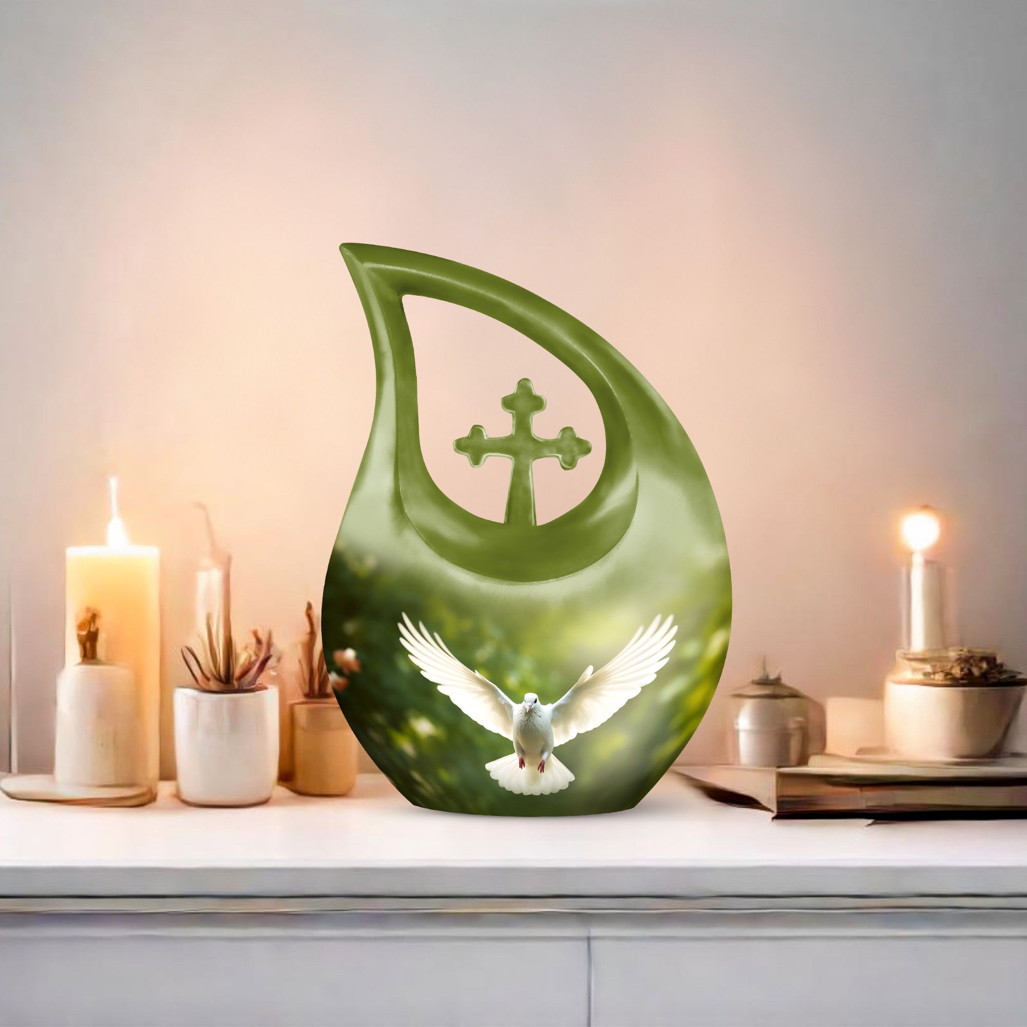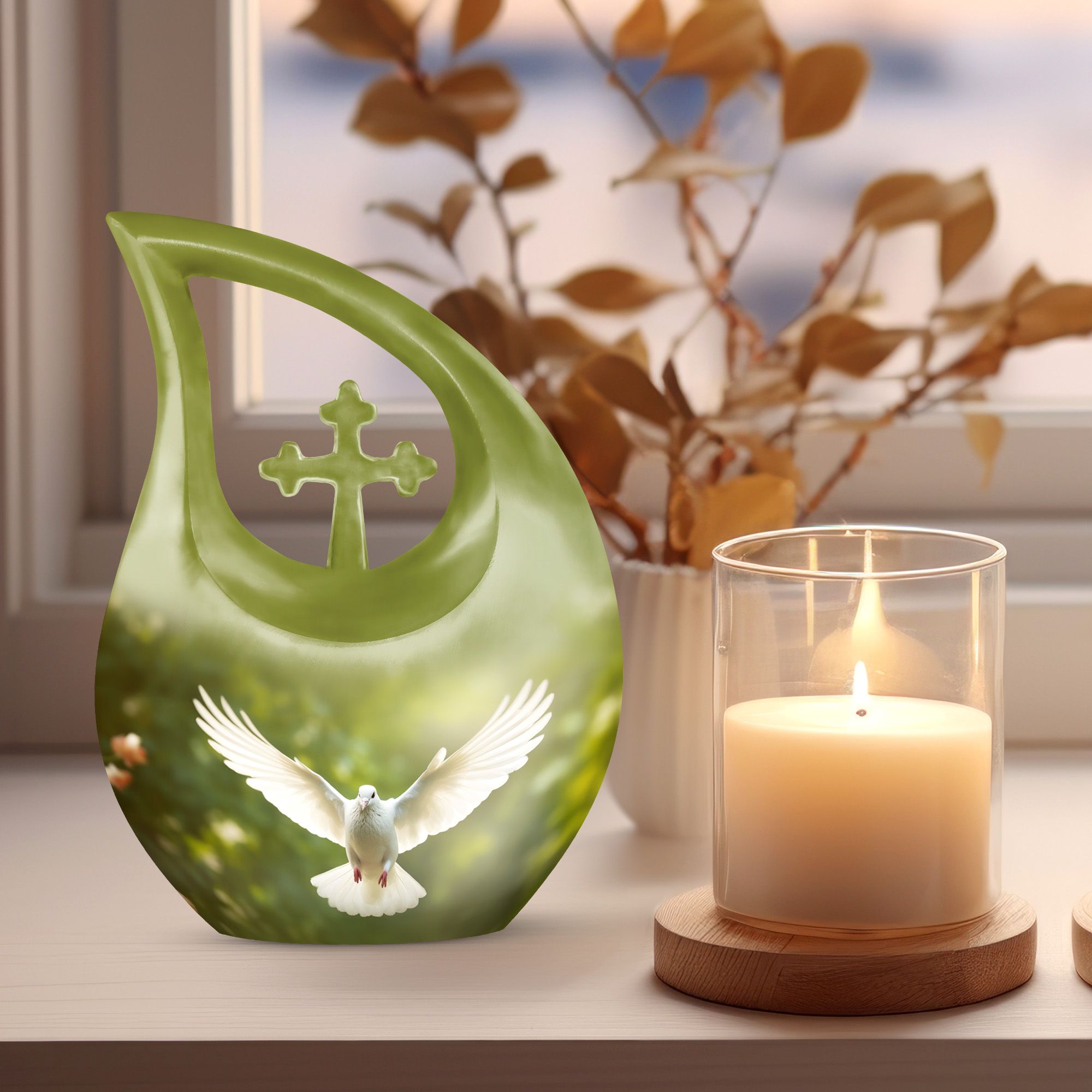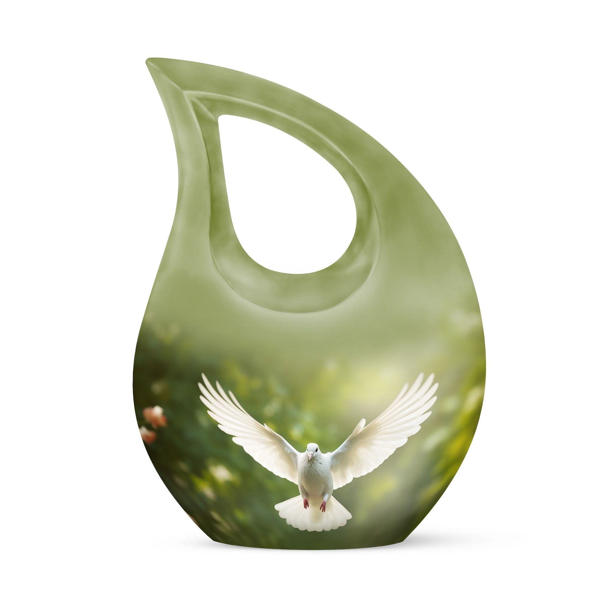 Celebrate a life of love and kindness with this Dove Cremation Urn for Ashes, a touching symbol of peace and eternal rest. The soft sage green hue and elegant dove motif reflect renewal and hope, making it a comforting choice for honoring a beloved parent or family member. This urn serves as a meaningful tribute among large adult urns for human ashes and large human urns collections, offering both beauty and comfort to those who remember.