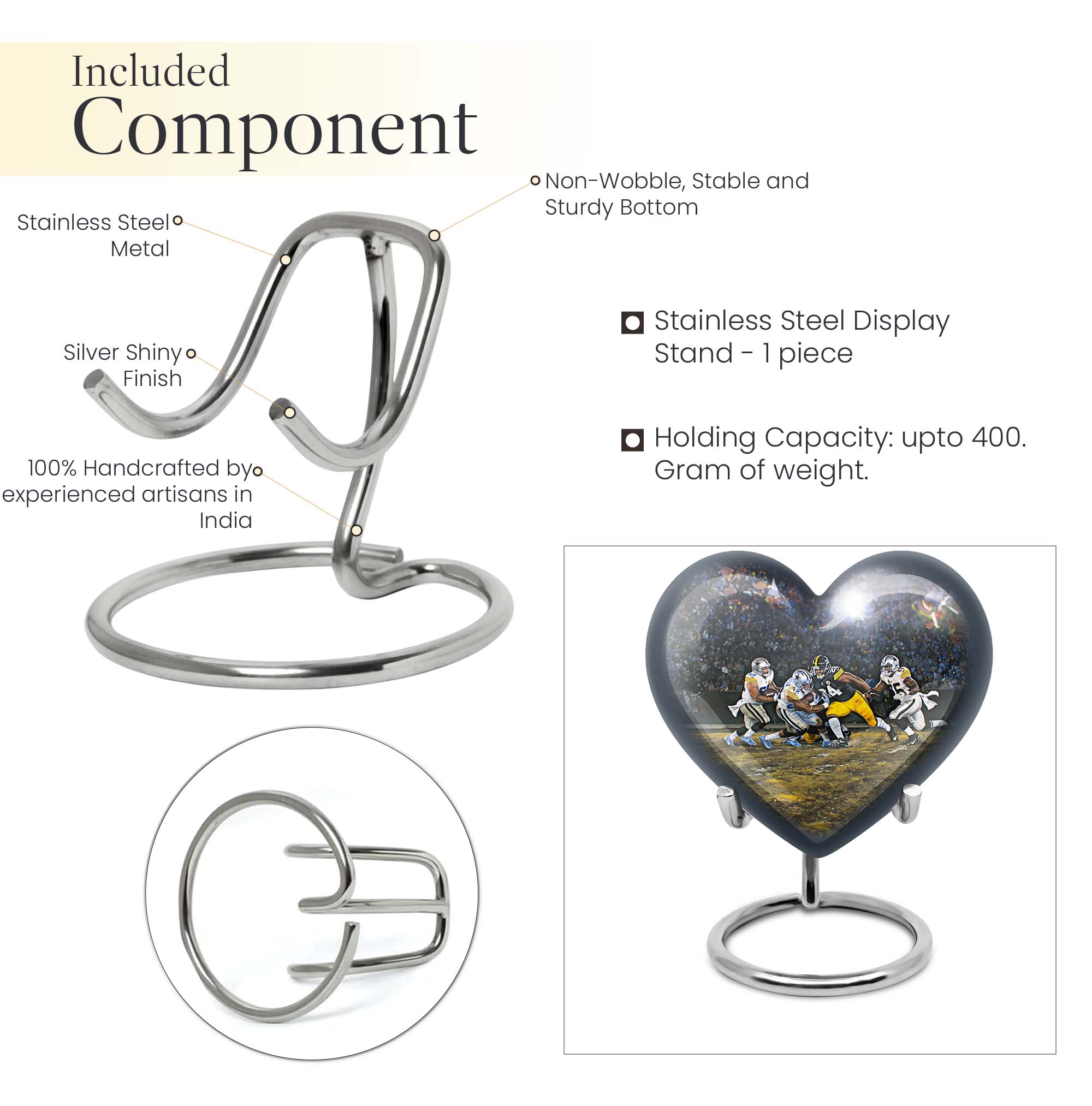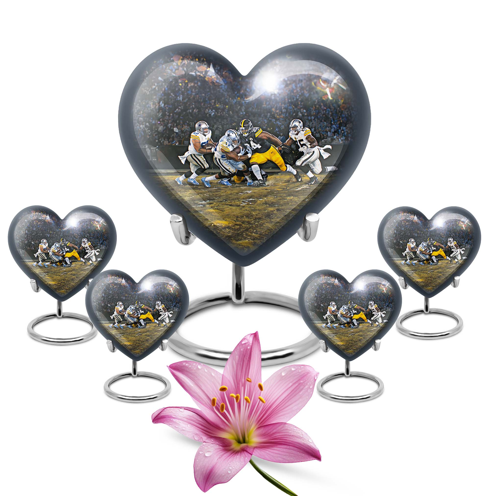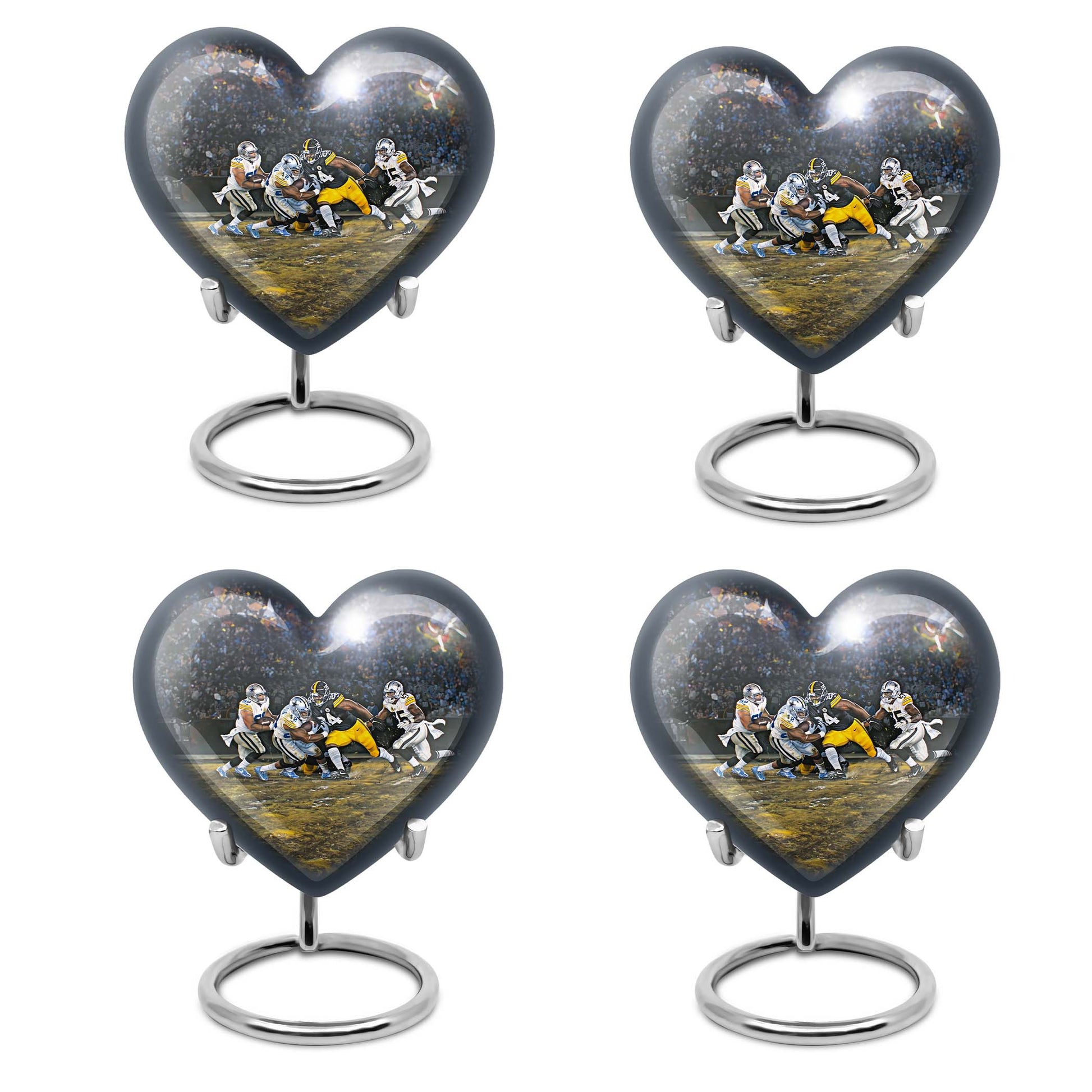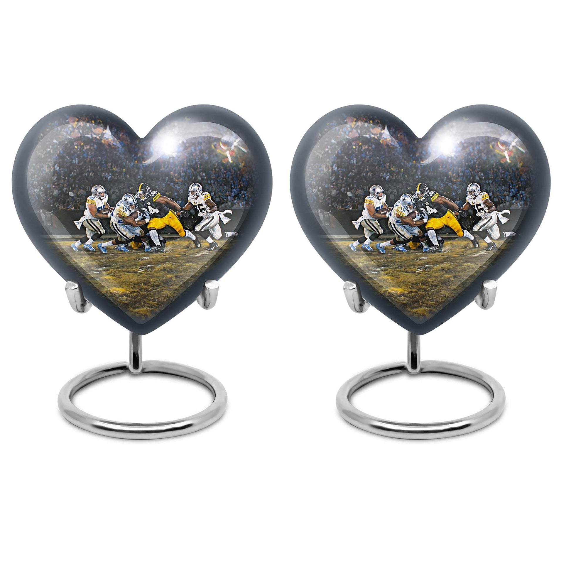 Discover a uniquely crafted memorial urn that combines both beauty and tribute to your loved ones. Our stunning heart urn measures 10 inches in size, shaped abstractly capturing your affection in an everlasting form. This large urn presents not only a significant capacity of 200 cubic inches but also the substance weighing 3.3 pounds - a testament to its durability and substantiality. Constructed from high-quality aluminium, it meticulously stores your burial ashes with undeniable security. This memorial urn arrives with a soft velvet pouch, especially suitable for ensuring the containment of ashes. A poignant feature of our urns for cremation ashes is the personalization option - engrave names according to your preferences to create a forever memorial. Amidst the football urns and cremation funeral urns for adult ashes, our heart urn stands out, honoring your dearly departed with style and sophistication.