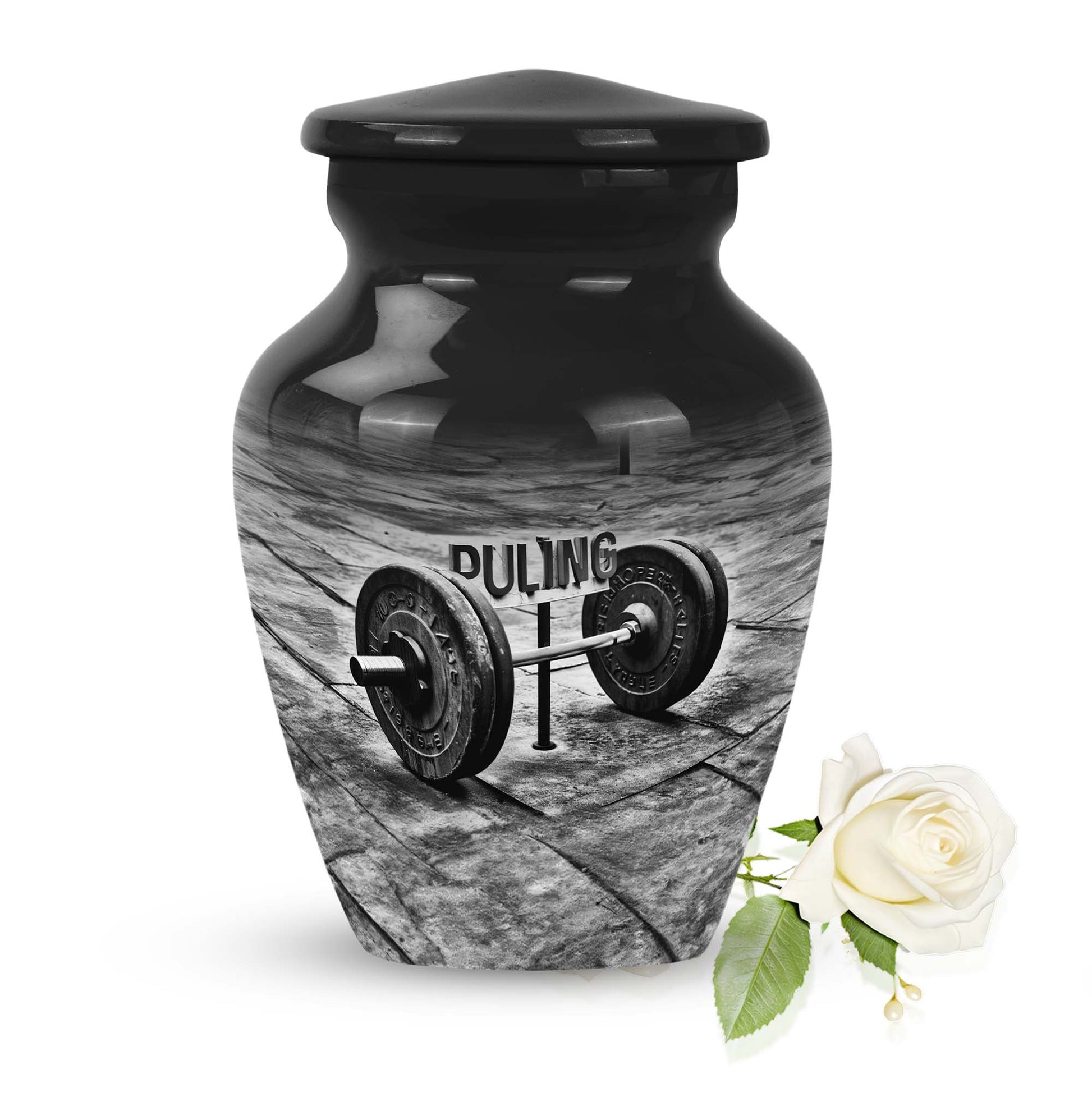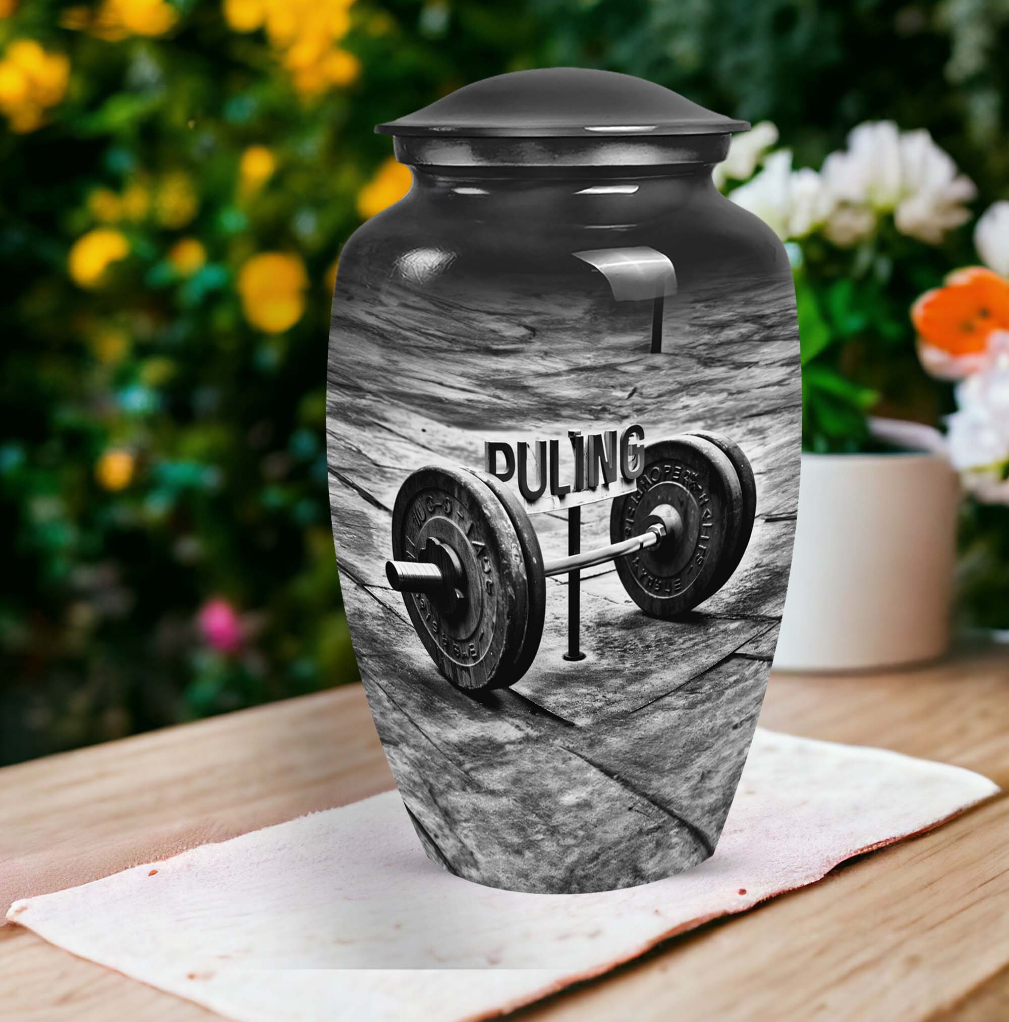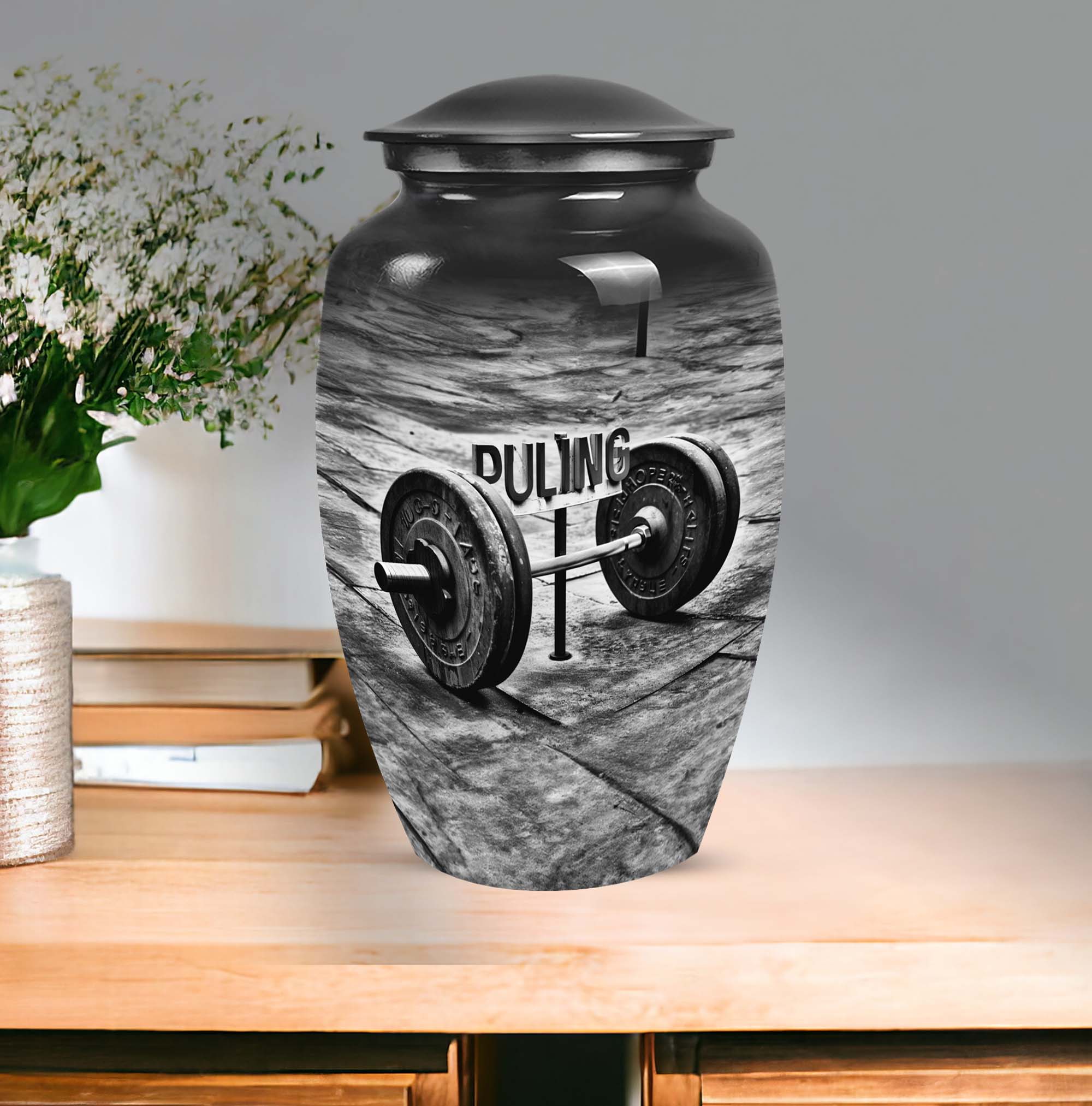 Celebrate the memory of a departed loved one in a dignified manner with our exquisite Dumbles Urn. This visually appealing urn, measuring 10 inches in height, is robust and spacious, having a capacity of 200 cubic inches, making it suitable for holding ashes of adults. Weighing in at 3.3 pounds, it is constructed from high-quality Aluminium, ensuring endurance and easy maintainability. Our product speaks volumes about your affection towards the departed, acting as a meaningful sentimental memento. It also comes with a charming velvet pouch for secure containment of ashes. Further adding a personal touch, customize this memorial funeral urn with engraved names. The abstract theme complements its classic design and serves to present a serene tribute. This product, which belongs to our collection of large urns, is more than just a utilitarian object; it is a token of treasured memories. Among memorial urns, this is perfectly suited for those seeking profound symbolism and pragmatic use. Note: Terms like 'funeral urns for burial,' 'human ash urns,' 'urns for human ashes,' and 'mom cremation urn' are relevant for users interested in this category.