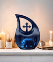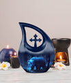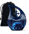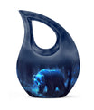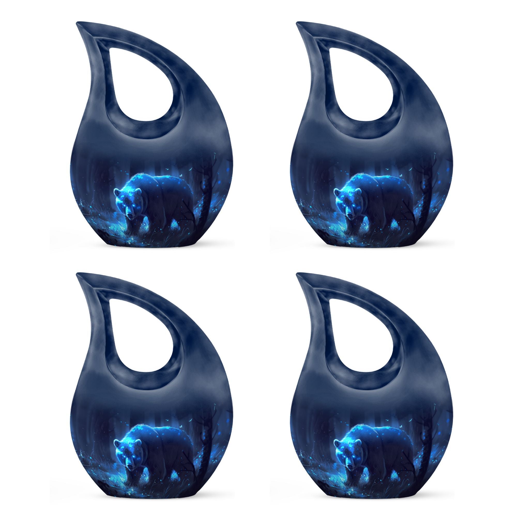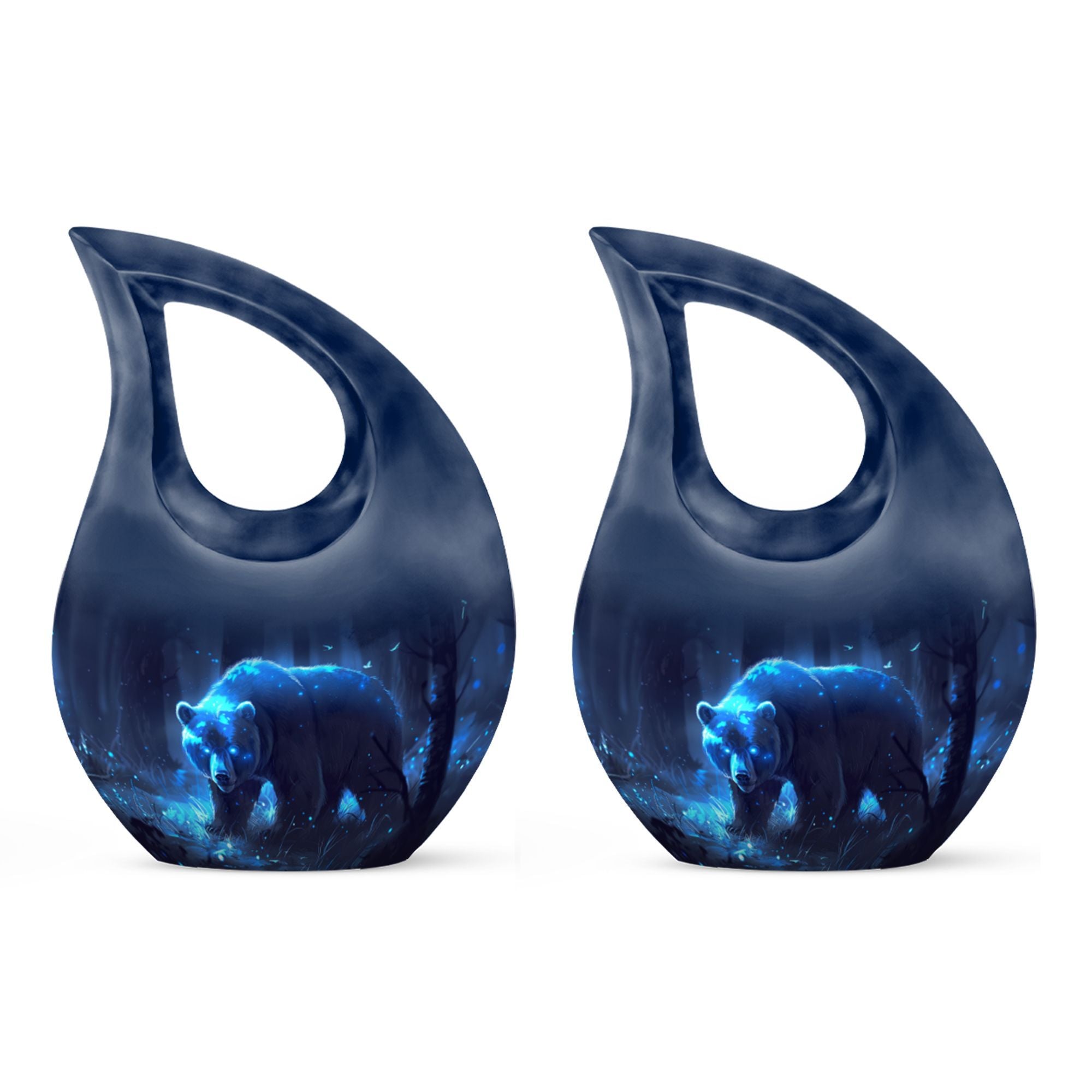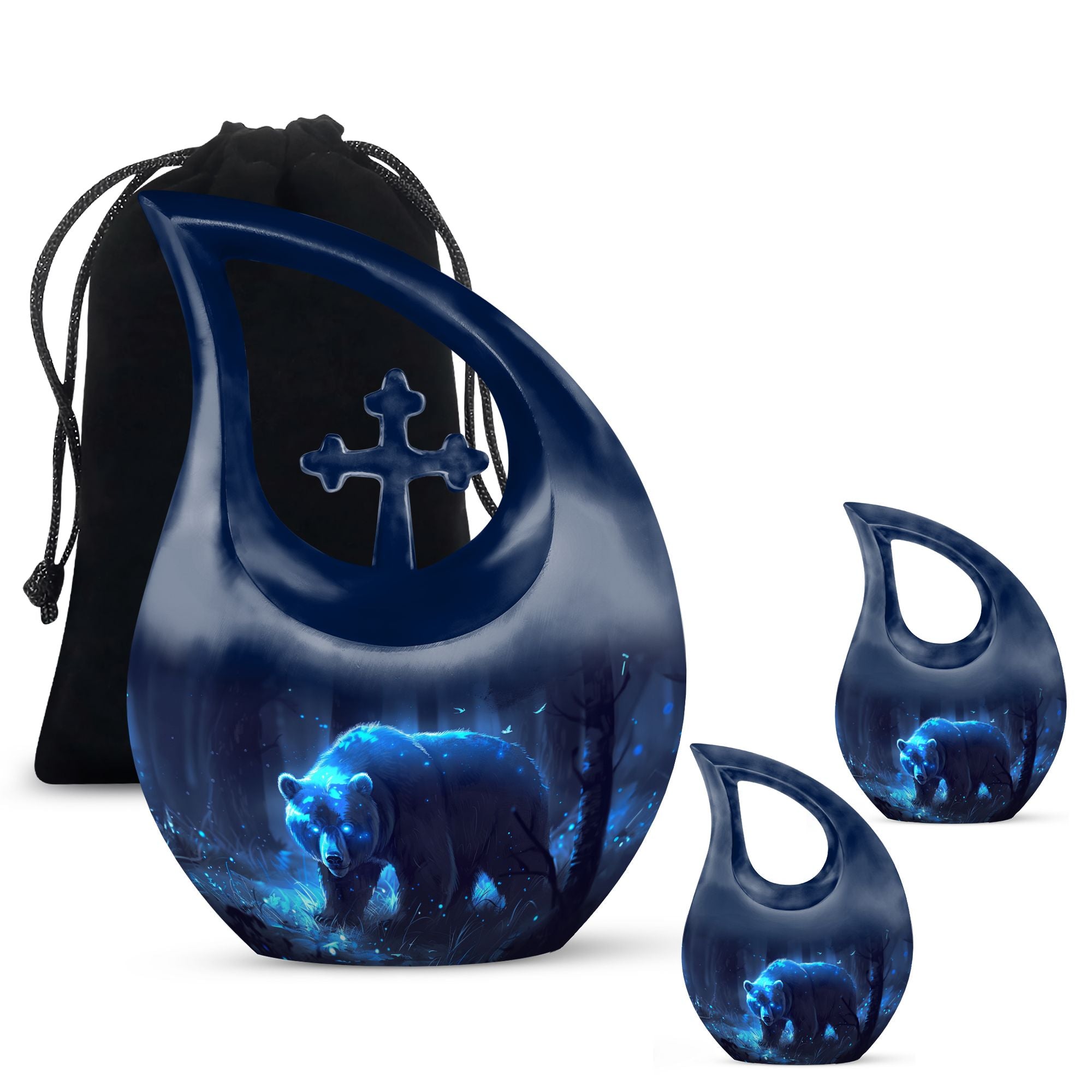 Cherish and honor the memory of a loved one with our beautiful 'Bear Cross Drop' cremation urn. Rendered in high-quality Aluminum, this gracefully constructed Bear Urn offers a unique homage to those who are deeply missed. A tastefully sizable urn designed to measure up to 10 Inches in height and weighs 3.3 pounds, it has a spacious capacity of 200 cubic inches, providing ample room to contain the ashes discretely. It is accompanied by a soft velvet pouch accentuating its unique 'Cross Drop' theme. As a special touch, we offer the ability to personalize this large urn by engraving names on it, making it a truly unique memento of your loved one. Our mission is to provide you with quality urns online, for adults, that will endure the test of time, keeping cherished memories alive while providing comfort and a sense of tranquility. Each of our cremation boxes for adults, allows you the opportunity to remember your loved one in a truly personal way. Trending as 'unique urns for dad', this elegantly themed 'Bear' urn seamlessly blends in with any décor. The 'memorial urns' you choose today become the meaningful heirlooms of tomorrow.