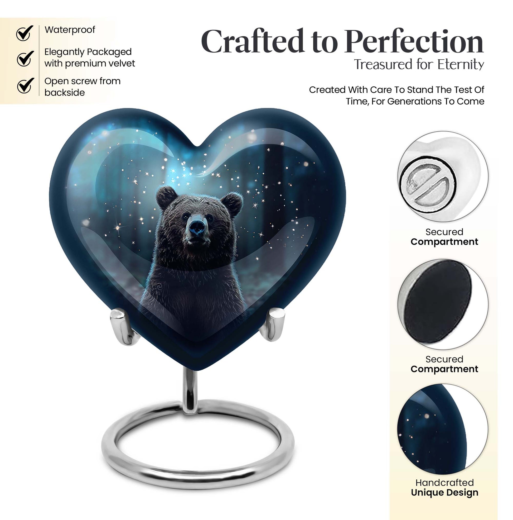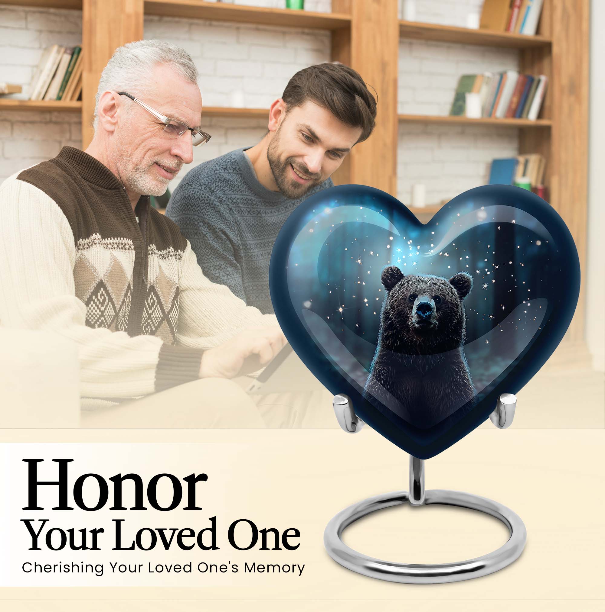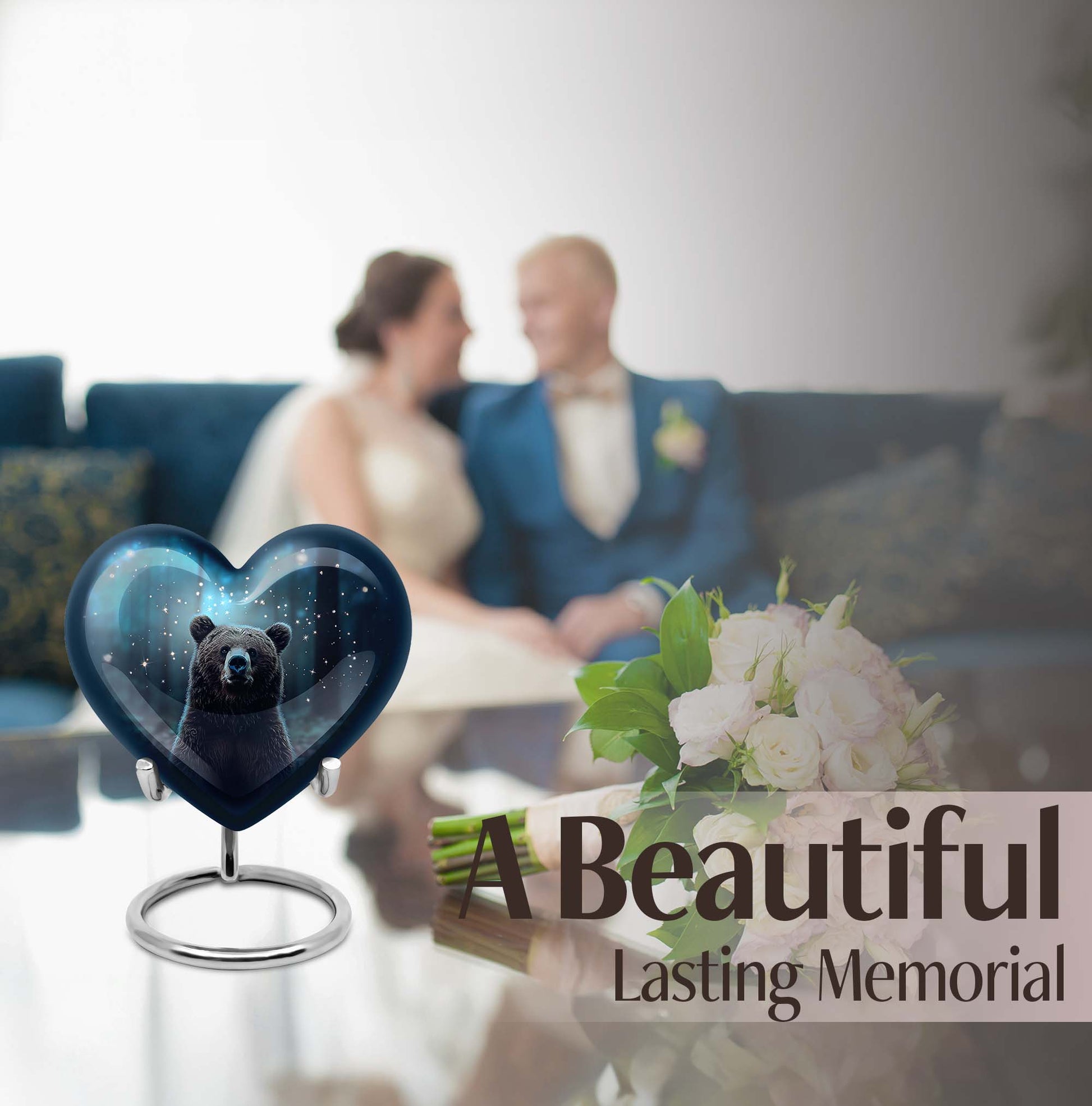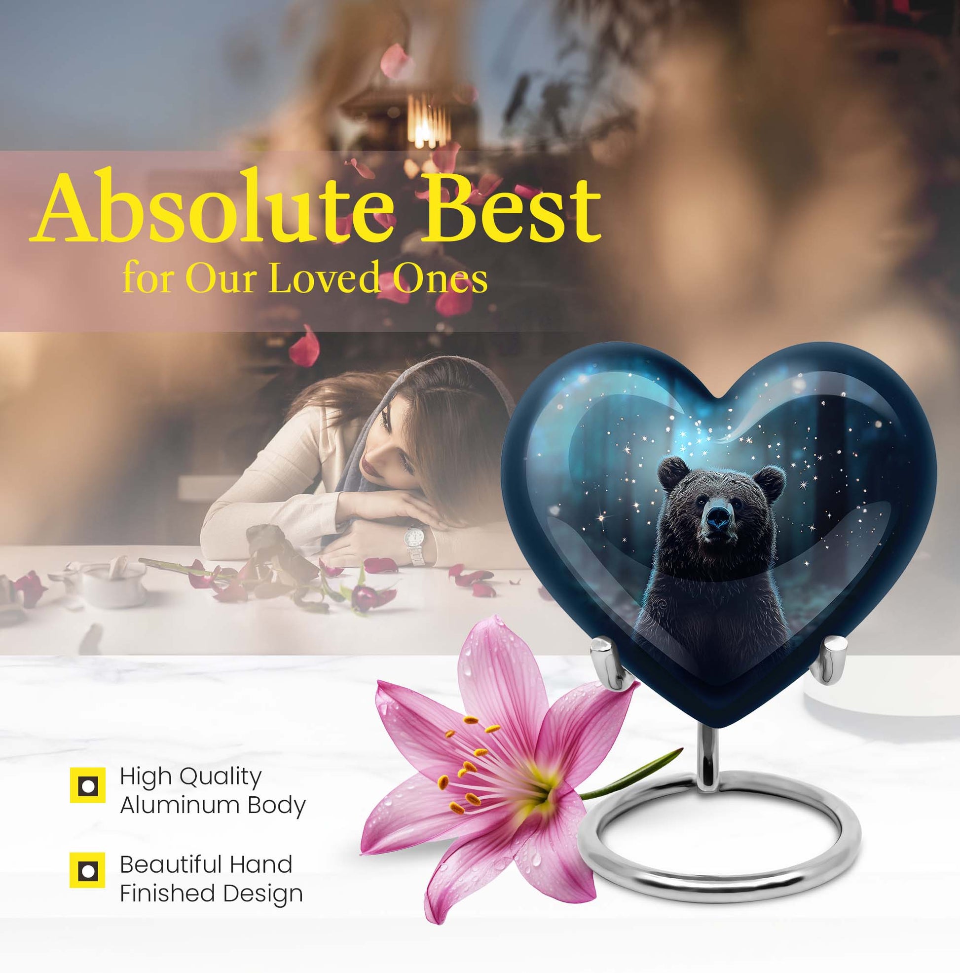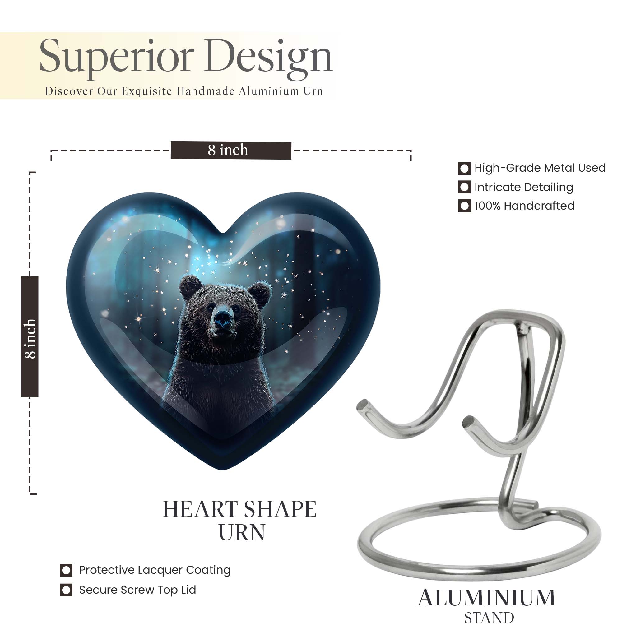Immerse in the tranquillity of our 'Purple Meadow'-themed 'Bear Urn', a large aluminium funeral urn for ashes, designed for men. This exquisite memorial urn stands at 10 inches in size, making it a resilient tribute to your loved one's final resting place. With a weight of 3.3 pounds, its 200 cubic inch capacity ensures ample space for your cherished one's remains. Delivered with a velvet pouch for secure containment of ashes, our funerary urn showcases depth in both its intricate theme and comforting purpose. What sets our Bear Urn apart is the personalised touch. You have the option to emboss engraved names, thereby fostering a deeper connection between you and the departed. Whether used for in-house display or burial, this unique piece is more than just a funeral urn for men. It serves as an eternal homage, embracing the traditional charm reflective in memorial human urns for ashes, urn human funeral urns, as well as metal burial urns. So, pay your respects in a memorable way with our eloquently crafted bear urn.