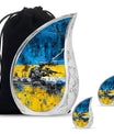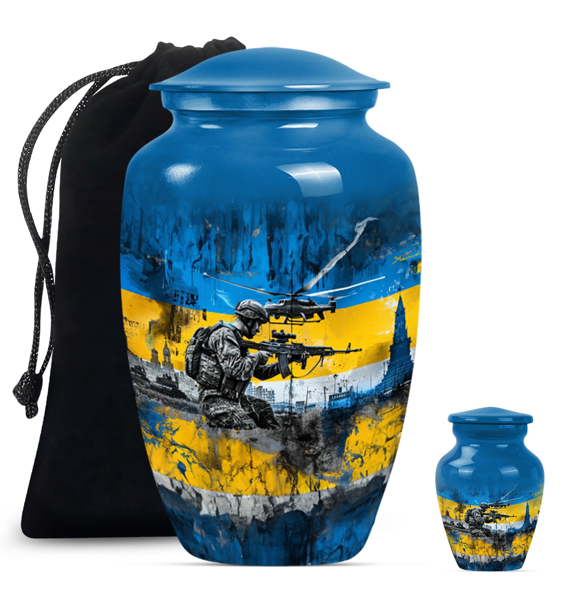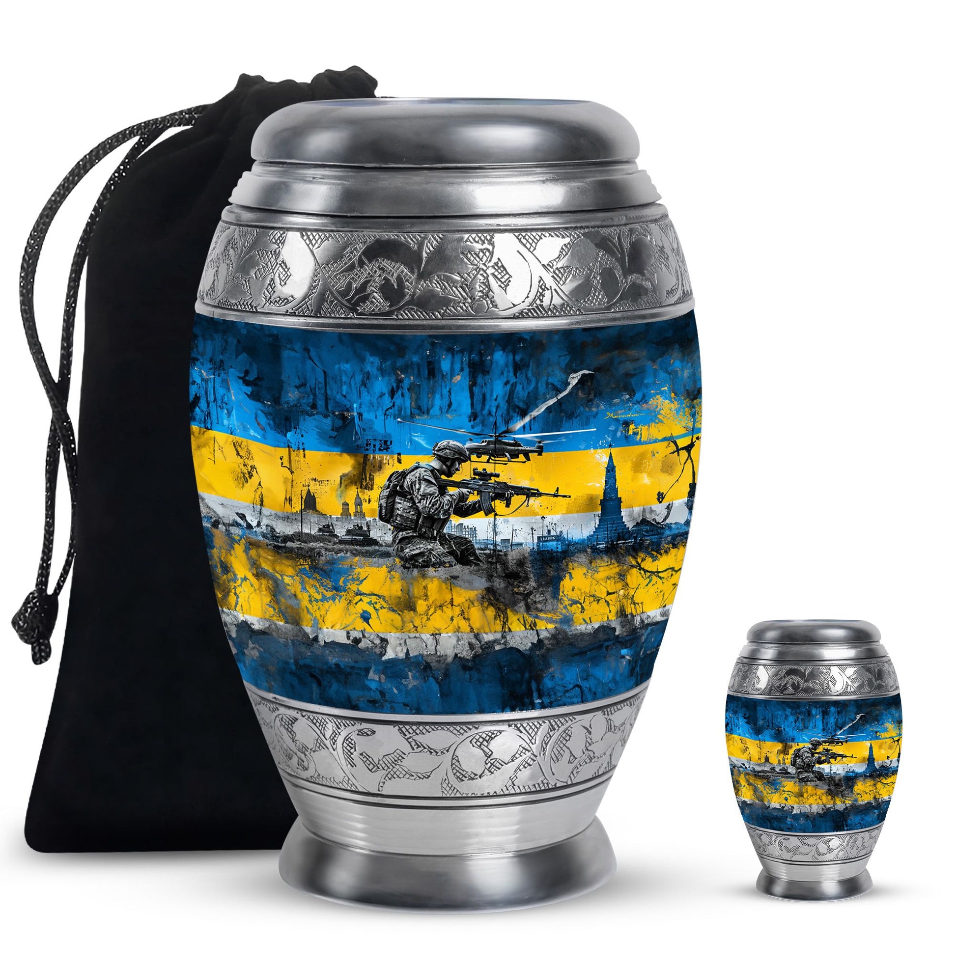 This **cremation urn for human ashes** **is a fitting tribute, preserving the legacy of a hero with elegance**.