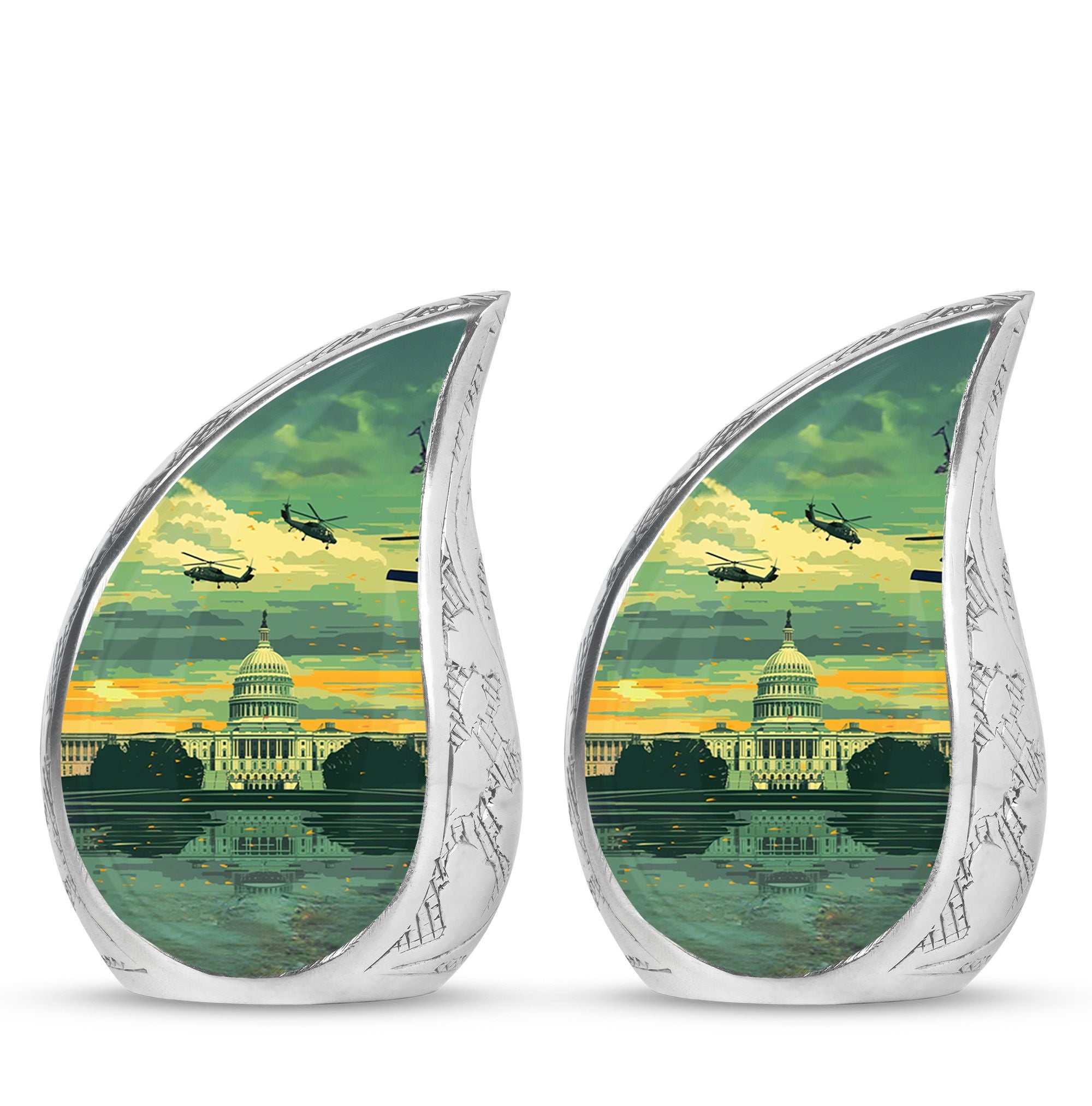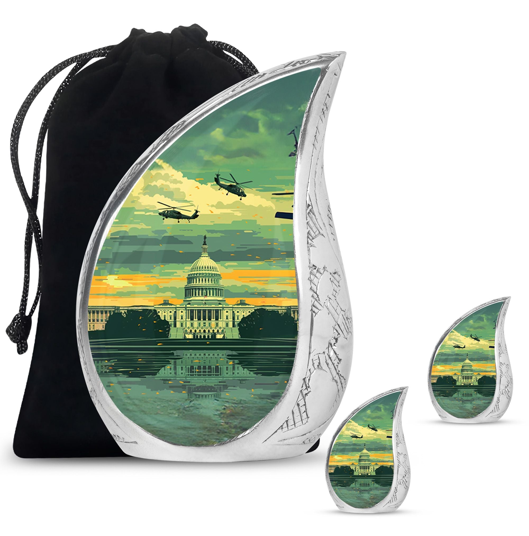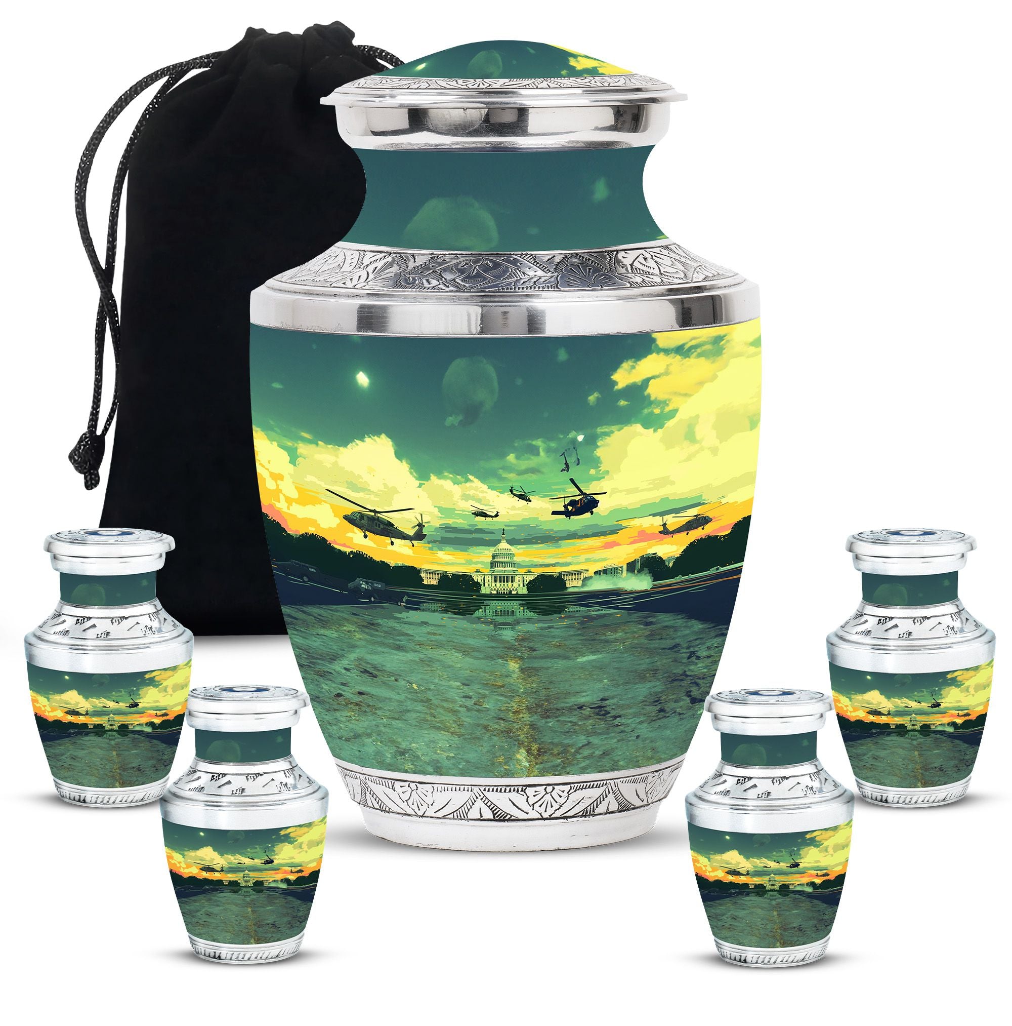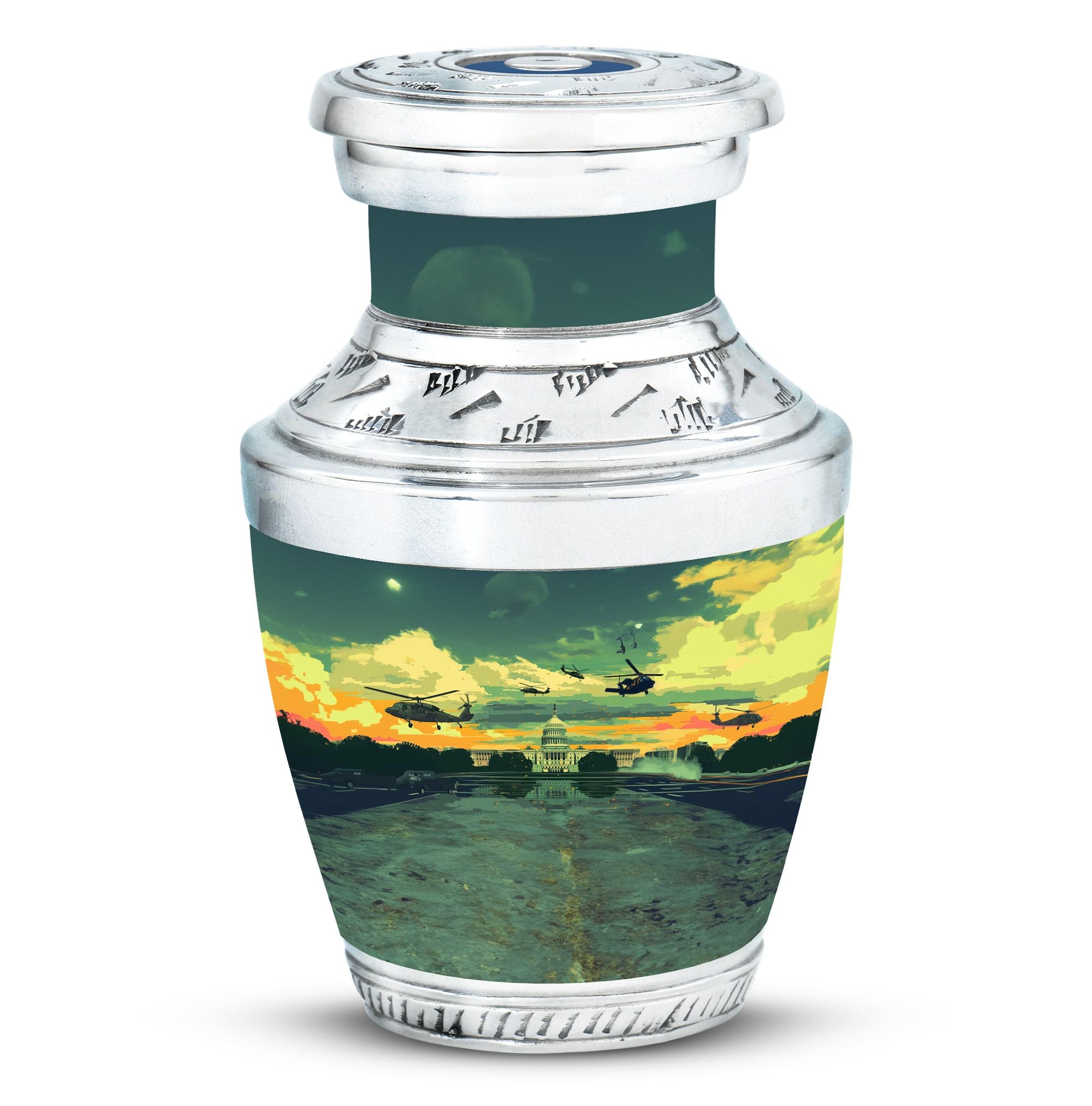 This **cremation urn for human ashes** **represents the bravery, sacrifice, and dedication of those who served their country**.