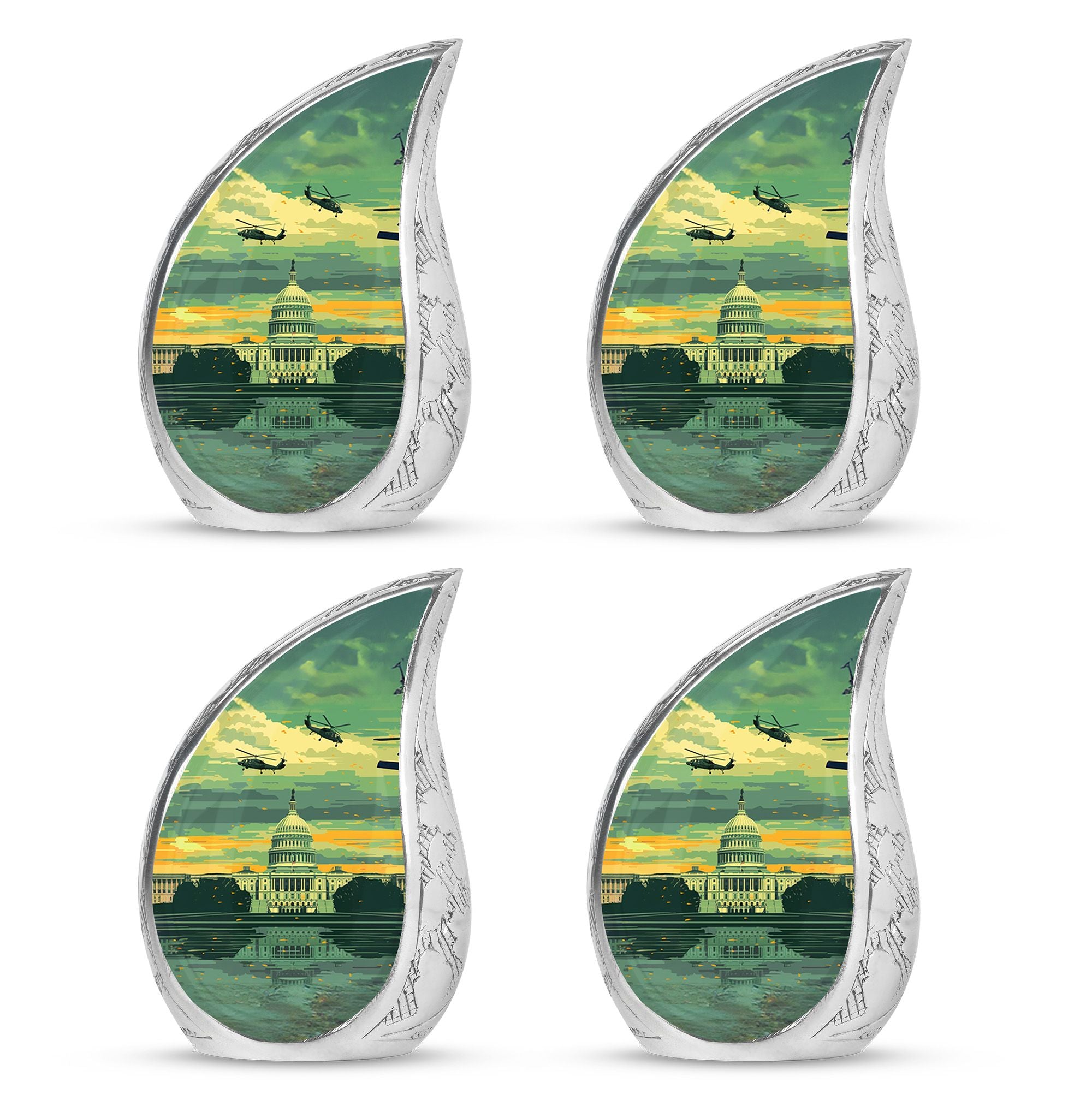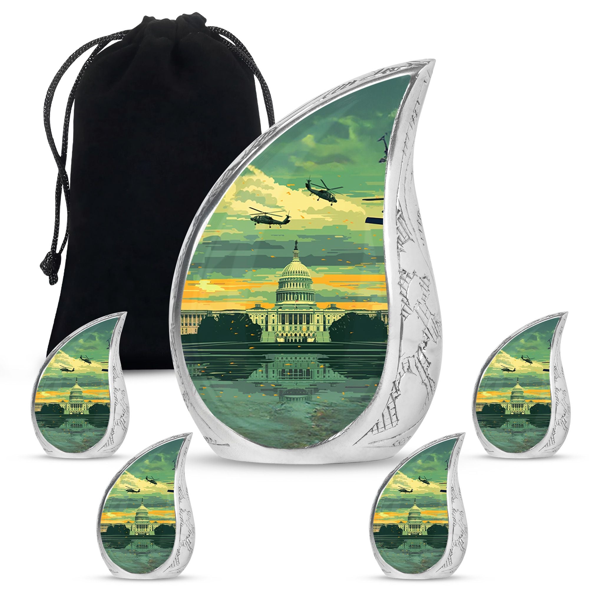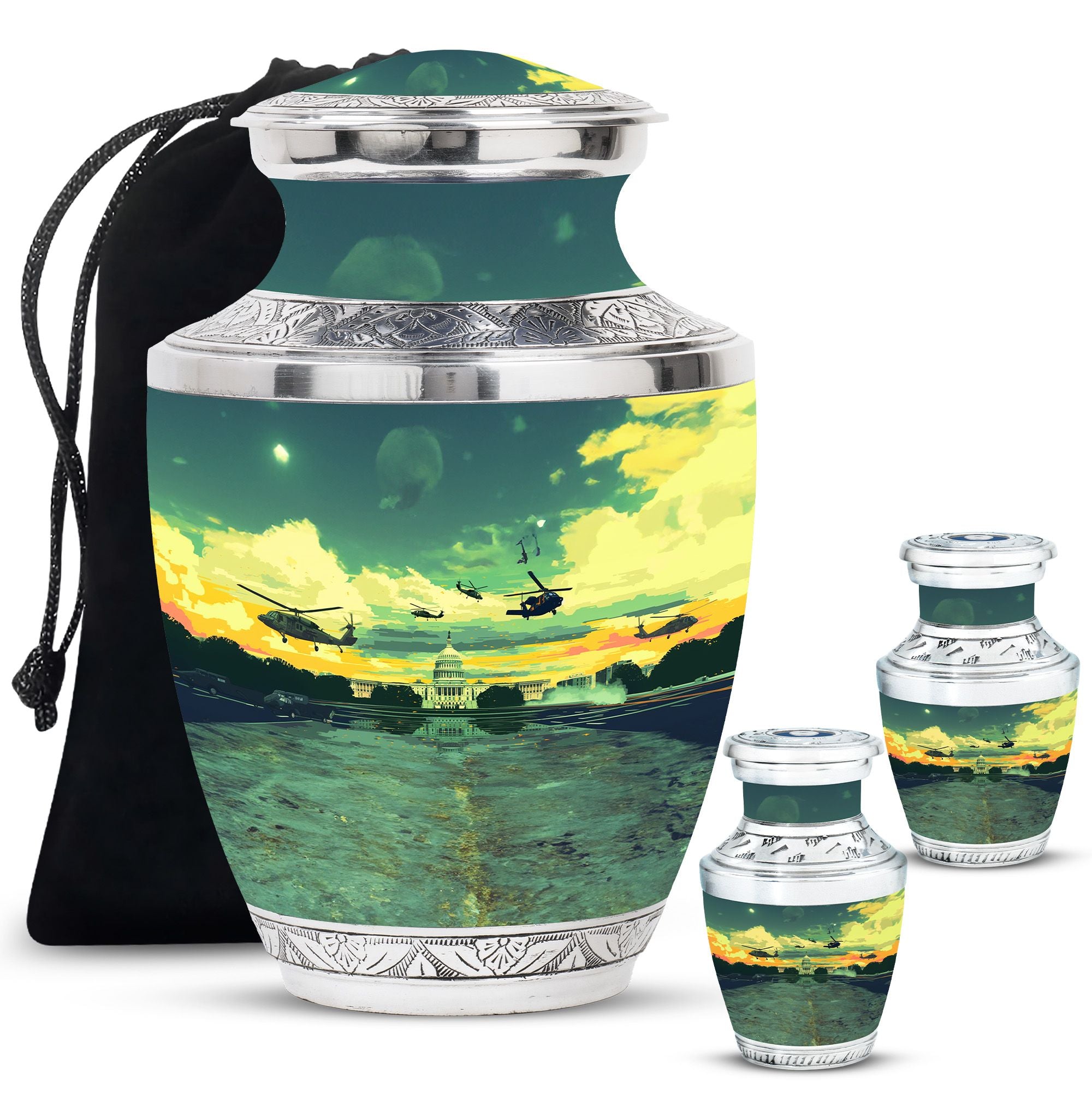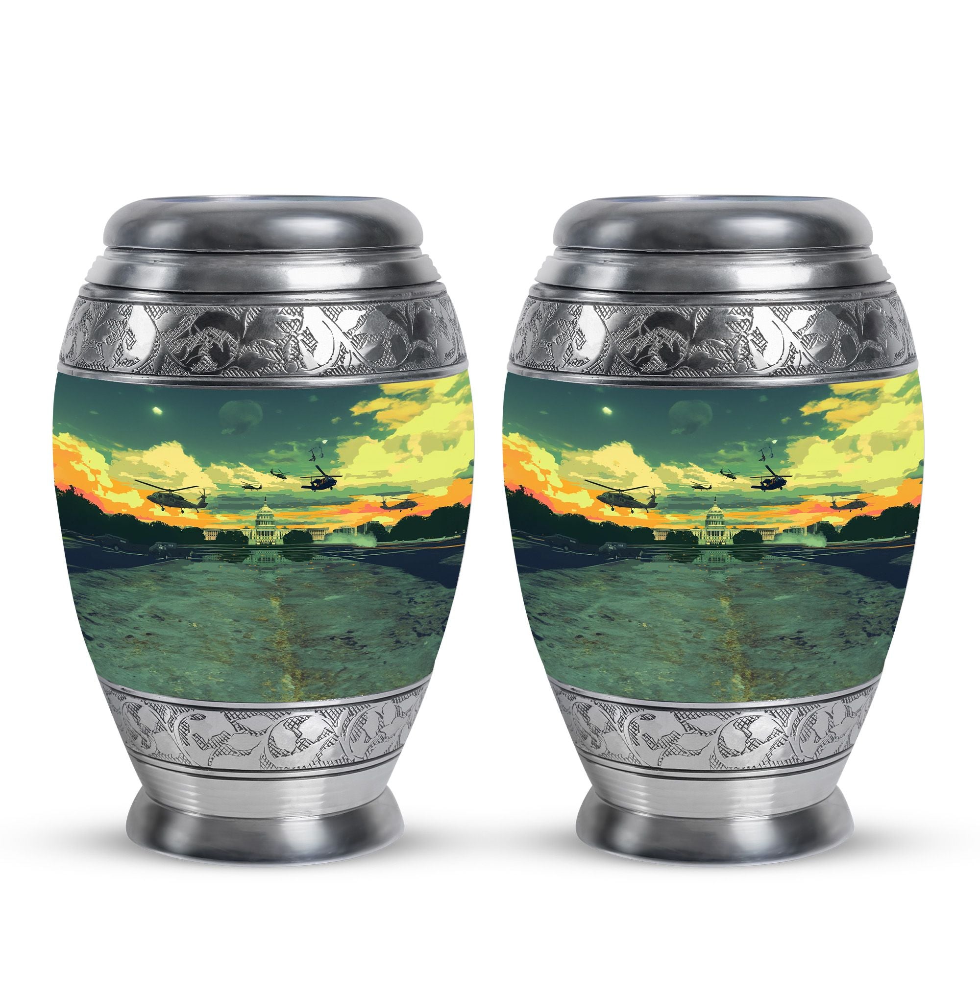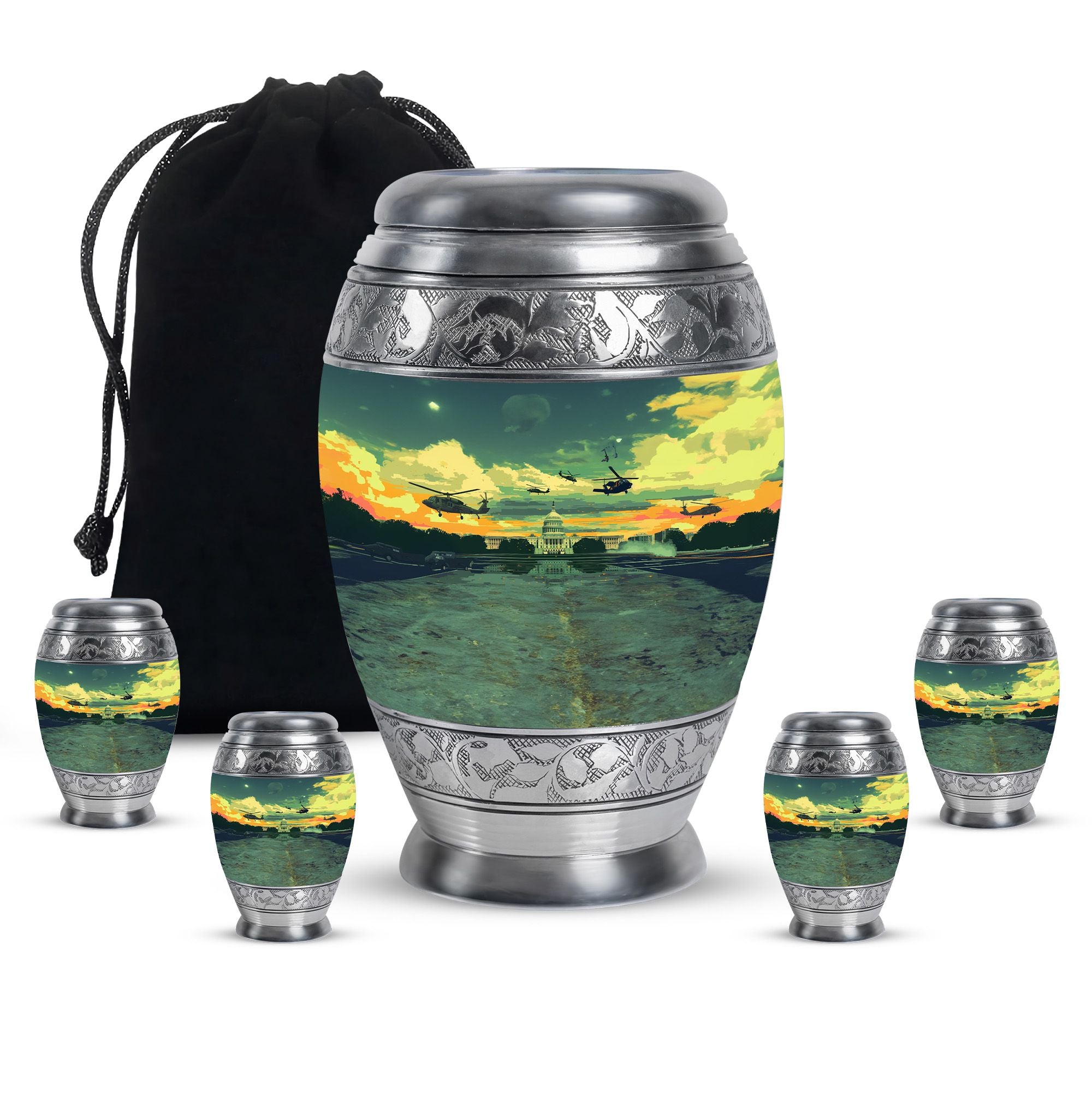 This **cremation urn for human ashes** **represents the bravery, sacrifice, and dedication of those who served their country**.