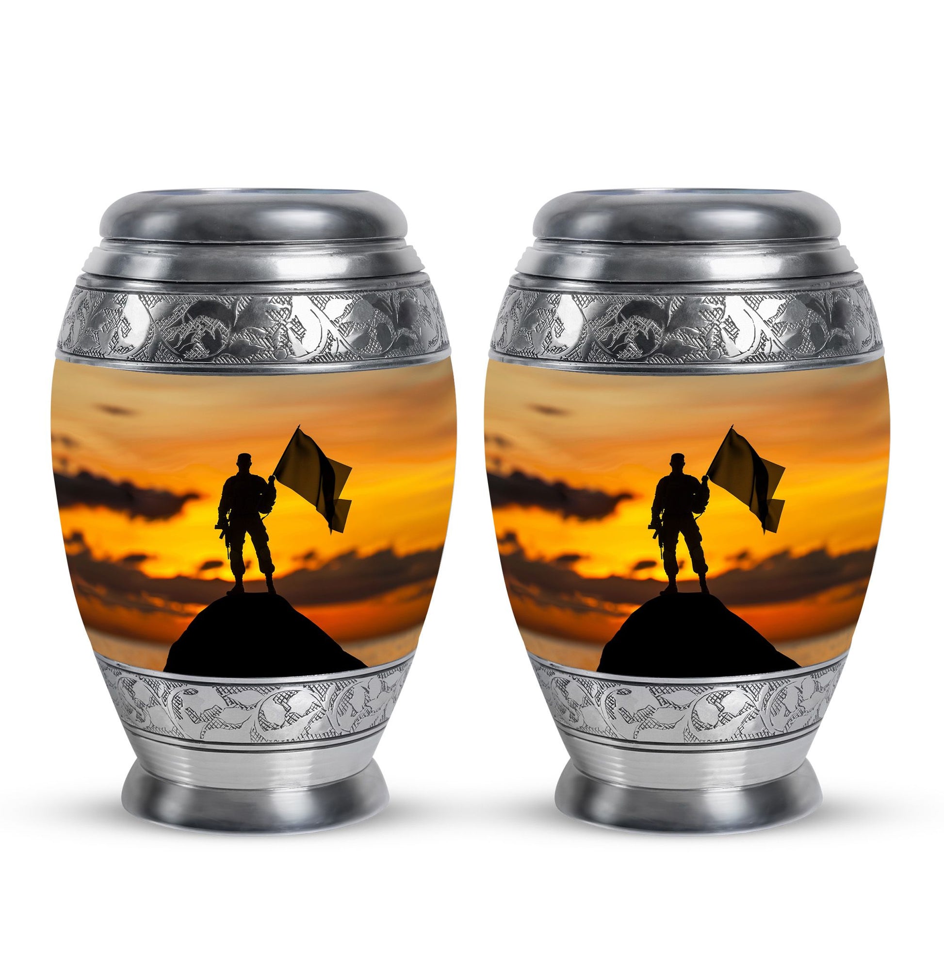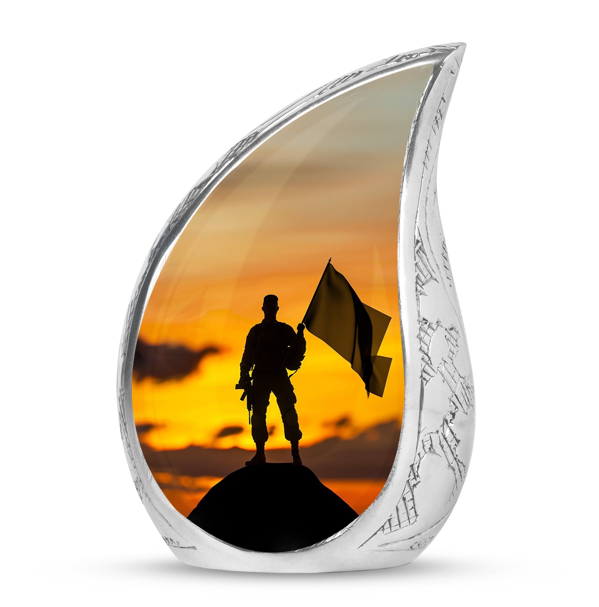This **cremation urn for human ashes** **honors the memory of a courageous individual with elegance and dignity**.