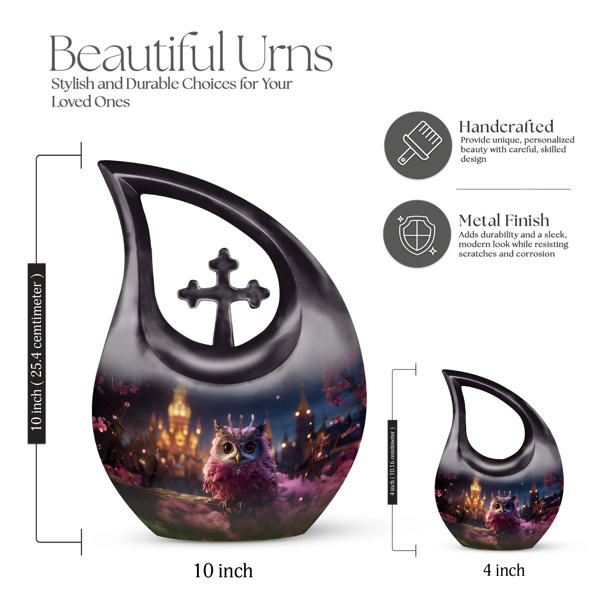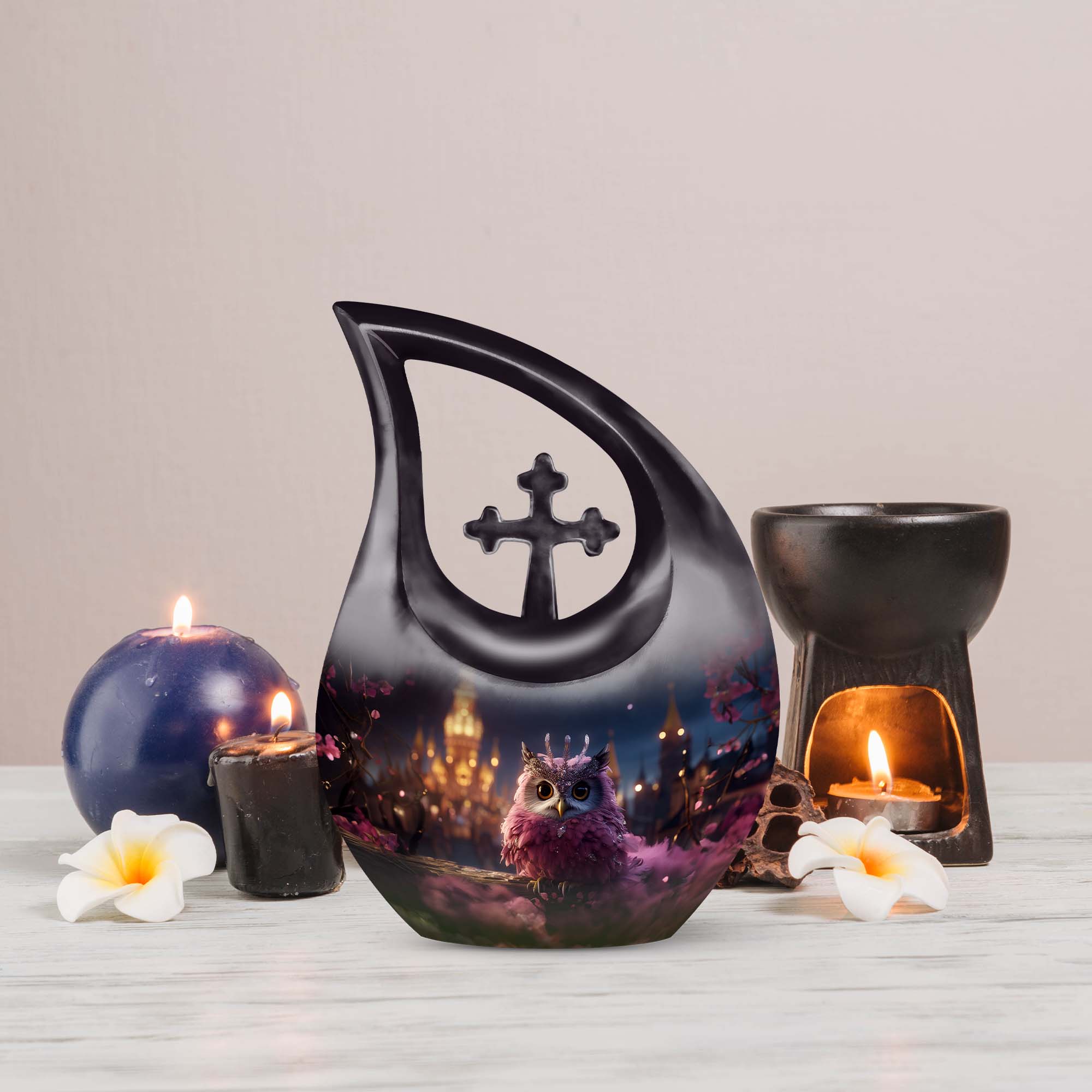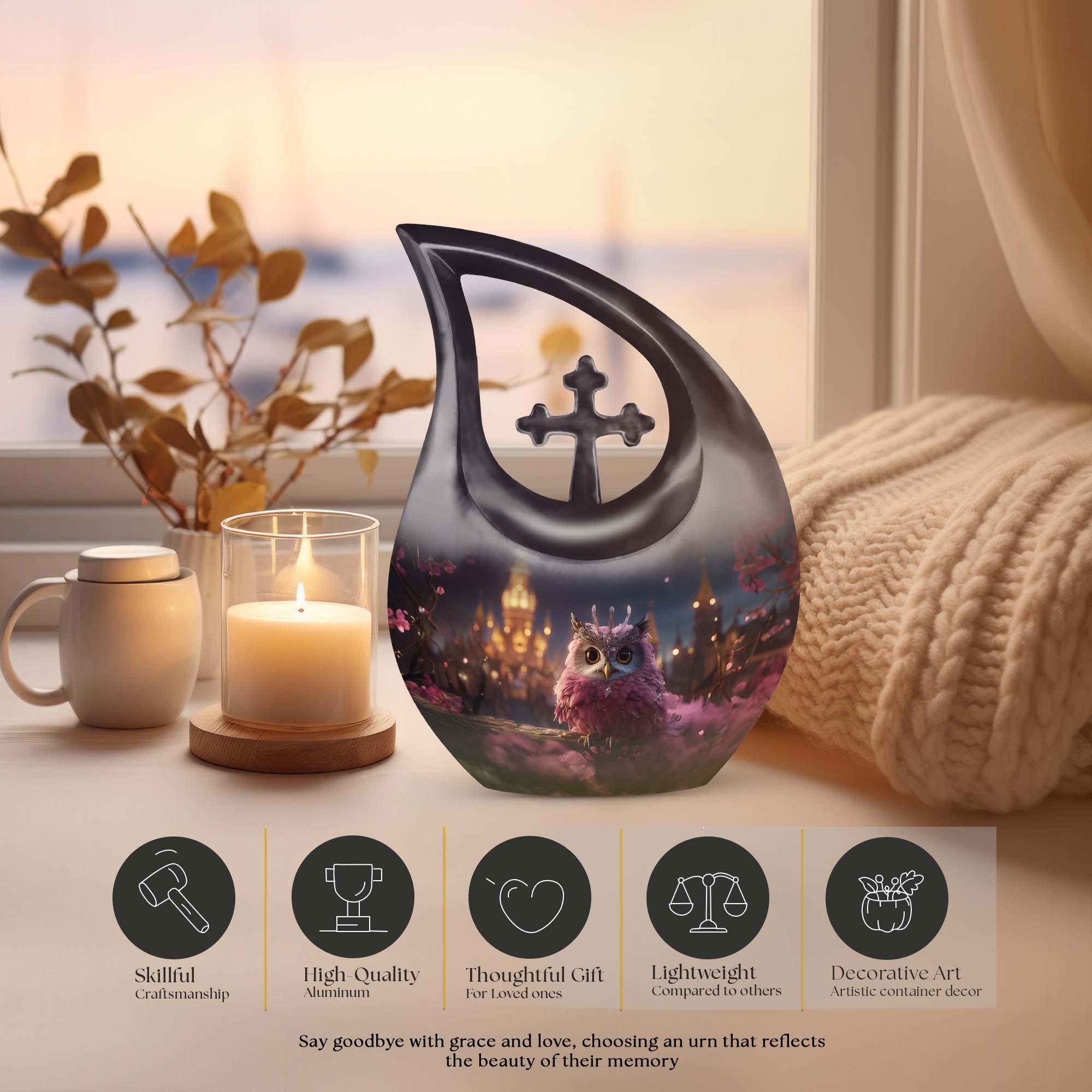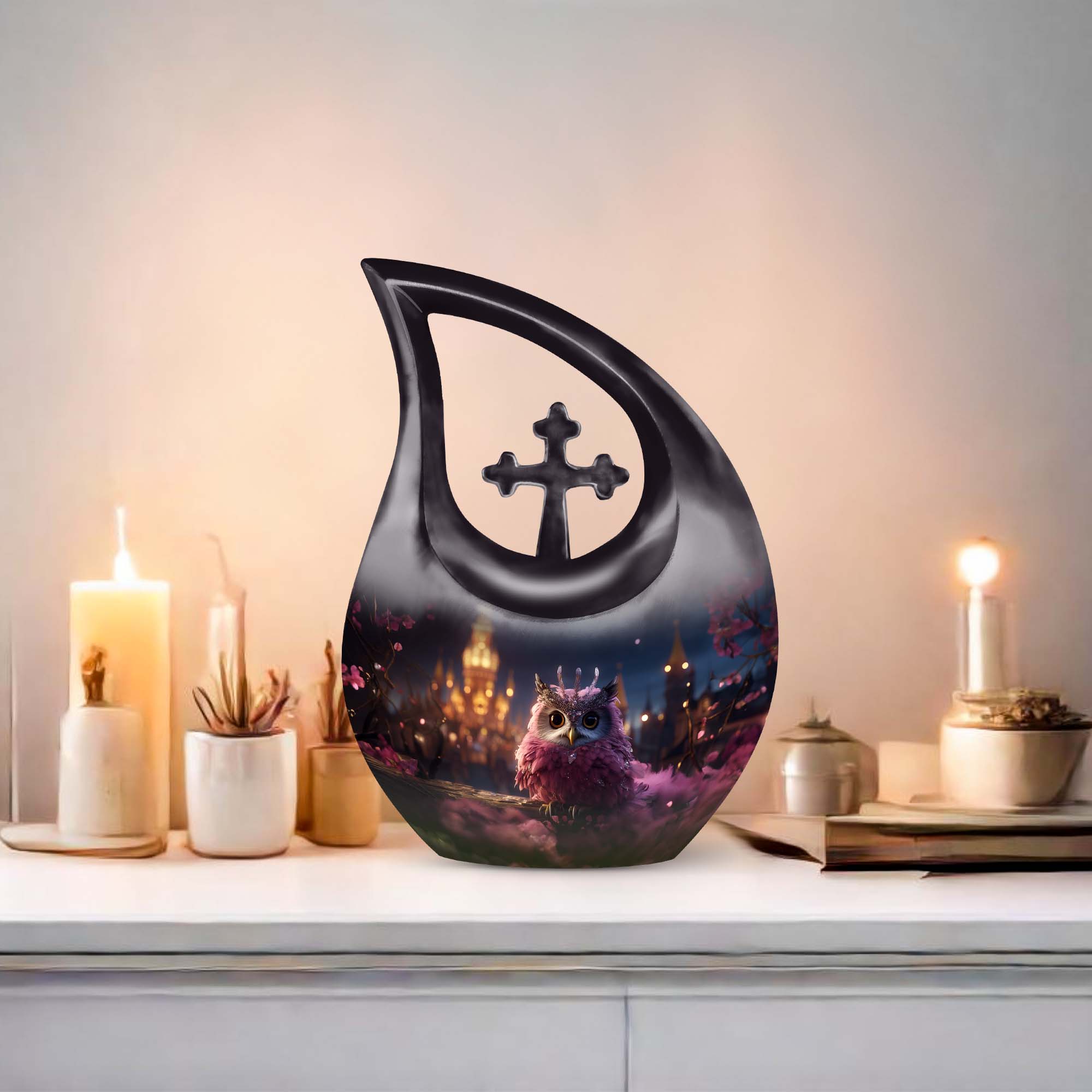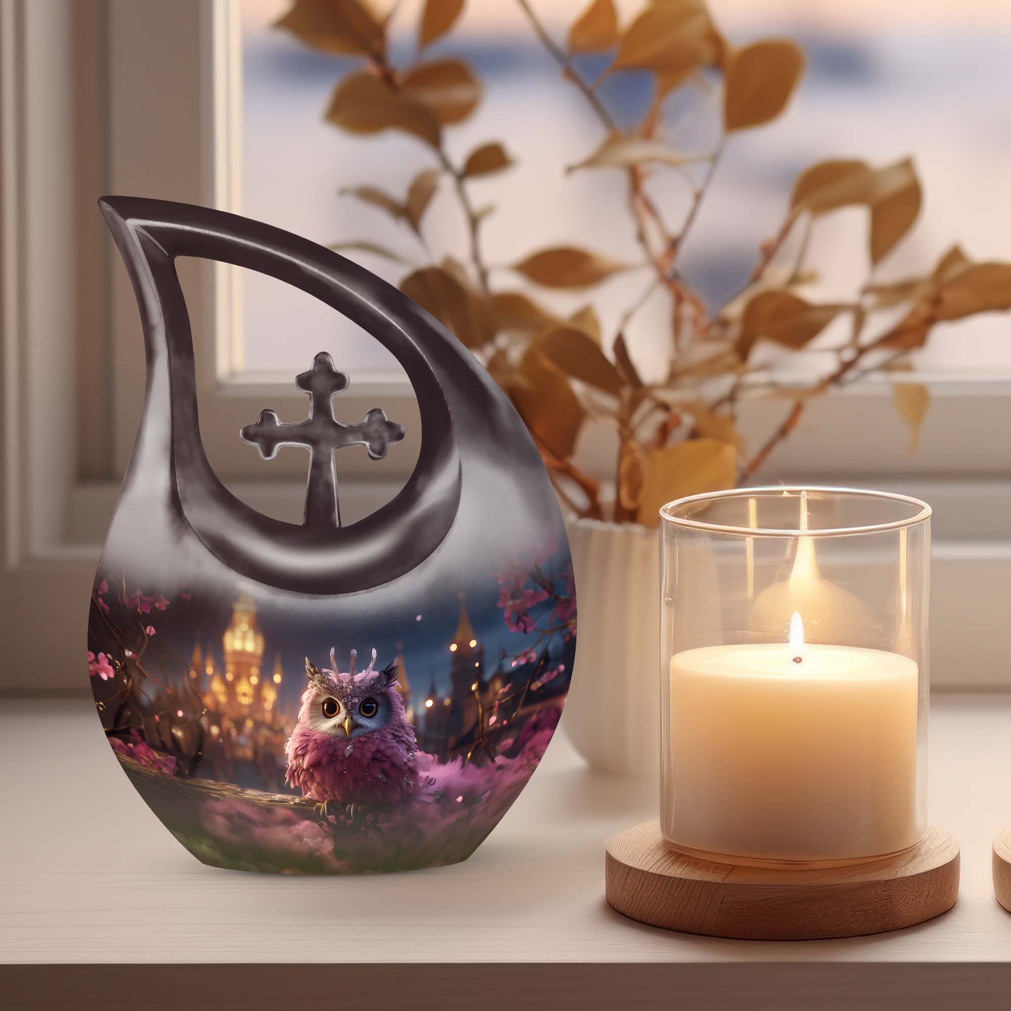 Celebrate a cherished soul with the Pink Owl Memorial Urn for Women, a radiant symbol of eternal love, protection, and serenity. Crafted to honor a beloved mother or woman, this large adult urn combines strength with beauty, providing a heartfelt resting place for precious memories.