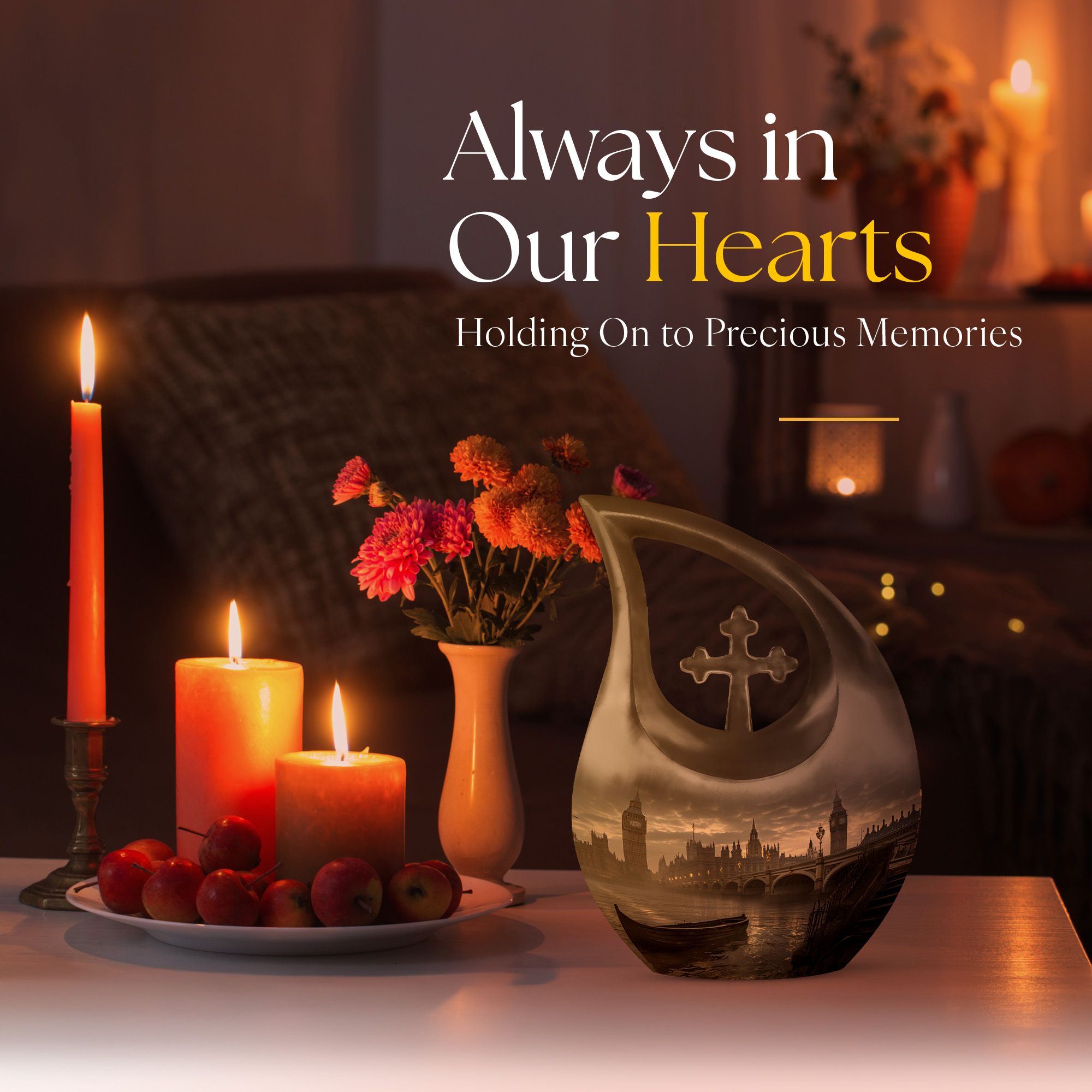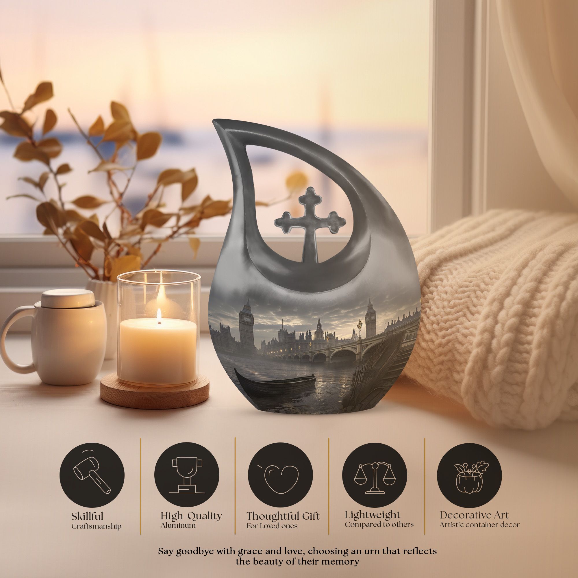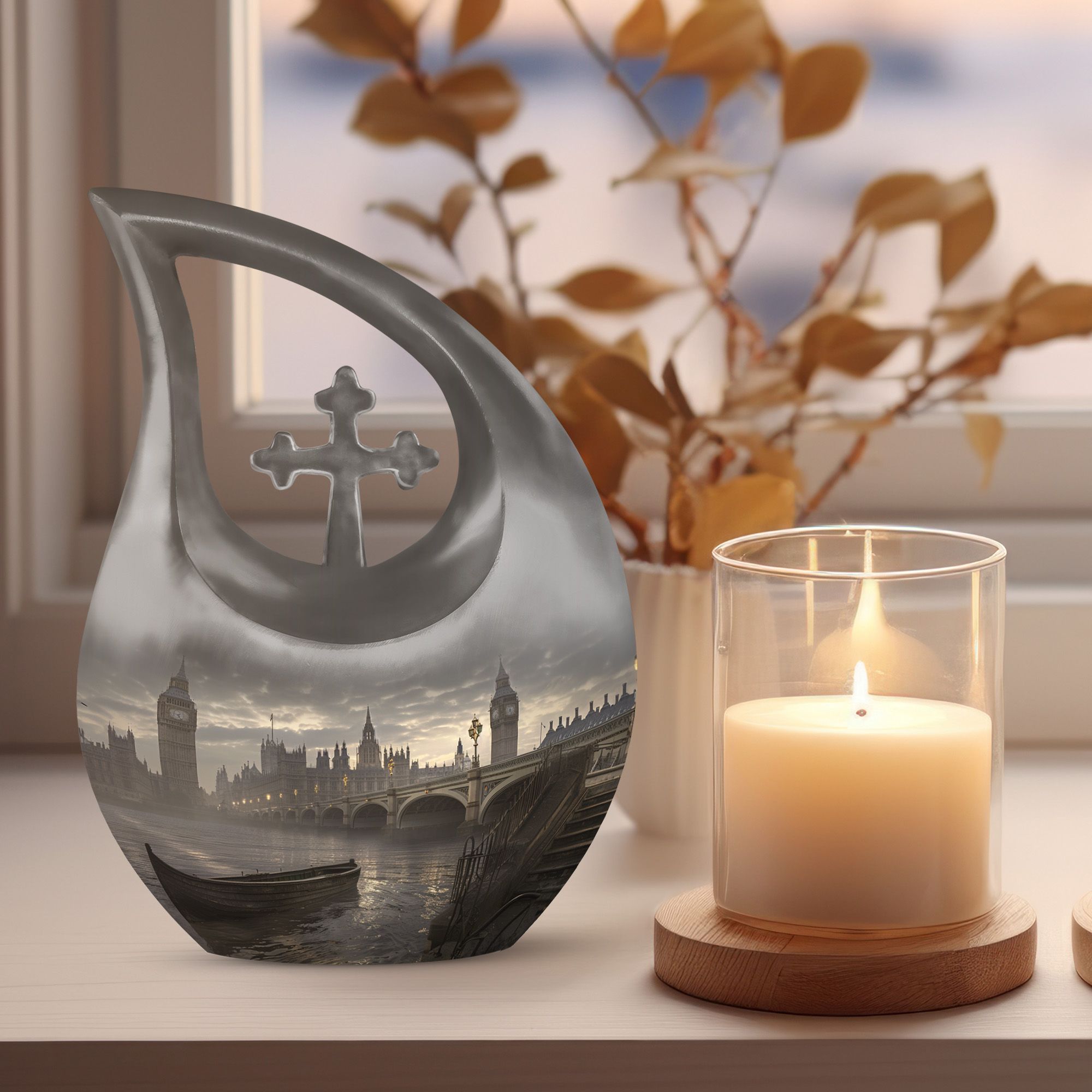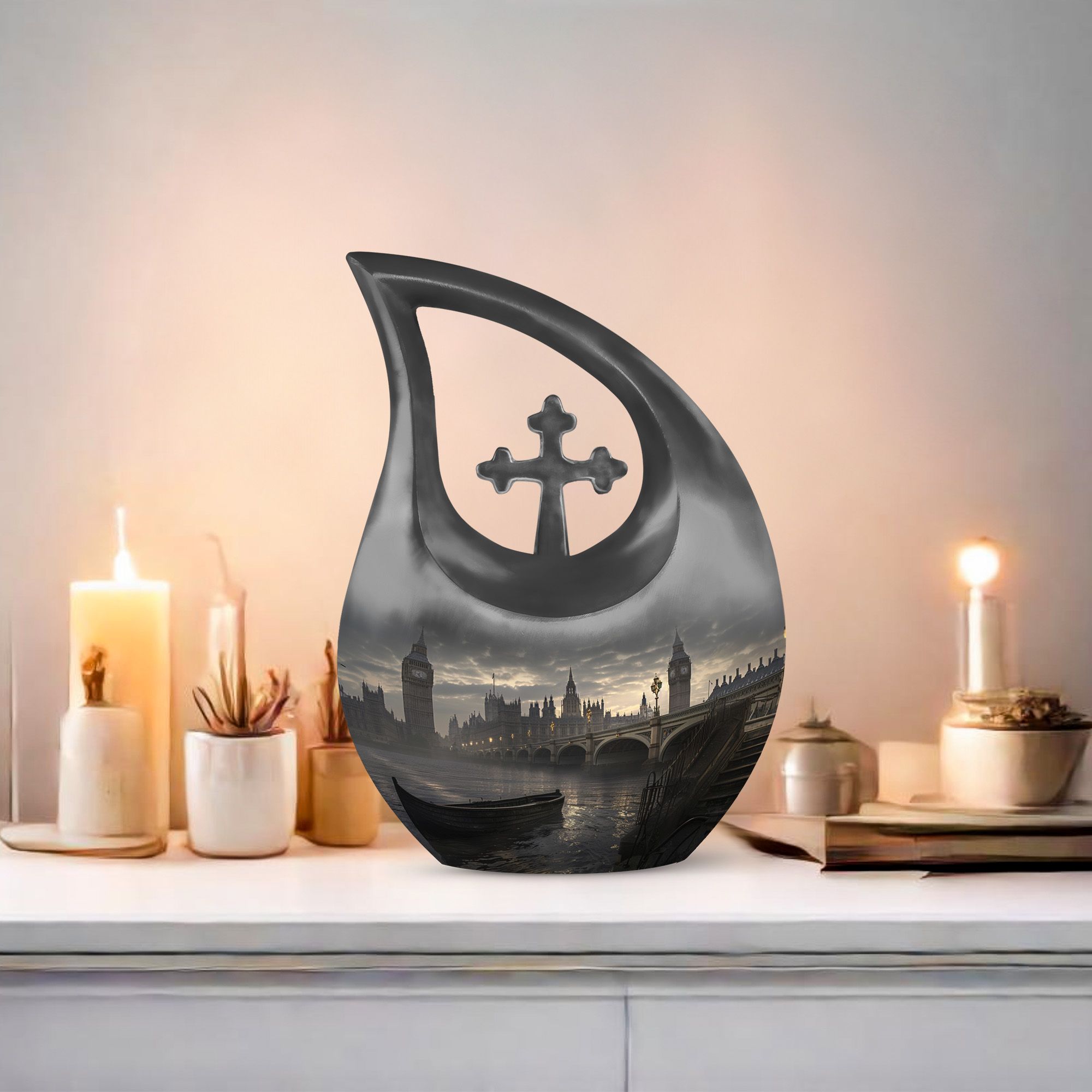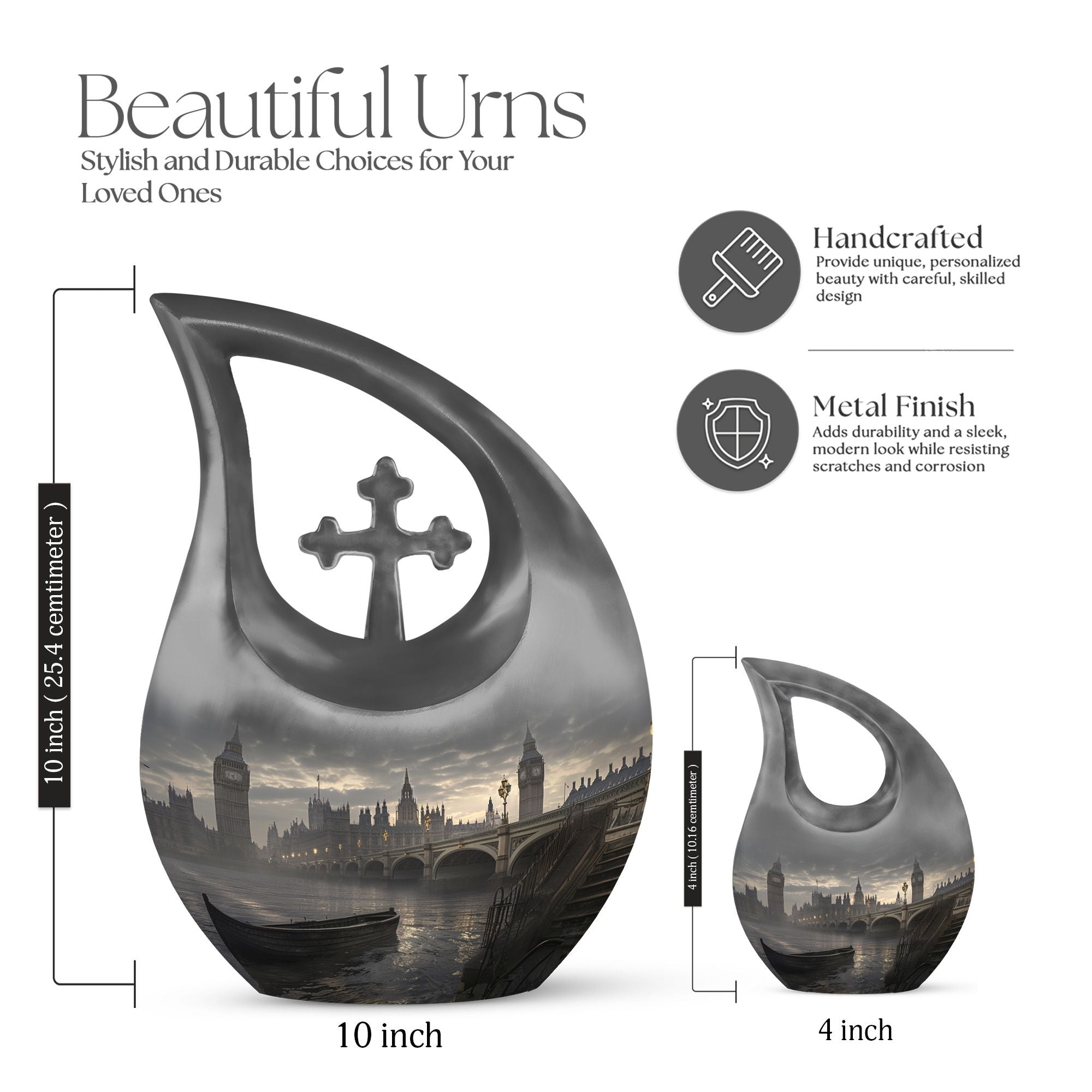 Crafted from durable aluminium, this 10 inch urn features a dramatic gothic city skyline with bold, intricate detailing. Its secure screw-top lid ensures ashes remain protected, making it a reliable choice for those seeking men urns for human ashes, urn ashes men, or alternative memorials such as women adult urn, adult urns women, or beautiful urns women. This large urn set includes matching keepsake minis, perfect for families who want tiny urns for women & men, small urns women, or meaningful ashes keepsake women pieces to share among loved ones. The design resonates deeply with those seeking elegant urns women human ashes or versatile remembrance pieces.