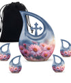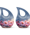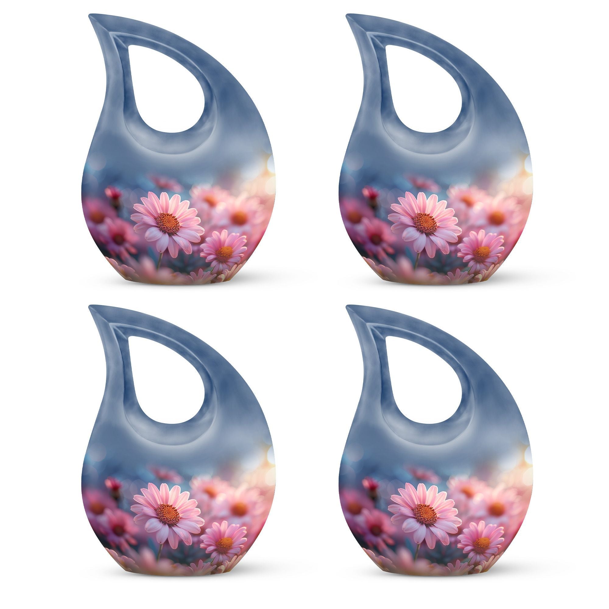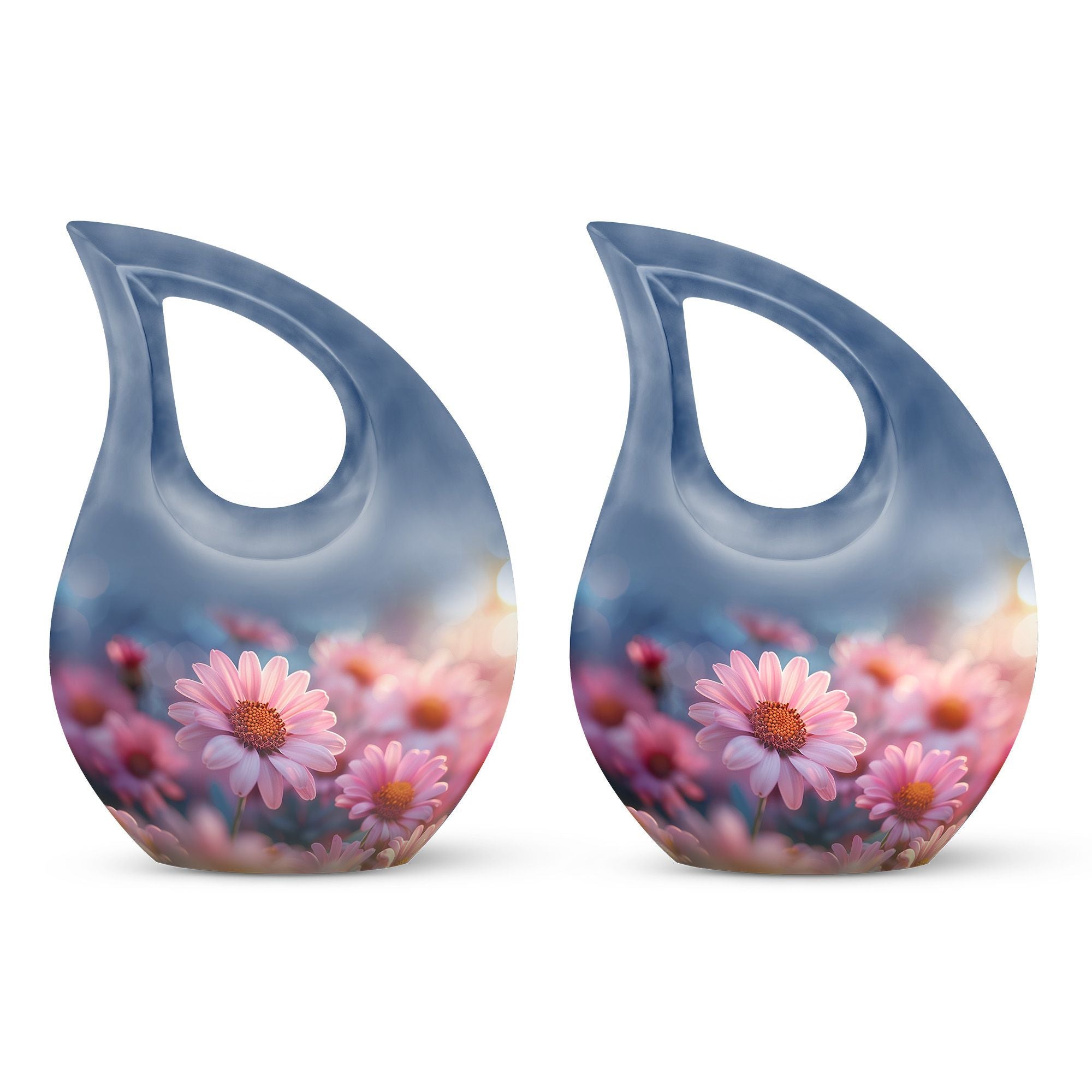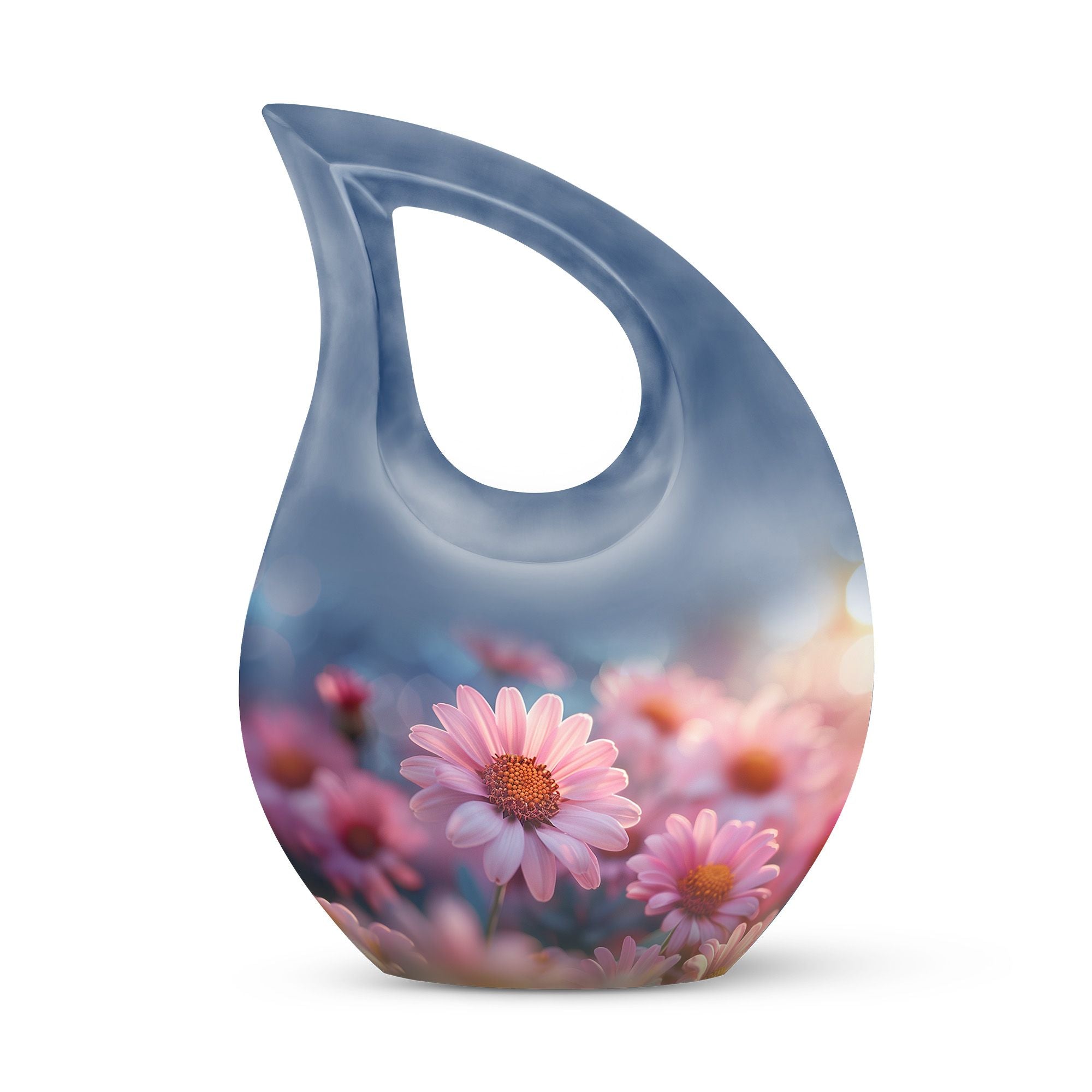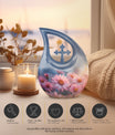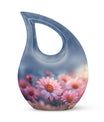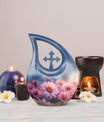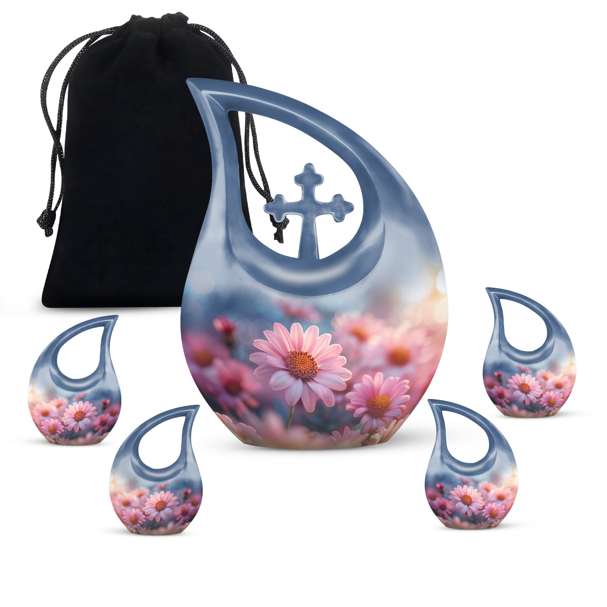 Cherish and honor your loved one's memory with 'The Blush Of Urn', a modern urn of thoughtful design. This 10-inch large urn is elegantly crafted from aluminium, offering both durability and grace. A touching memorial urn, it is adorned with the spiritual symbol, the Cross Drop, as its core theme. Its 200 cubic inch capacity ensures enough space for ashes while keeping the urn lightweight at only 3.3 pounds. Included in your package is a velvet pouch for respectful and discrete containment of the ashes. The product allows for customization; engrave your loved one's name to create an everlasting bond. Introducing this urn into your memorial ceremonies aids the healing process and allows for a serene and dignified tribute. Highly searched phrases such as 'Ashes Holders For Cremation', 'Burial Urns For Human Ashes', 'Small Urns For Ashes' and 'Urn For Father'S Ashes' are what makes the 'The Blush of Urn' the ideal choice when seeking modern urns.