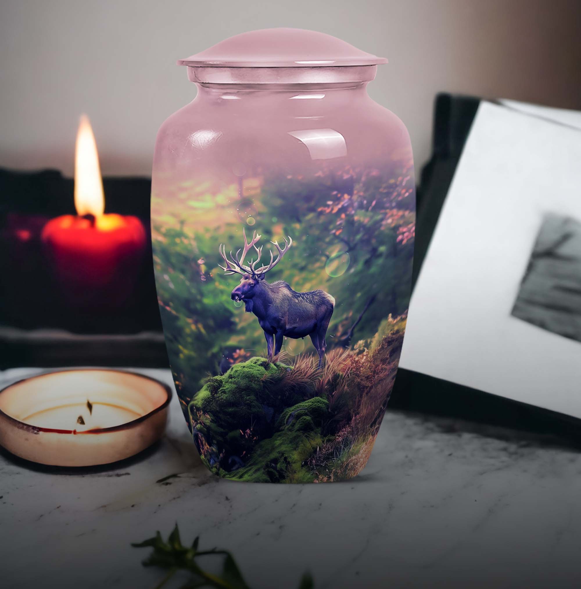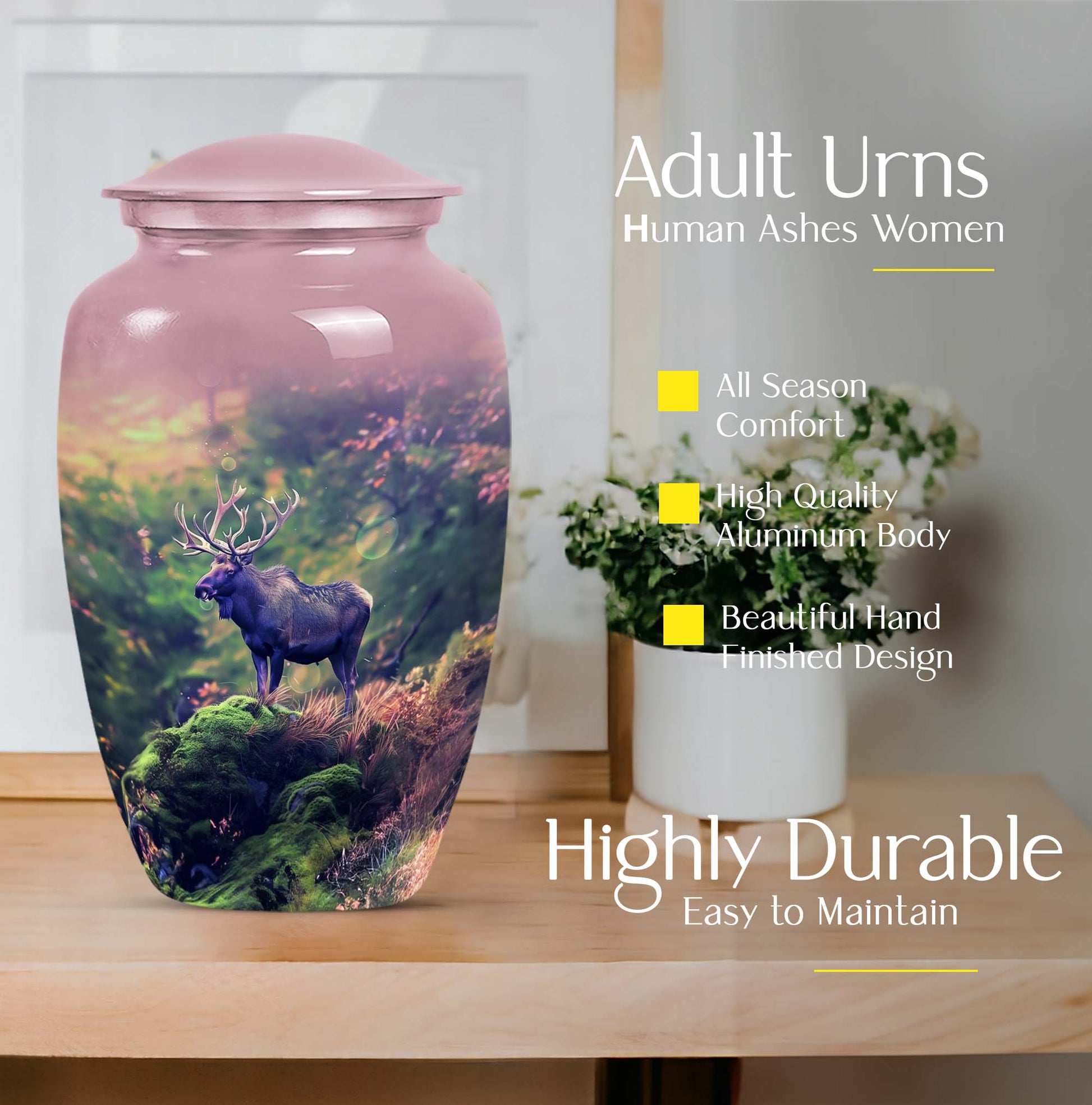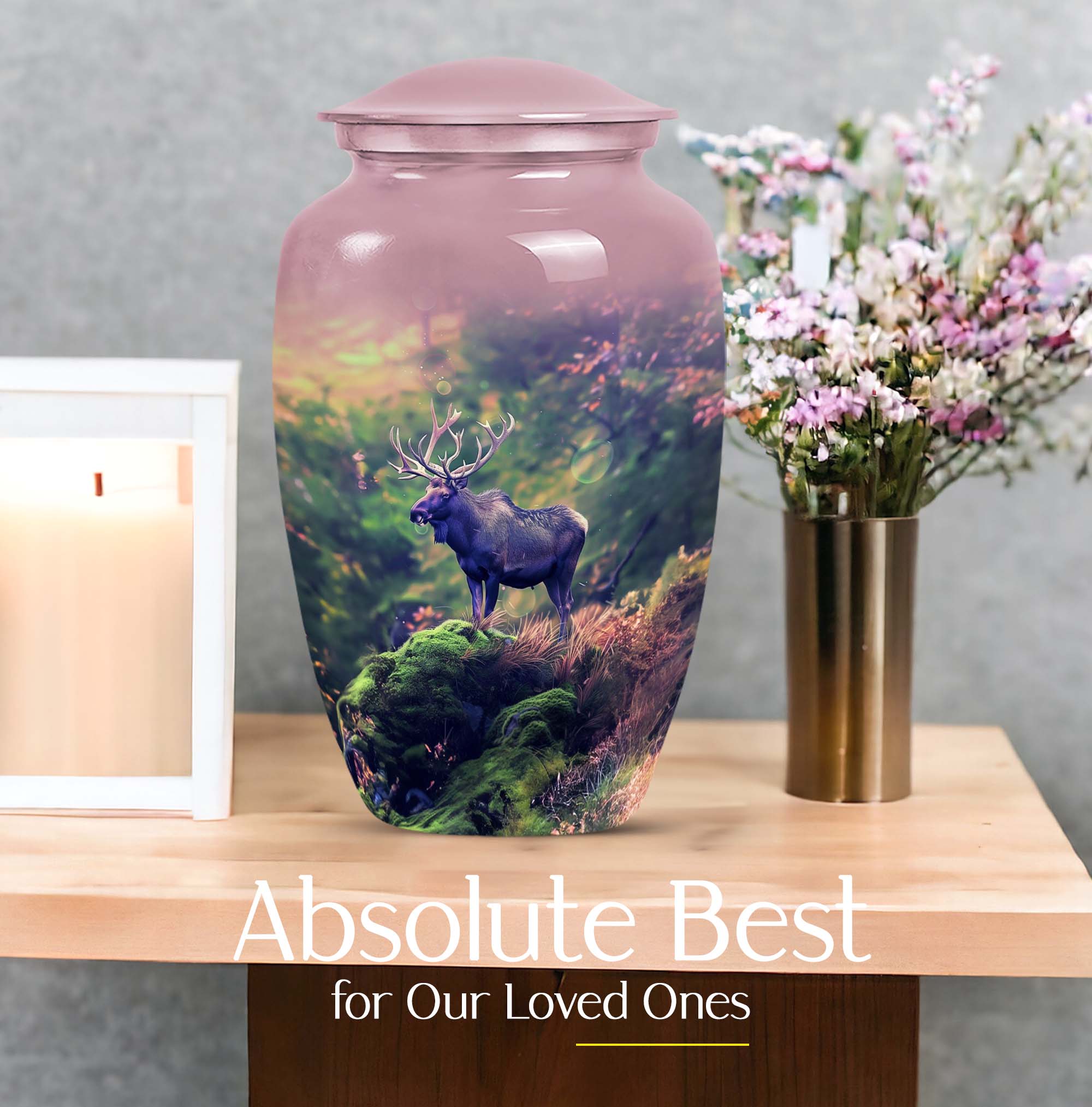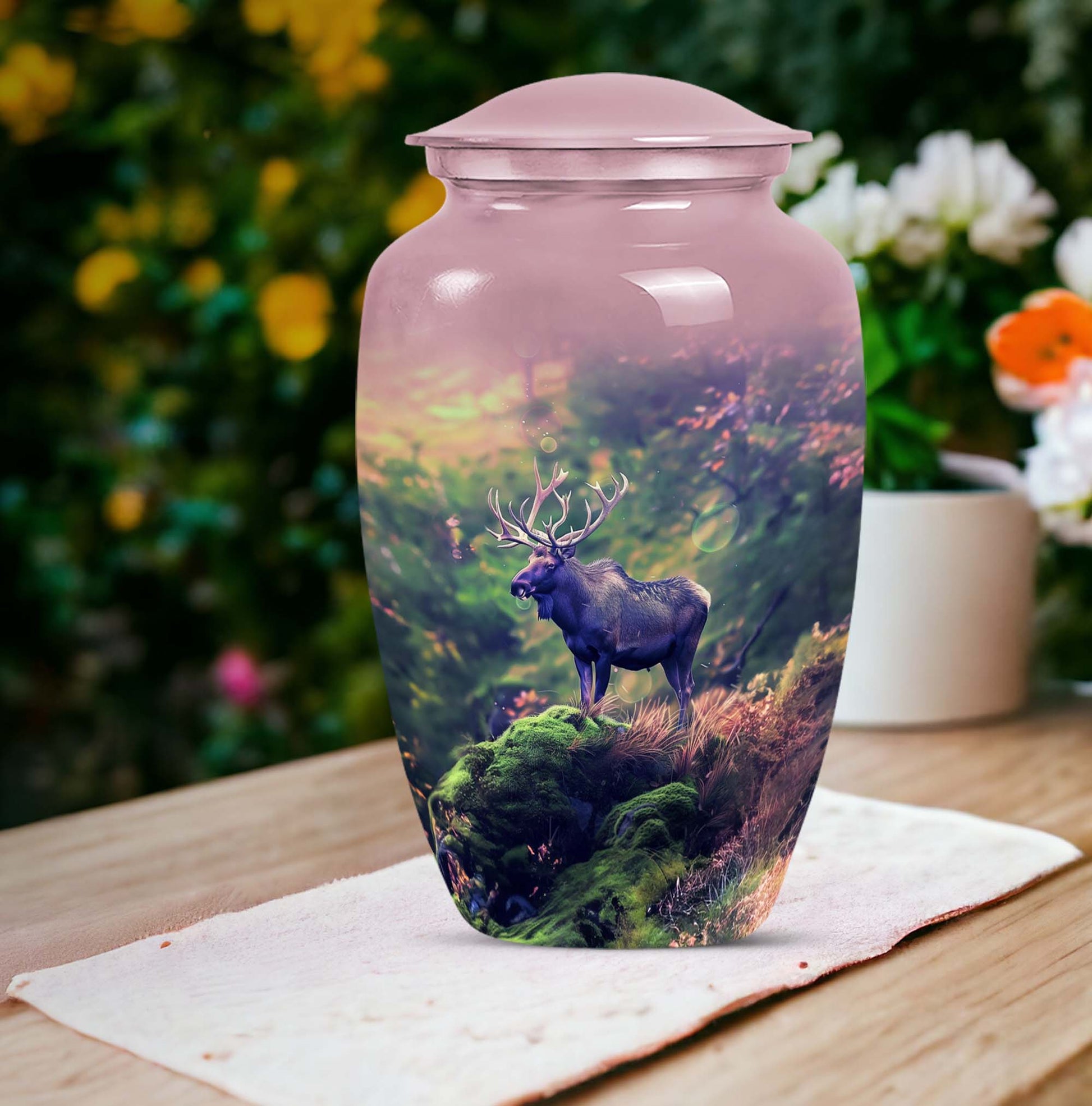 Uplift your space while cherishing the memories of a loved one with our Moose Walking Urn. This cremation memorial urn for human ashes is not just a container, but a symbol of reverence and love. Crafted from premium aluminium, this urn exhibits timeless elegance with its Classic Urn structure. It weighs a modest 3.3 pounds with dimensions comfortably measuring 10 inches in height. The urn is spacious with a capacity to securely hold 200 cubic inches of ashes. It comes as a complete package with a specially designed velvet pouch to store the ashes. The urn's abstract theme infuses an artistic appeal into its design. Further, it offers a personal touch with its customizable feature. You can engrave names on it, making it even more unique and meaningful. This large urn caters to men and women alike, and is an ideal selection for those seeking sophisticated memorial urns or cremation urns. This urn rise above the commonplace options and is a symbol of distinctive taste. Remember your loved ones in style and peace with our Moose Walking Urn.