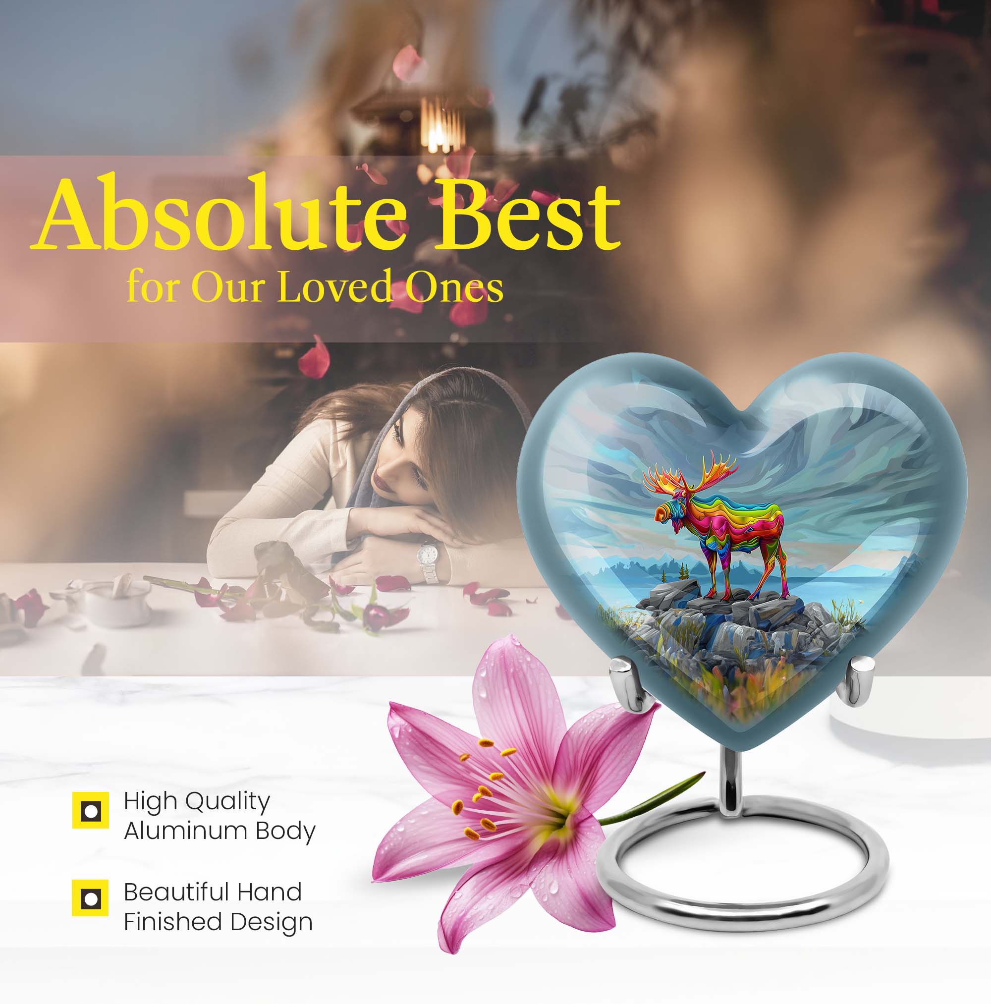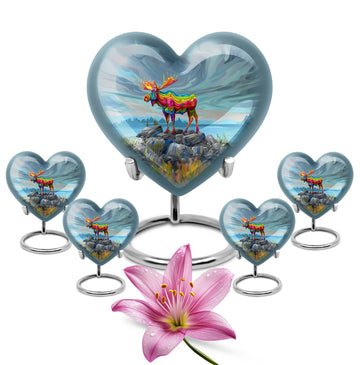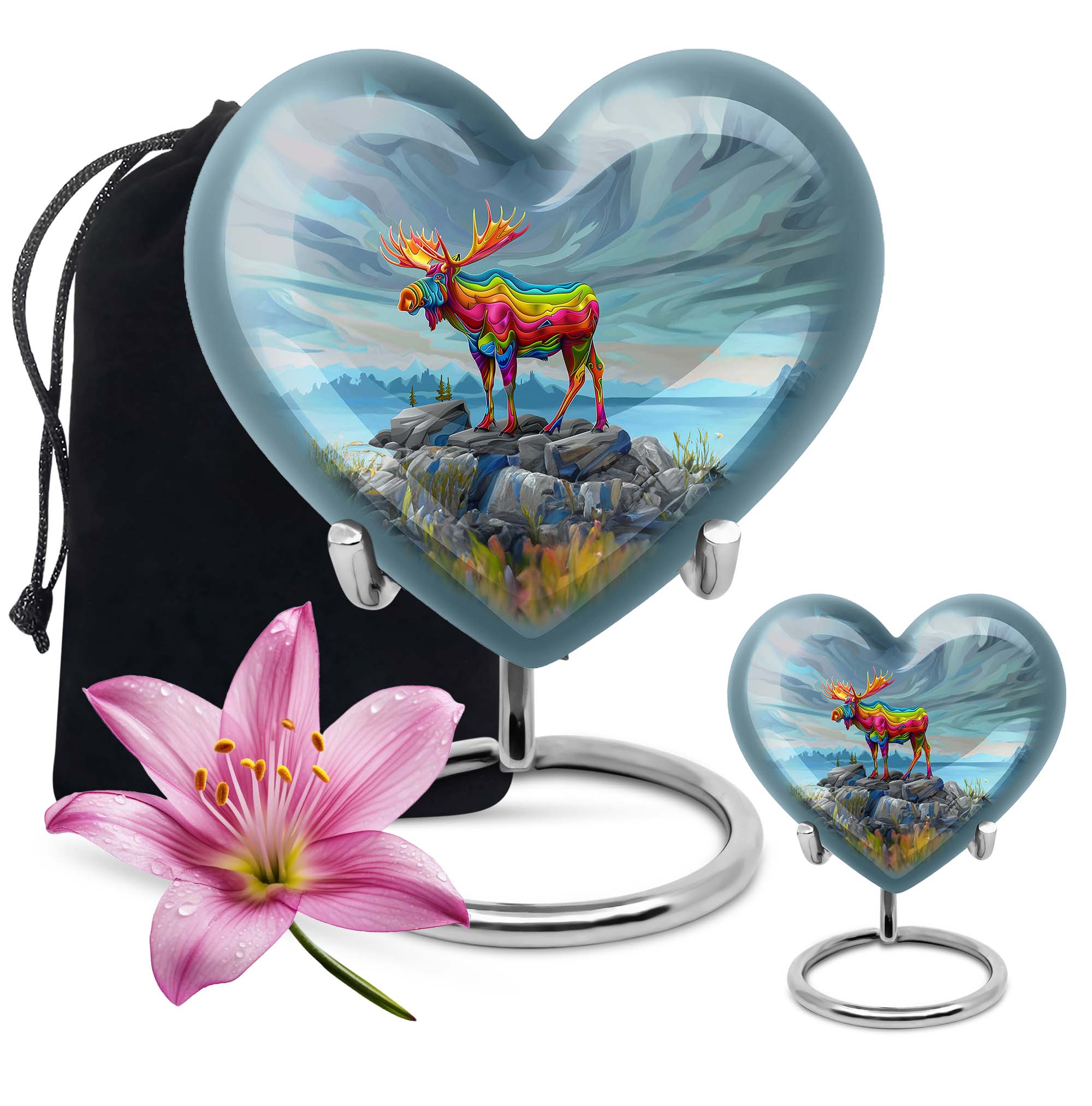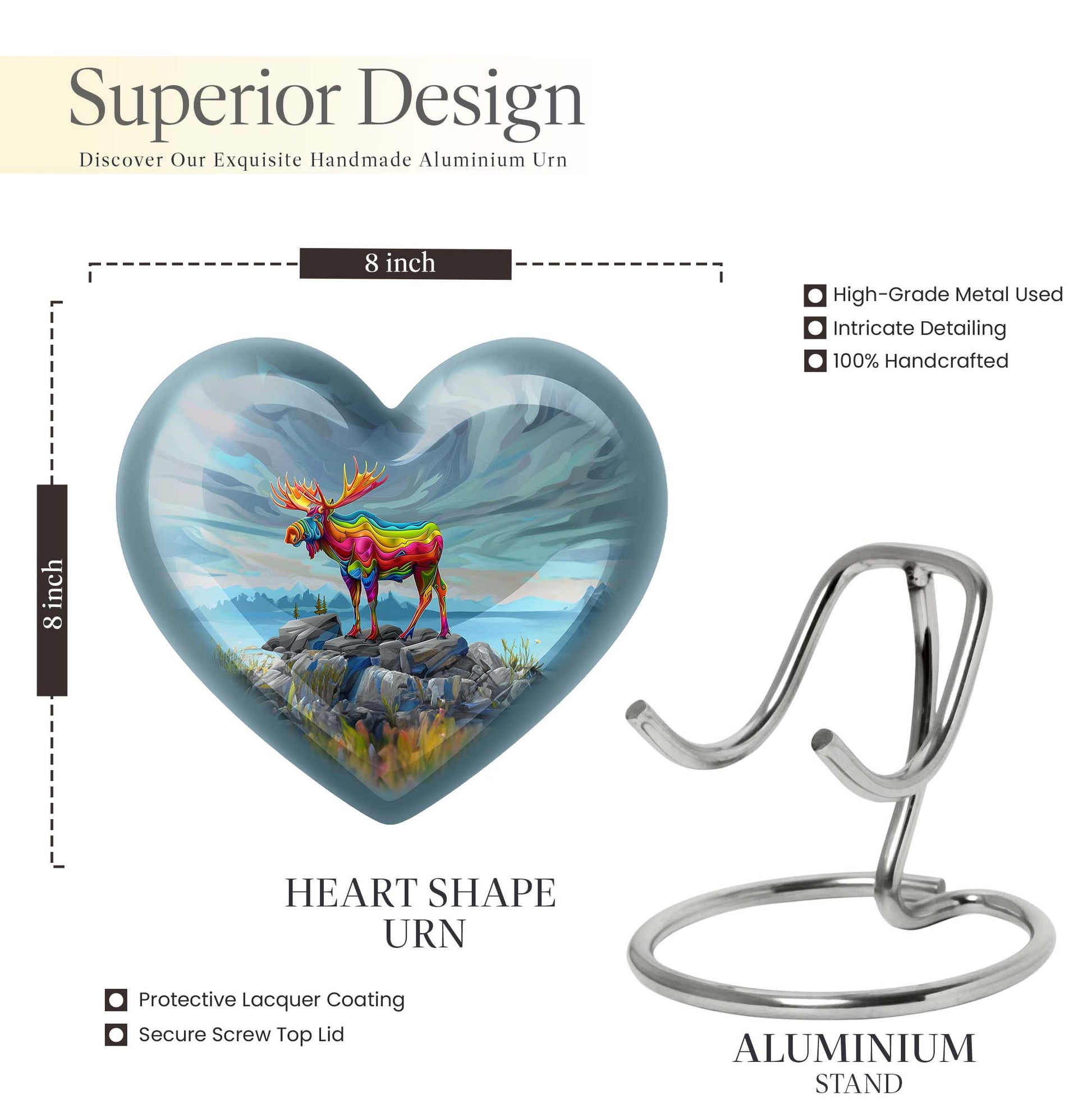 Gracefully express your everlasting love and respect with our extraordinary 10-inch 'Moose Walking Urn.' This classically-crafted memorial urn, a stunning piece from our large urns assortment, offers a distinguished final resting place for your beloved. Embodied in the abstract theme, this heart urn is meticulously crafted from staunch aluminium, representing not only the immortality of your affection but also a durable and substantial keepsake. The urn weighs 3.3 pounds, and its robust dimensions ensure a capacity of 200 cubic inches, typically adequate to hold the ashes of an adult male. To add an intensely personal touch, we offer the option to personalize this urn with engraved names. Your purchase includes a soft velvet pouch, ensuring a dignified containment solution for the sacred ashes. Let it be a soaring emblem of the warmth and respect you shared. This exclusive collection, inclusive but not limited to cremation urns for men, Urn human burial urn, urn for human ashes adult men, cremation urn for two adults, consistently maintains its dedication to finely inscribed memorial urns. Your search for 'moose walking urn' certainly ends here!