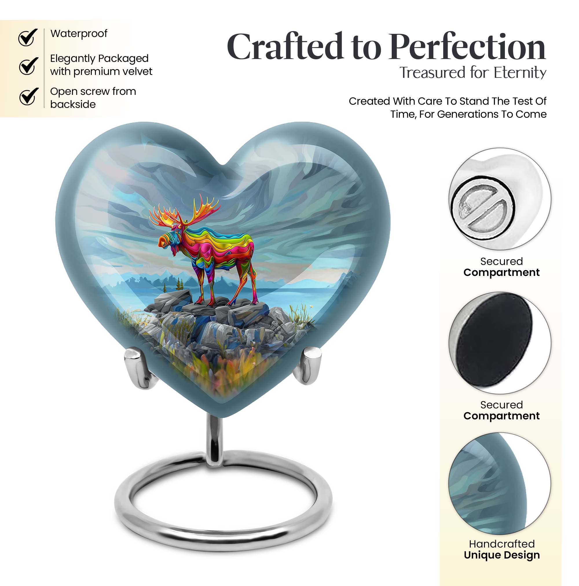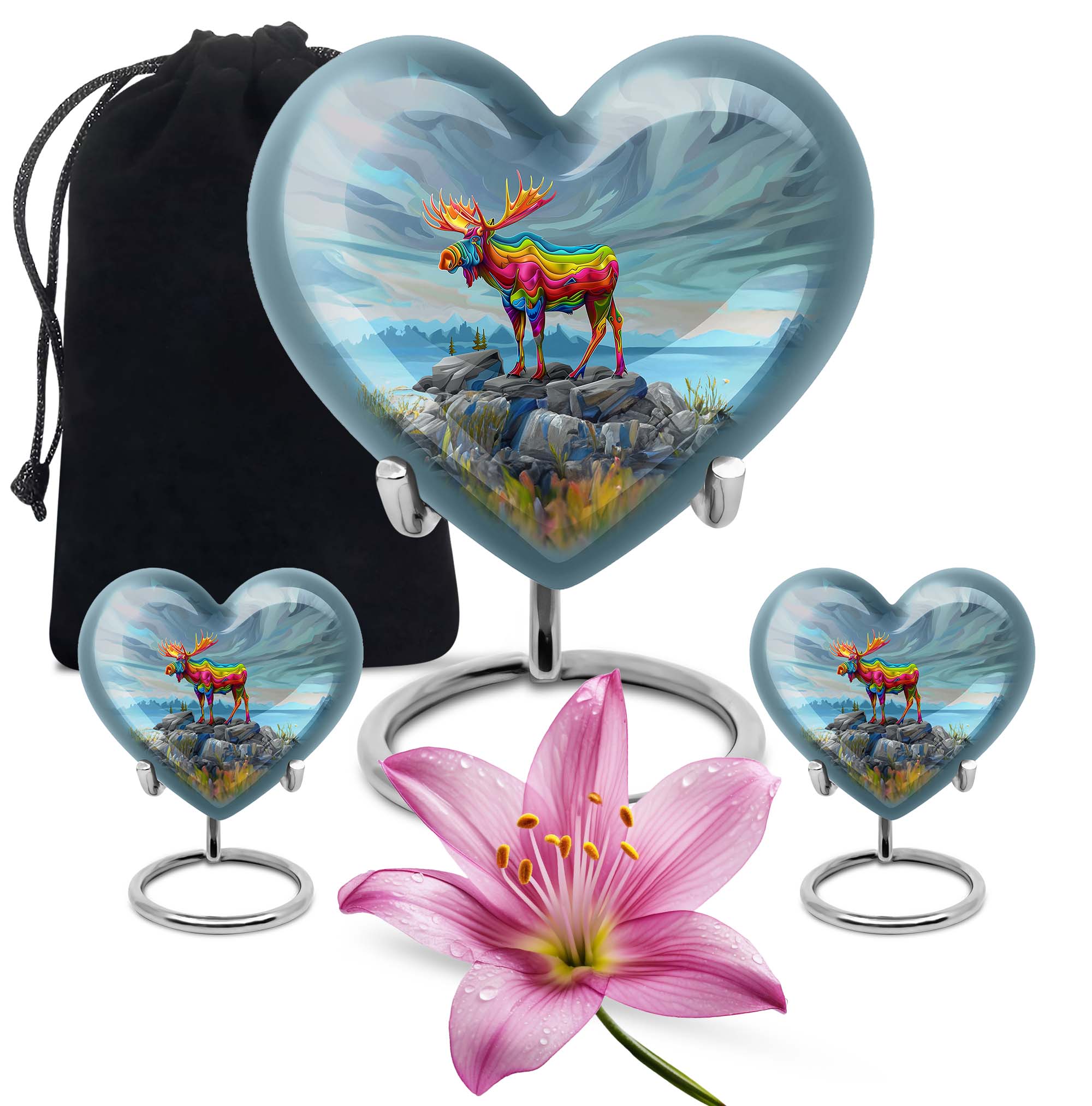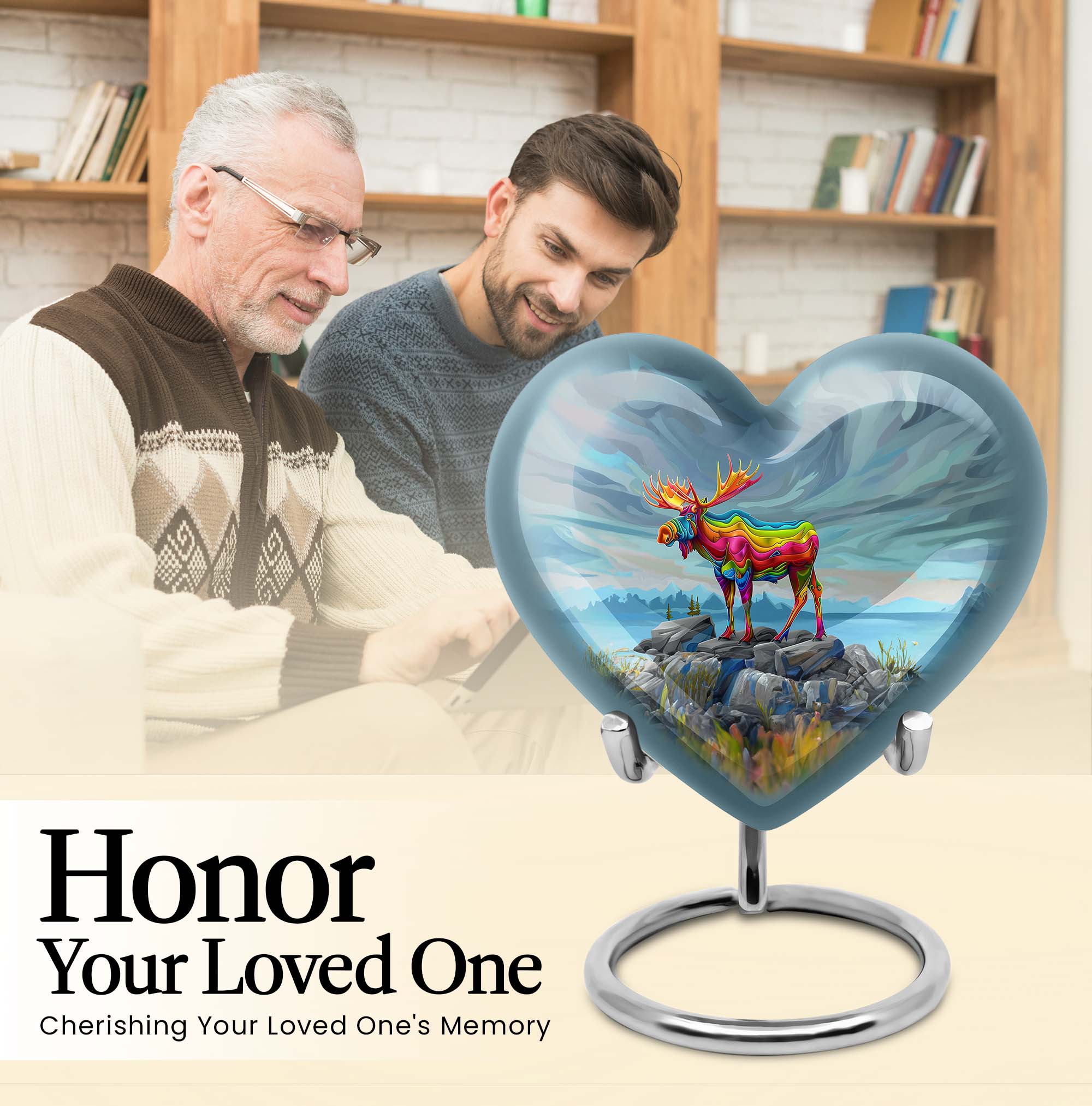 Gracefully express your everlasting love and respect with our extraordinary 10-inch 'Moose Walking Urn.' This classically-crafted memorial urn, a stunning piece from our large urns assortment, offers a distinguished final resting place for your beloved. Embodied in the abstract theme, this heart urn is meticulously crafted from staunch aluminium, representing not only the immortality of your affection but also a durable and substantial keepsake. The urn weighs 3.3 pounds, and its robust dimensions ensure a capacity of 200 cubic inches, typically adequate to hold the ashes of an adult male. To add an intensely personal touch, we offer the option to personalize this urn with engraved names. Your purchase includes a soft velvet pouch, ensuring a dignified containment solution for the sacred ashes. Let it be a soaring emblem of the warmth and respect you shared. This exclusive collection, inclusive but not limited to cremation urns for men, Urn human burial urn, urn for human ashes adult men, cremation urn for two adults, consistently maintains its dedication to finely inscribed memorial urns. Your search for 'moose walking urn' certainly ends here!