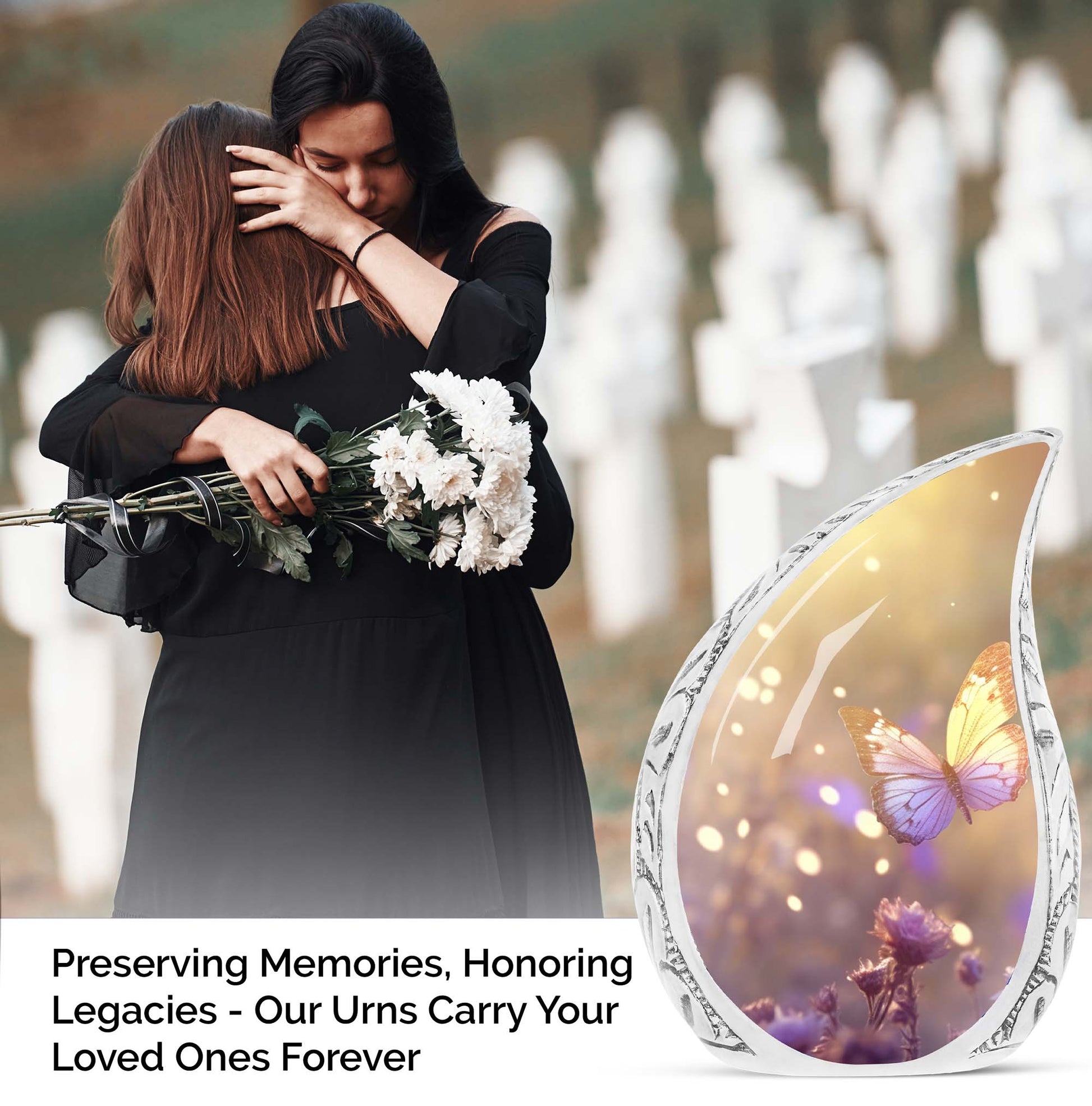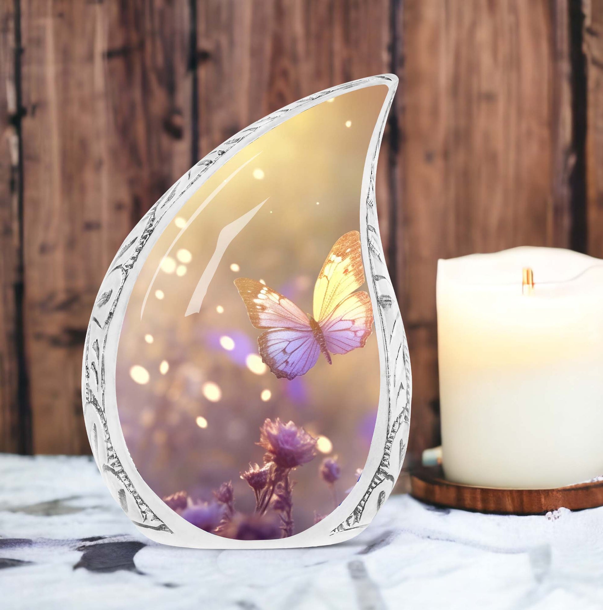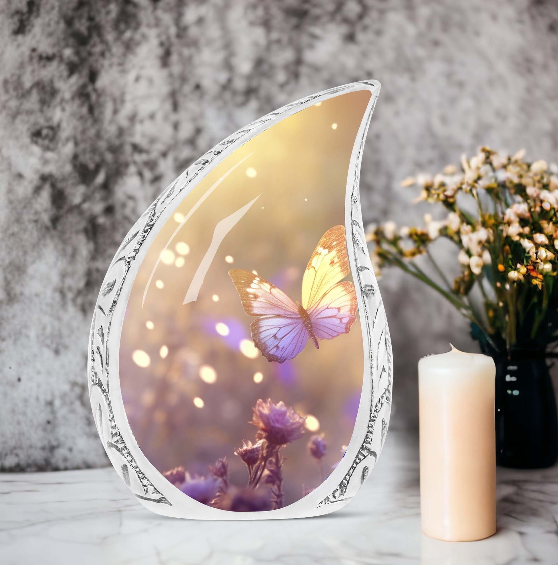 Elegantly celebrating the tapestry of life, our Morning Butterflies Urn stands as an enchanting tribute for loved ones. This decorative urn for human ashes is meticulously designed to evoke a sense of serenity and calmness. Encapsulating the gentle flutter of spirited butterflies along with splashes of morning sun rays, this urn will delicately safeguard your cherished memories. Whether you're seeking a mom cremation urn or an urn for dad's ashes, its tasteful design radiates an aura of timeless beauty that aptly commemorates their soothing presence. Crafted for those in search of something uniquely symbolic, our urn delivers an intricate artistry unrivaled in its class. The Morning Butterflies Urn transcends the ordinary and embraces the extraordinary in reverent homage to life's precious journey. Grace your abode and your hearts with this exclusive memorial, helping make peace with remembrance.