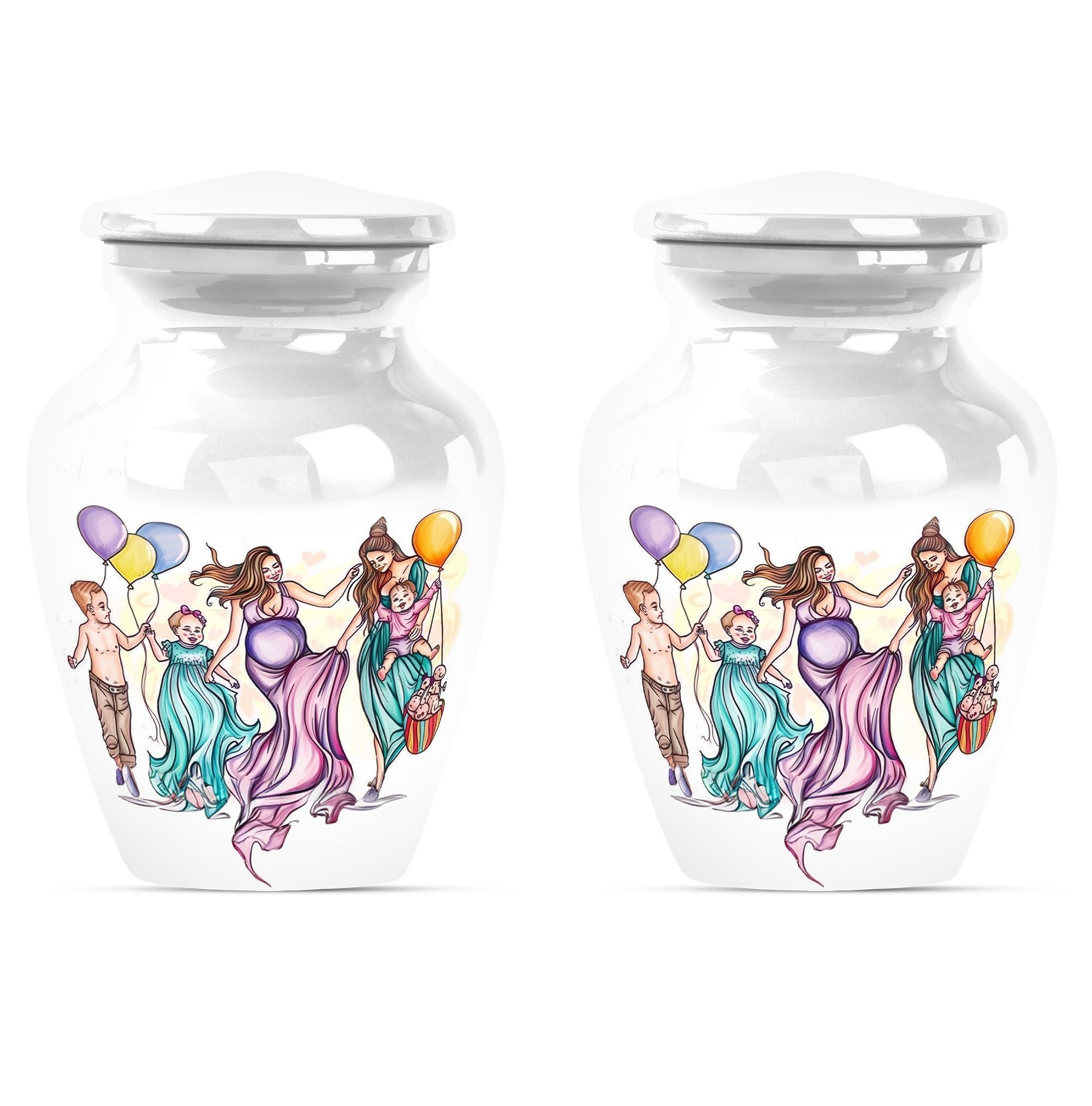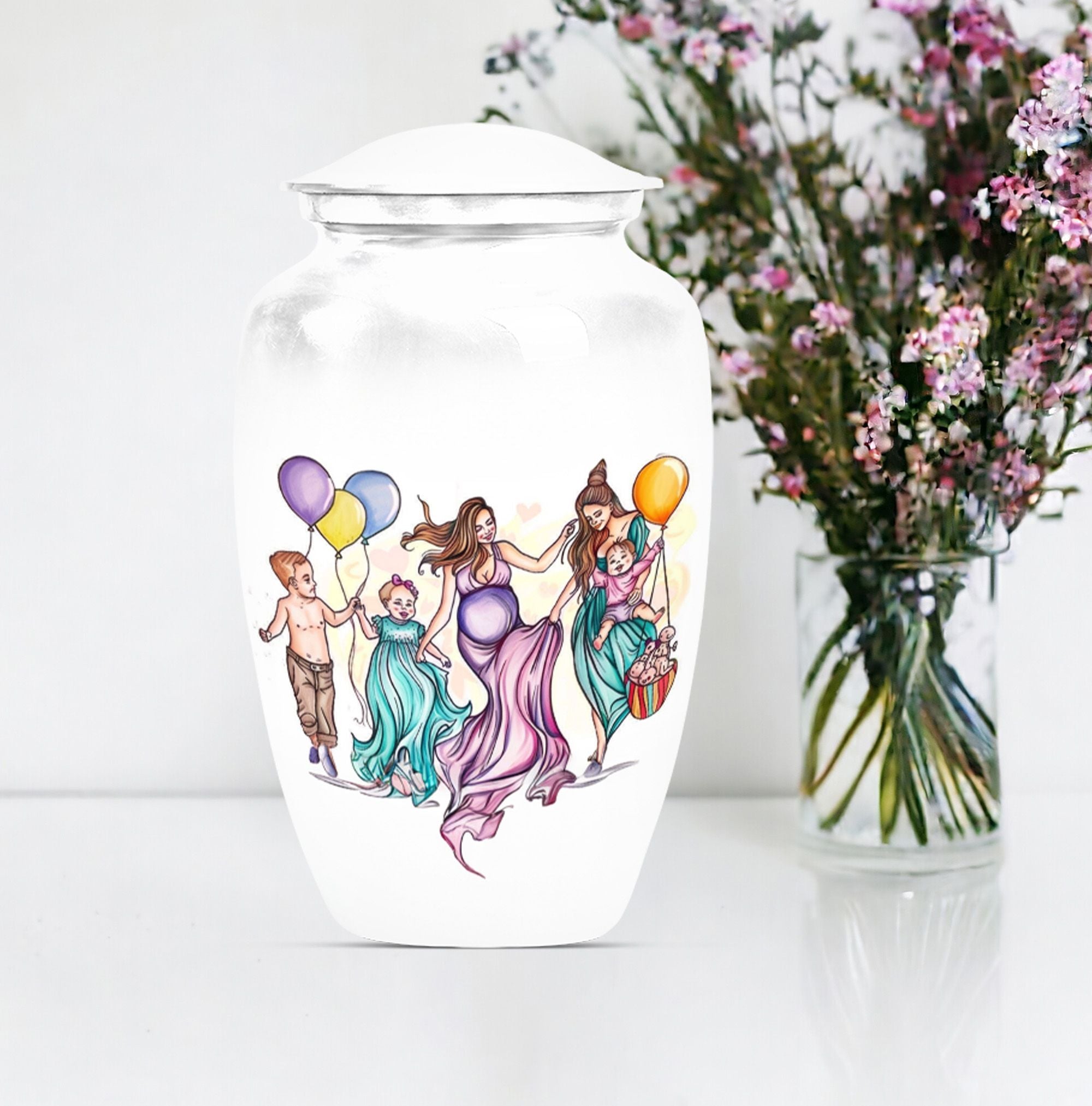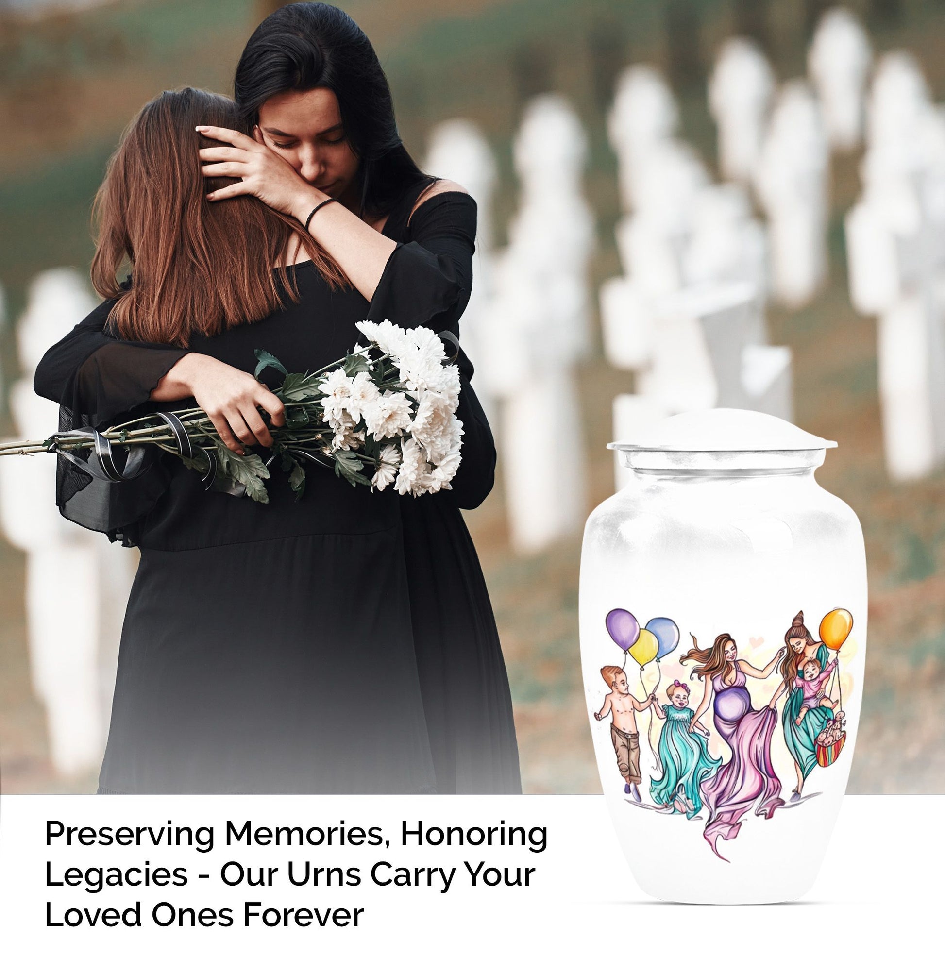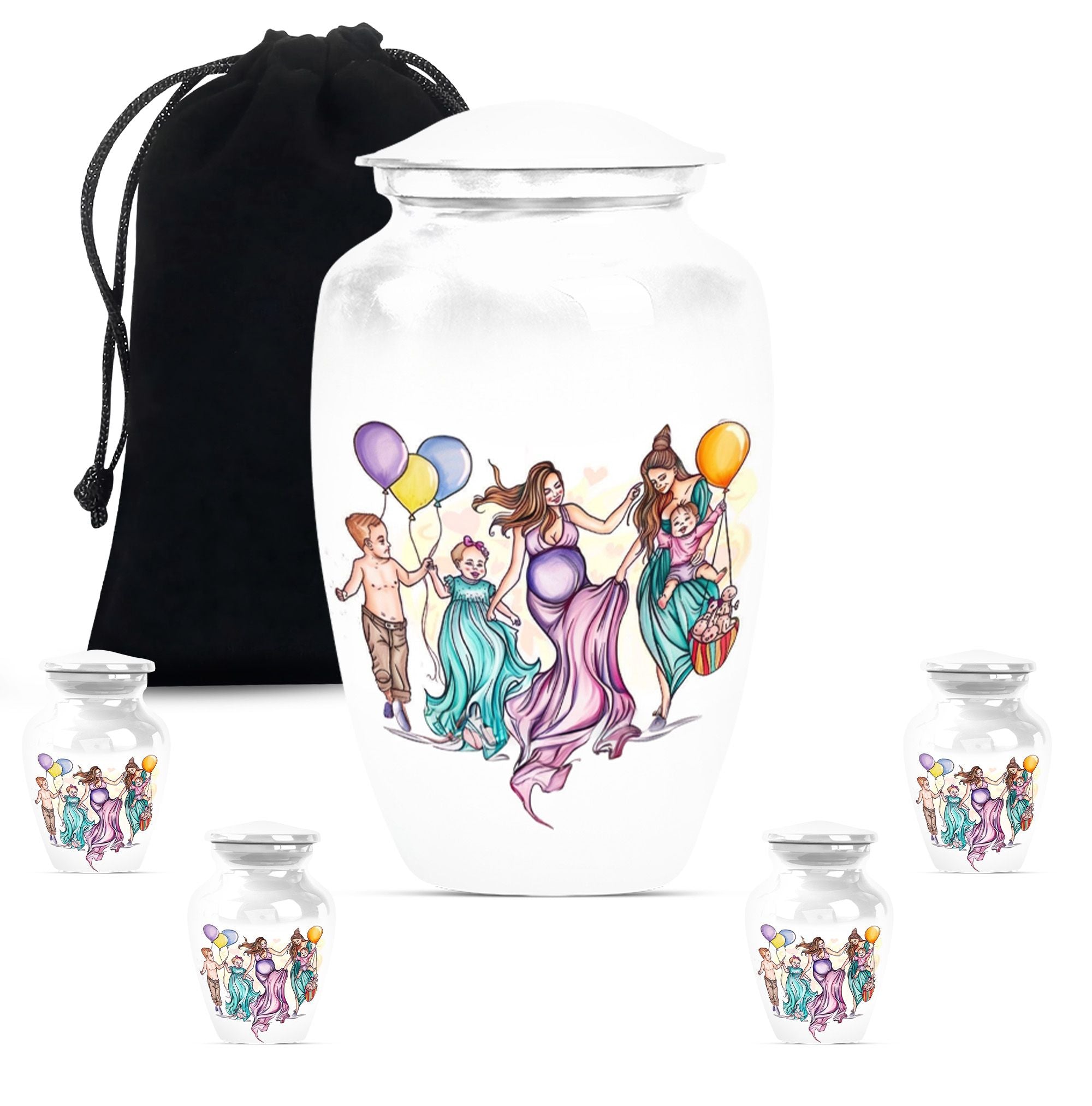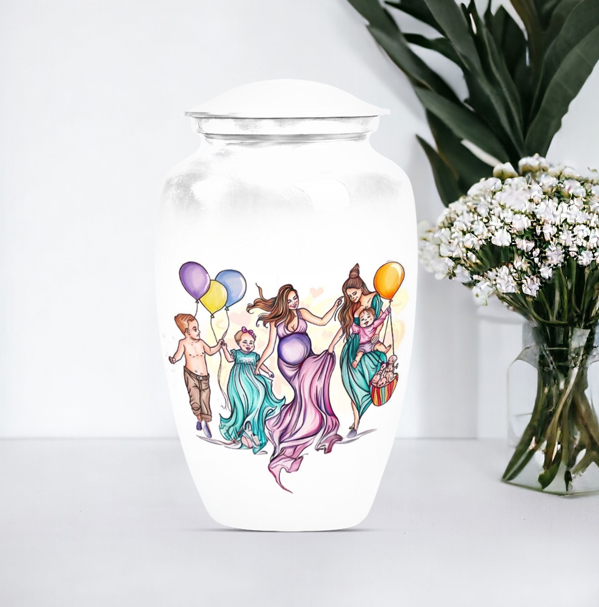 Honor the memory of a cherished one with this substantial, 10-inch Aluminium urn, a dignified resting place for your loved one's ashes. This large urn has a capacity of 200 cubic inches, which makes it ideal for adult burial. This burial urn for ashes adult emphasizes abstract themes, representing the complexities of life and the mysterious journey beyond. Our cremation urn, weighing a modest 3.3 pounds, underscores the solemnity of its purpose - a timeless testament to love and remembrance. The urn comes with a special velvet pouch, designed for the respectful containment and preservation of ashes, emblematic of the preciousness of those it represents. We offer the opportunity to further personalize this mother urn with engraved names, adding an extra layer of intimacy to this memorial symbol. Immerse yourself in the ceremonial experience with our cremation urns for dad or any loving adult in your life. Uncommonly beautiful, our urns serve as a touching tribute to a life well-lived.