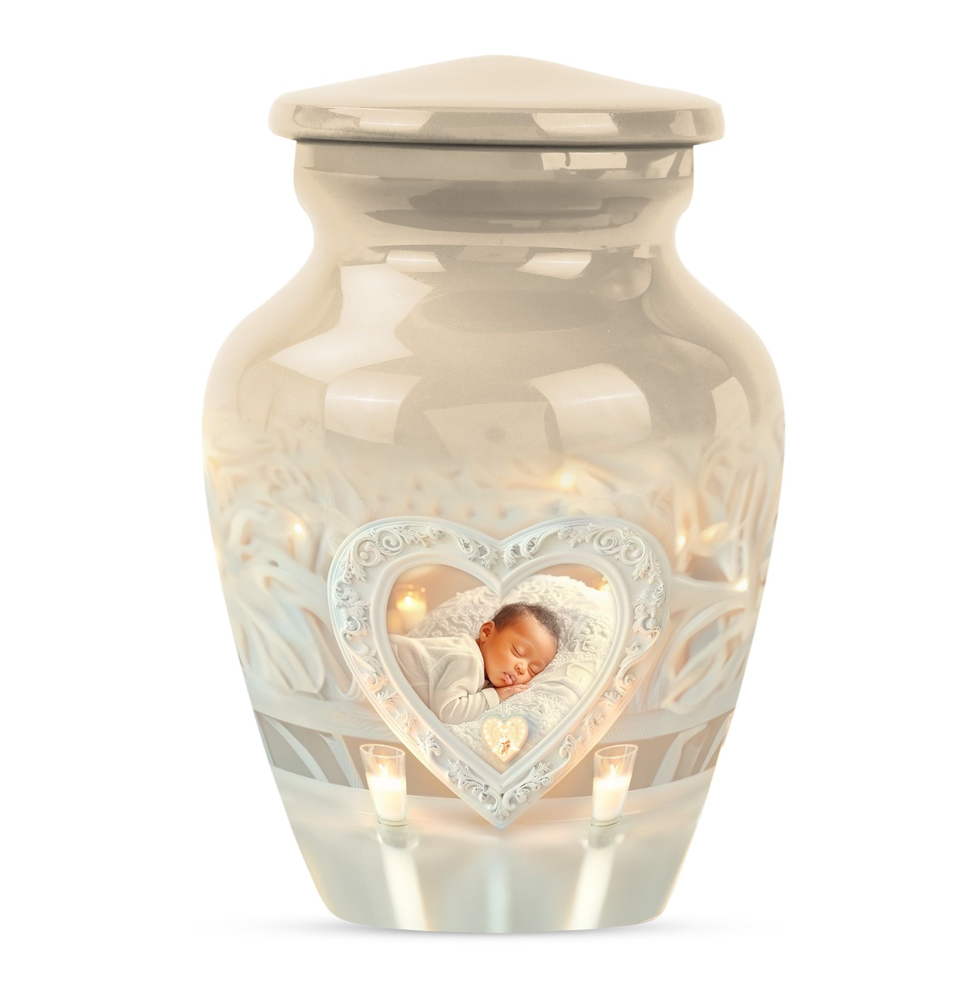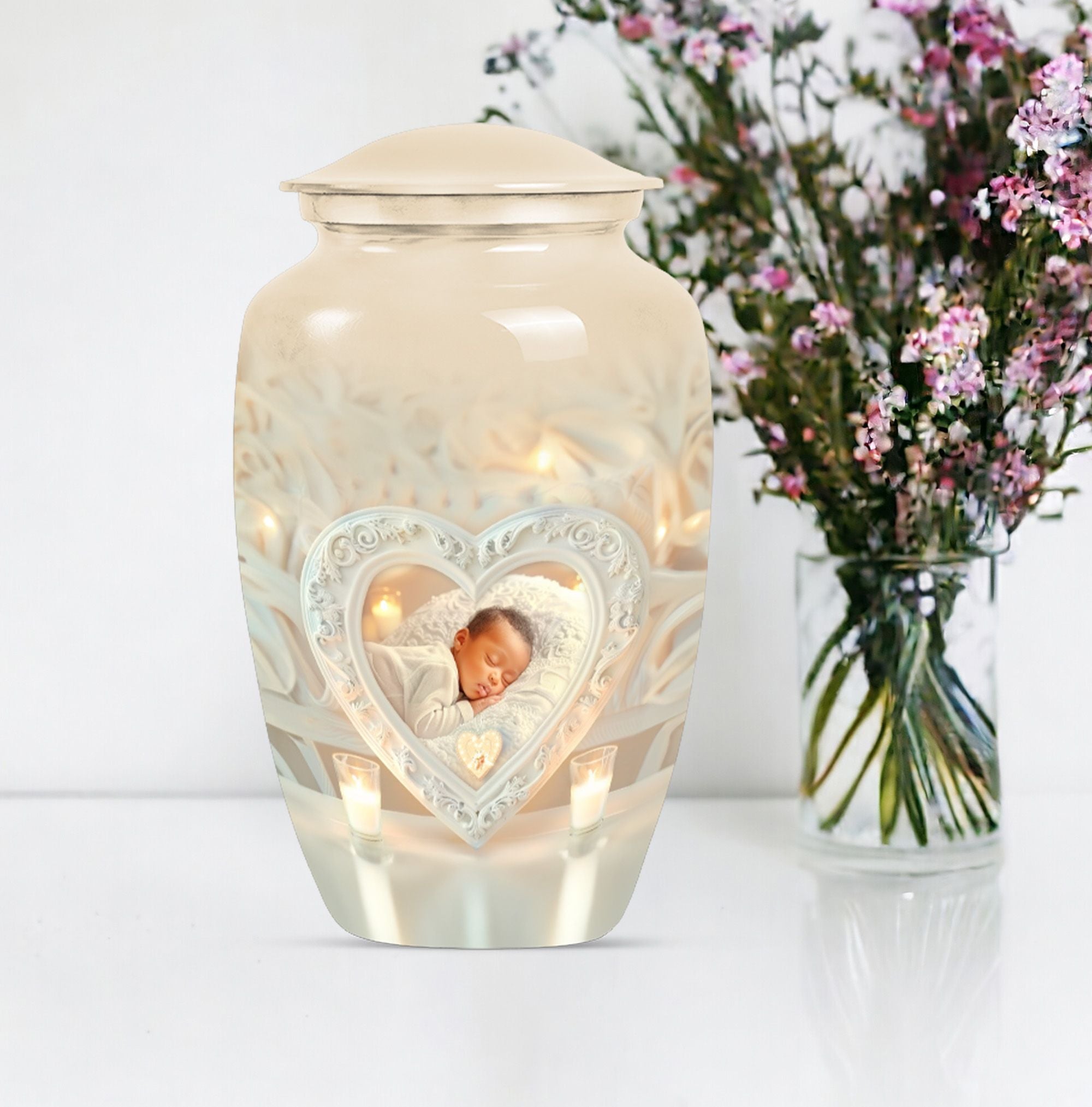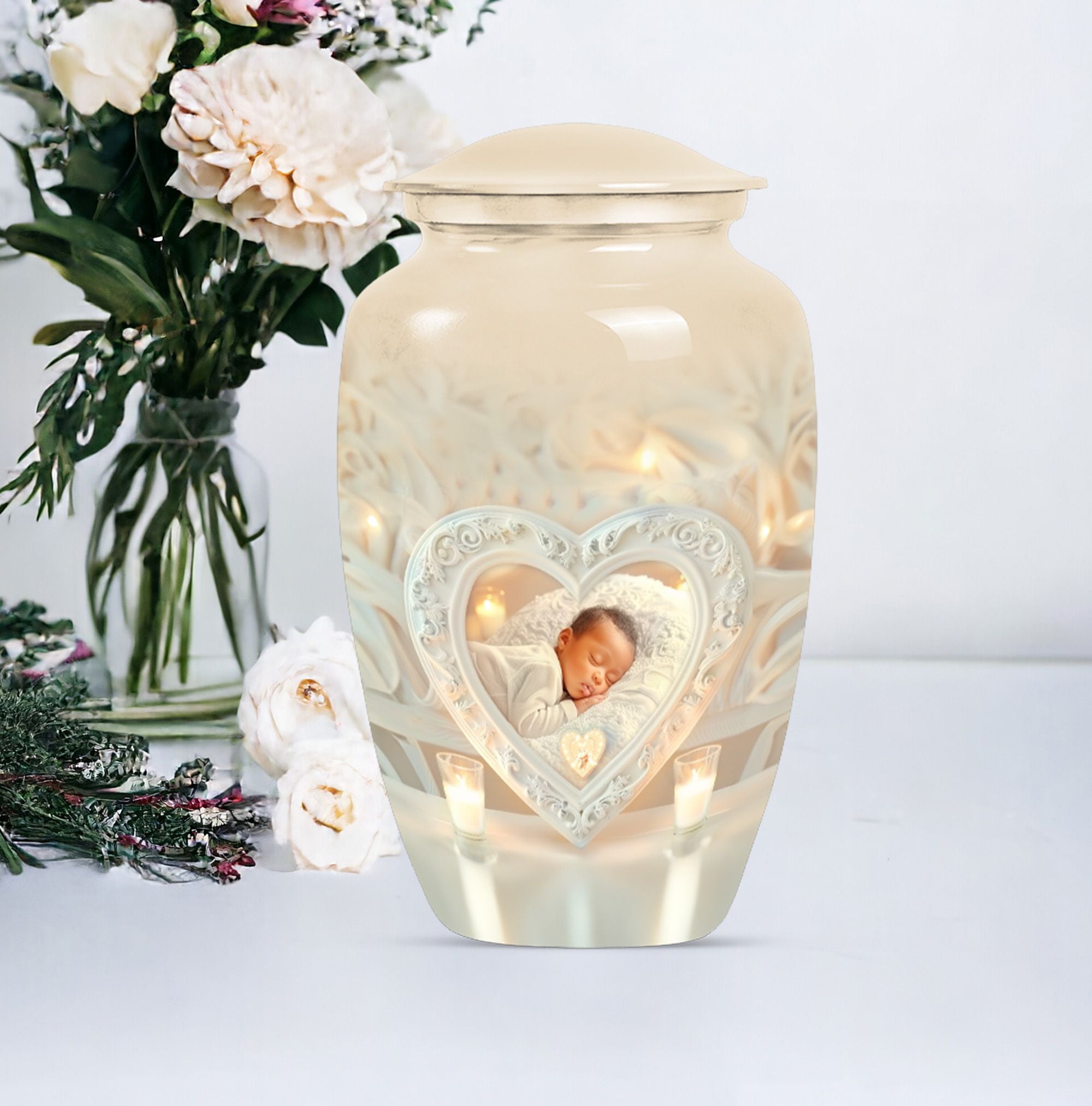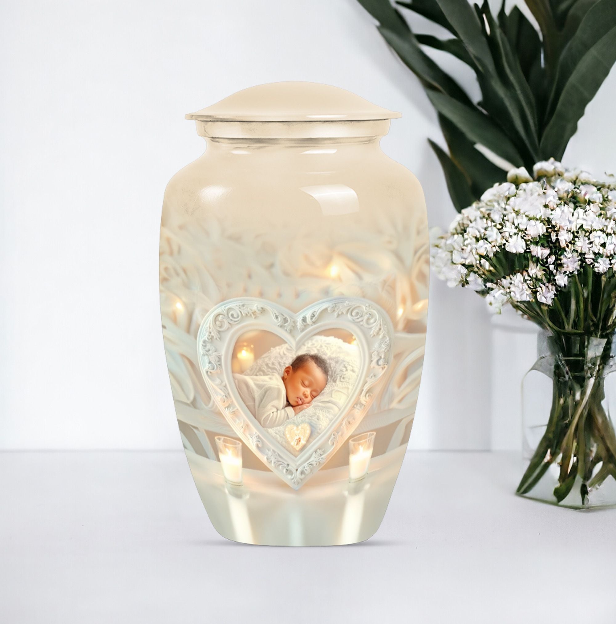 Immerse in the profound connection of motherly love with our 10 Inch, large Urn. Infused with an abstract theme, this funeral unique urn encapsulates your precious memories in a tangible yet profound manner. Crafted with dedication, this human ashes urn is composed of resilient aluminium, showcasing a powerful amalgamation of strength and grace. Added to it, the urn weighs a mere 3.3 pounds, making it easy to handle, yet sturdy in construct. Ensuring a capacity of 200 cubic inches, it is designed to securely embody the essence of your beloved. It comes with the added benefit of customization, enabling you to personalize it with engraved names, adding an intimate touch. Included in the package is a velvet pouch, providing a safe haven for the ashes. With this urn, we aspire to provide solace in a time of sorrow. Ideal for the words 'memorial urns', 'cremation urn burial', and 'funeral cremation urn' in mind, they truly resonate with what our mother love Urn signifies.