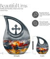 This thoughtfully crafted urn brings comfort and peace, honoring a life connected to the outdoors. Its calming artwork and symbolic meaning provide a dignified resting place for any adult remembered with love.