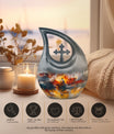 Made from durable aluminium, this silver cremation urn features elegant fishing-themed artwork representing tranquility, reflection, and cherished memories by the water’s edge. Its secure construction and generous capacity make it ideal for cremation urn adult male needs, urn human ash adult female memorials, or cremation urns adult males. Designed for versatility, it fits beautifully within large urns for female & male collections while also respecting more specific needs such as urn female ashes, urn ash adult female, urn human ash adult male, and urn adult female ashes. Families seeking mini urns for human ashes adult male may pair this full-size design with matching keepsakes for shared remembrance.
