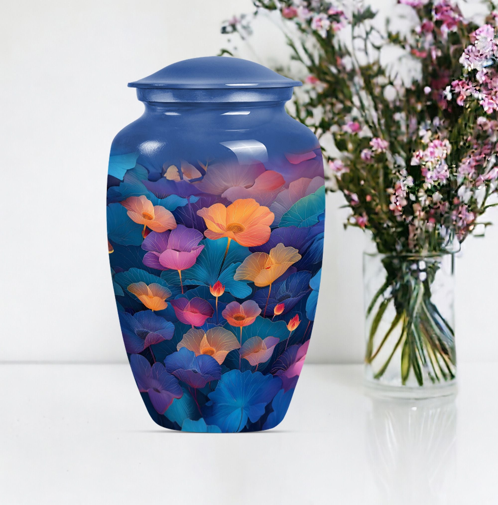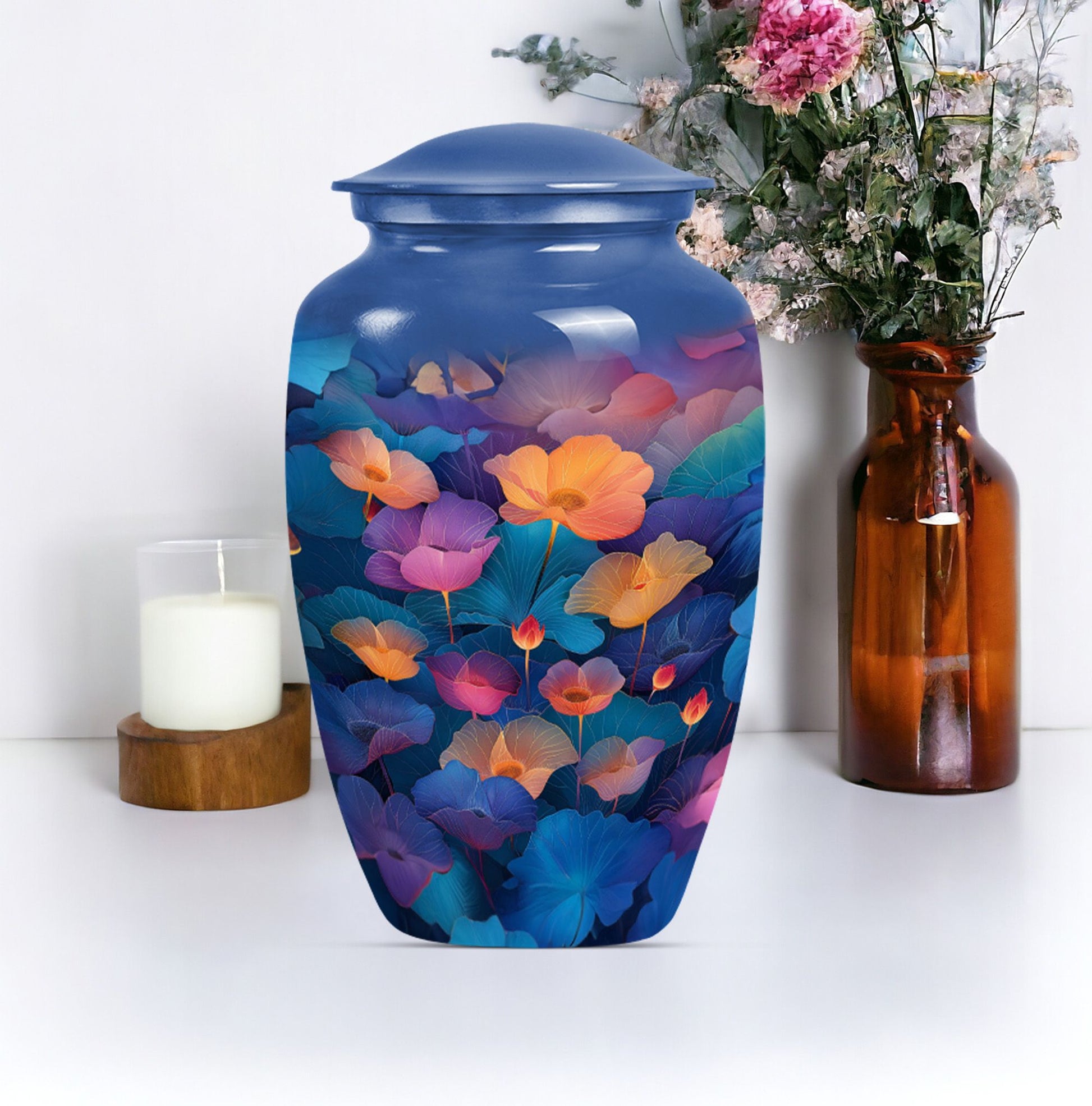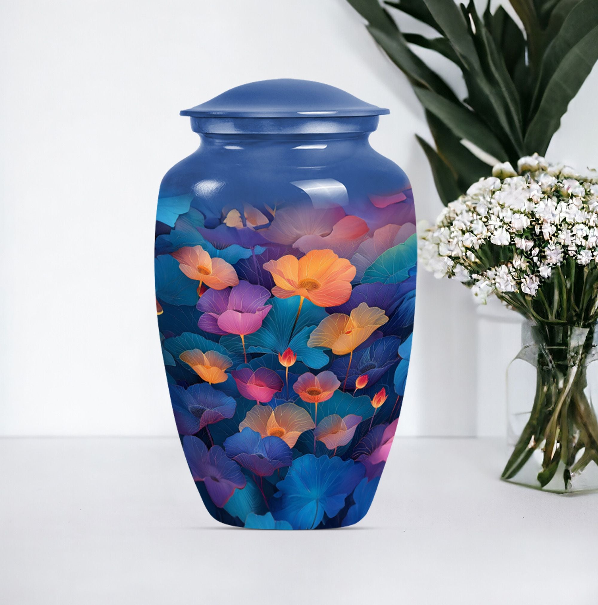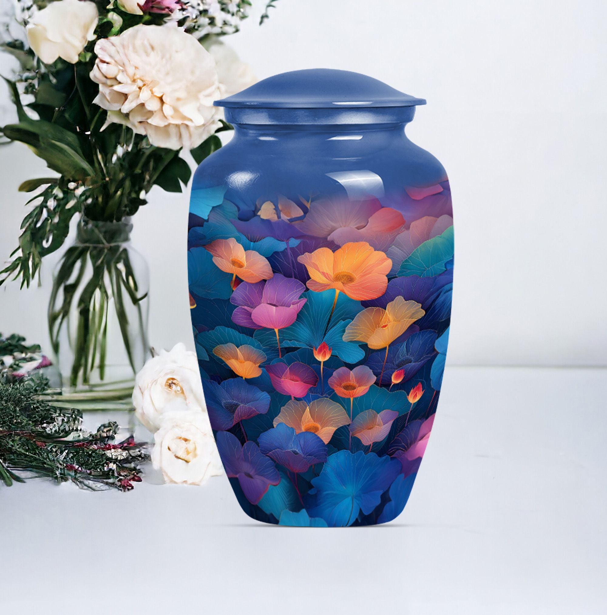 Exuding inherent abstract theme, this 10-inch Classic Lotus Urn stands as a timeless tribute to the loved ones. Its unique construction using robust and sustainable aluminium material assures longevity, making it an ideal choice for burial in the ground. Weighing under 3.3 pounds, it's a large urn, accommodating up to 200 cubic inches of ashes, showcasing its versatility. The cremation urn shines not only in its form but also in its functional value. Personalization elevates the urn's appeal as you can engrave your beloved's name, adding an intimate touch to the memorial. Lastly, to ensure safe containment and convenient portability of ashes, a velvet pouch accompanies the urn. Ideal for seniors and adults seeking funeral urns for mom or other female family members, this Lotus Urn marries aesthetics with sensitivity. An exquisite honor meeting the highest standards, opt for this Personalized Memorial Urn.