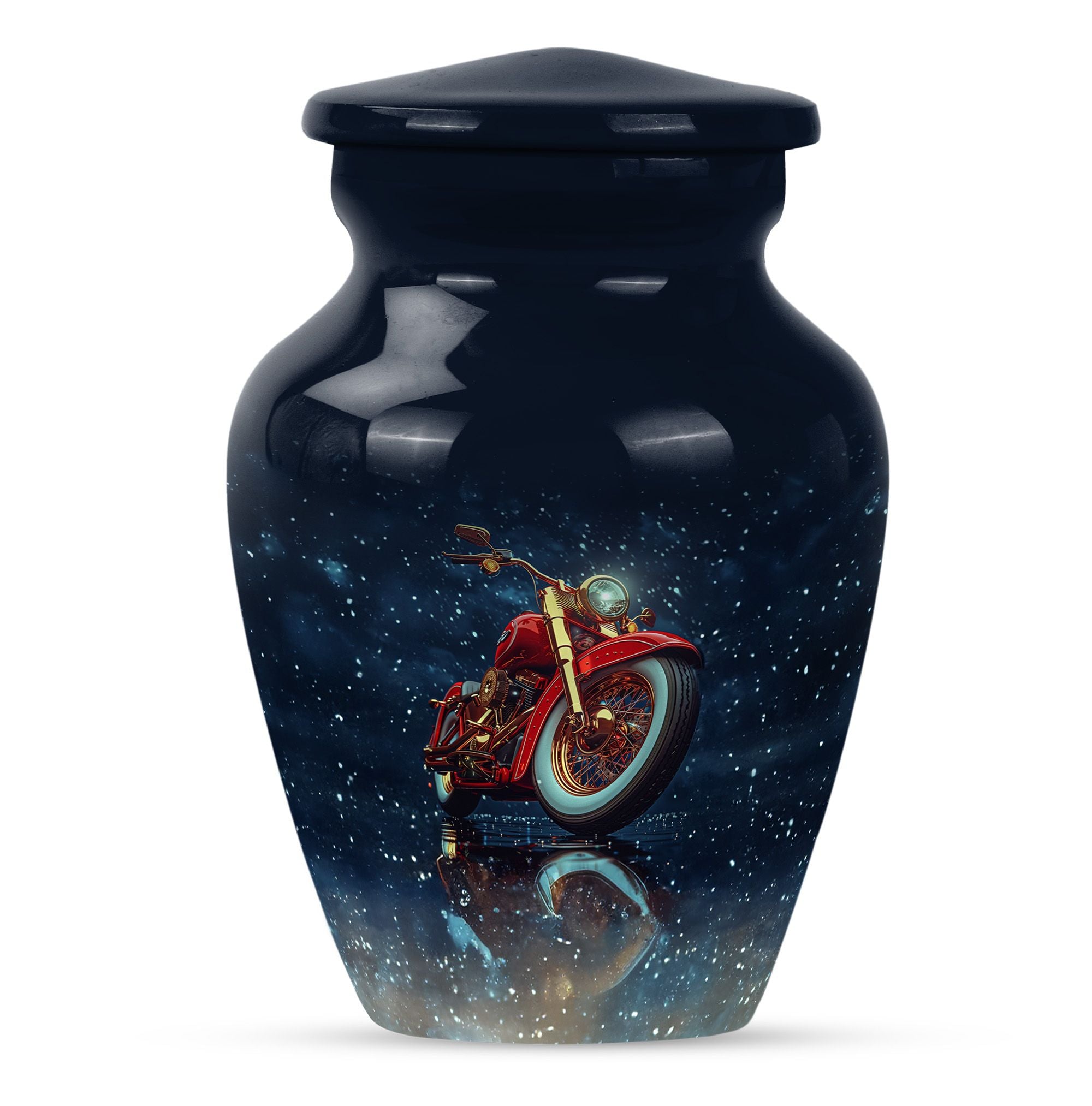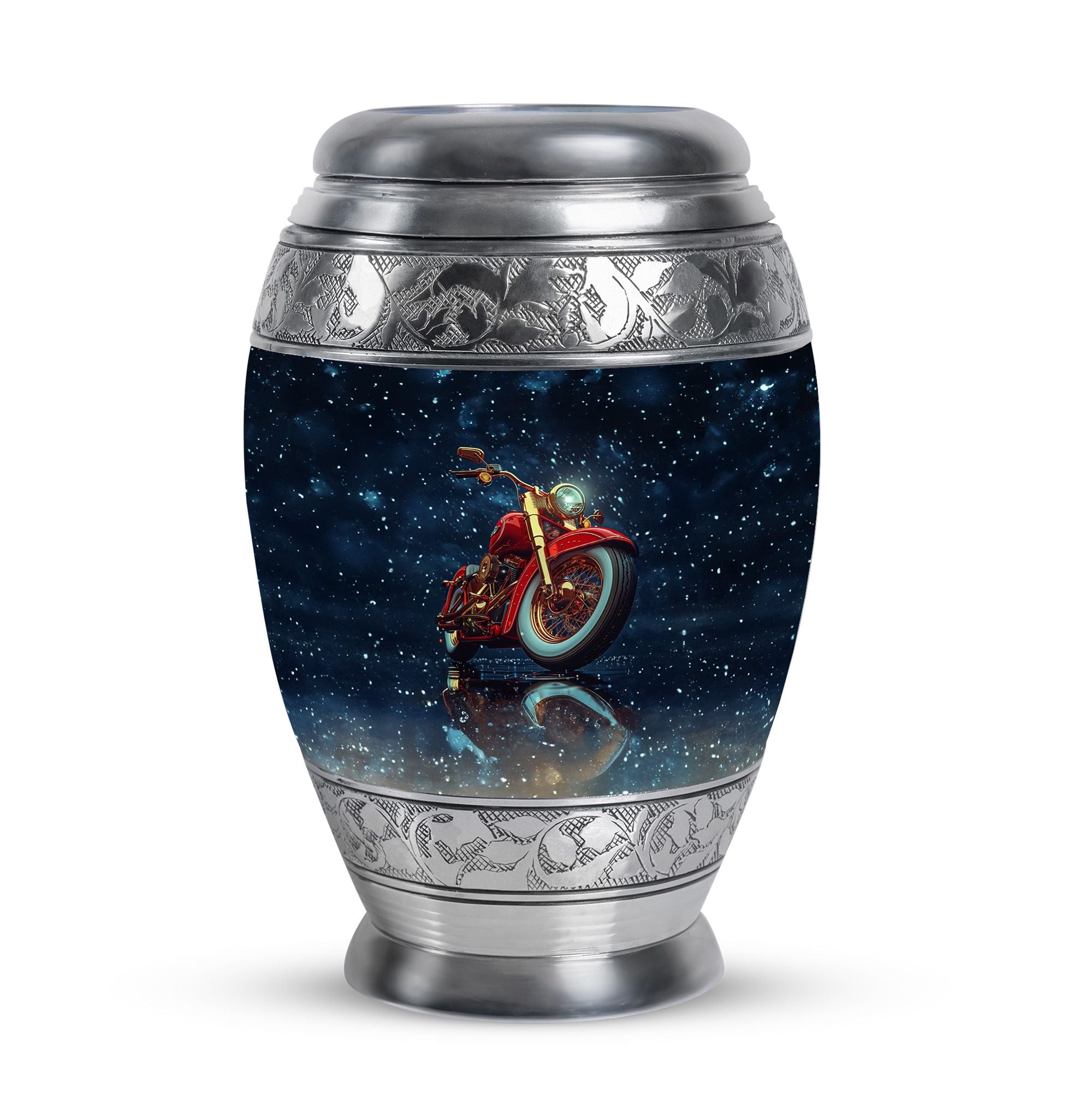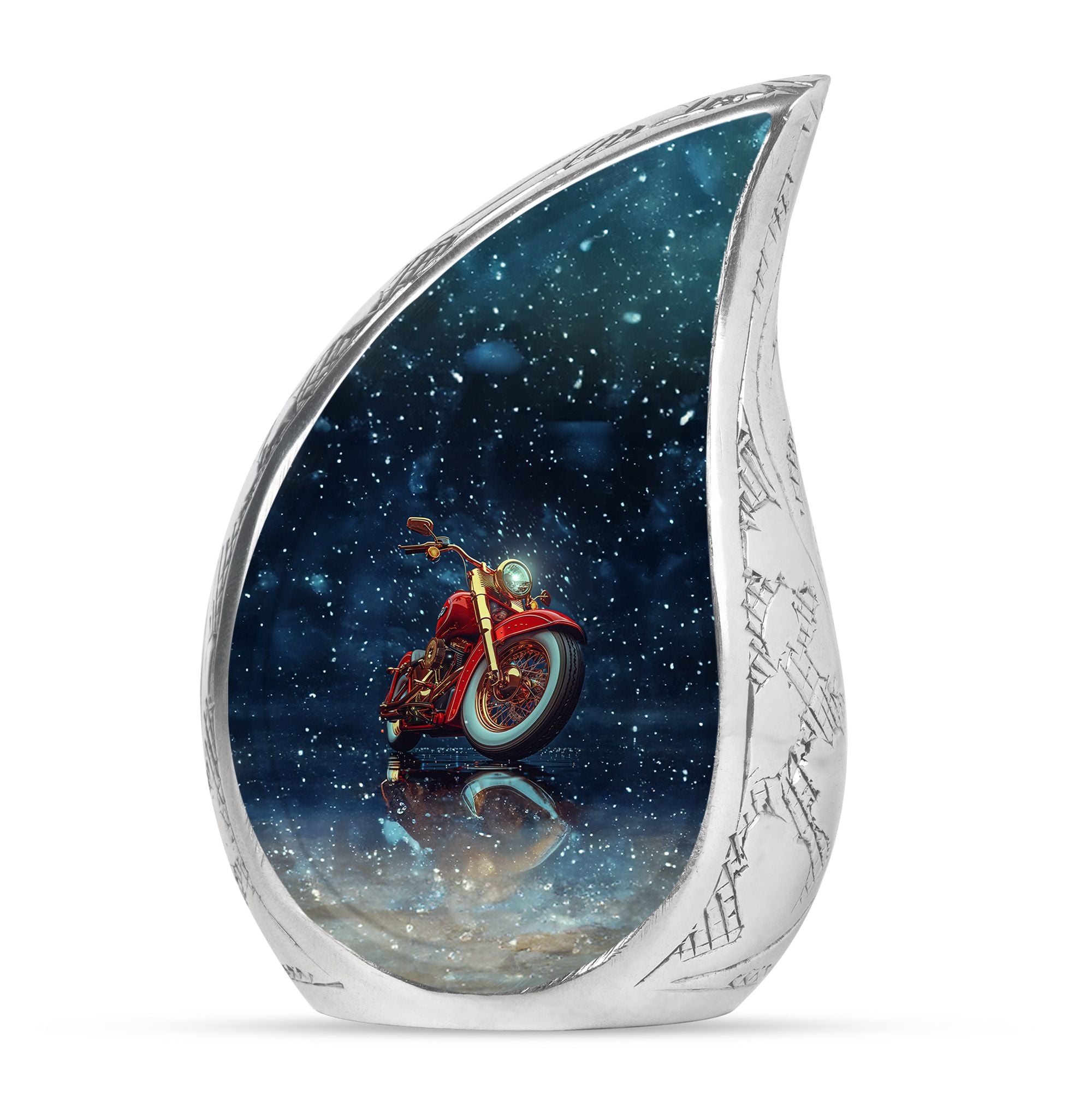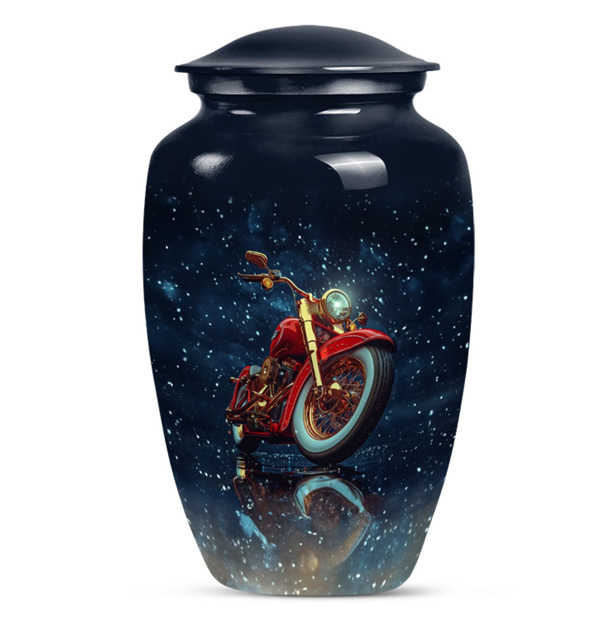The Red Motorcycle Cremation Urn offers families a heartfelt way to honor the memory of a loved one. With its striking design and snowfall detail, this memorial urn symbolizes both strength and serenity, making it a meaningful choice for funeral urns for human ashes or adult funeral urns. Its design reflects individuality while providing comfort and dignity.