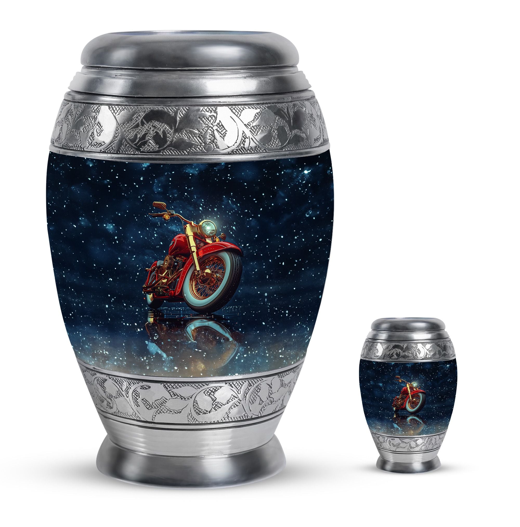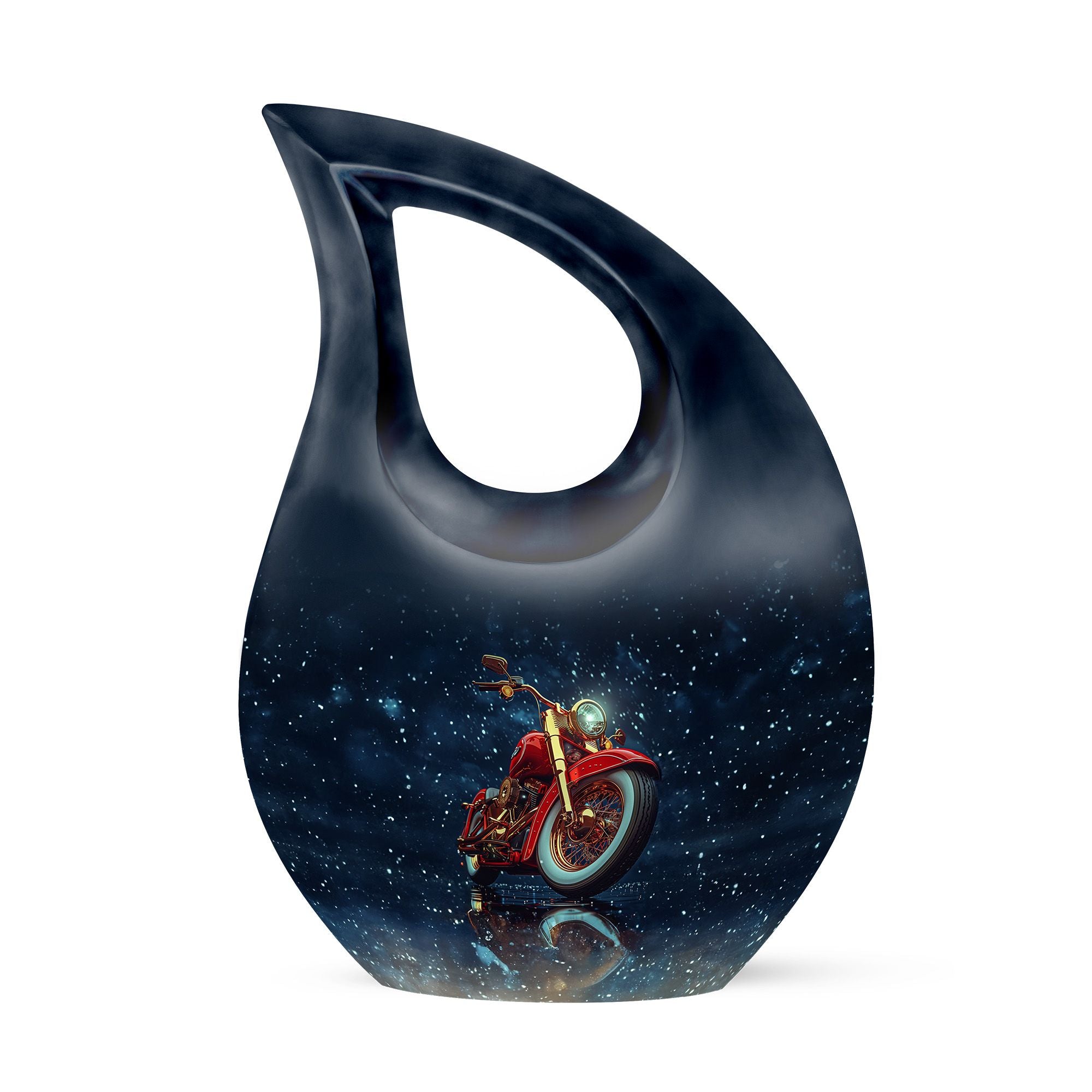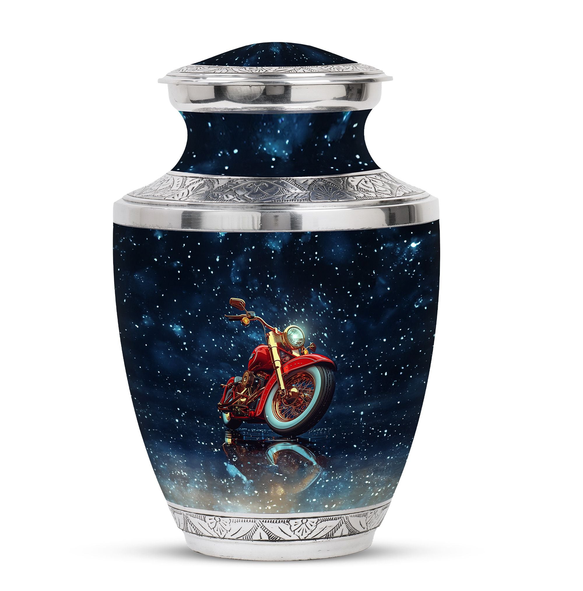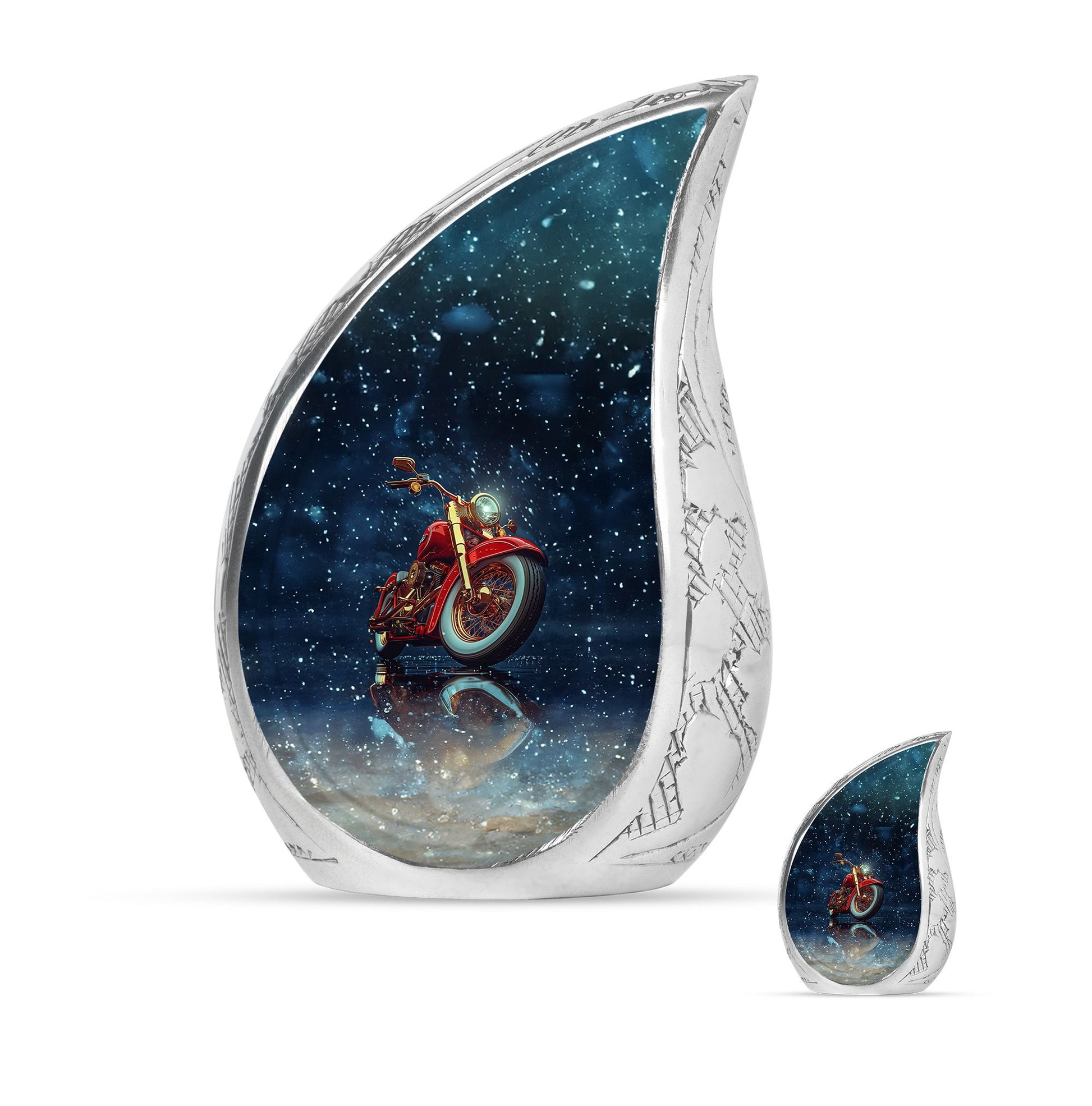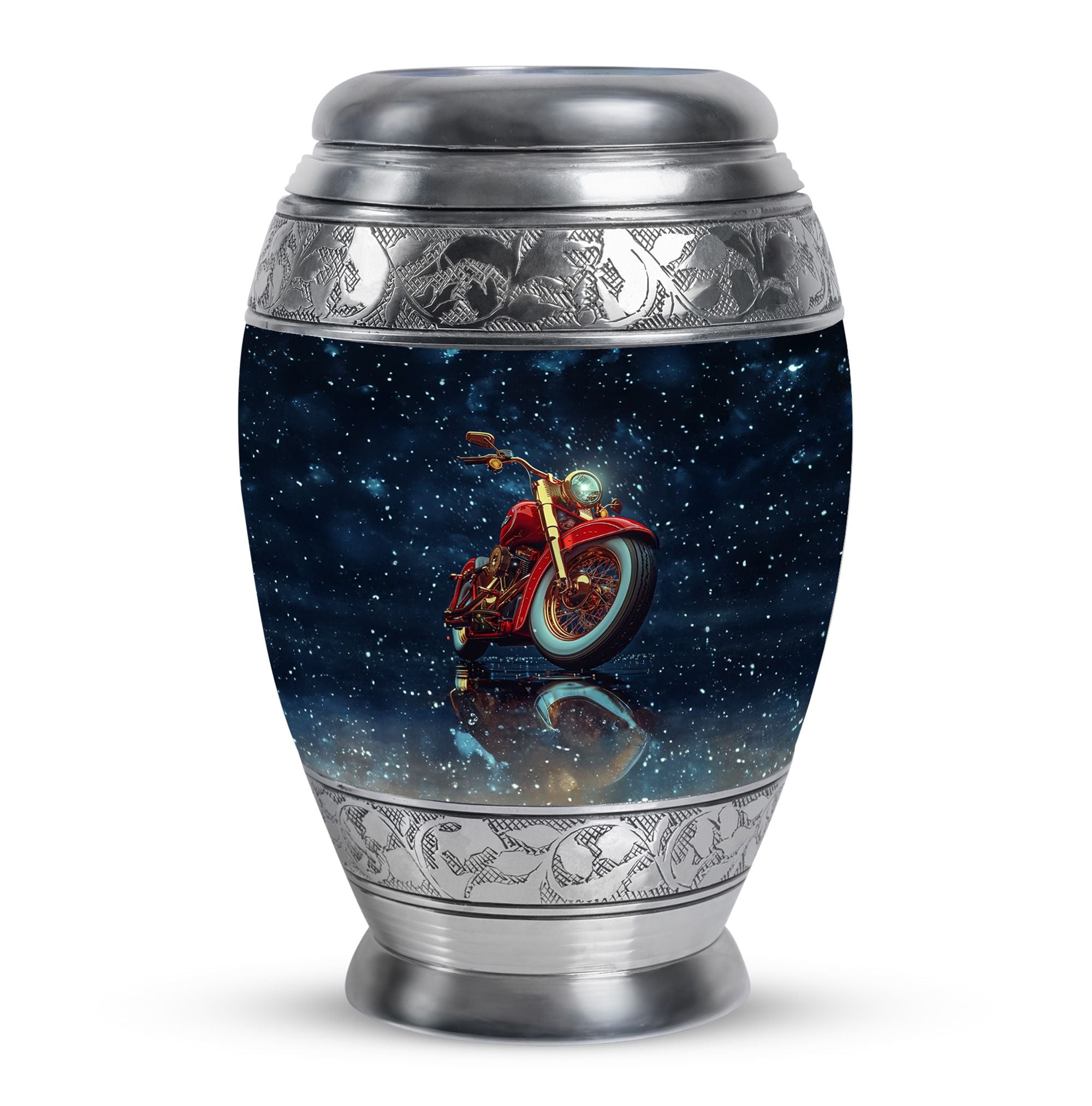 The Red Motorcycle Cremation Urn offers families a heartfelt way to honor the memory of a loved one. With its striking design and snowfall detail, this memorial urn symbolizes both strength and serenity, making it a meaningful choice for funeral urns for human ashes or adult funeral urns. Its design reflects individuality while providing comfort and dignity.
